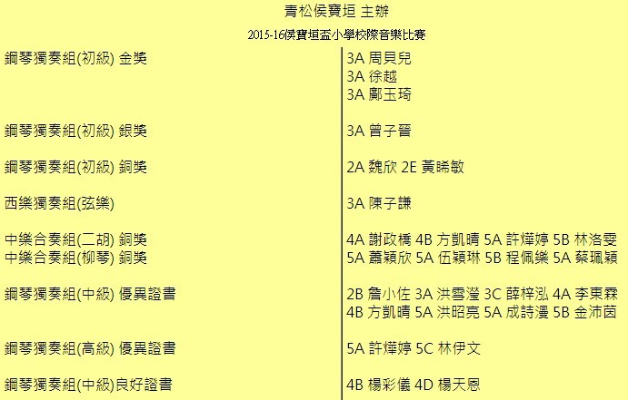 | 鋼琴獨奏組(初級) 銅獎 | ||