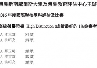 高級榮譽證書 High Distinction (成績最好的1%參賽者)