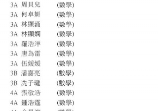 4A 李東霖 (科學) 5A 洪昭亮 (科學) 3A 鄺玉琦 (數學) 4A 李東霖 (數學) 5A 洪昭亮 (數學)