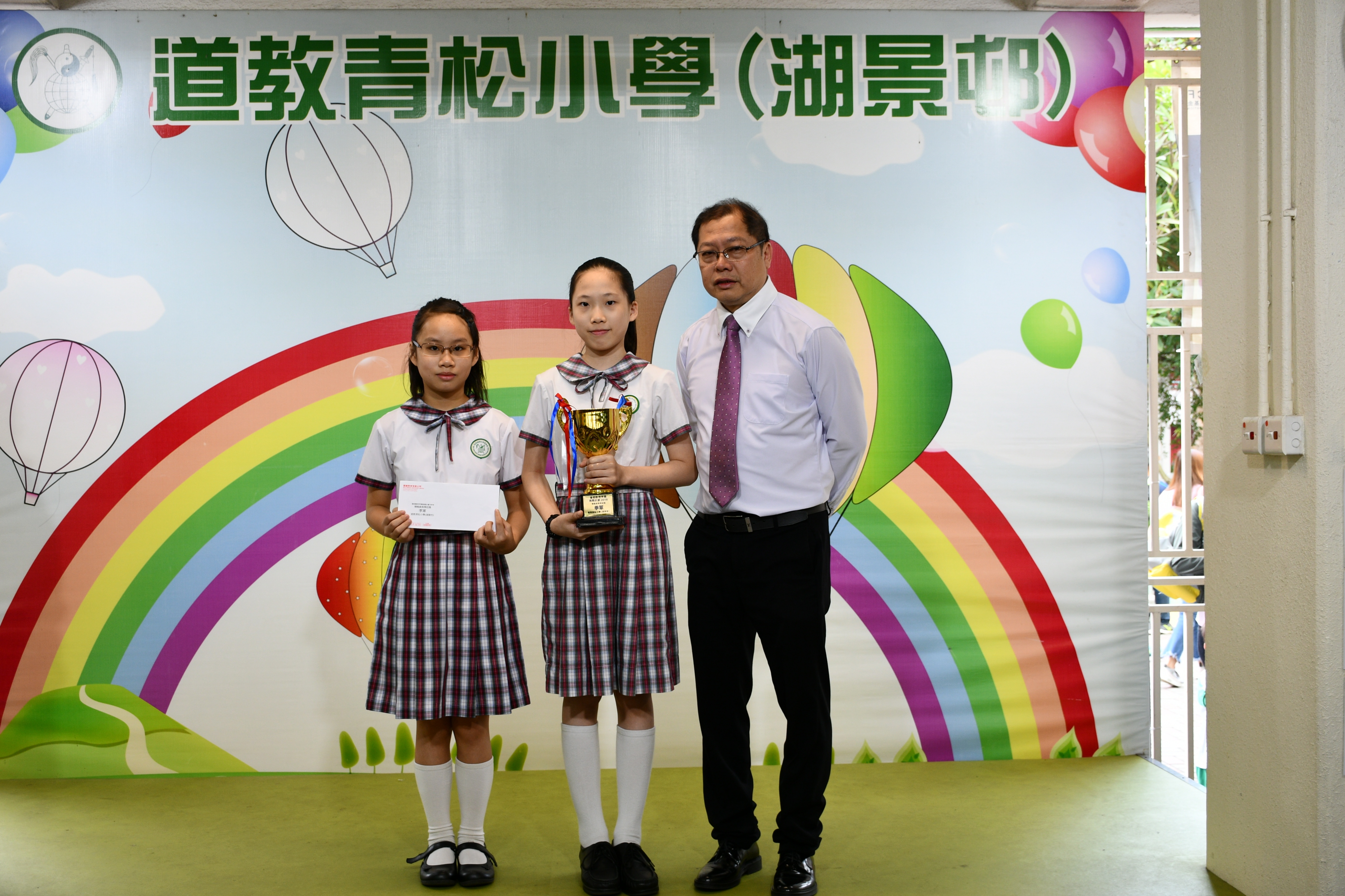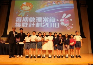 早前同學在暑假期間參加由香港教育城及兒童的科學主辦之暑期數理常識挑戰計劃2018,獲頒積極參與學校奬 - 季軍,當日大會頒發奬盃一隻及書券200元,並由6A 鄒錦盈及鄺玉琦代表領獎。