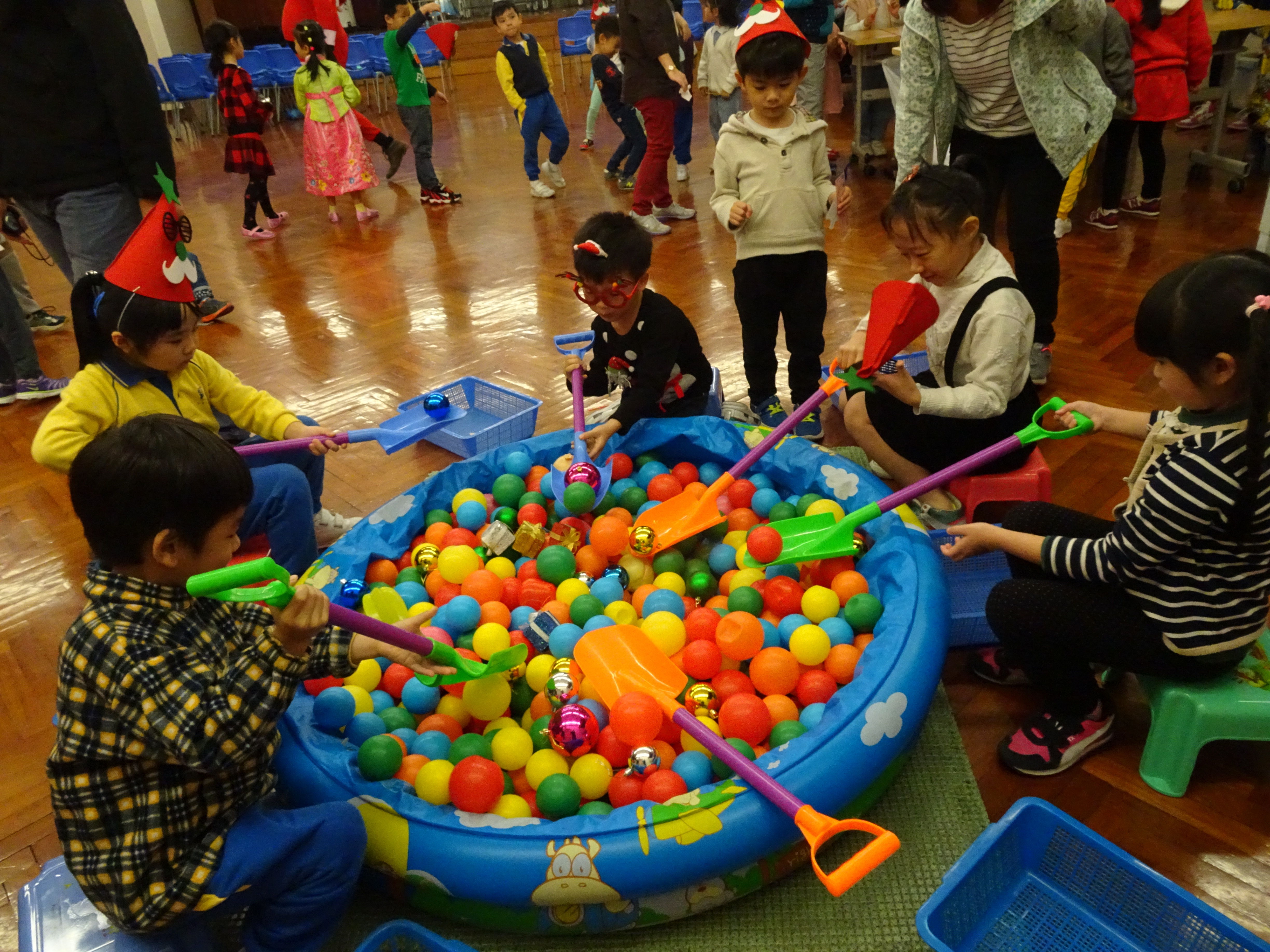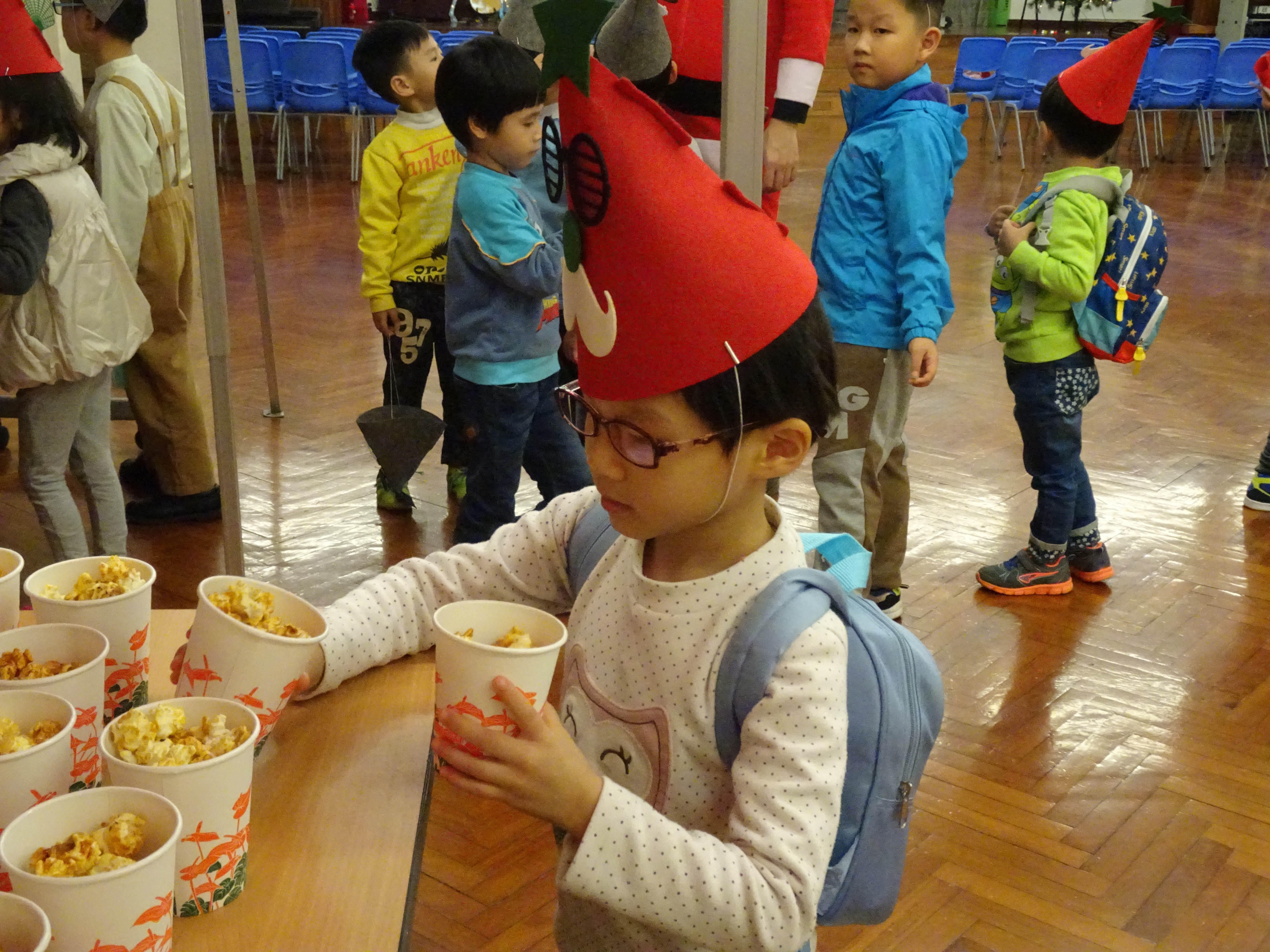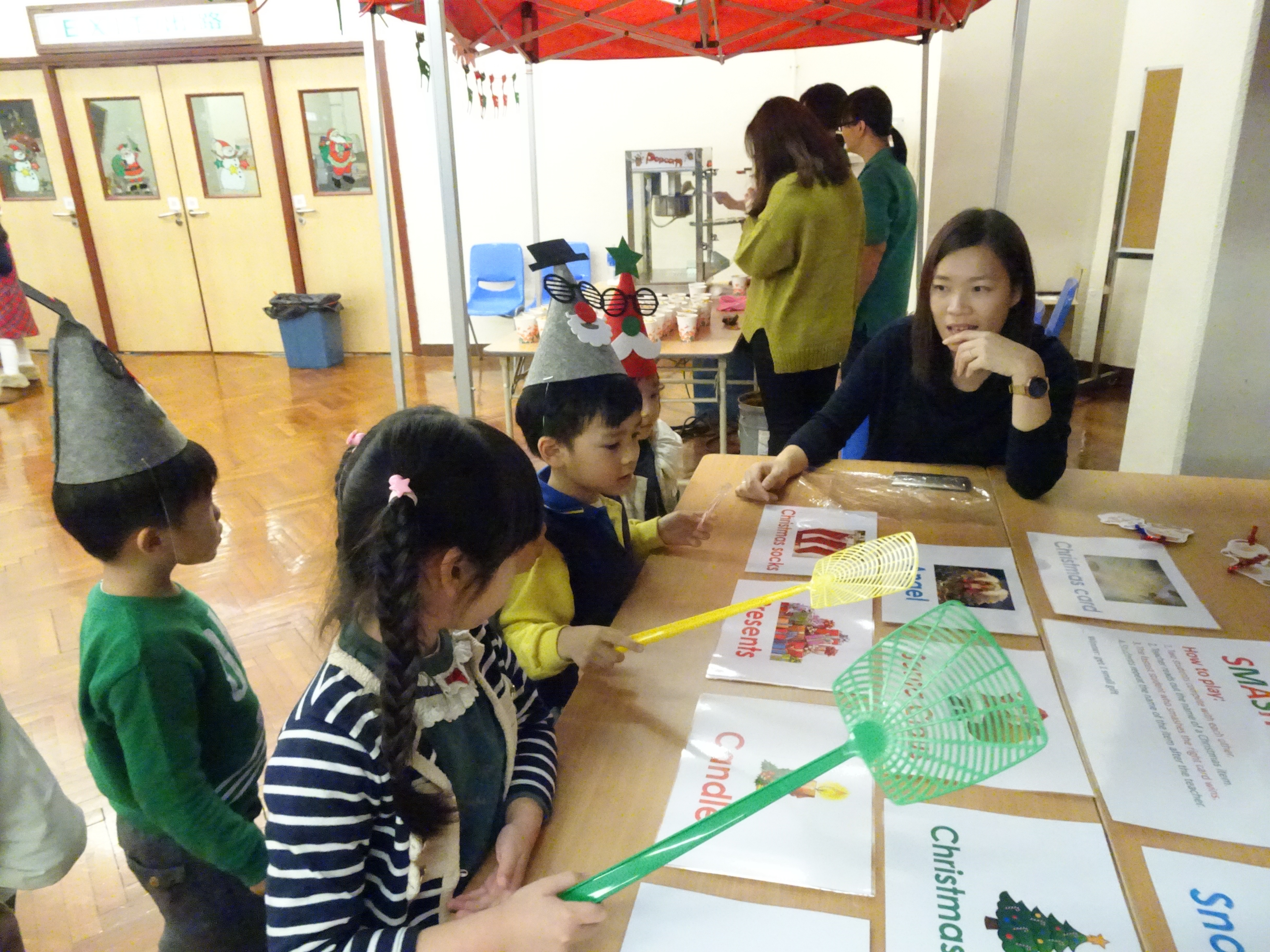 本校邀請了一班幼稚園學生到校參加我們的聖誕英文活動,他們一起聽故事、唱聖誕歌和玩攤位遊戲,