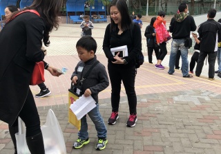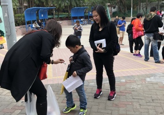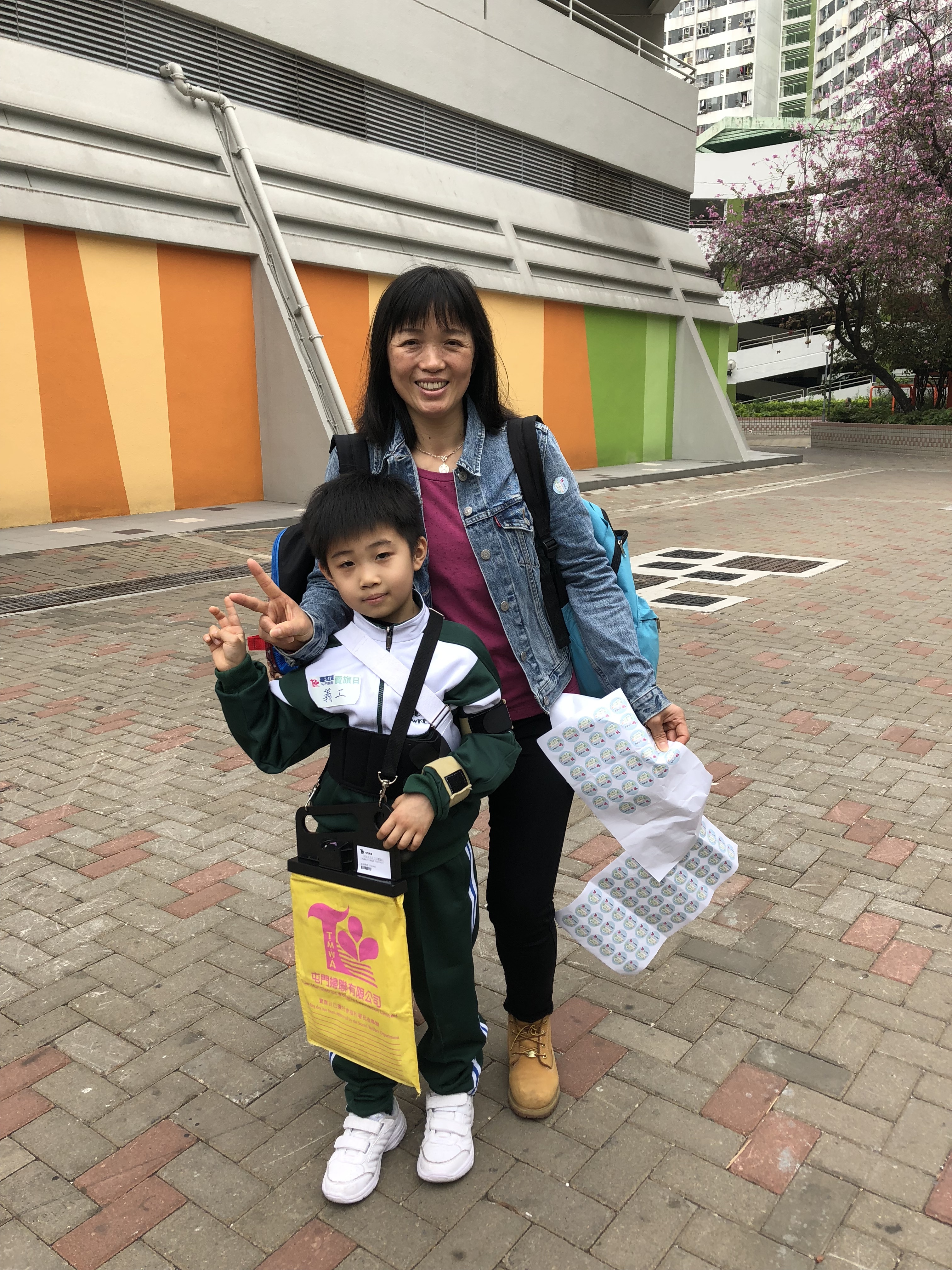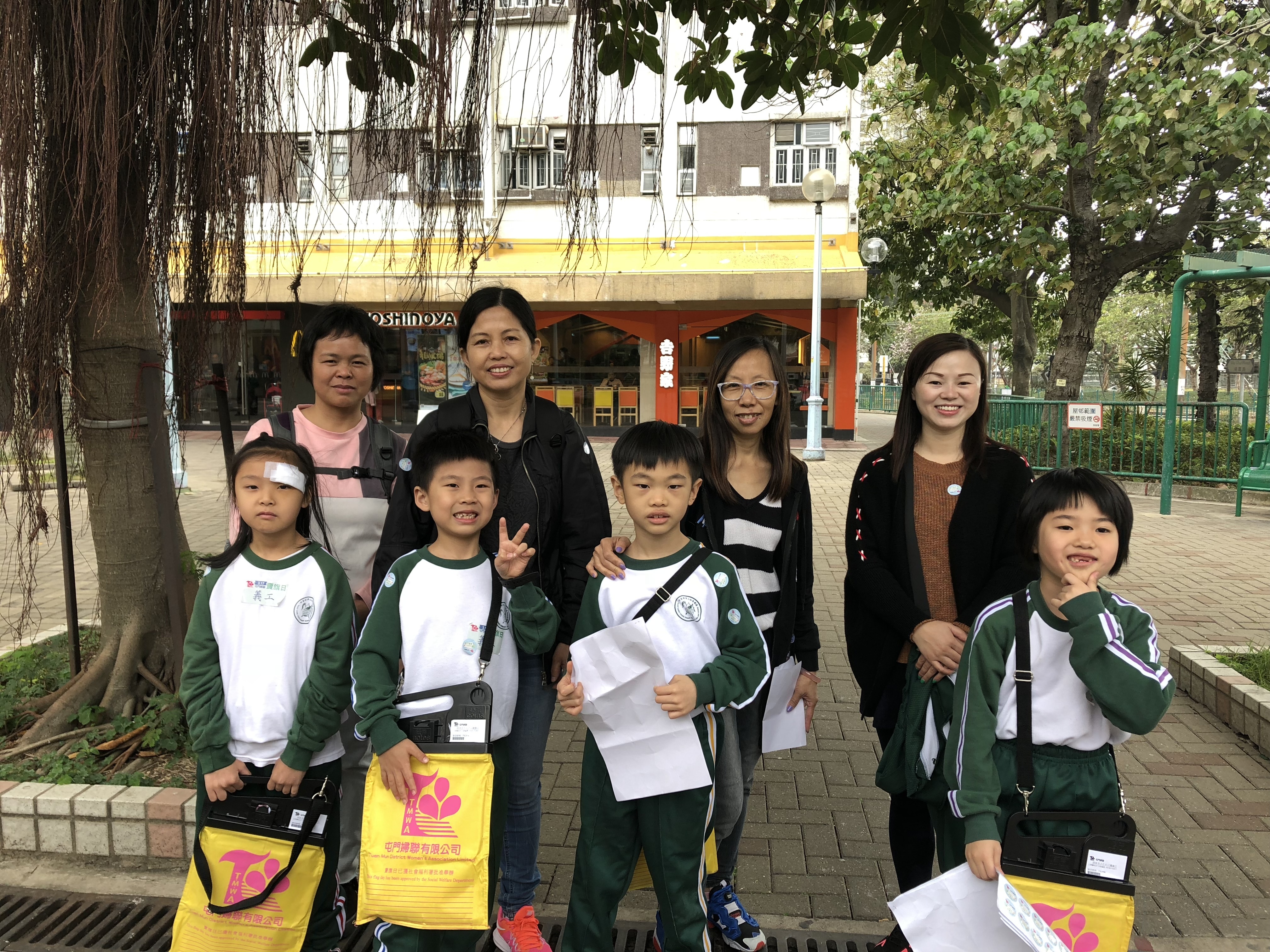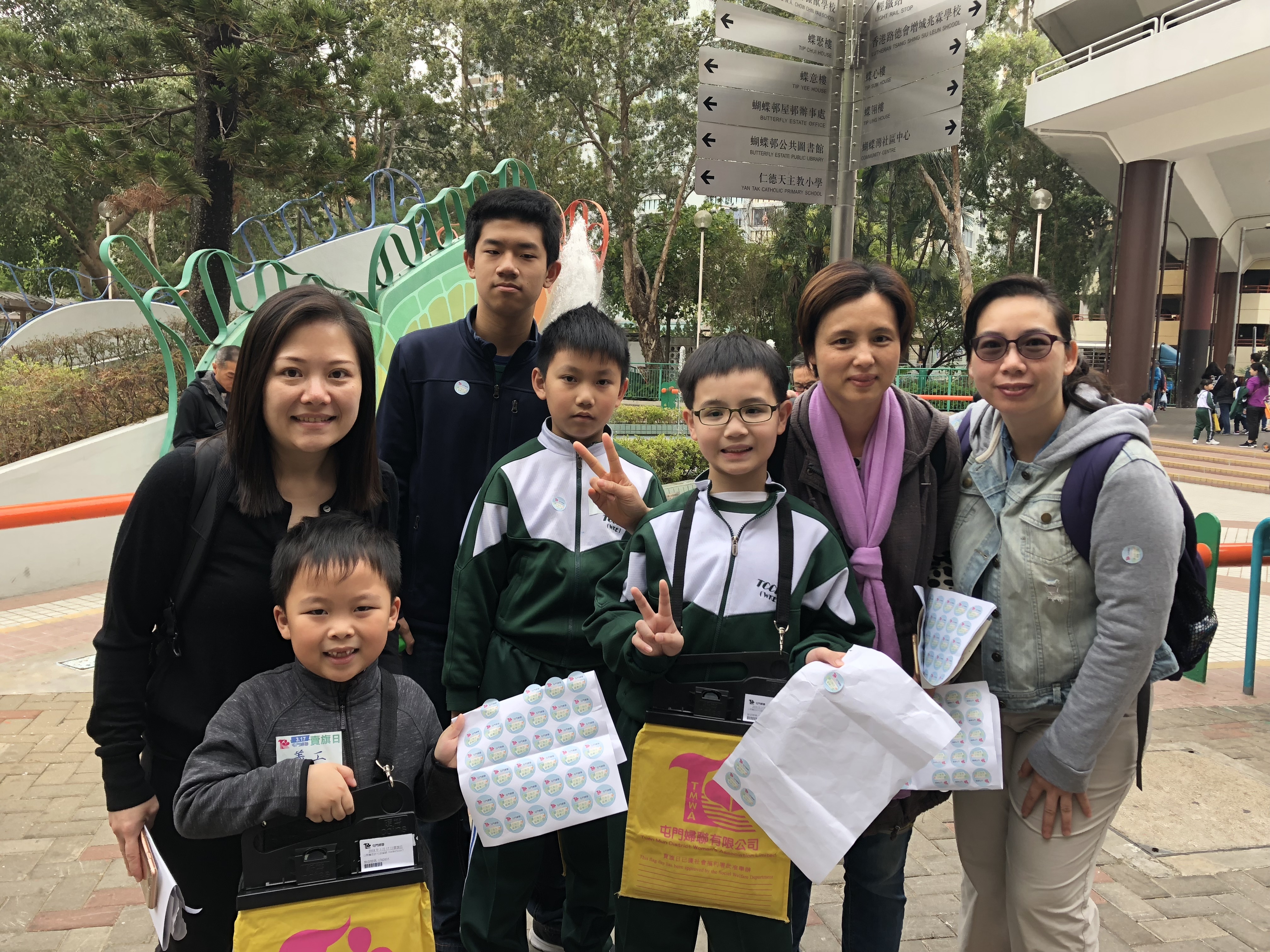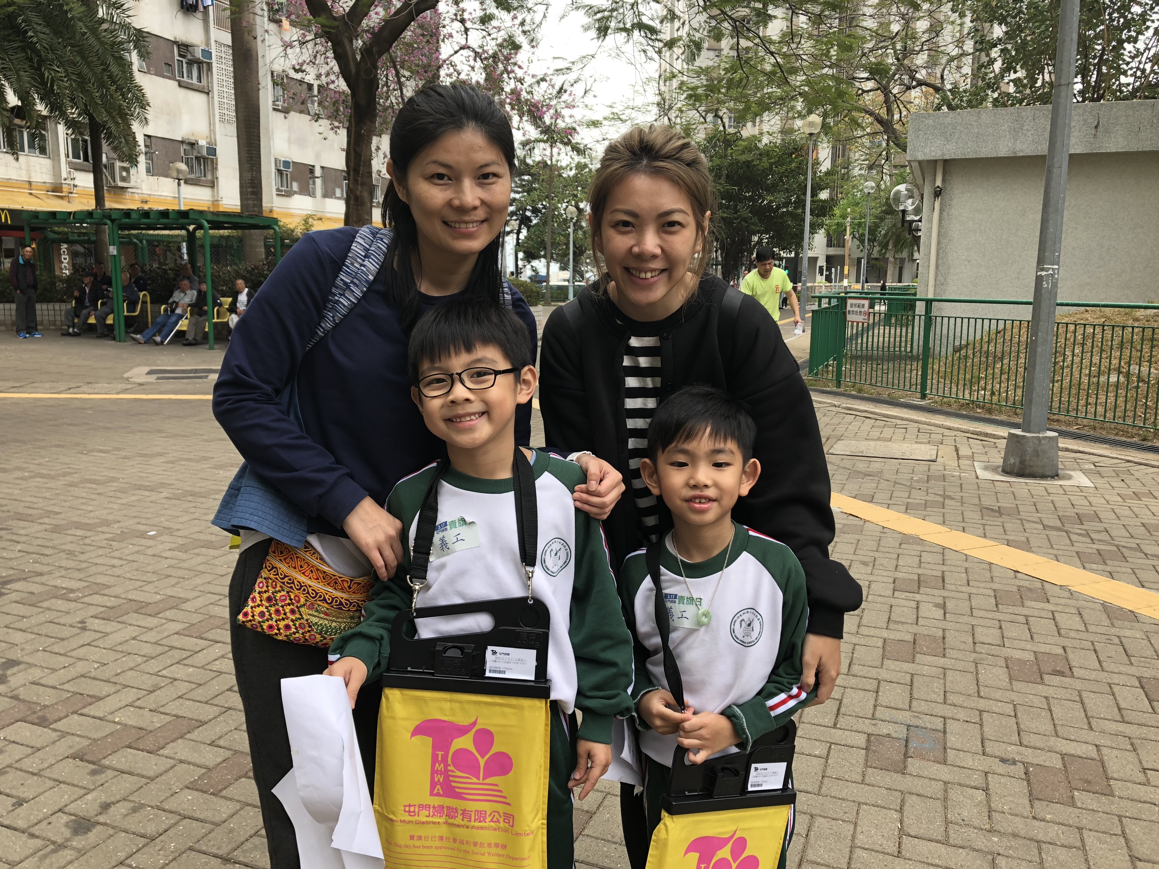 約80對親子身體力行,不怕炎熱的天氣,積極參加賣旗活動,受助機構「屯門婦聯」對家長及學生的熱心公益表示感謝。