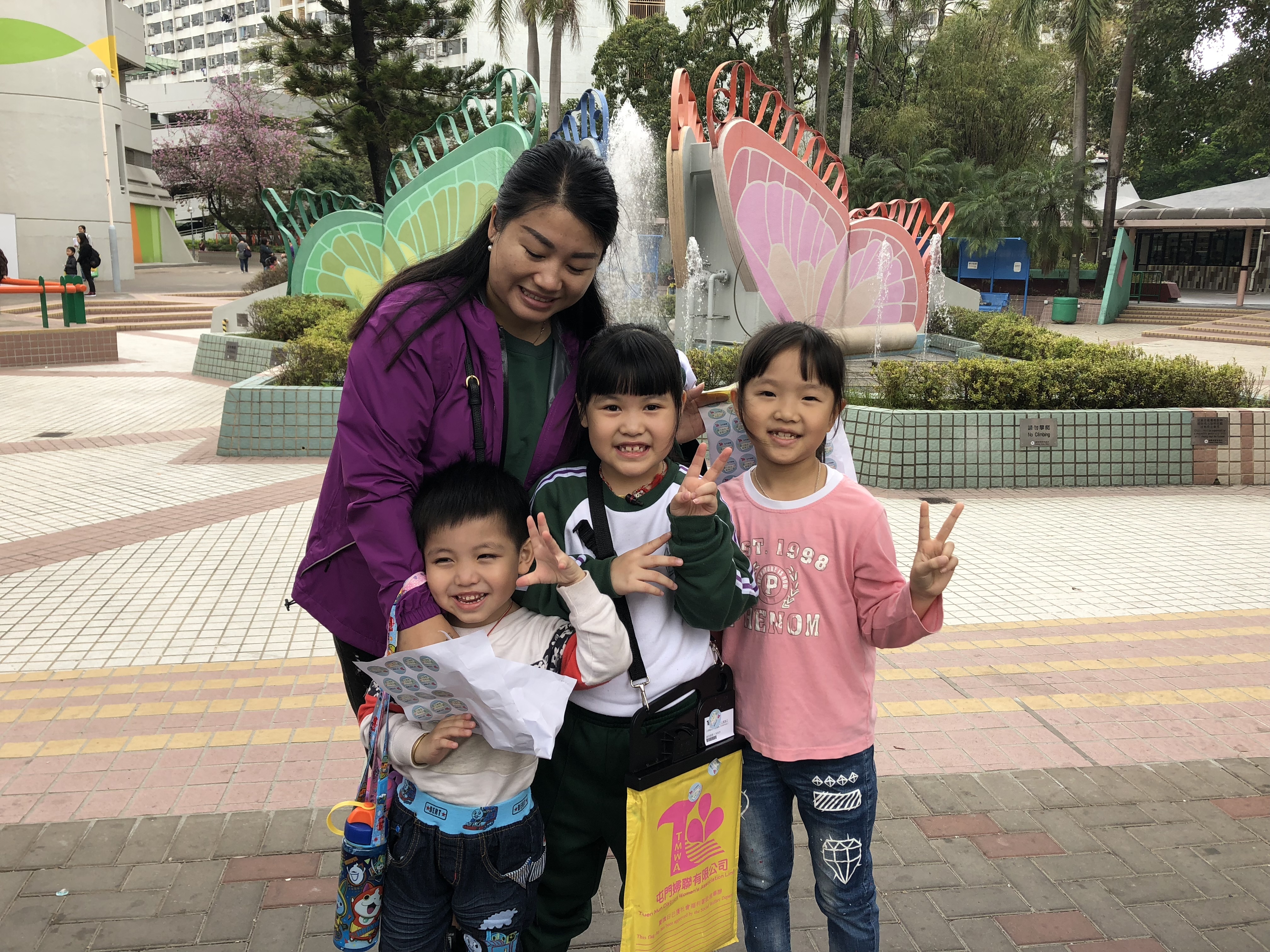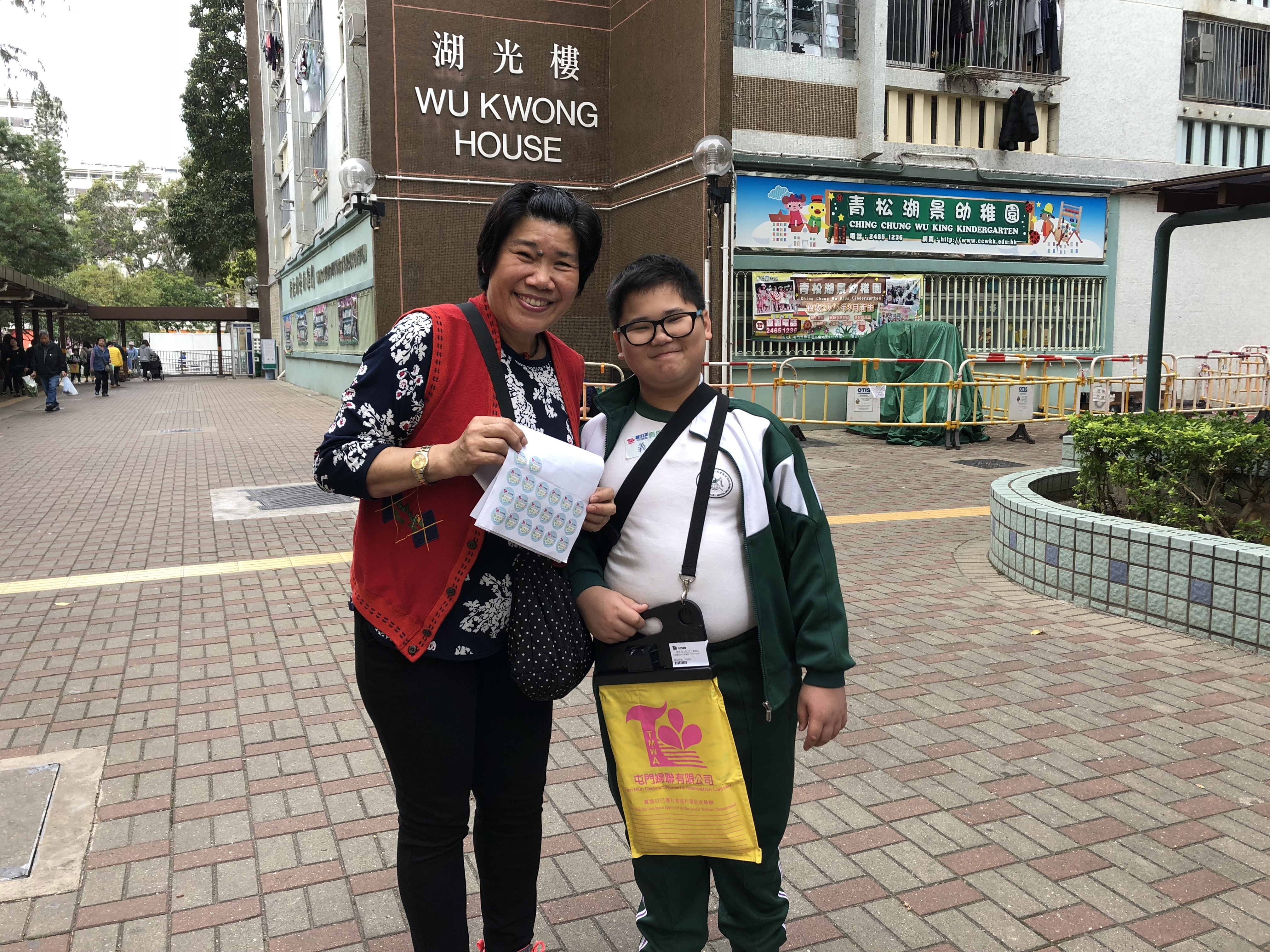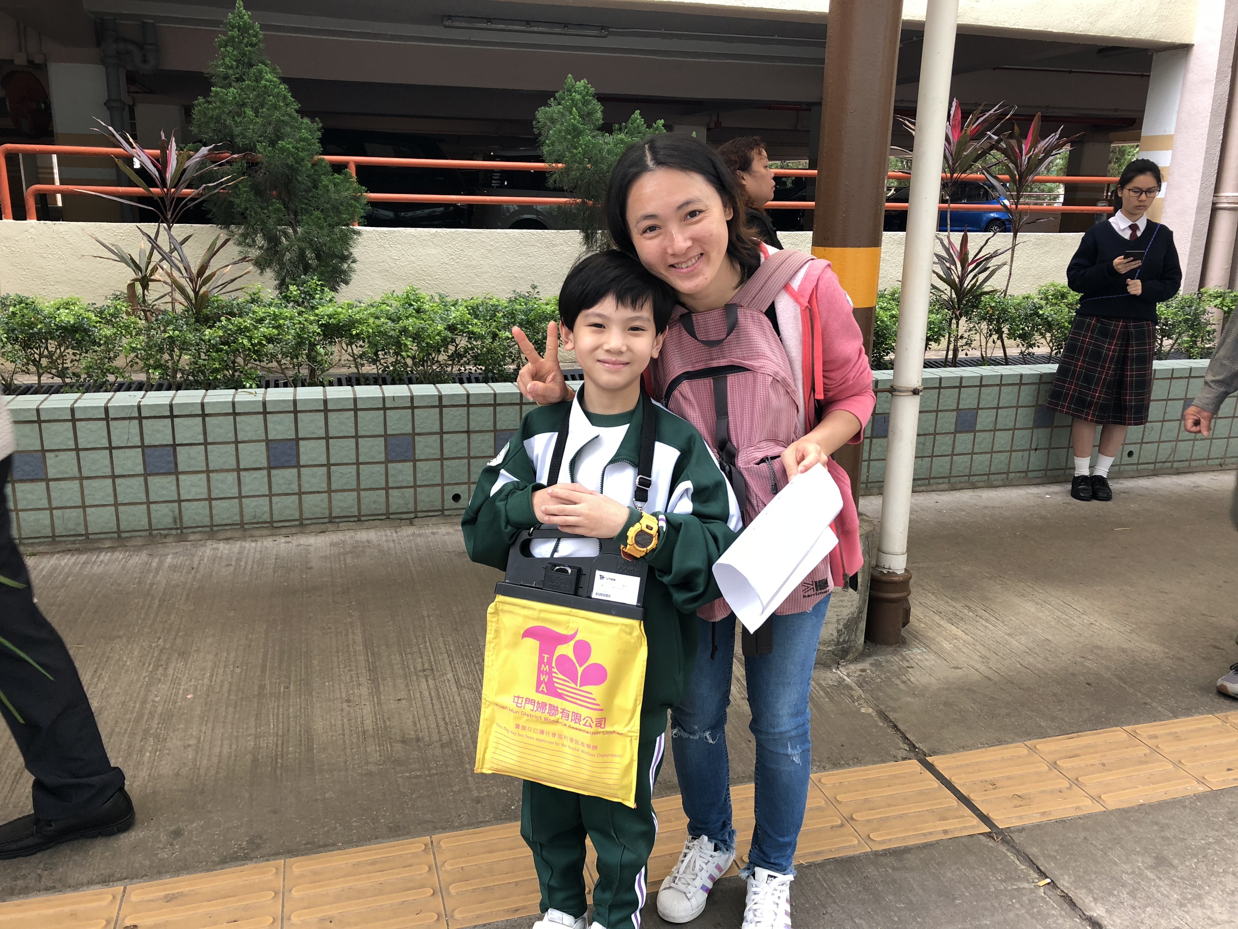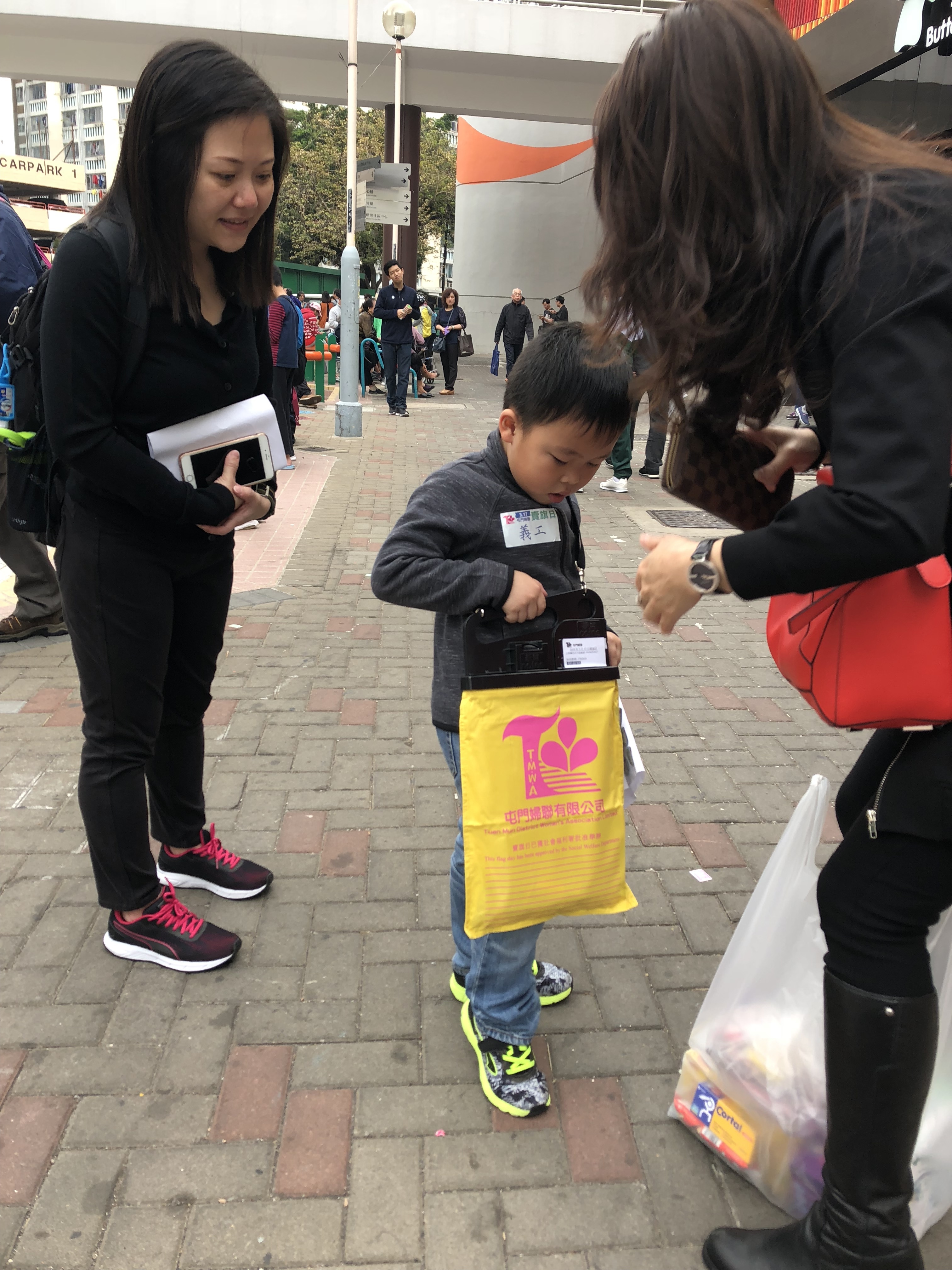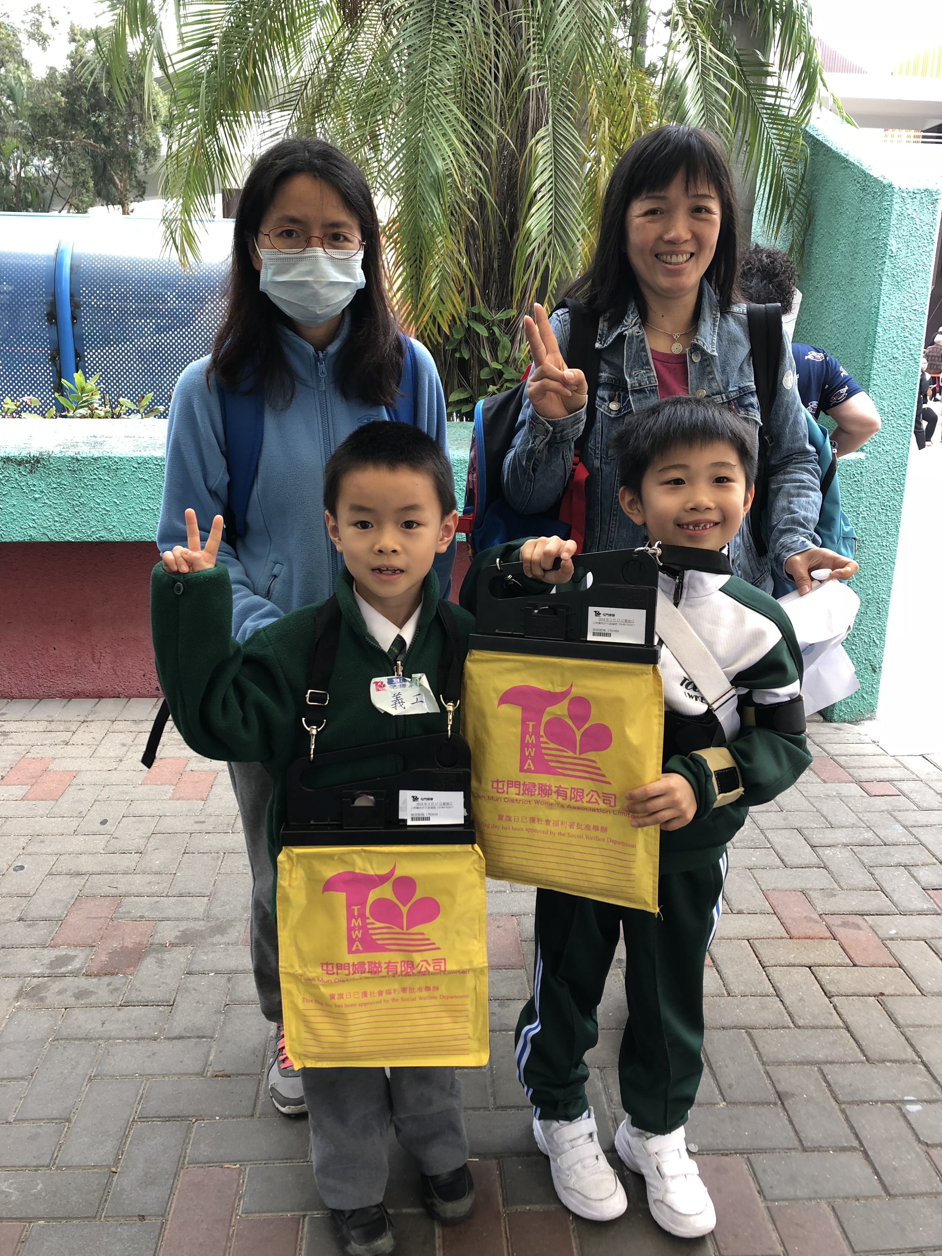 約80對親子身體力行,不怕炎熱的天氣,積極參加賣旗活動,受助機構「屯門婦聯」對家長及學生的熱心公益表示感謝。