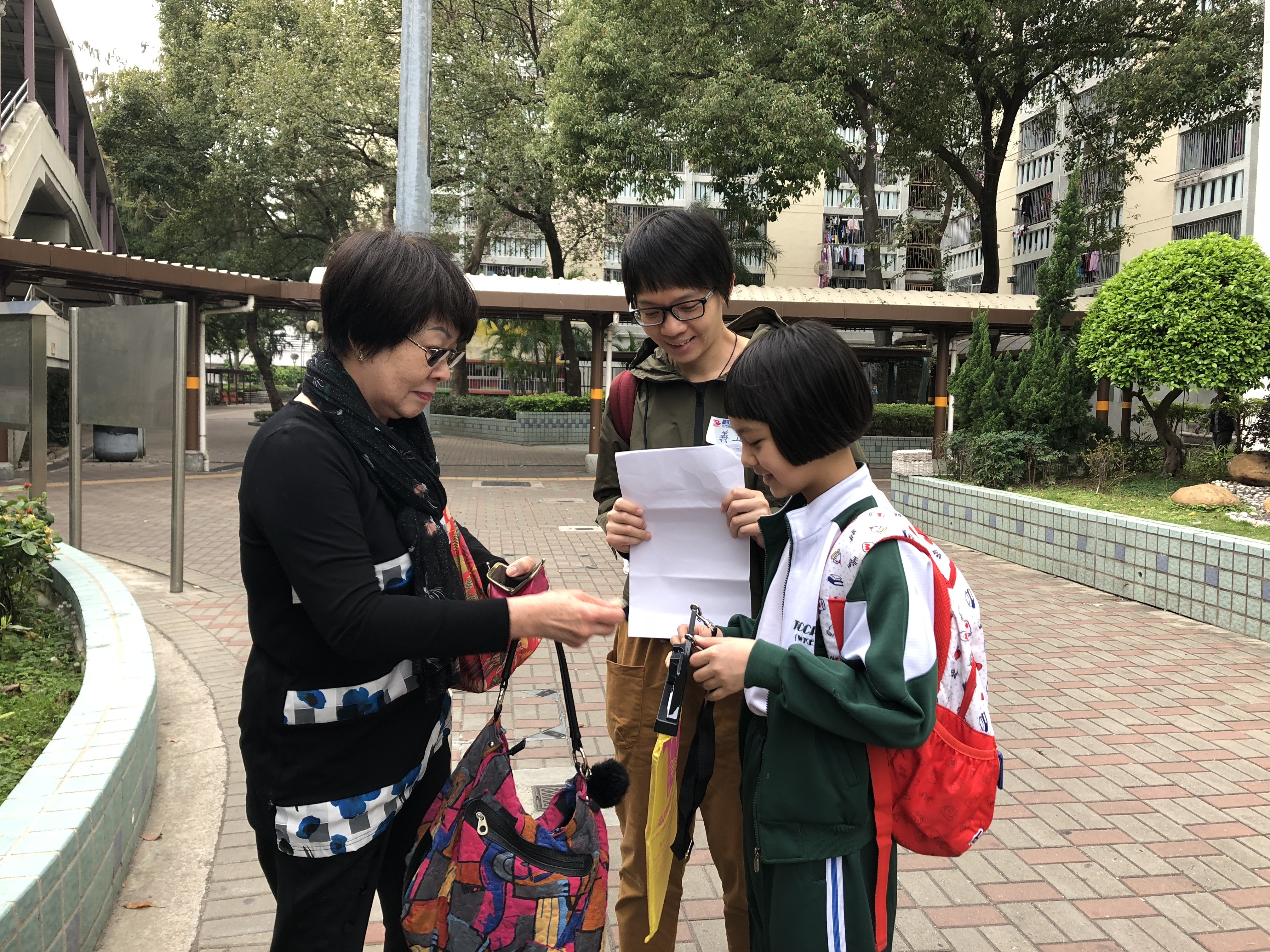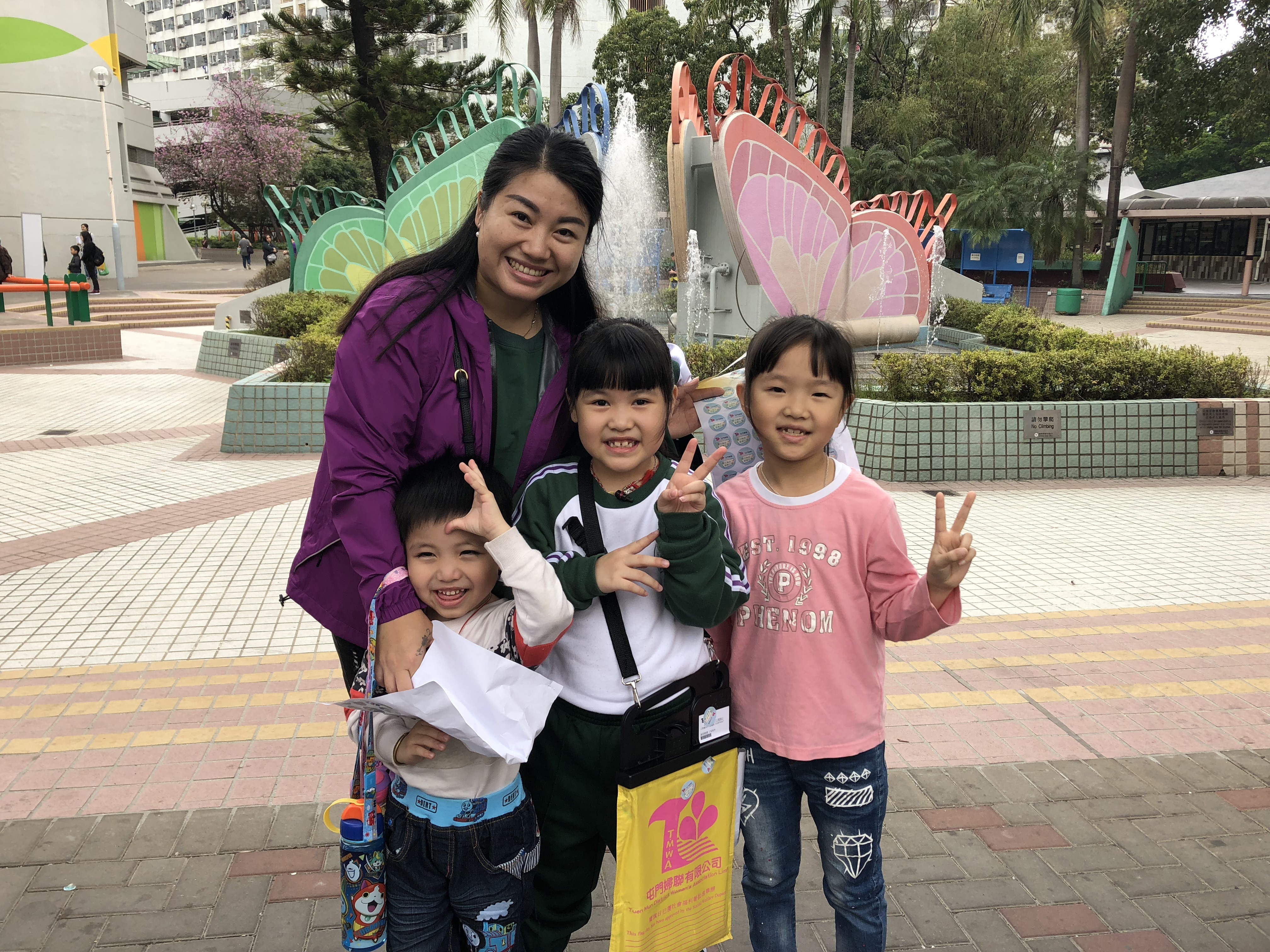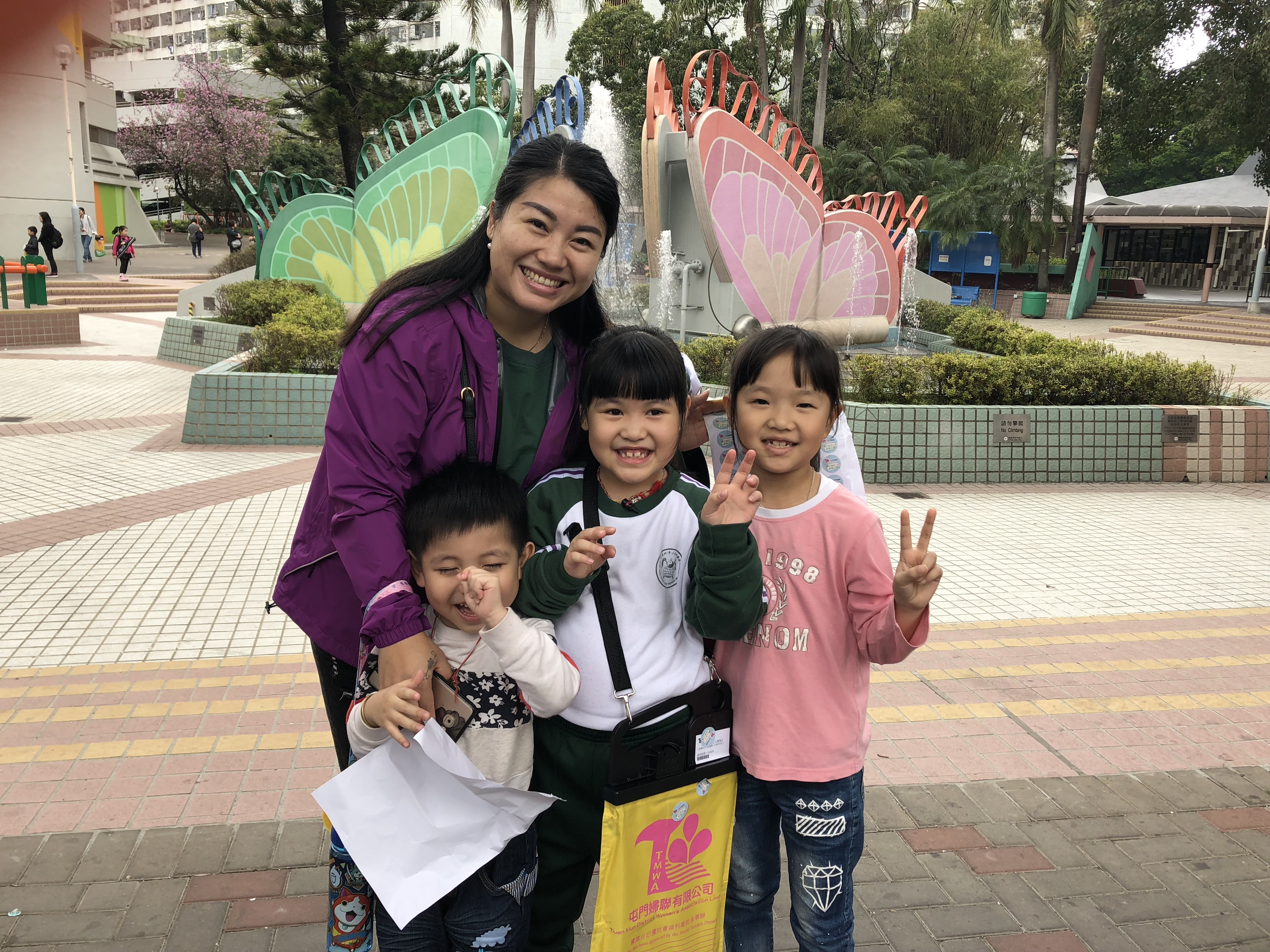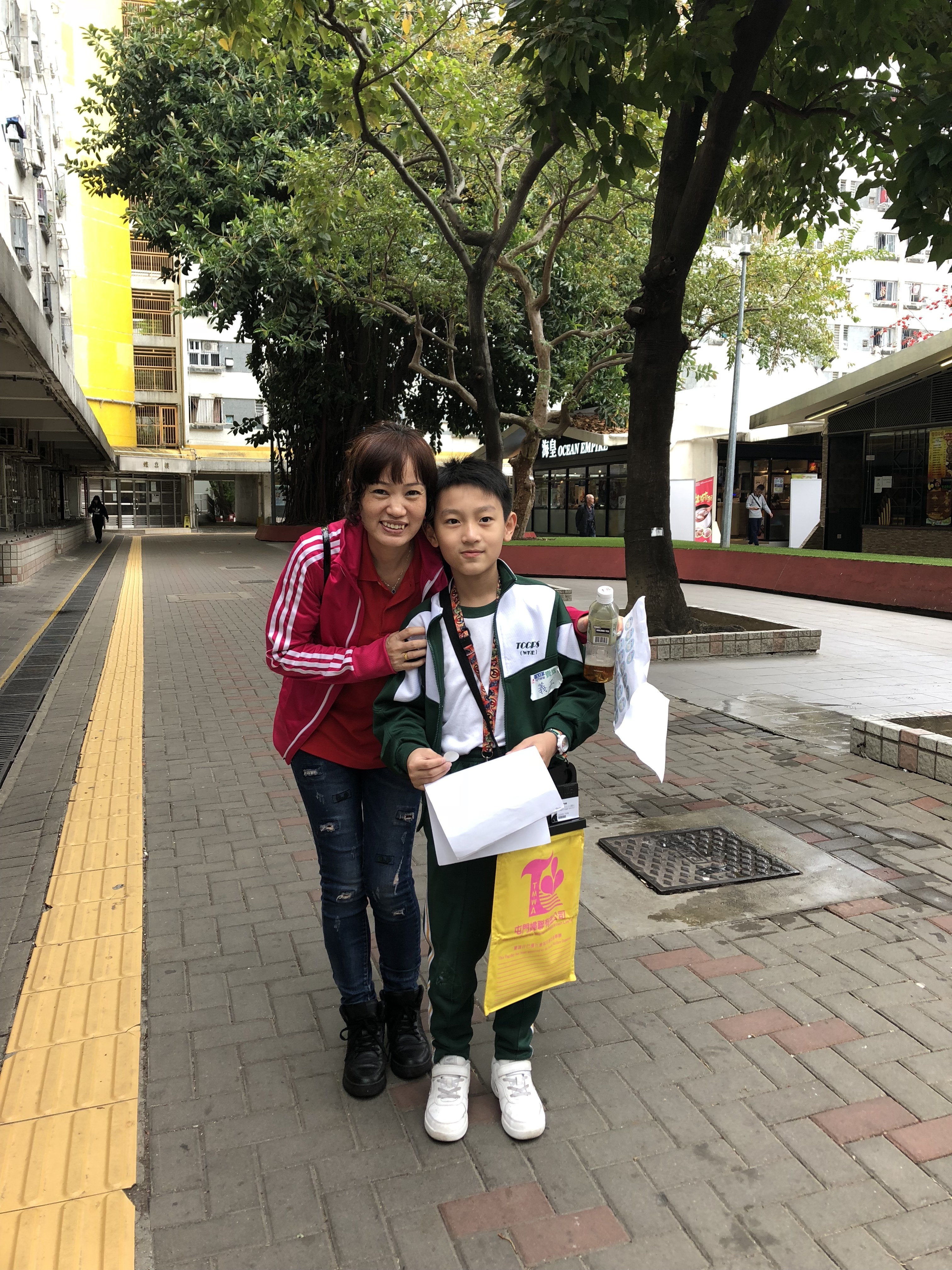 約80對親子身體力行,不怕炎熱的天氣,積極參加賣旗活動,受助機構「屯門婦聯」對家長及學生的熱心公益表示感謝。