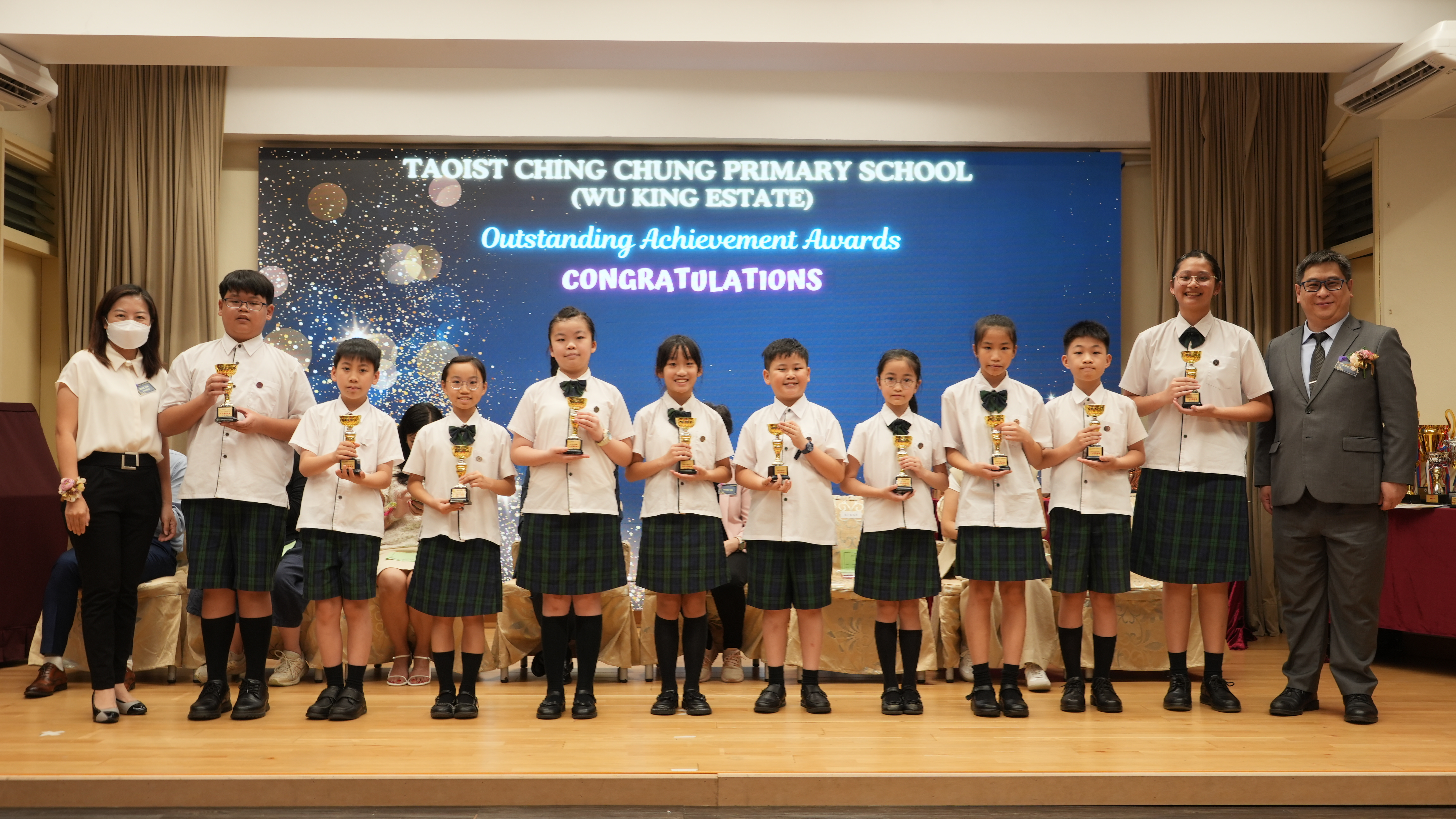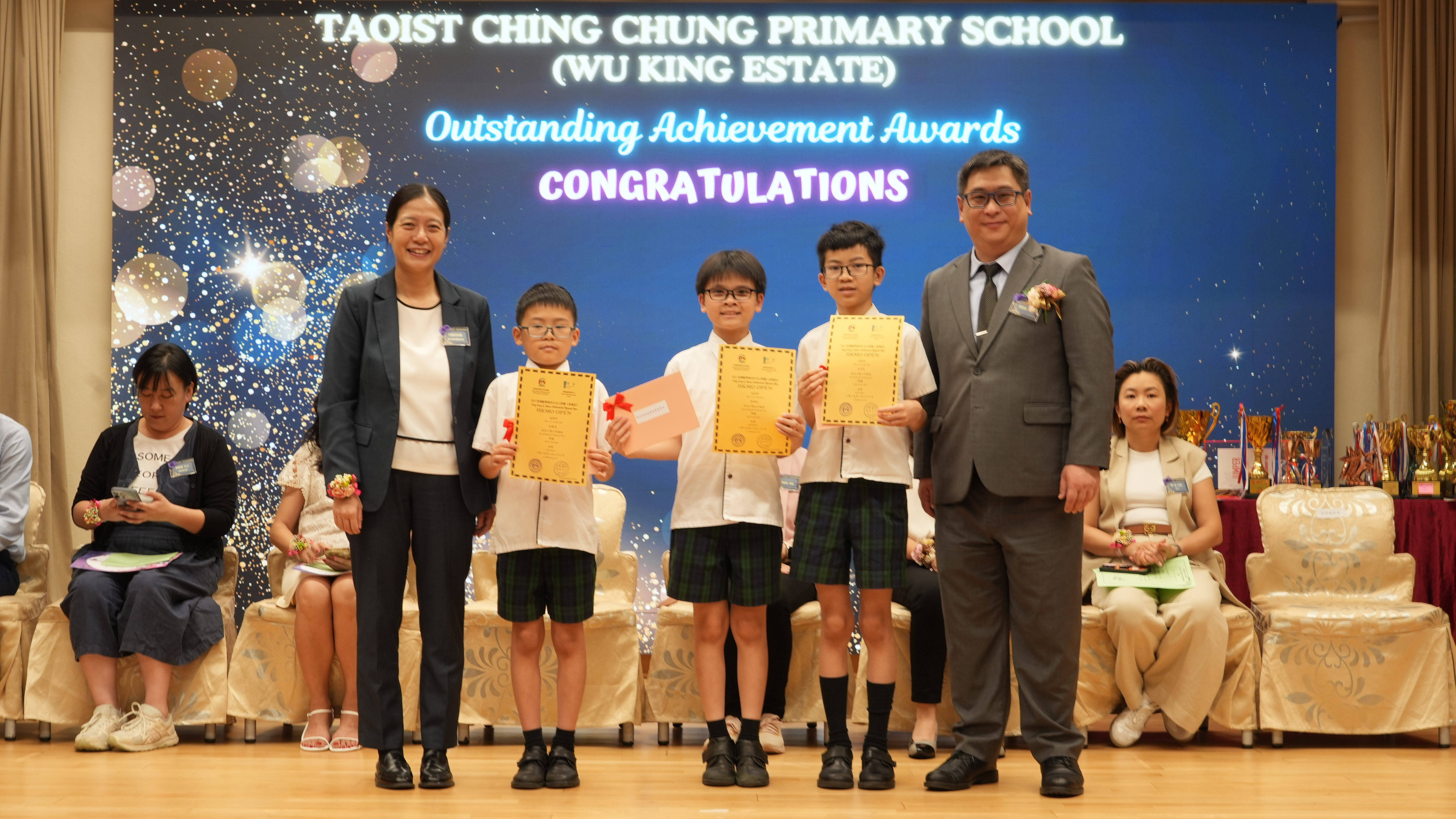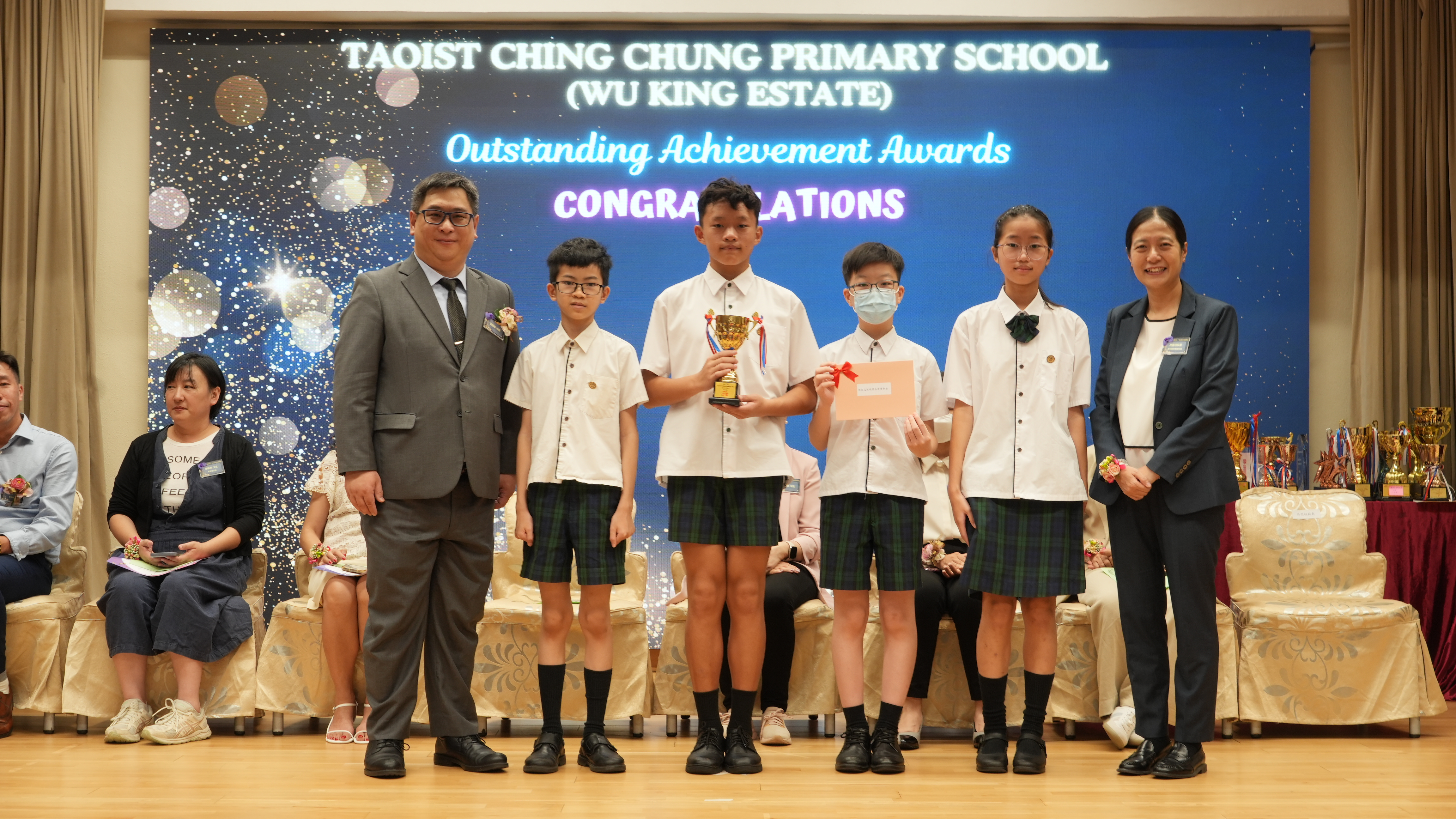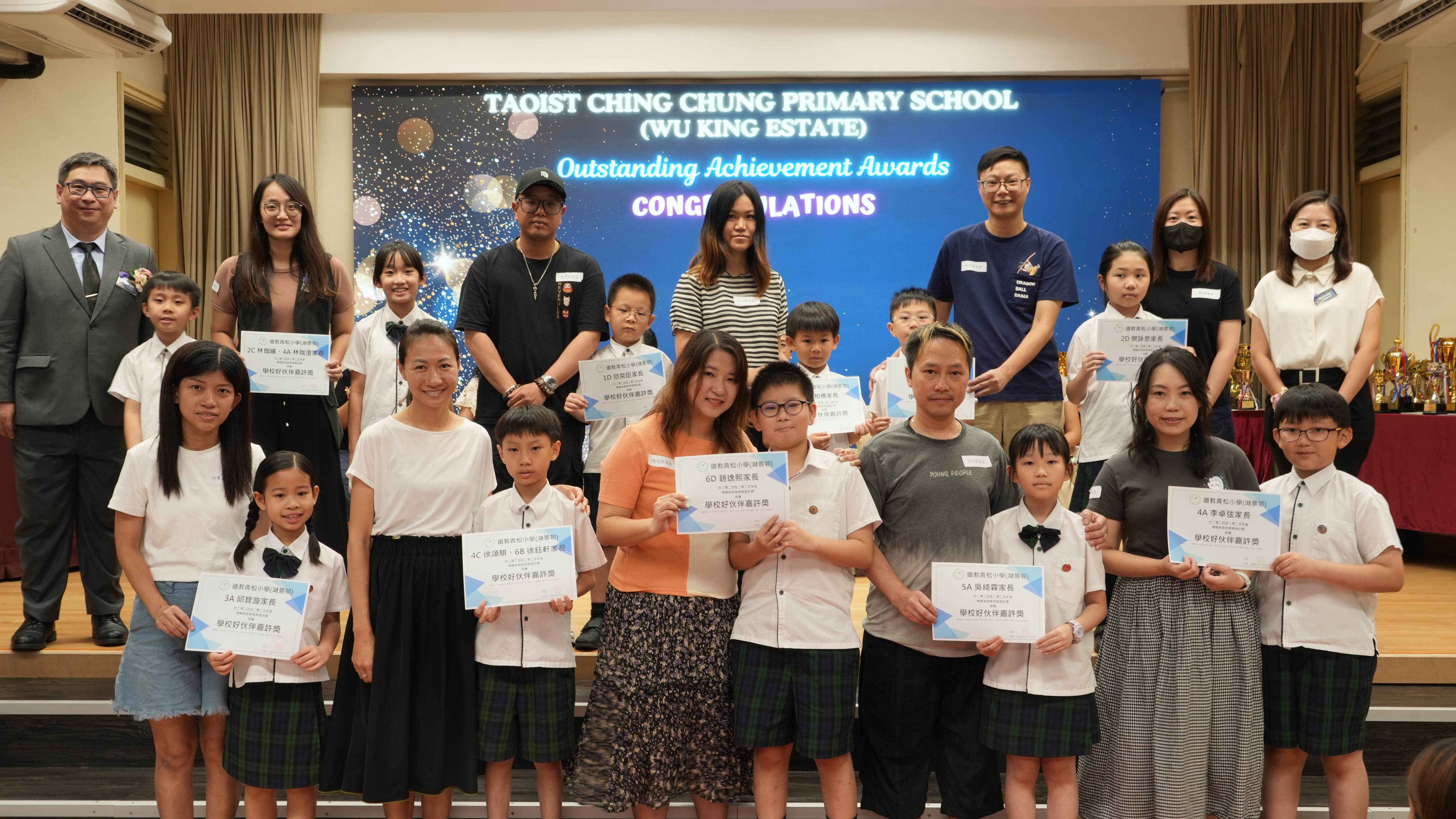 本年度傑出成就頒獎典禮,由校監趙淑儀女士、辦學團體校董趙卓敏女士、辦學團體校董方嘉琪女士、家長校董陳栩淨女士、校友校董凌紹球先生、家教會主席承曉燕女士、校友韓冰女士為頒獎嘉賓。是次典禮頒獎項目高達一百多項,再次祝賀獲獎的同學和家長,期望同學繼續努力,超越自我,再創高峰!