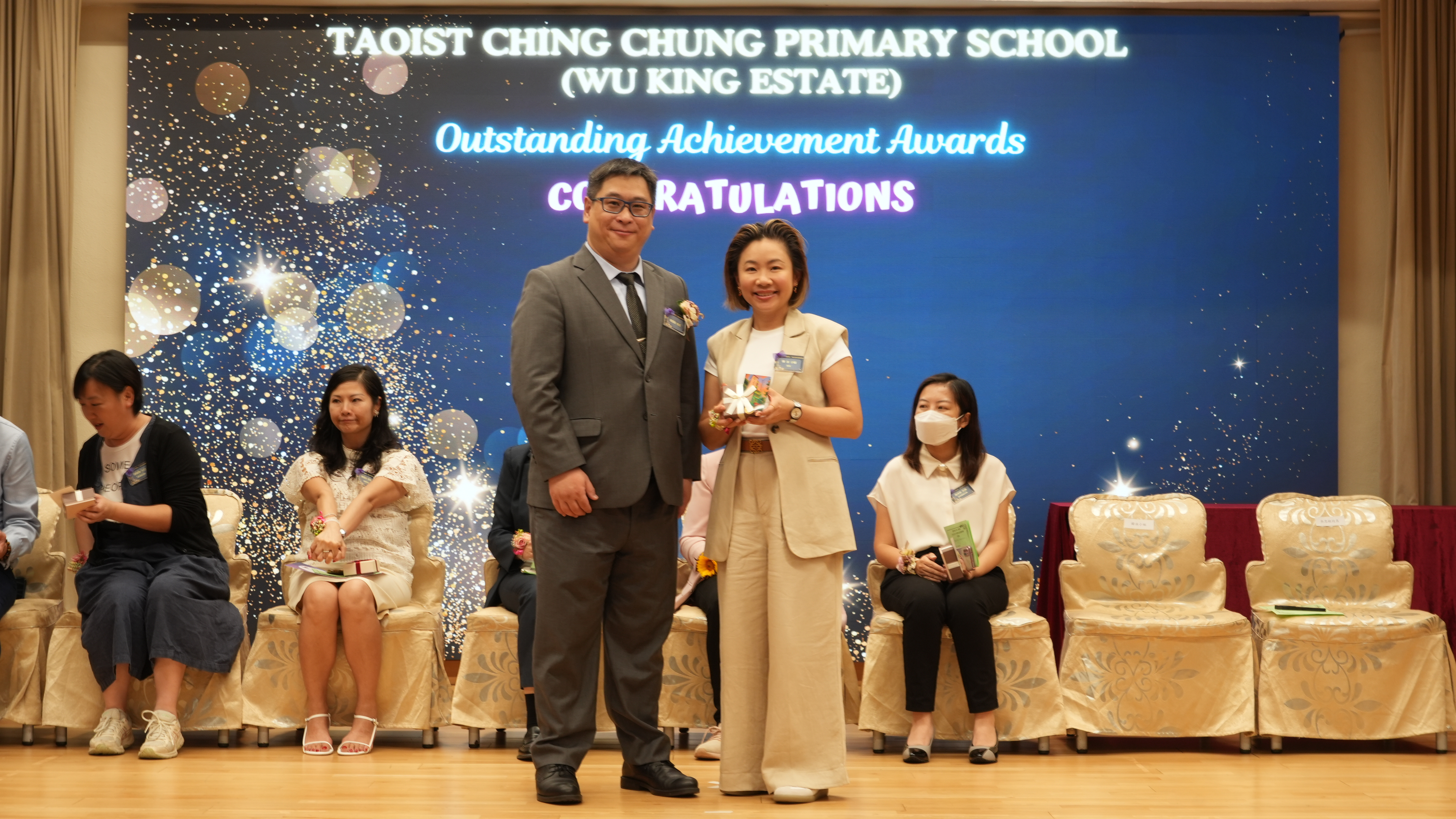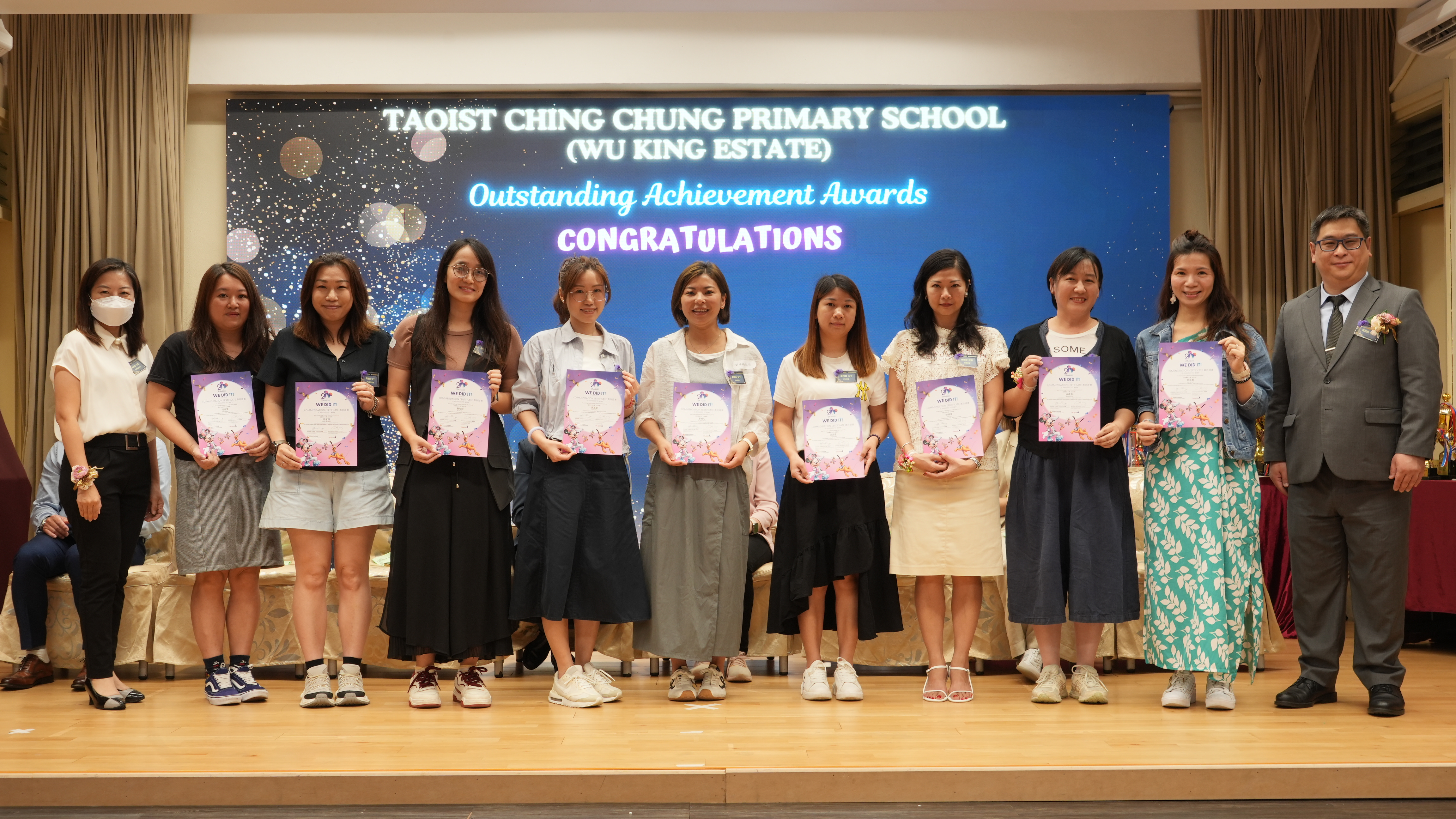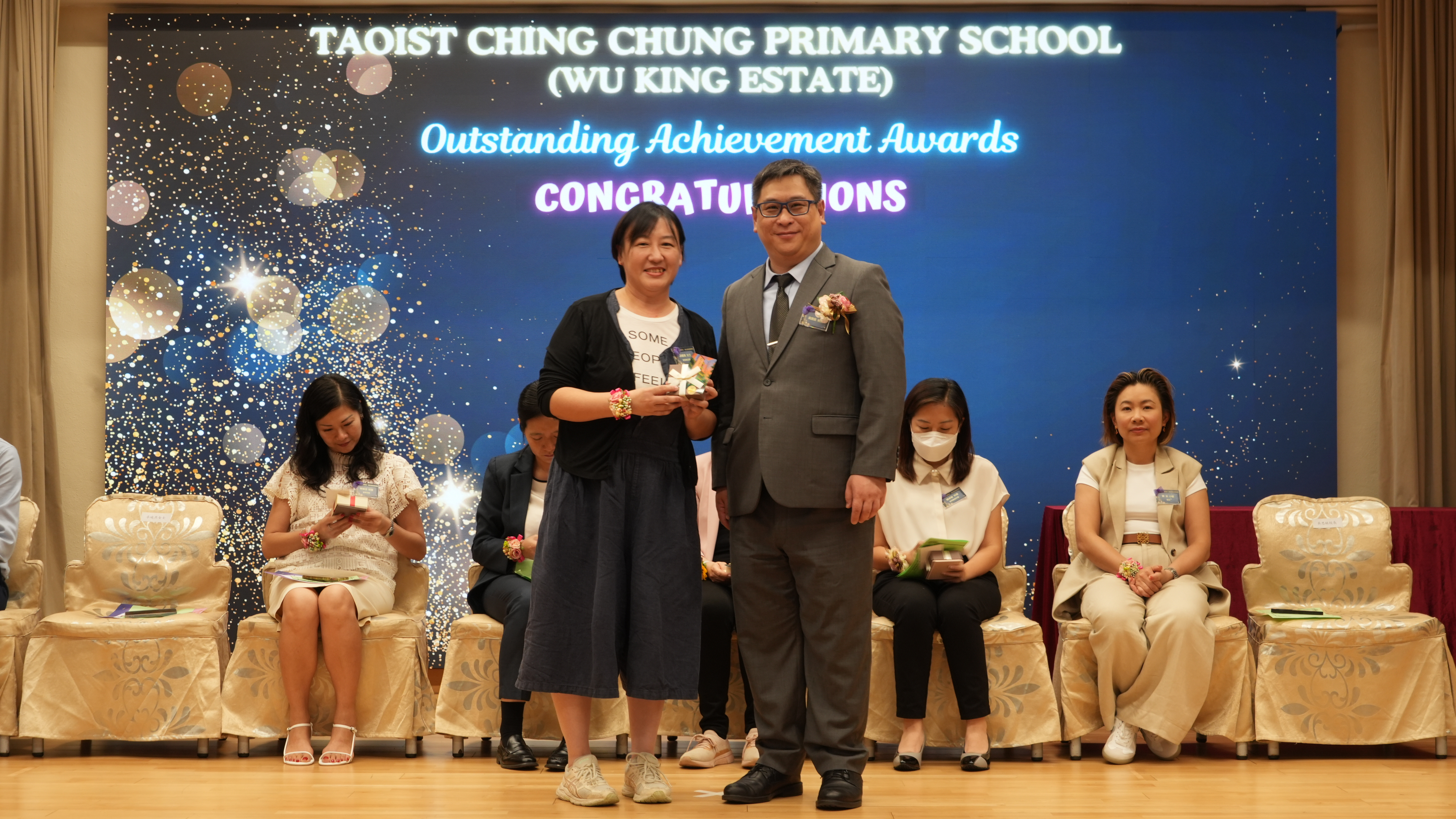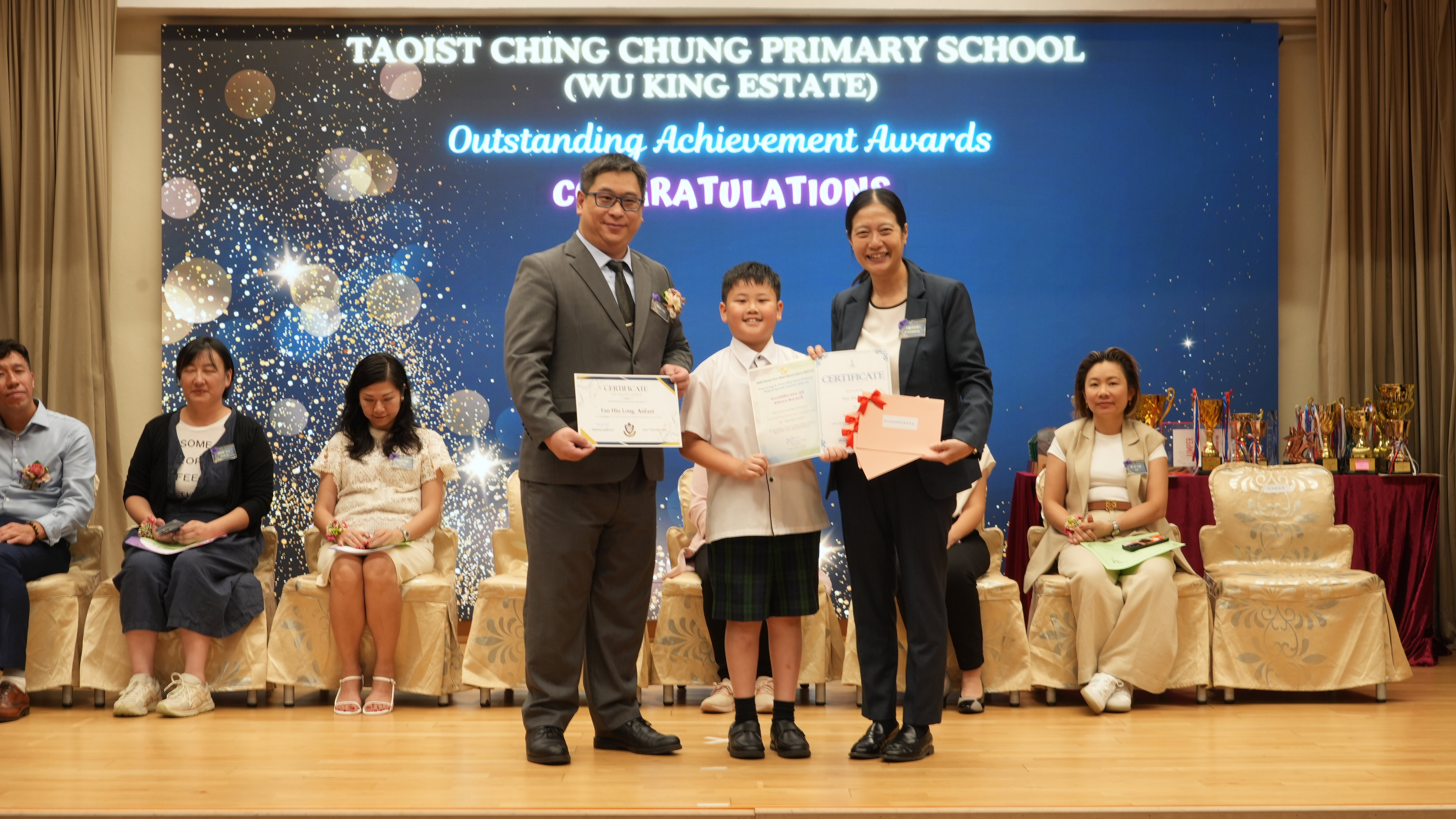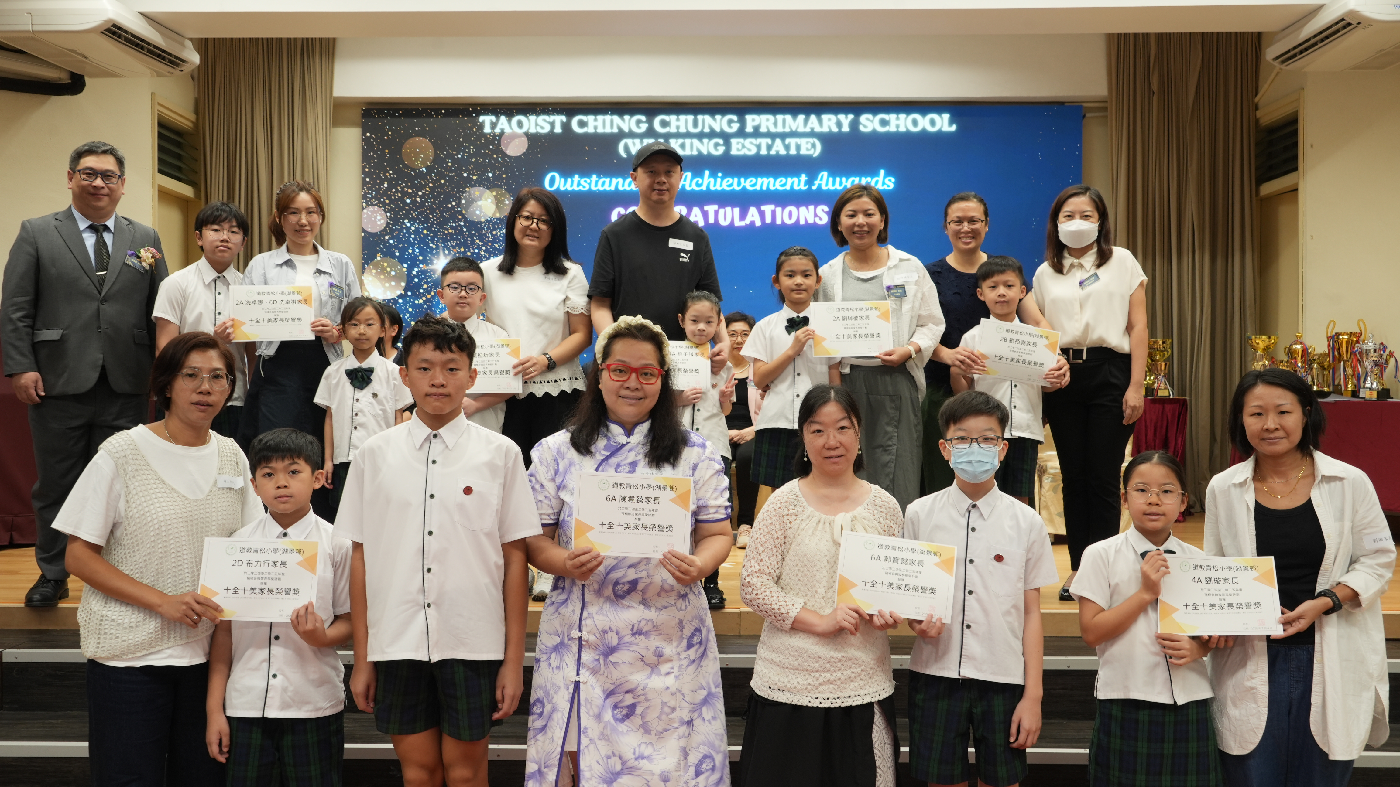 本年度傑出成就頒獎典禮,由校監趙淑儀女士、辦學團體校董趙卓敏女士、辦學團體校董方嘉琪女士、家長校董陳栩淨女士、校友校董凌紹球先生、家教會主席承曉燕女士、校友韓冰女士為頒獎嘉賓。是次典禮頒獎項目高達一百多項,再次祝賀獲獎的同學和家長,期望同學繼續努力,超越自我,再創高峰!