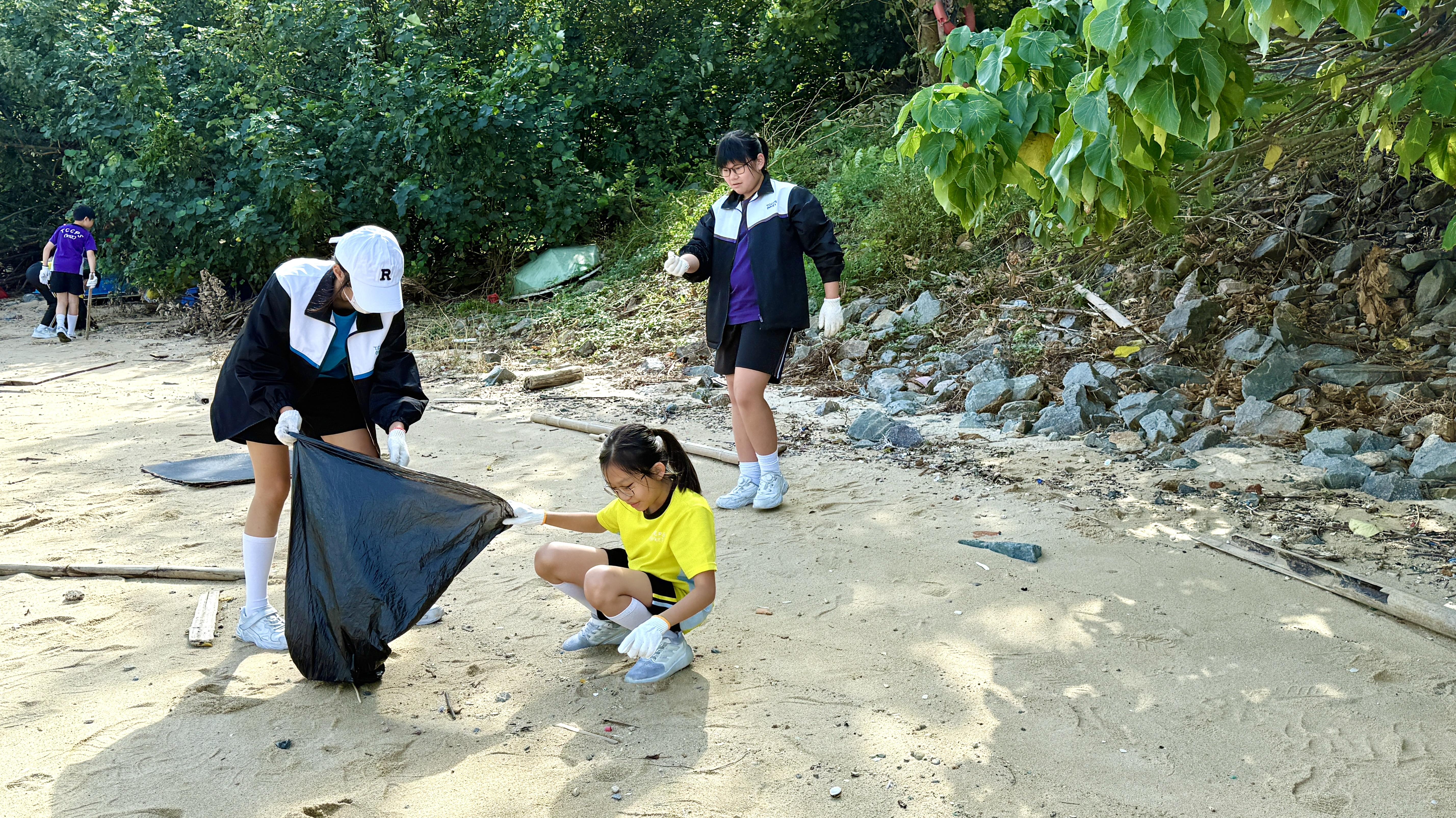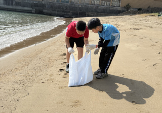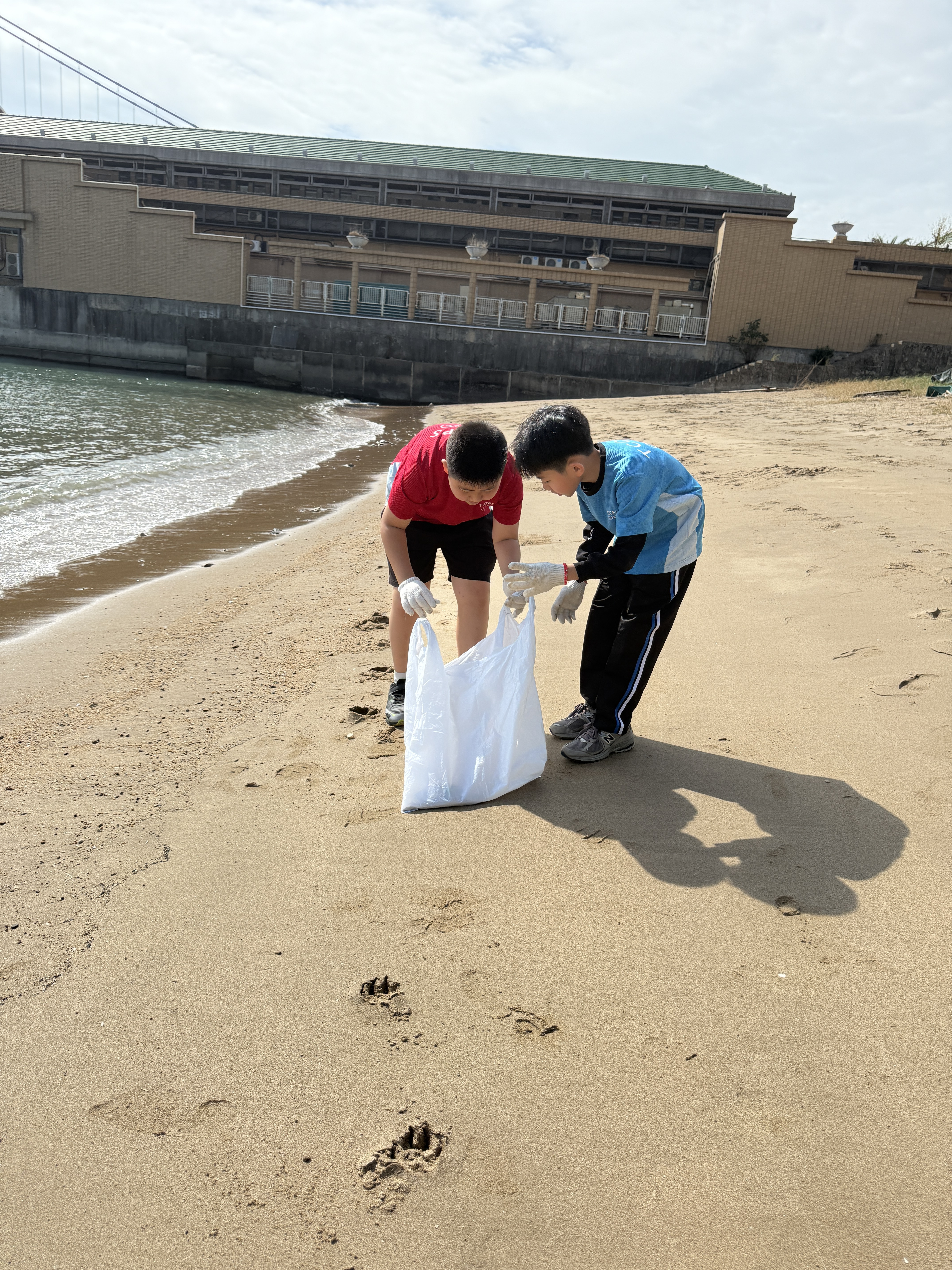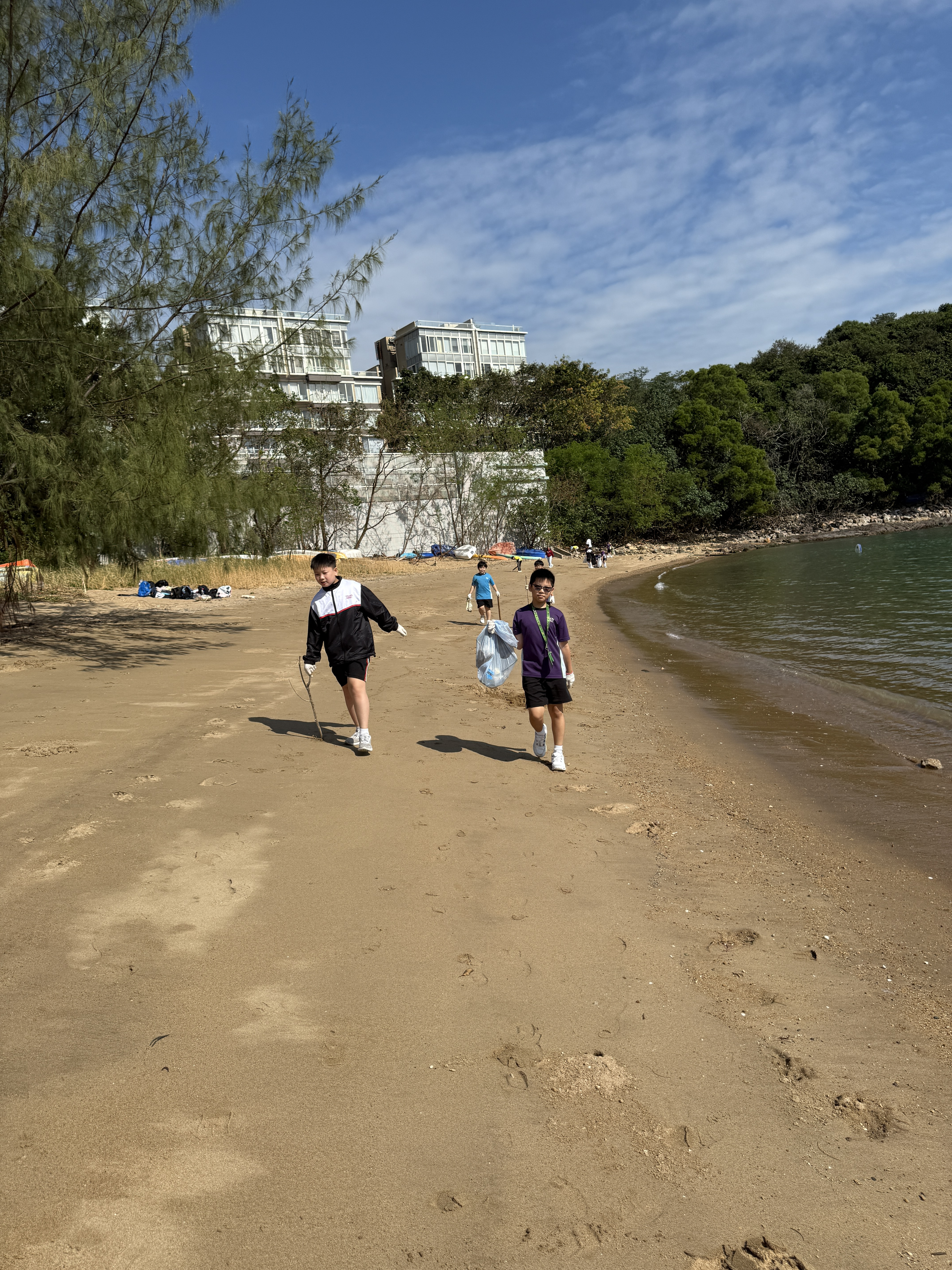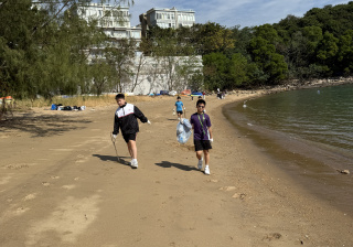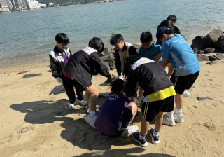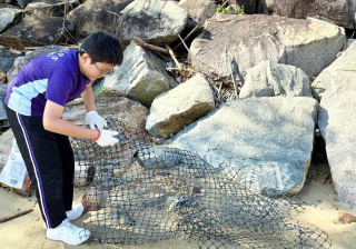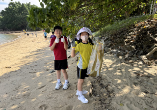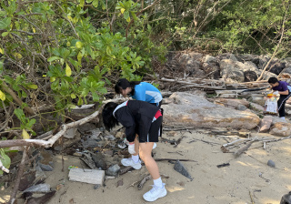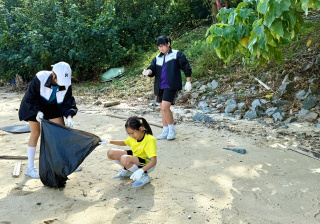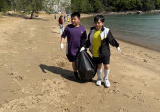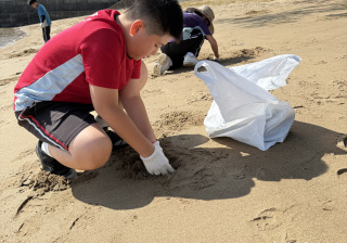 5-6年級同學身體力行,前往沙灘清潔垃圾,齊齊為保護海岸生態出一分力。