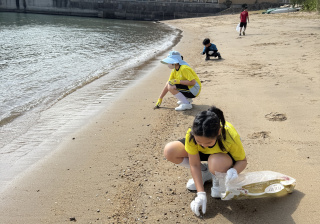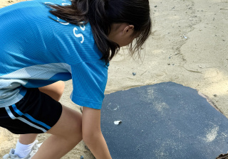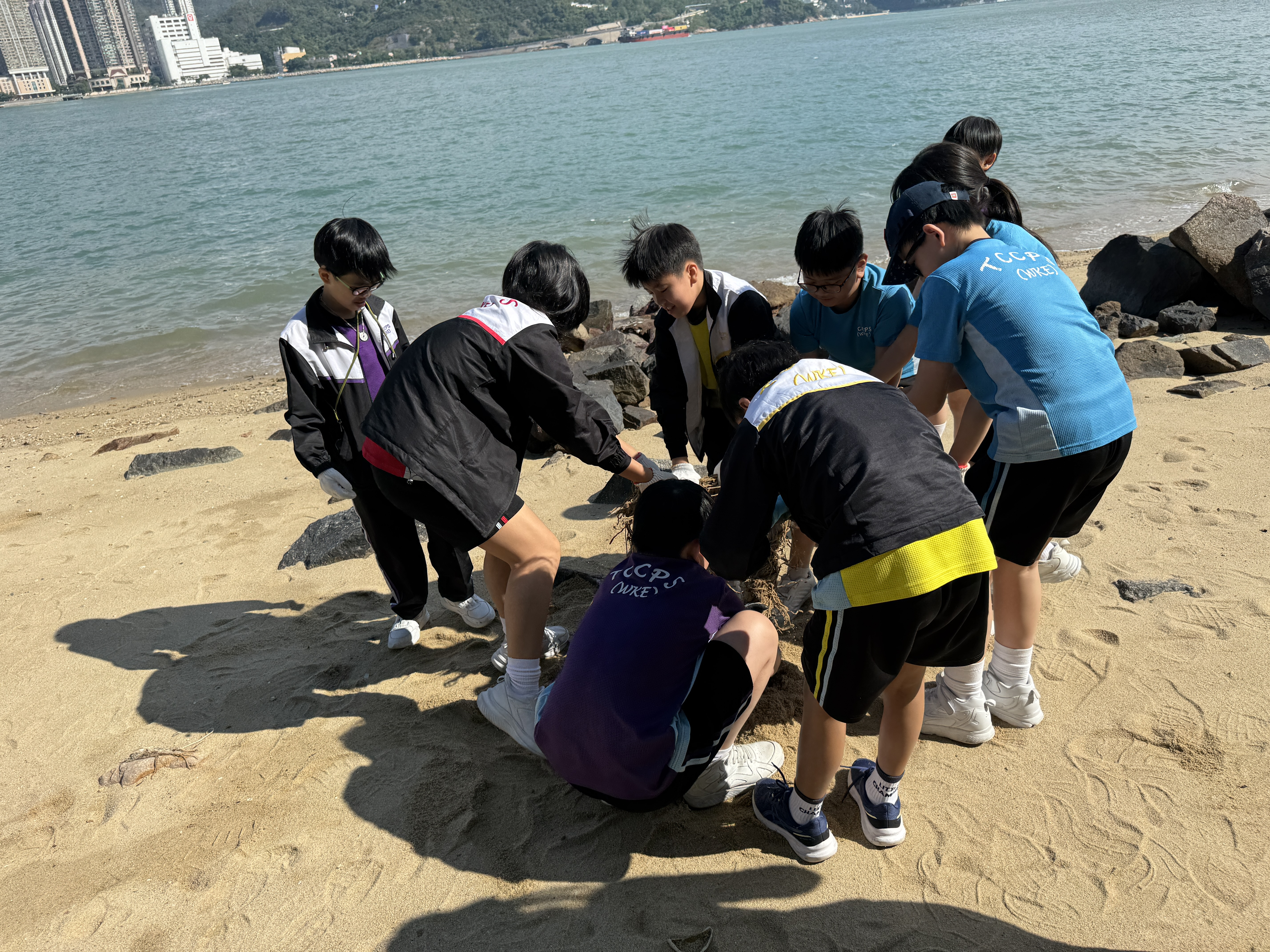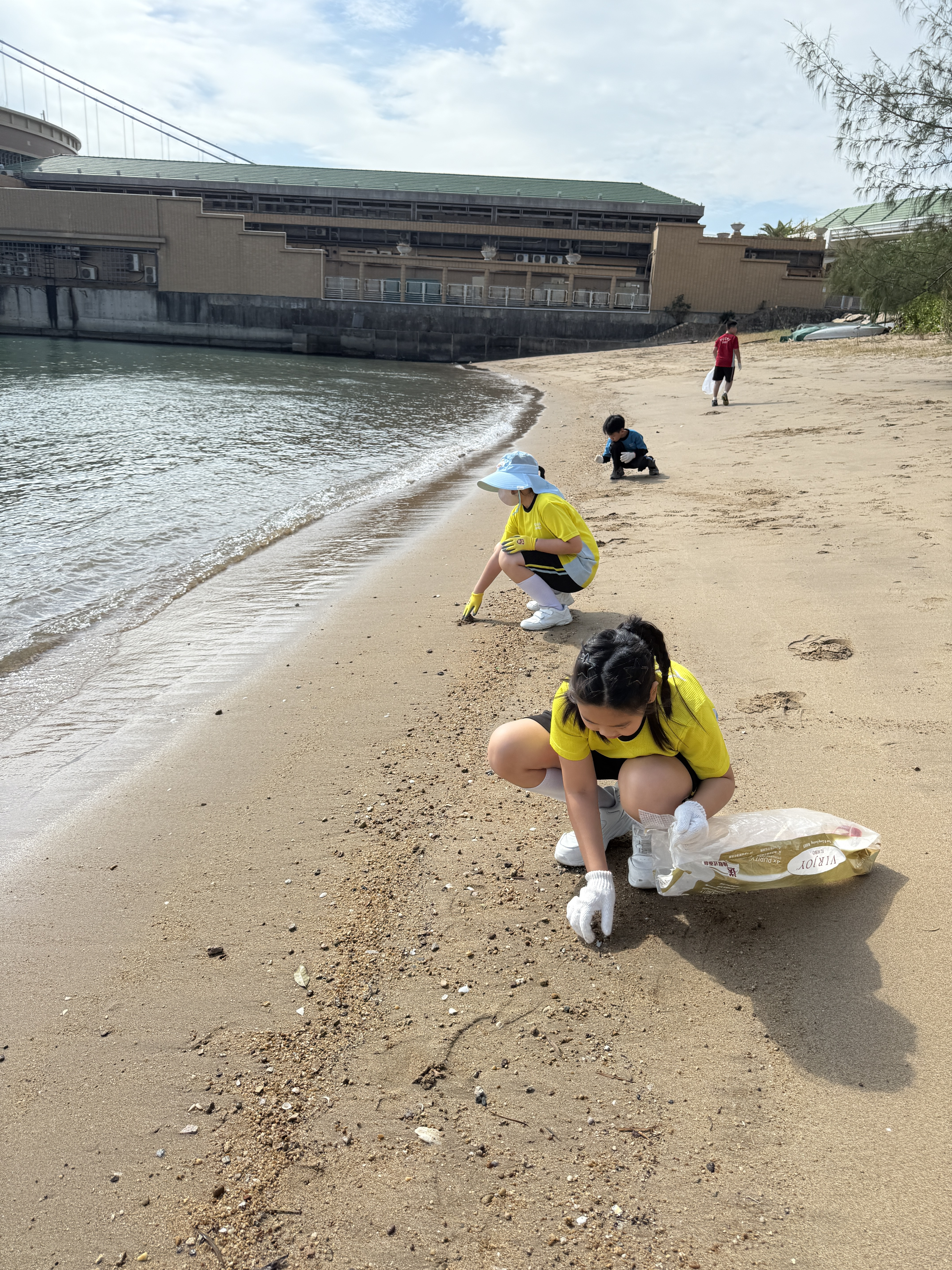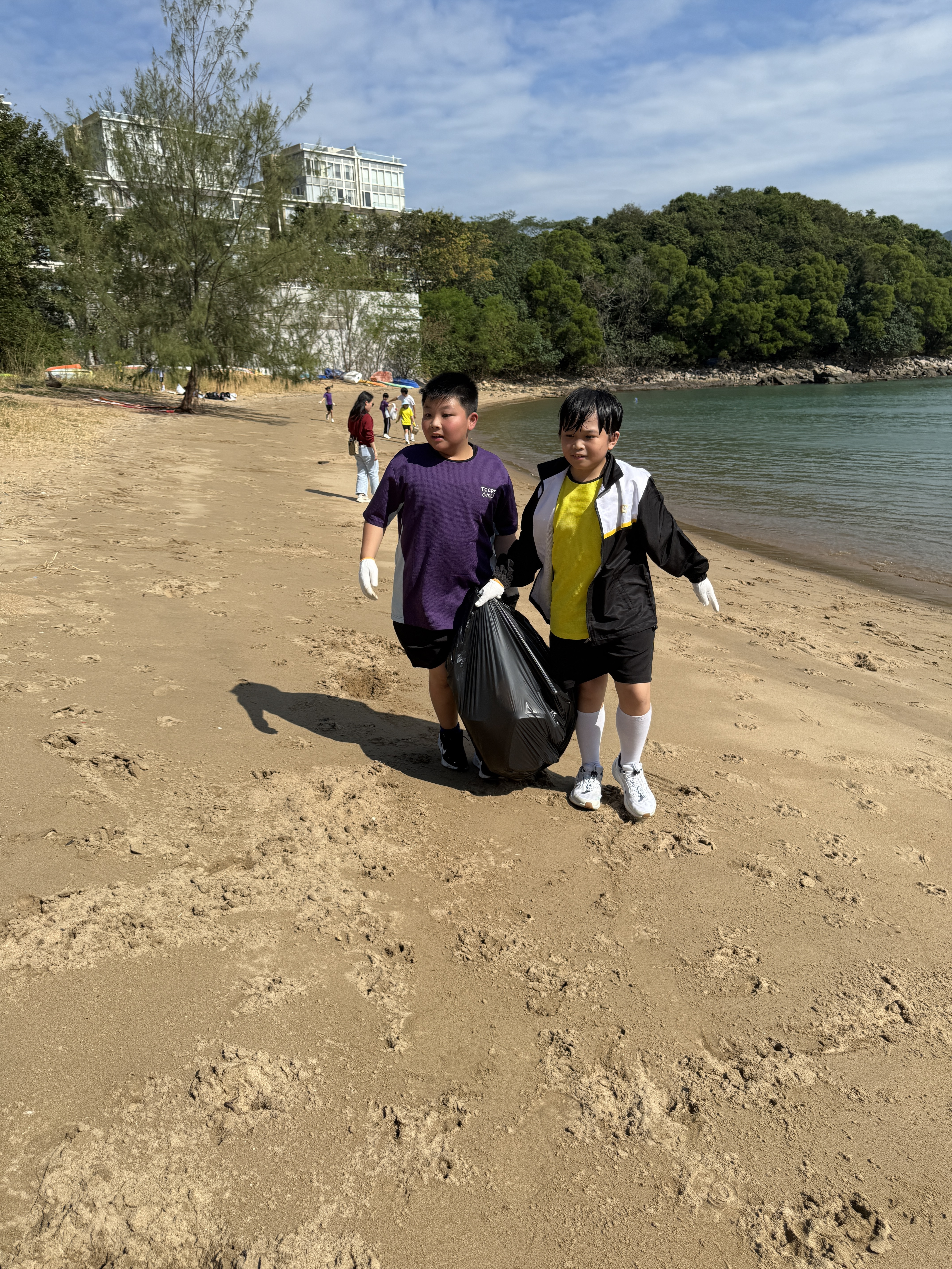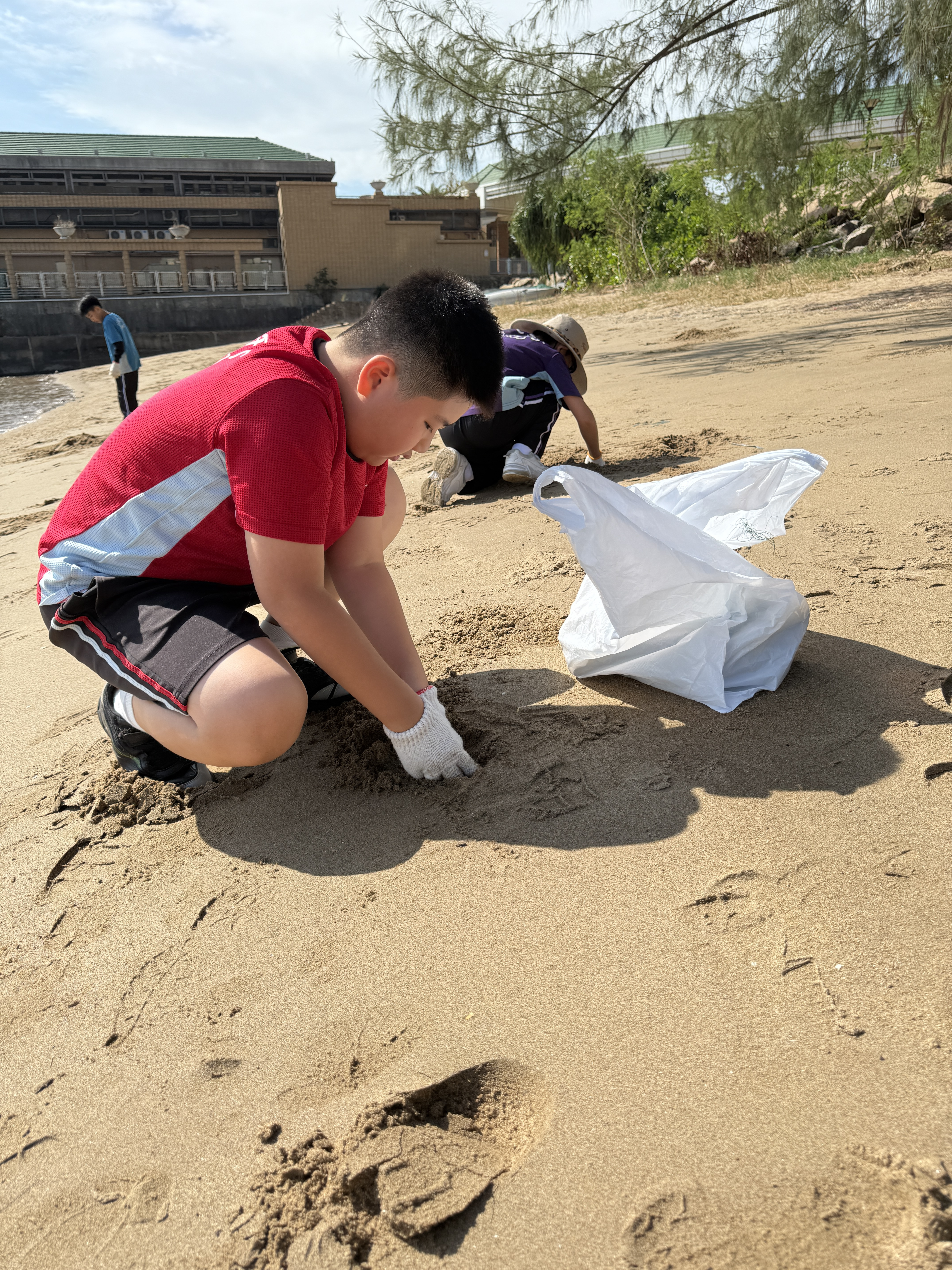 5-6年級同學身體力行,前往沙灘清潔垃圾,齊齊為保護海岸生態出一分力。