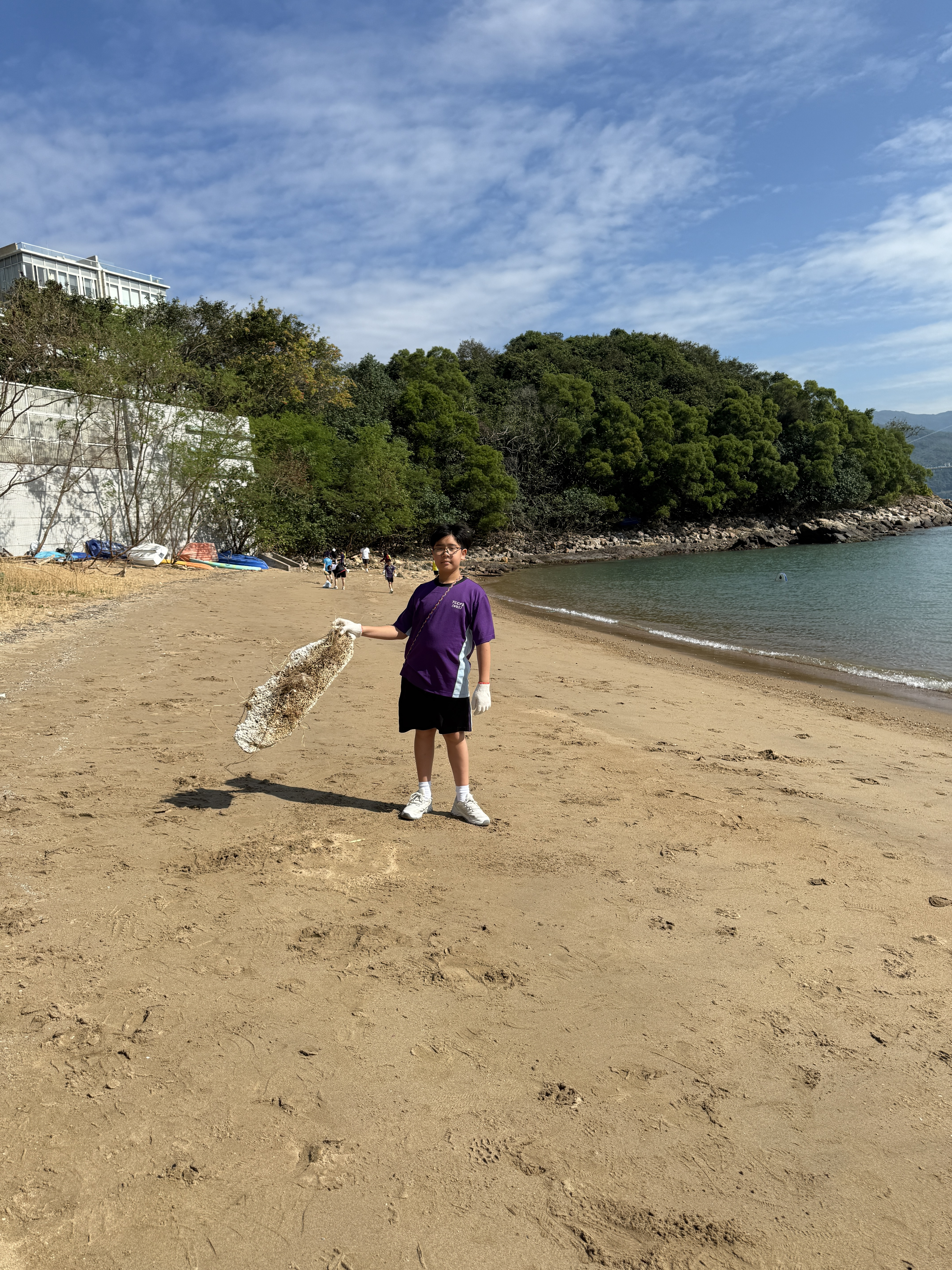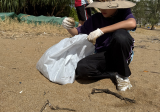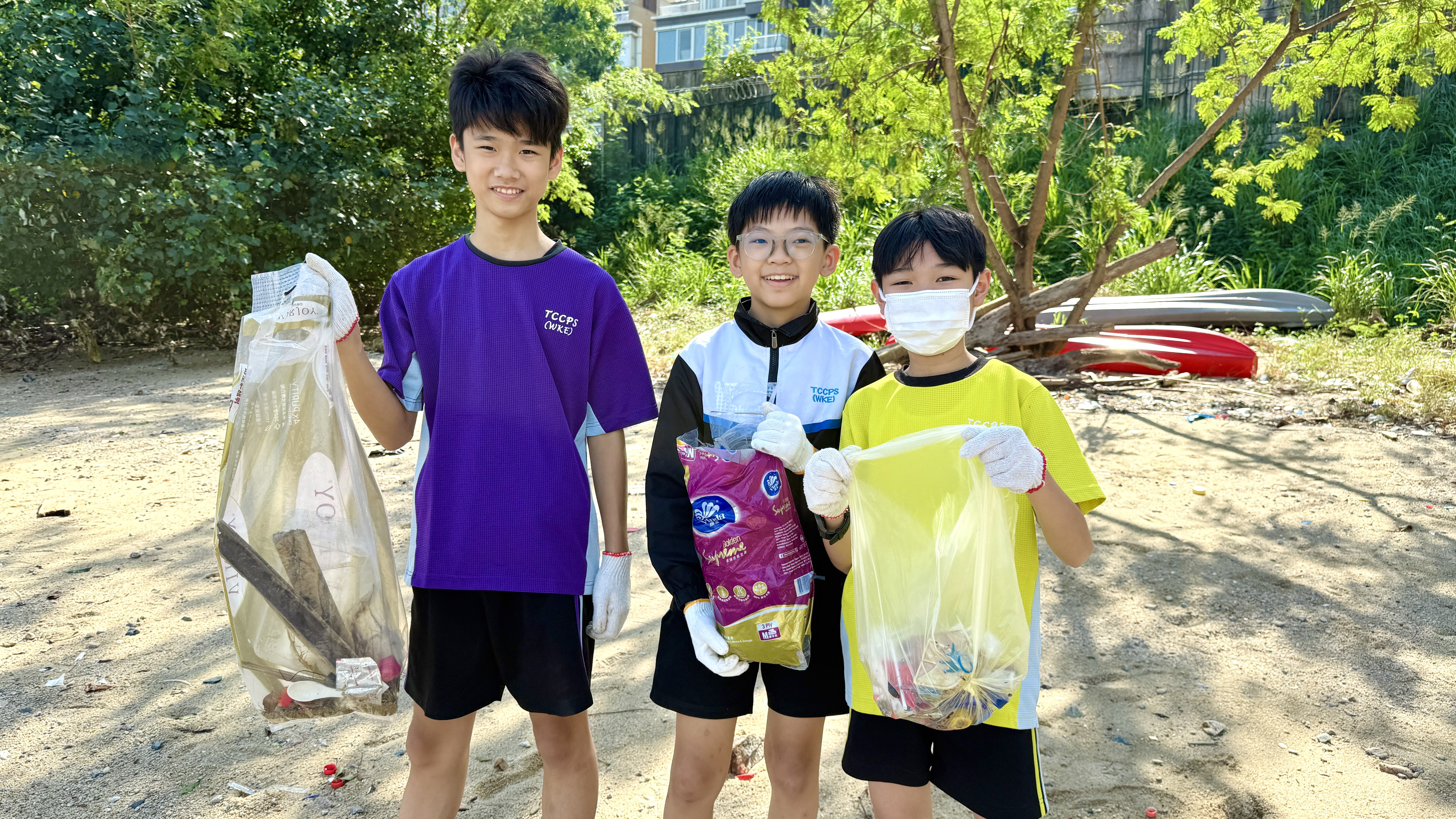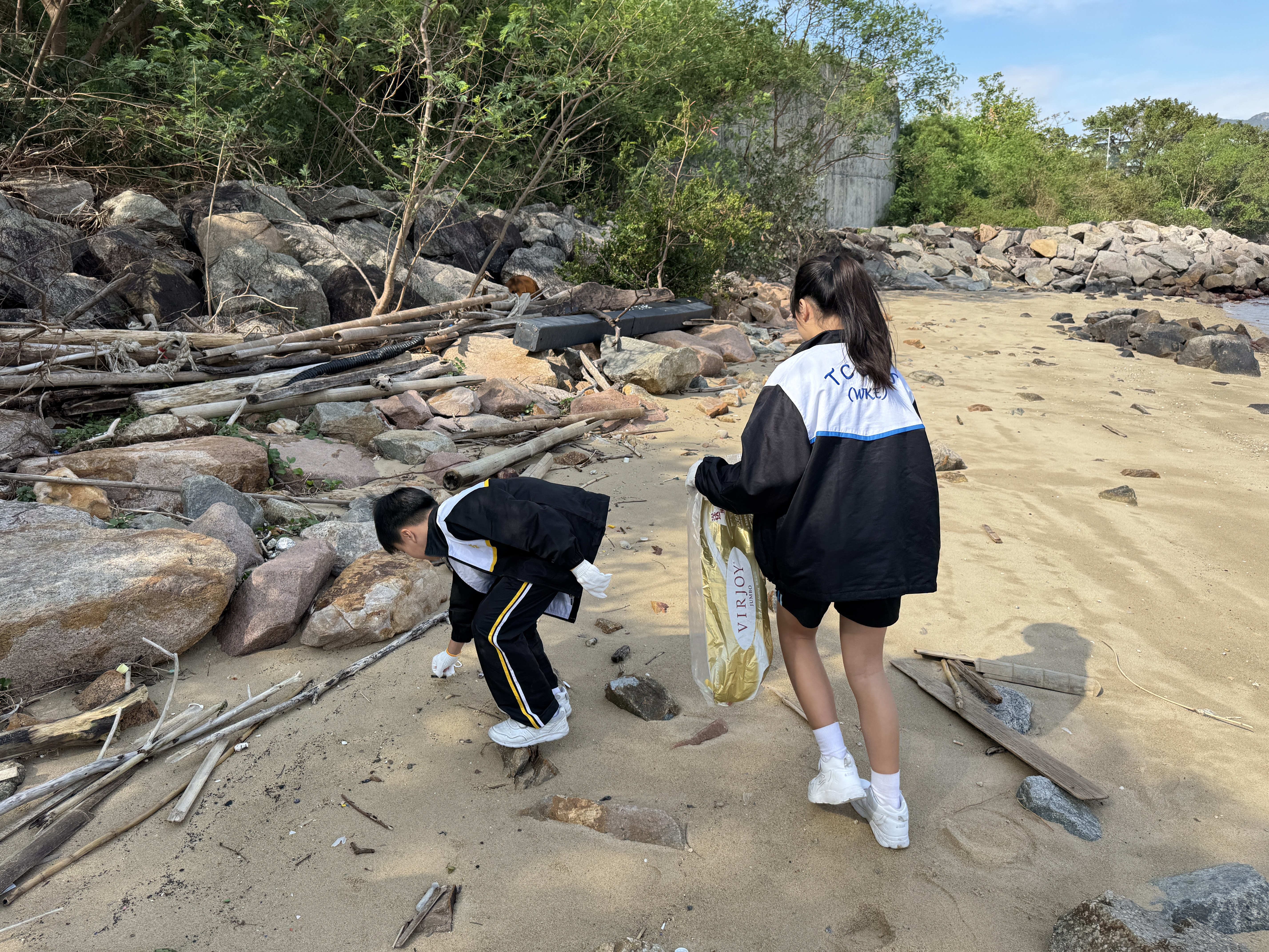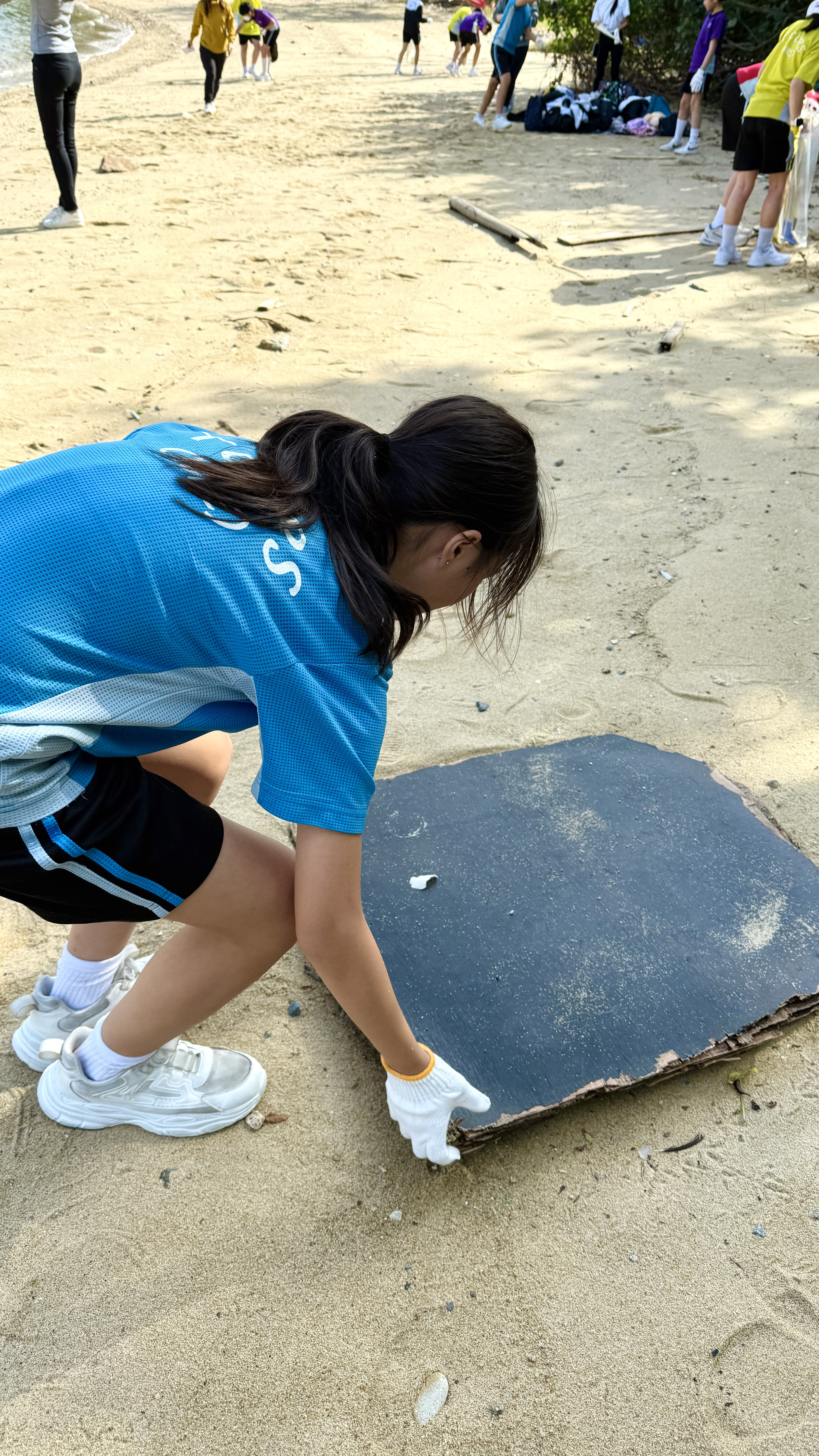 5-6年級同學身體力行,前往沙灘清潔垃圾,齊齊為保護海岸生態出一分力。