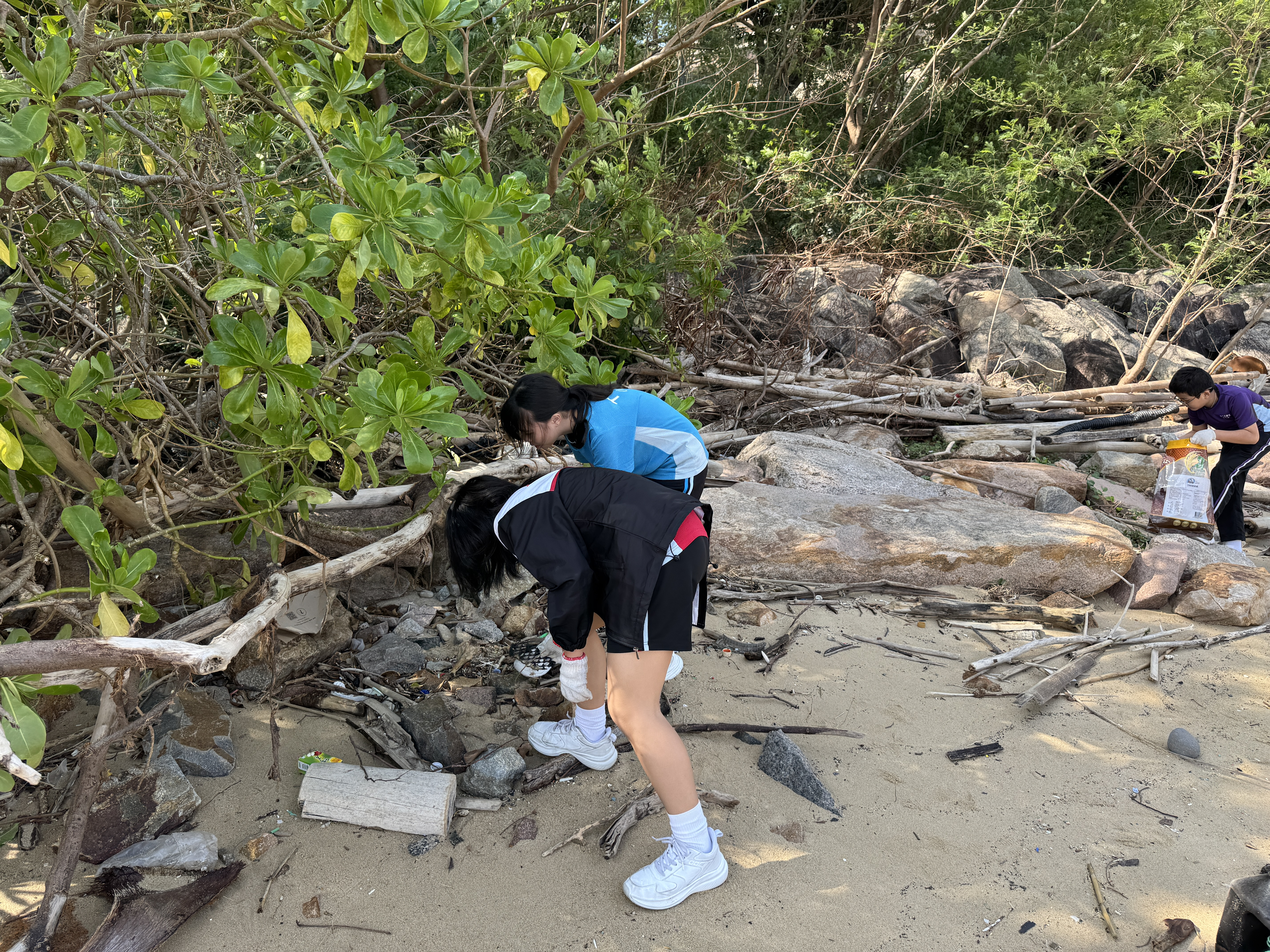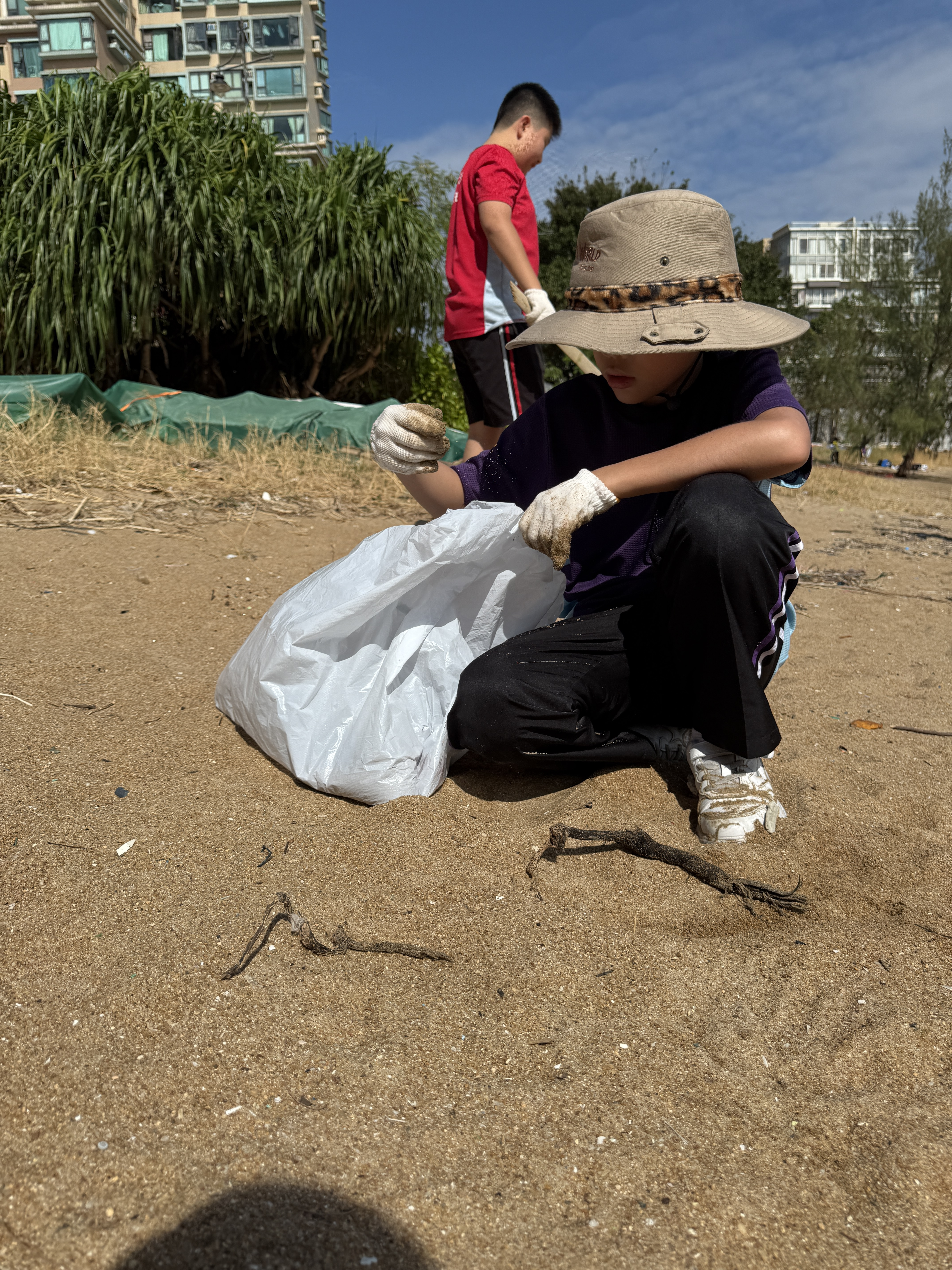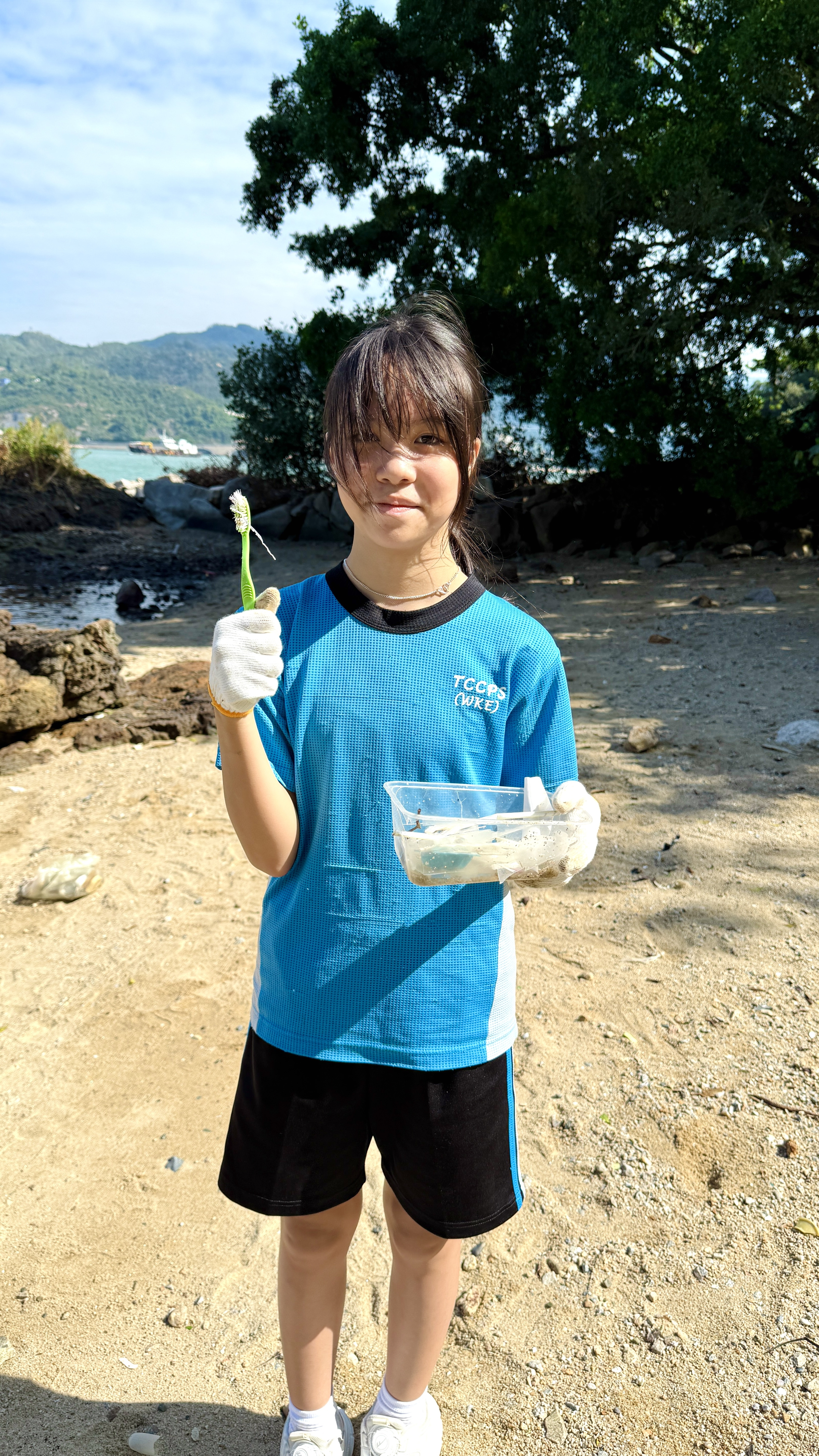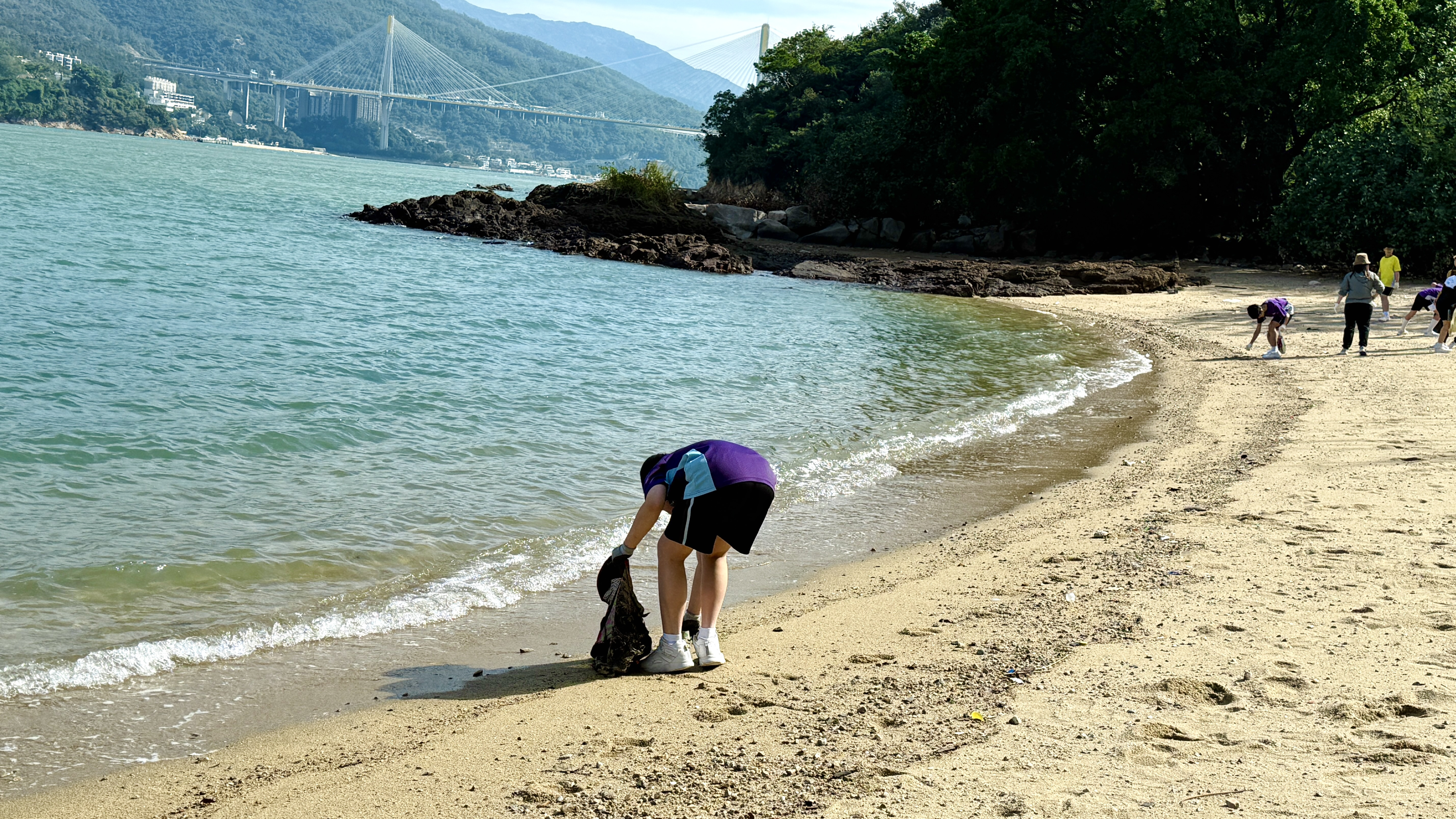 5-6年級同學身體力行,前往沙灘清潔垃圾,齊齊為保護海岸生態出一分力。