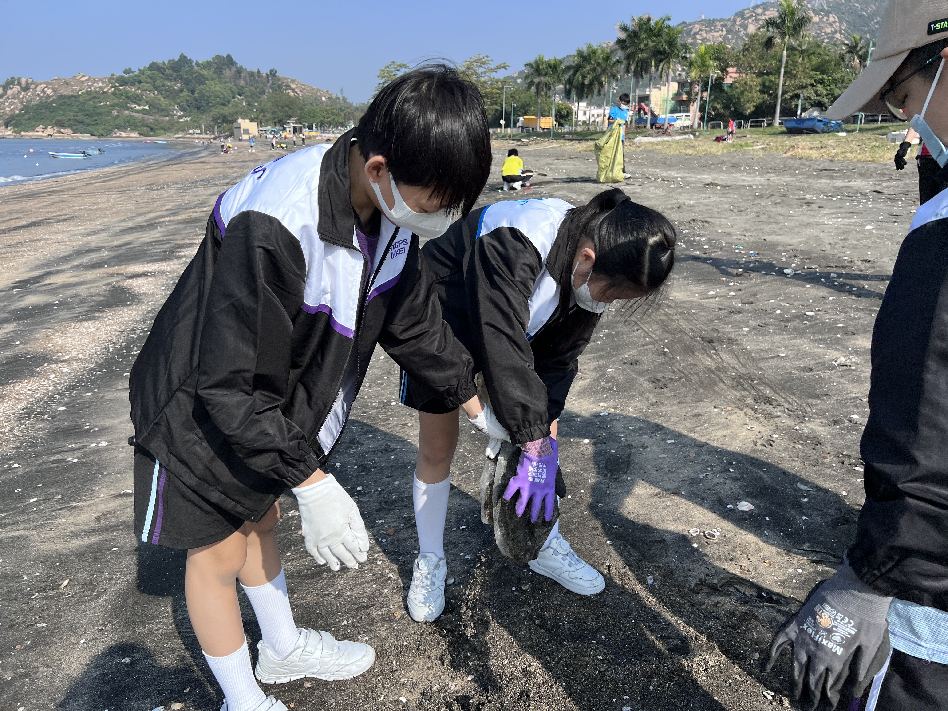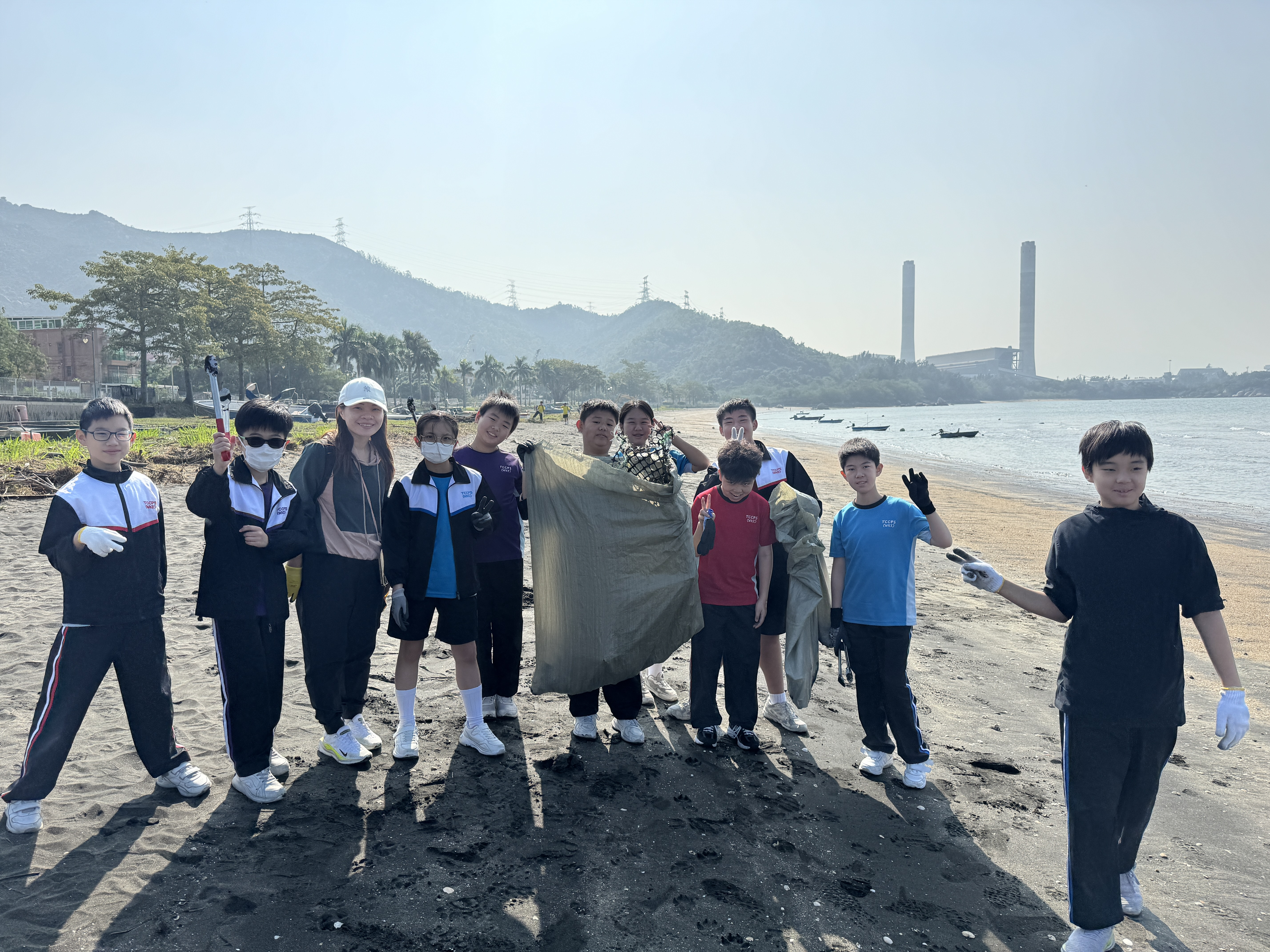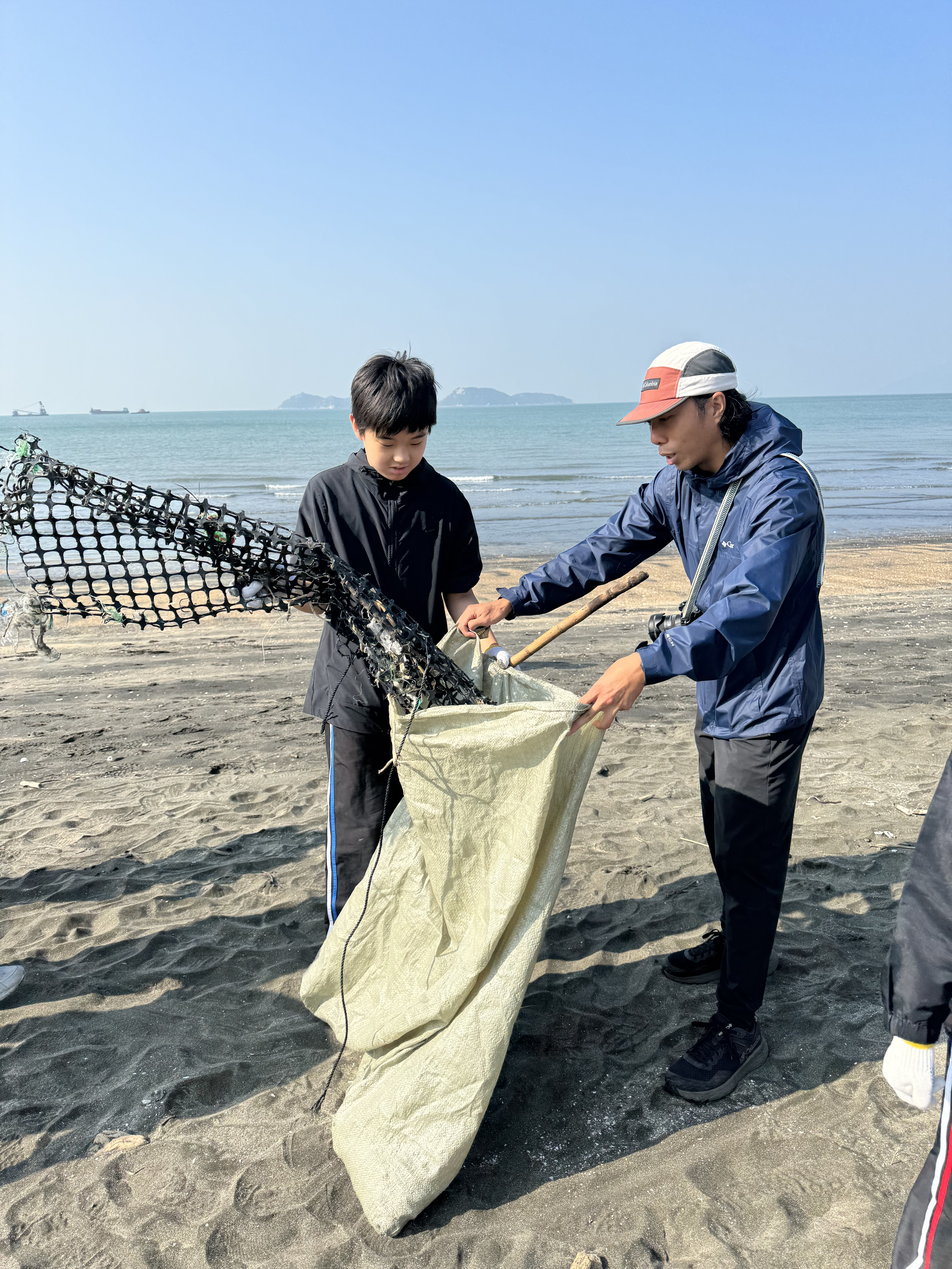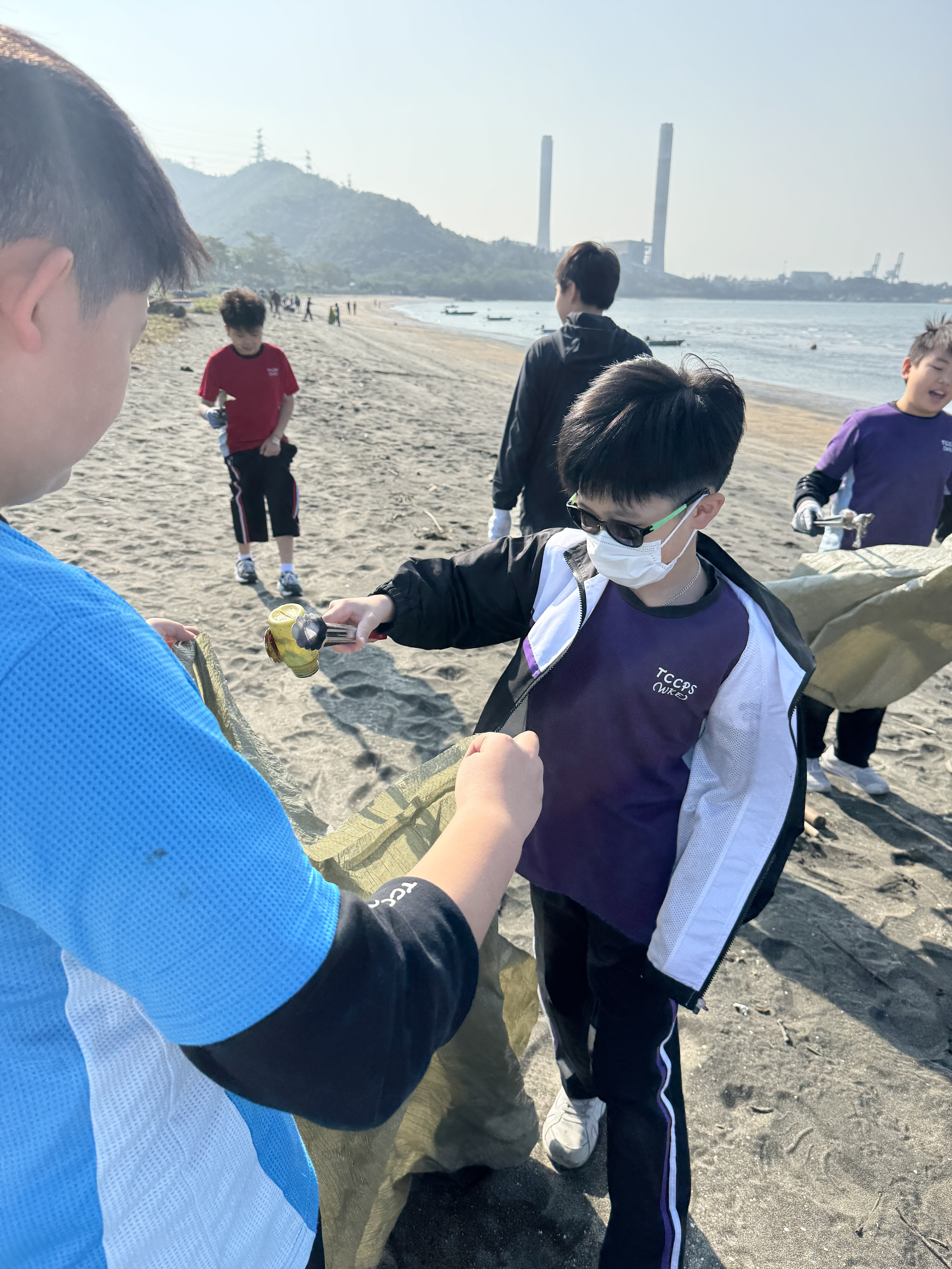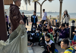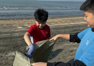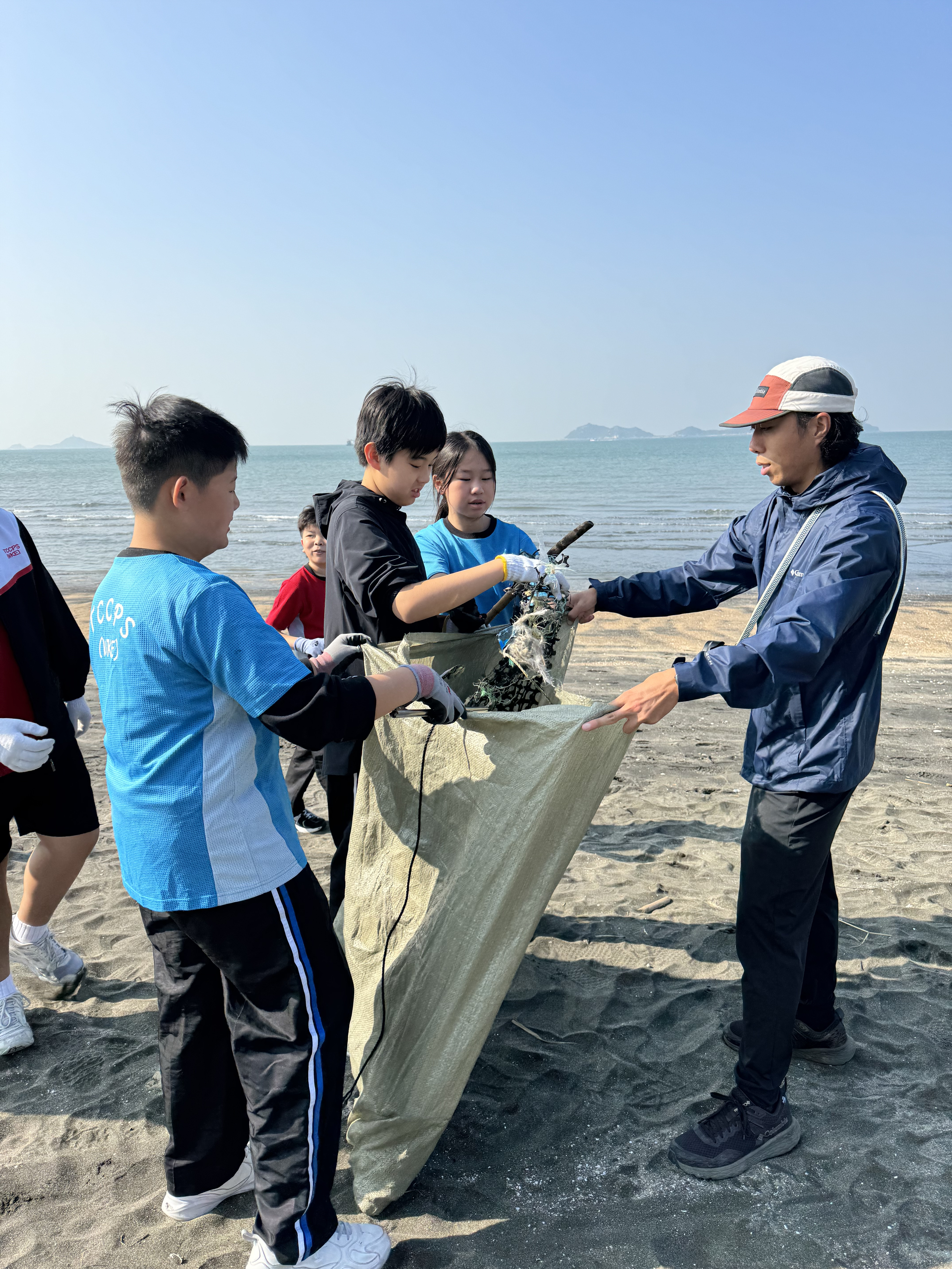 一眾學生身體力行在龍鼓灘參與清潔沙灘活動,為保護環境出一分力。