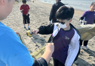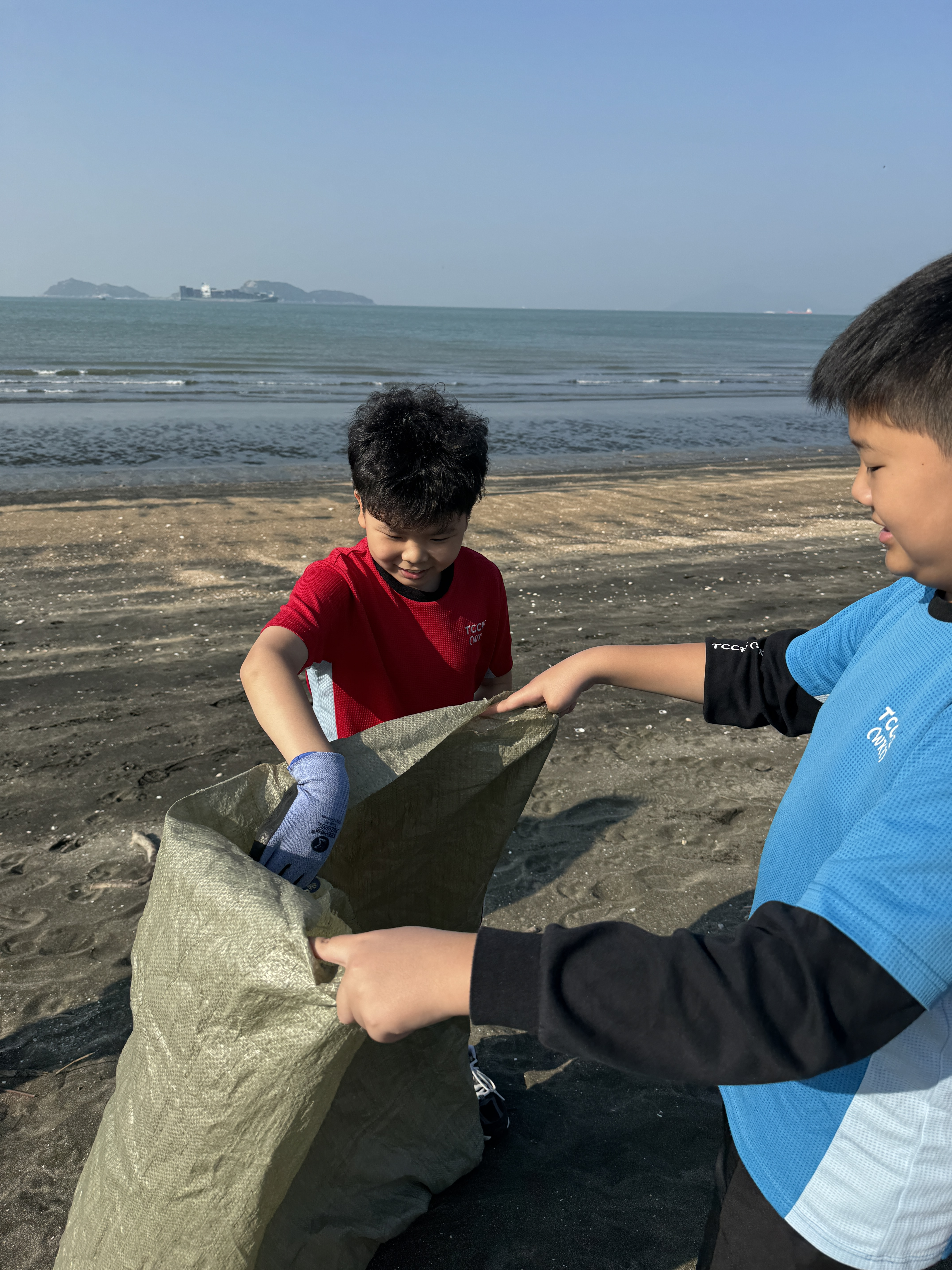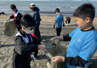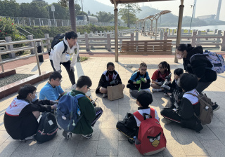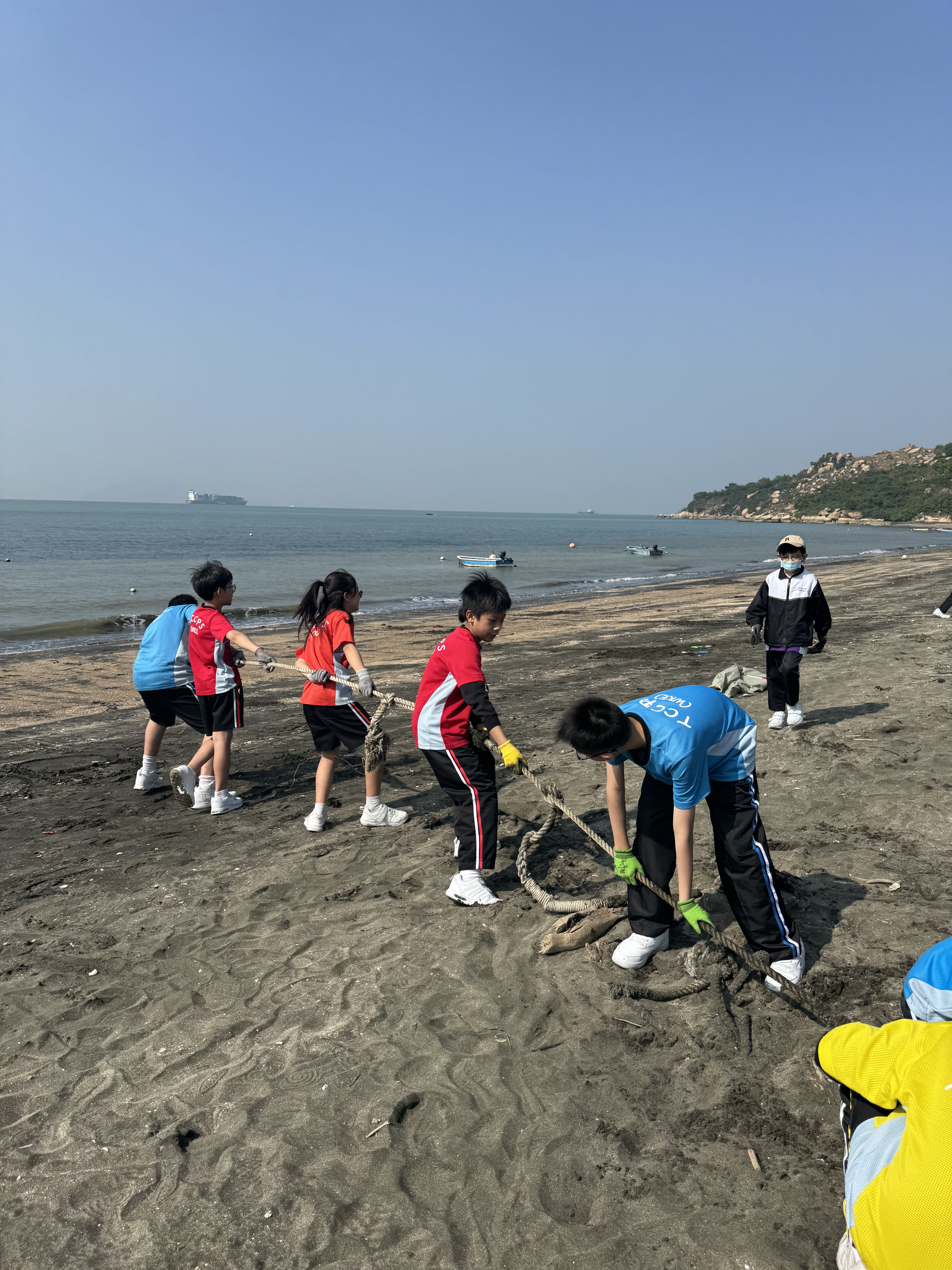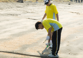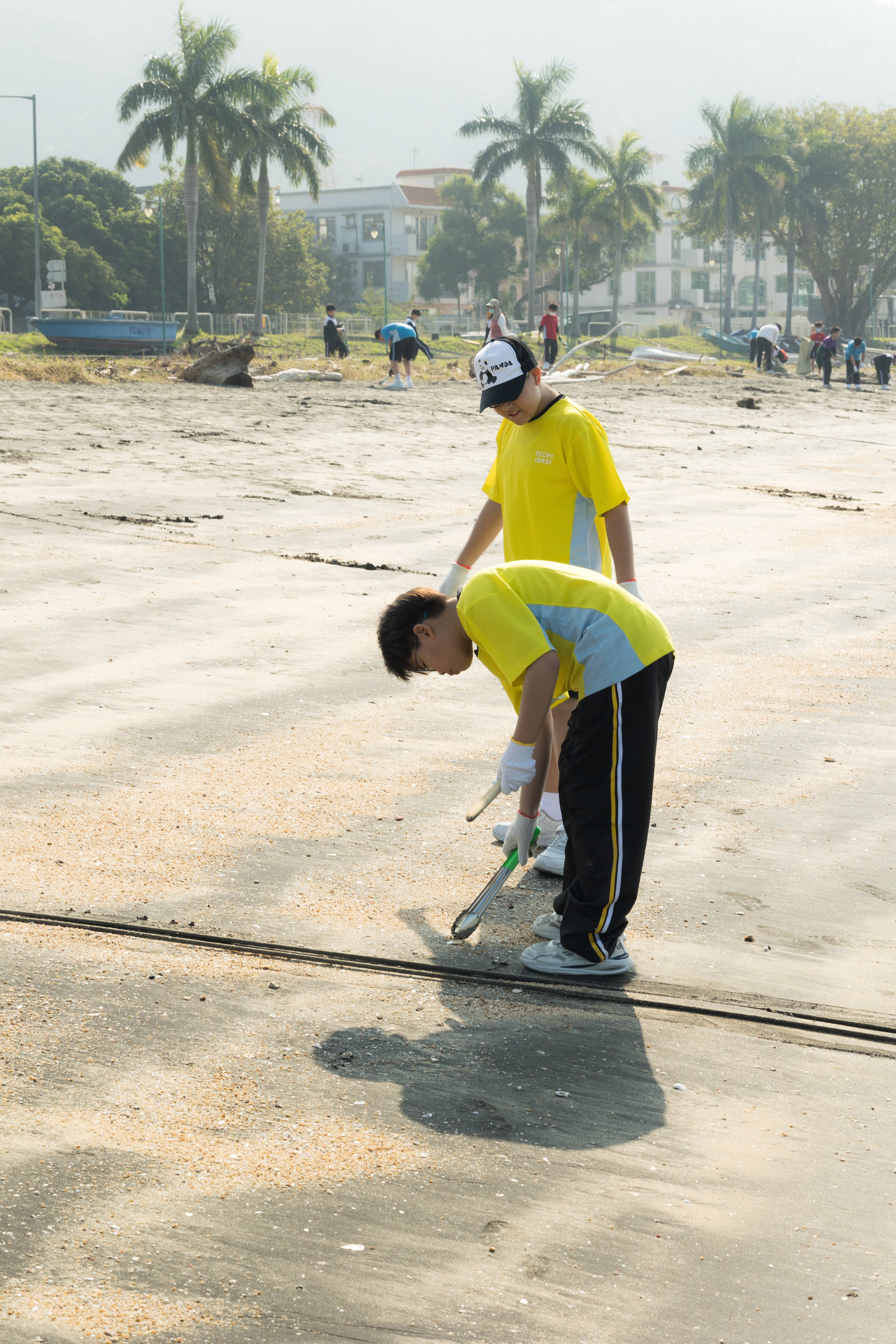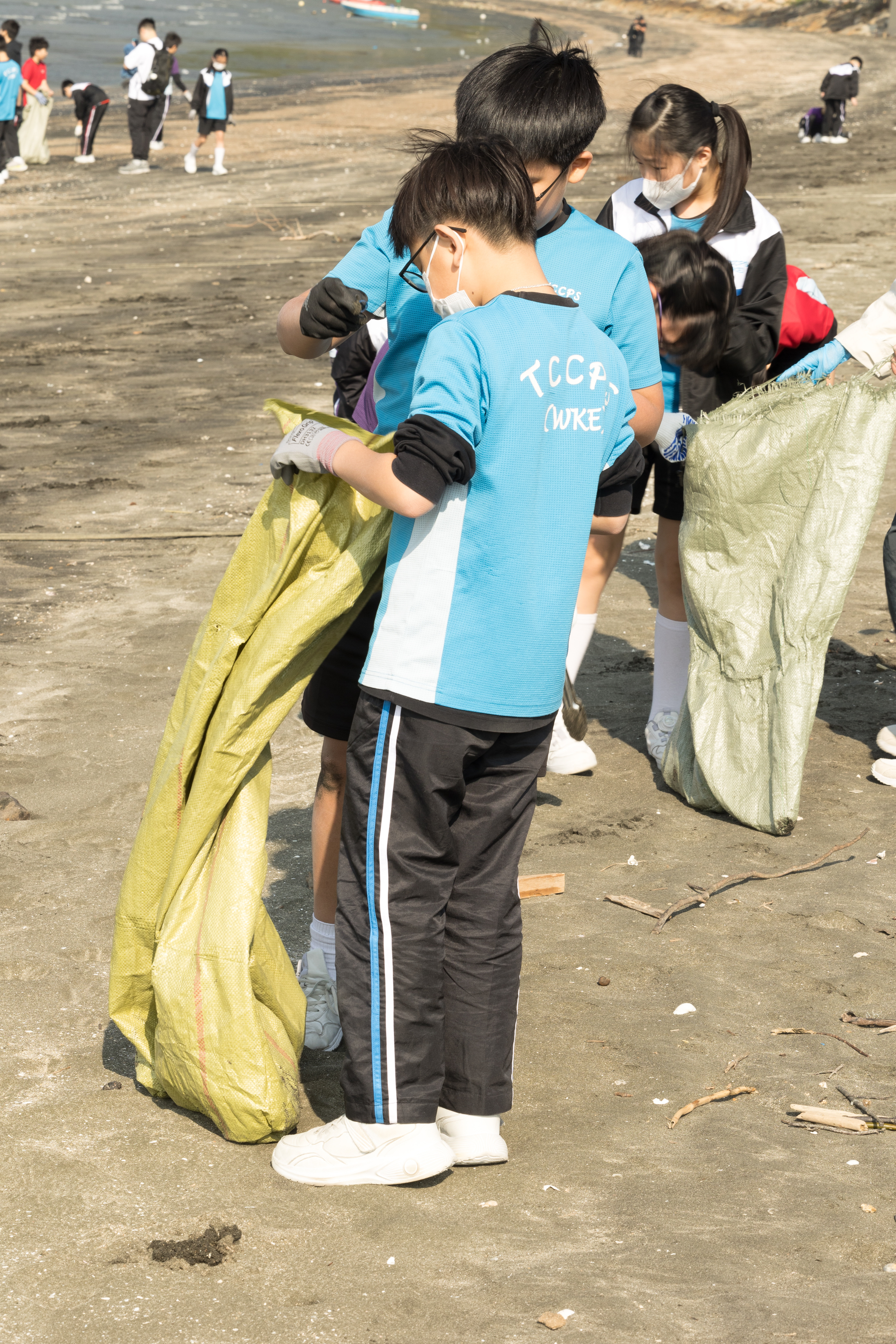 一眾學生身體力行在龍鼓灘參與清潔沙灘活動,為保護環境出一分力。