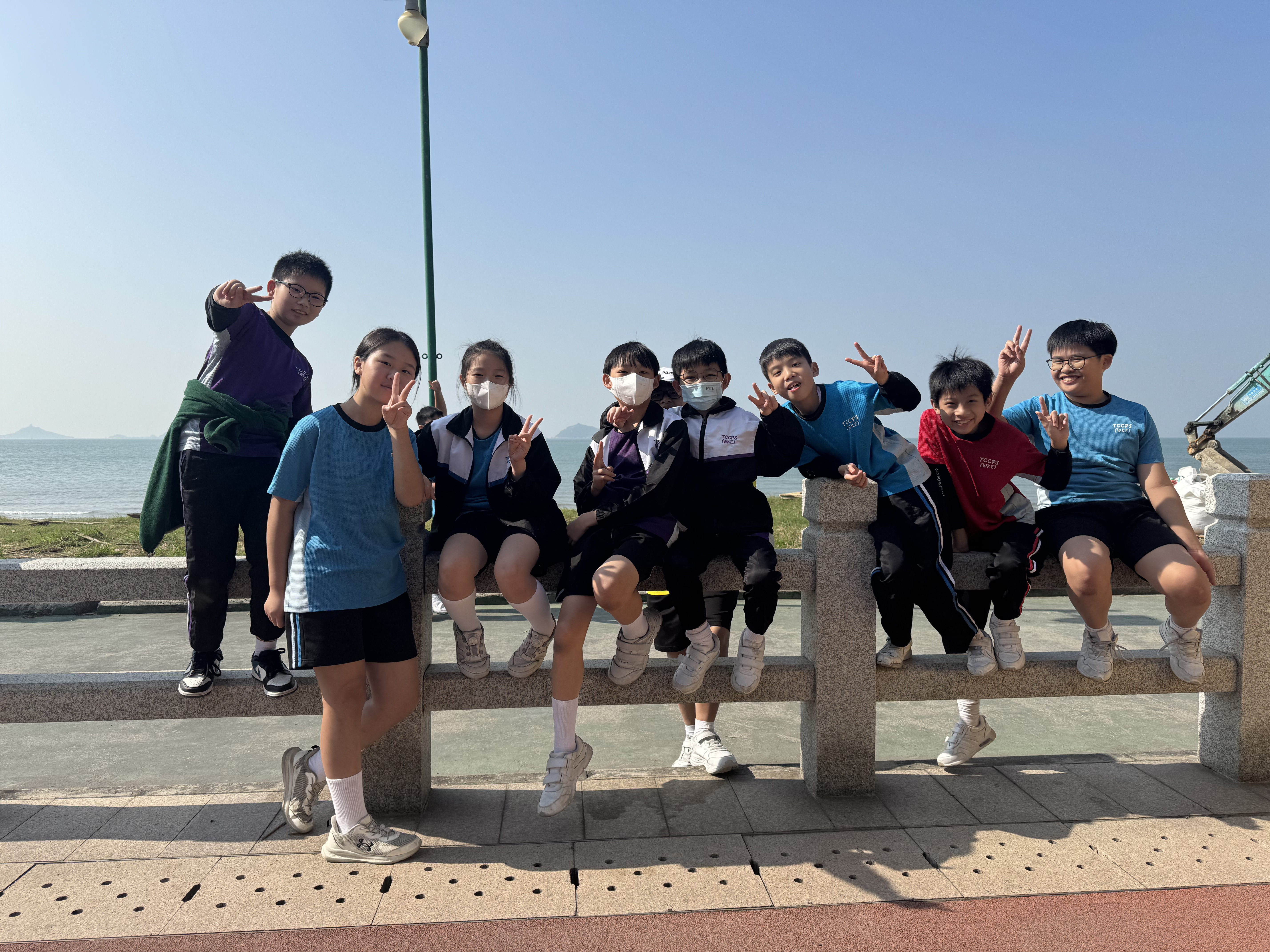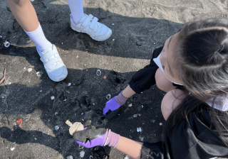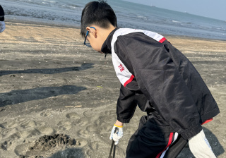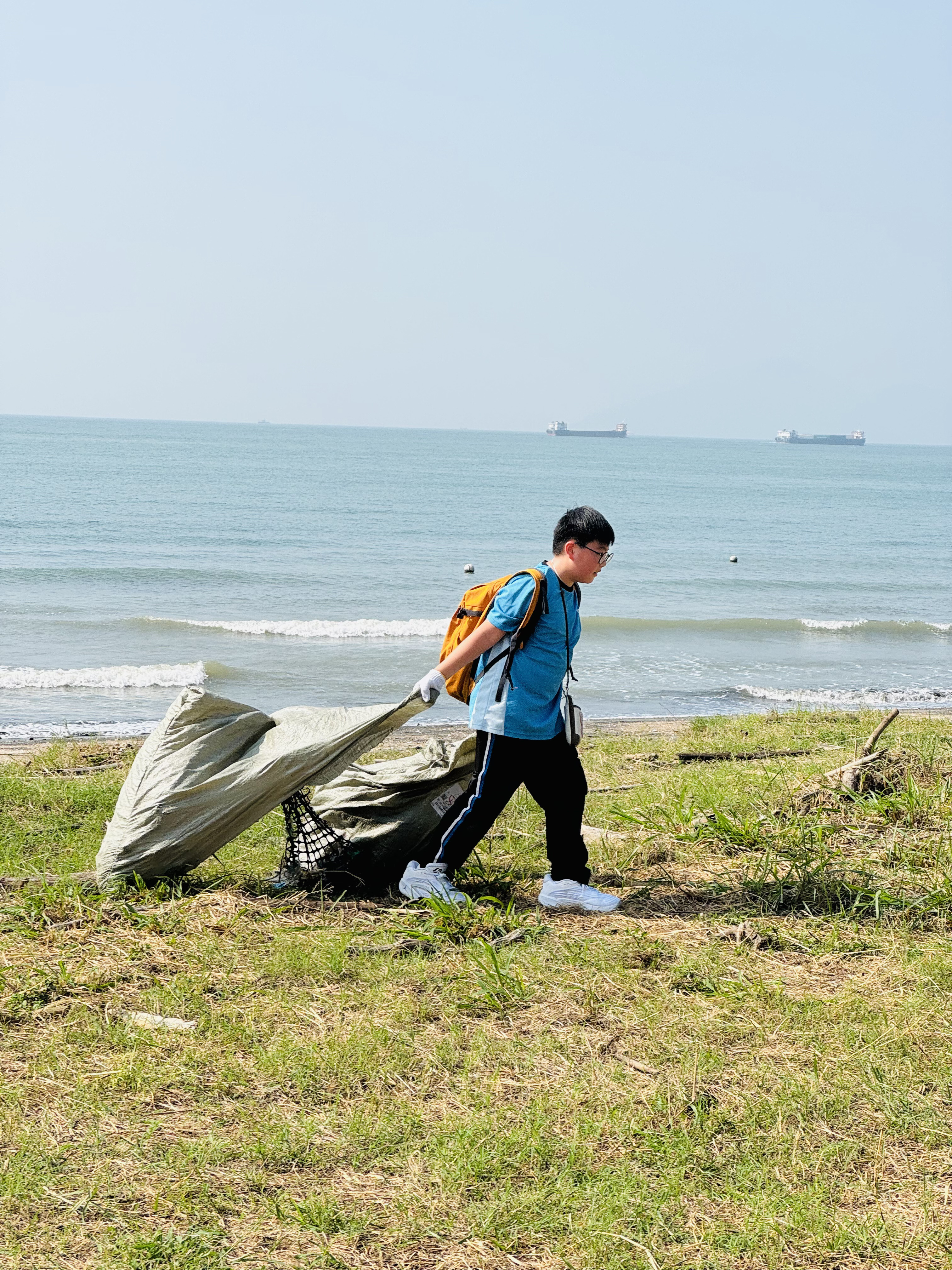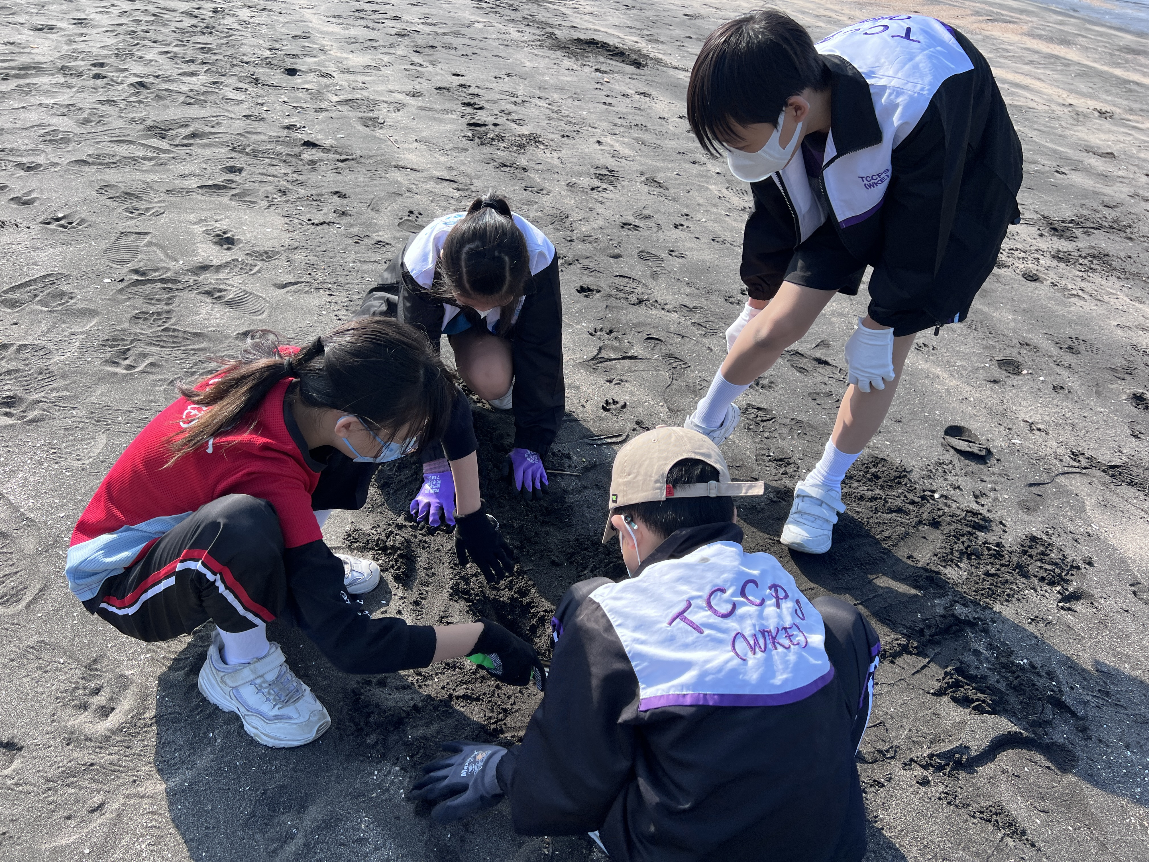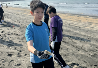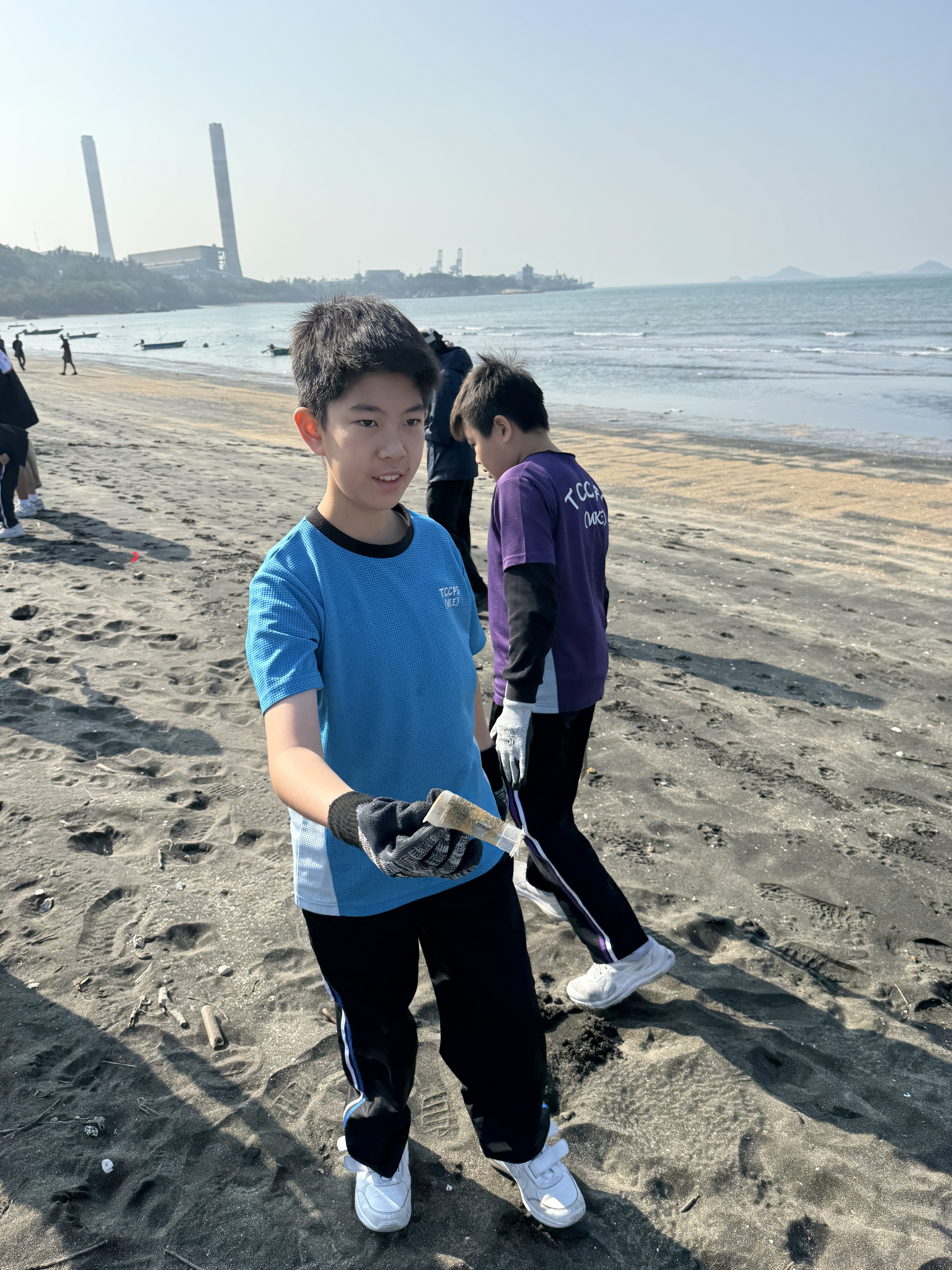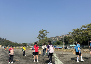 一眾學生身體力行在龍鼓灘參與清潔沙灘活動,為保護環境出一分力。