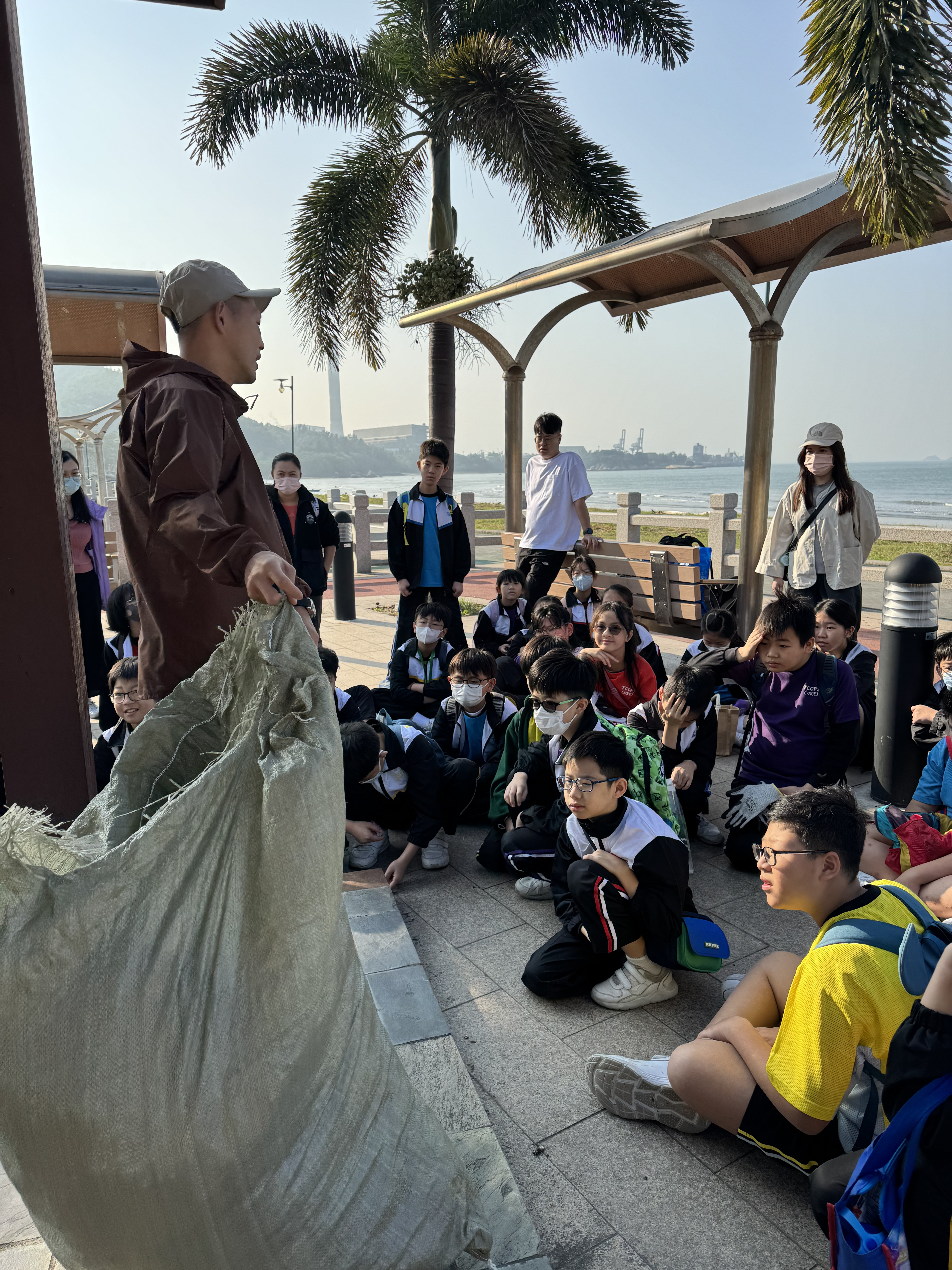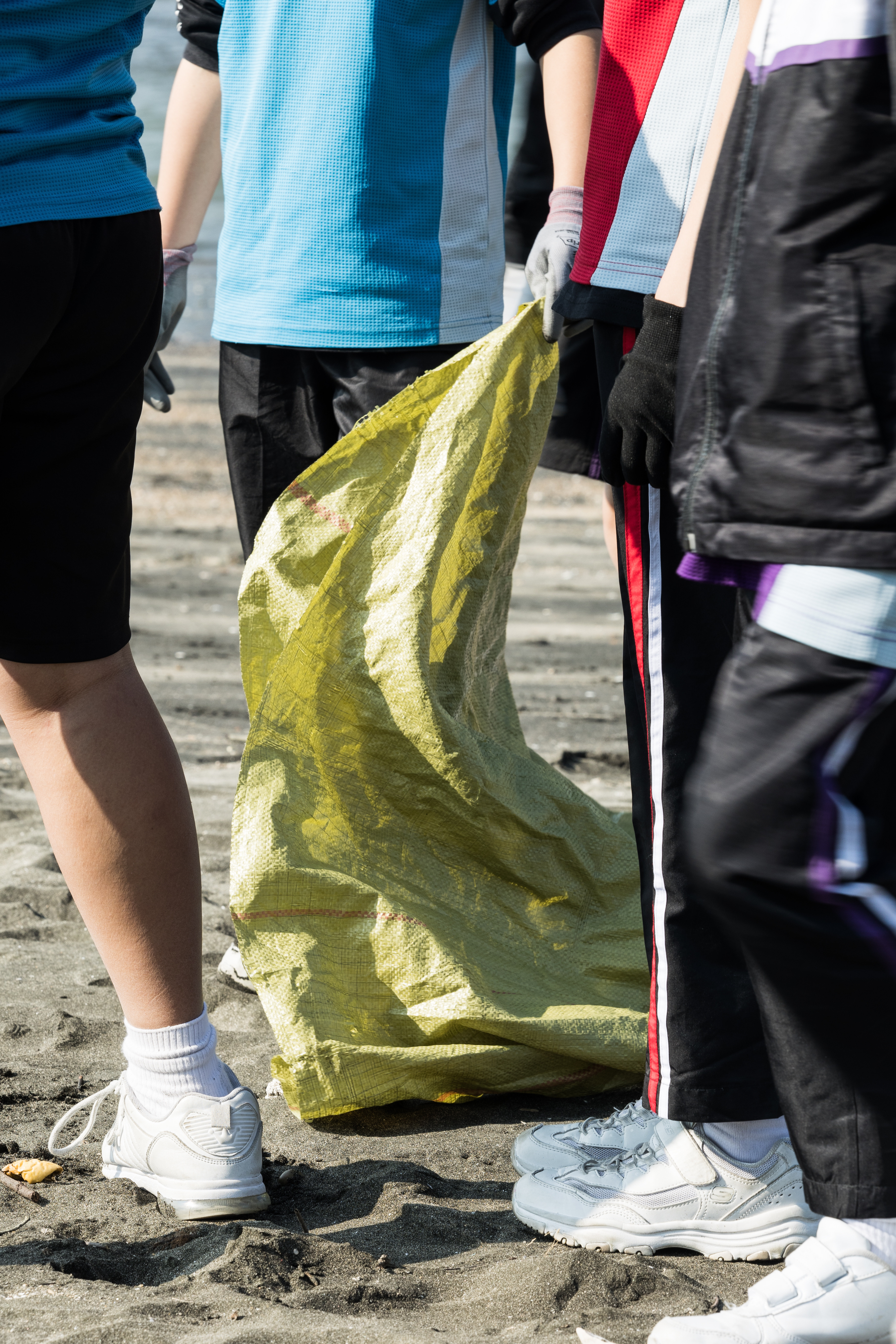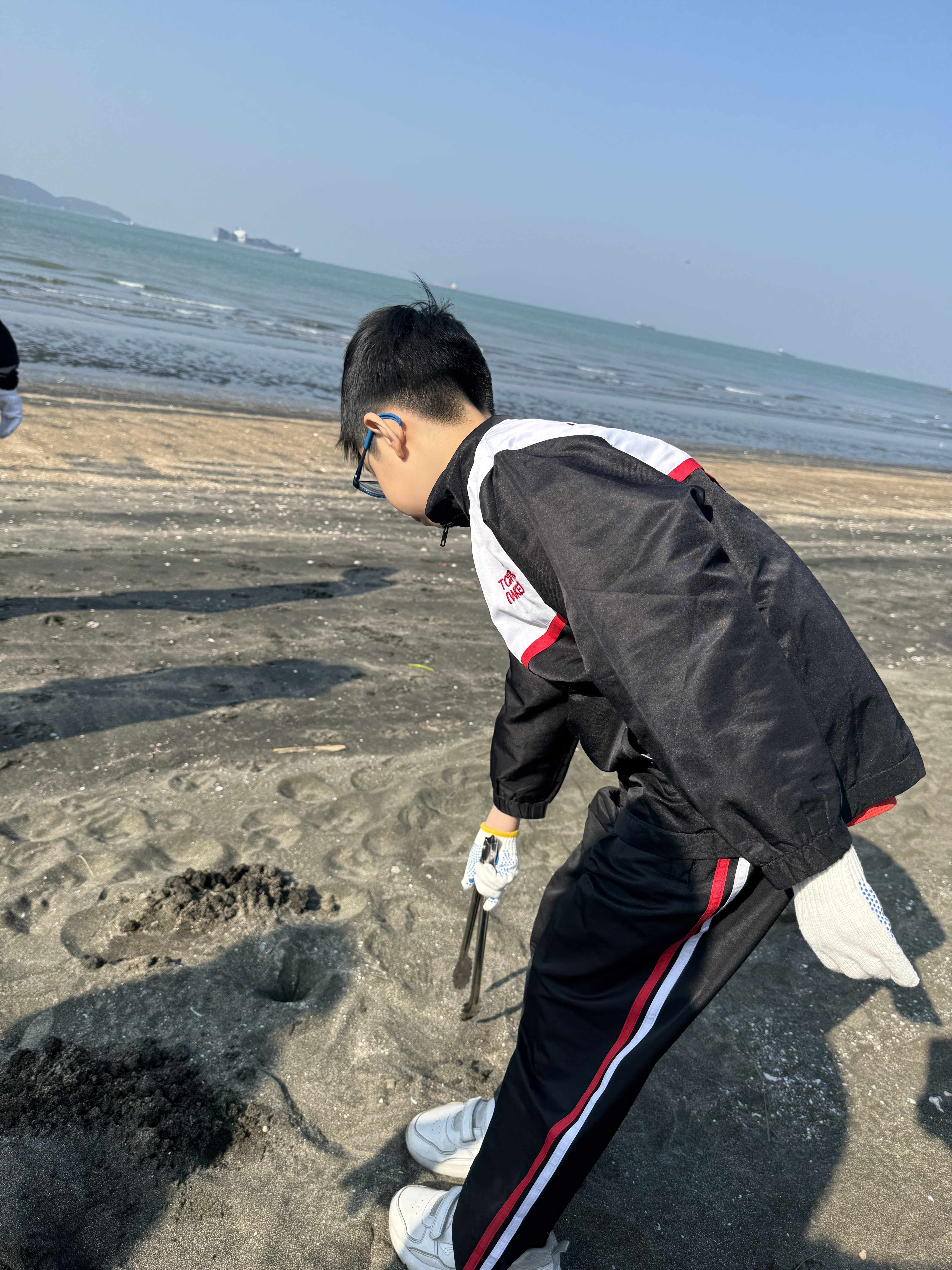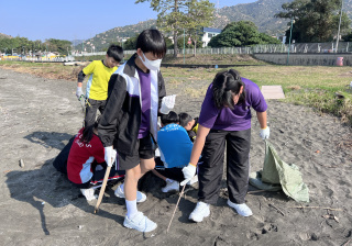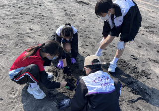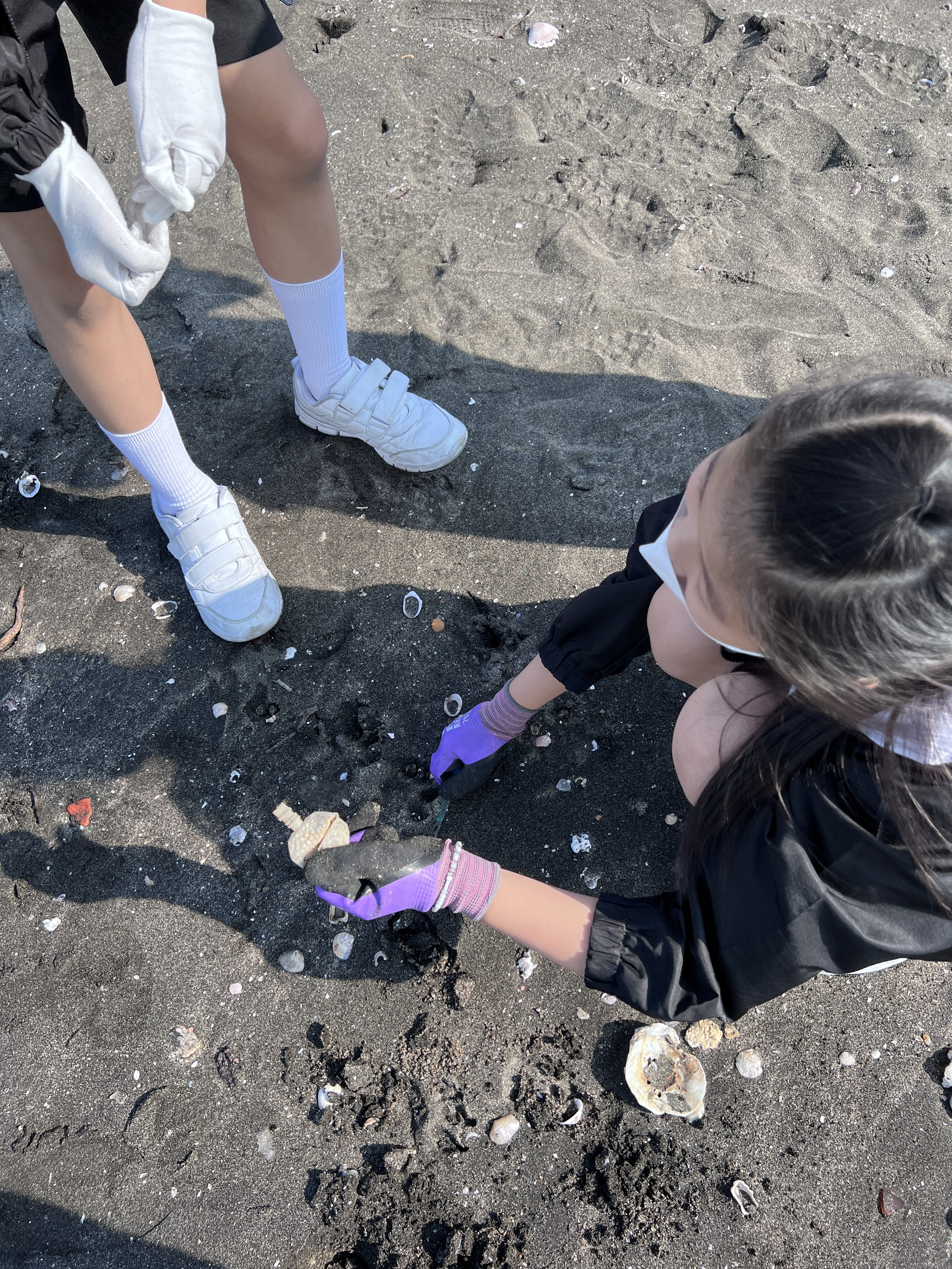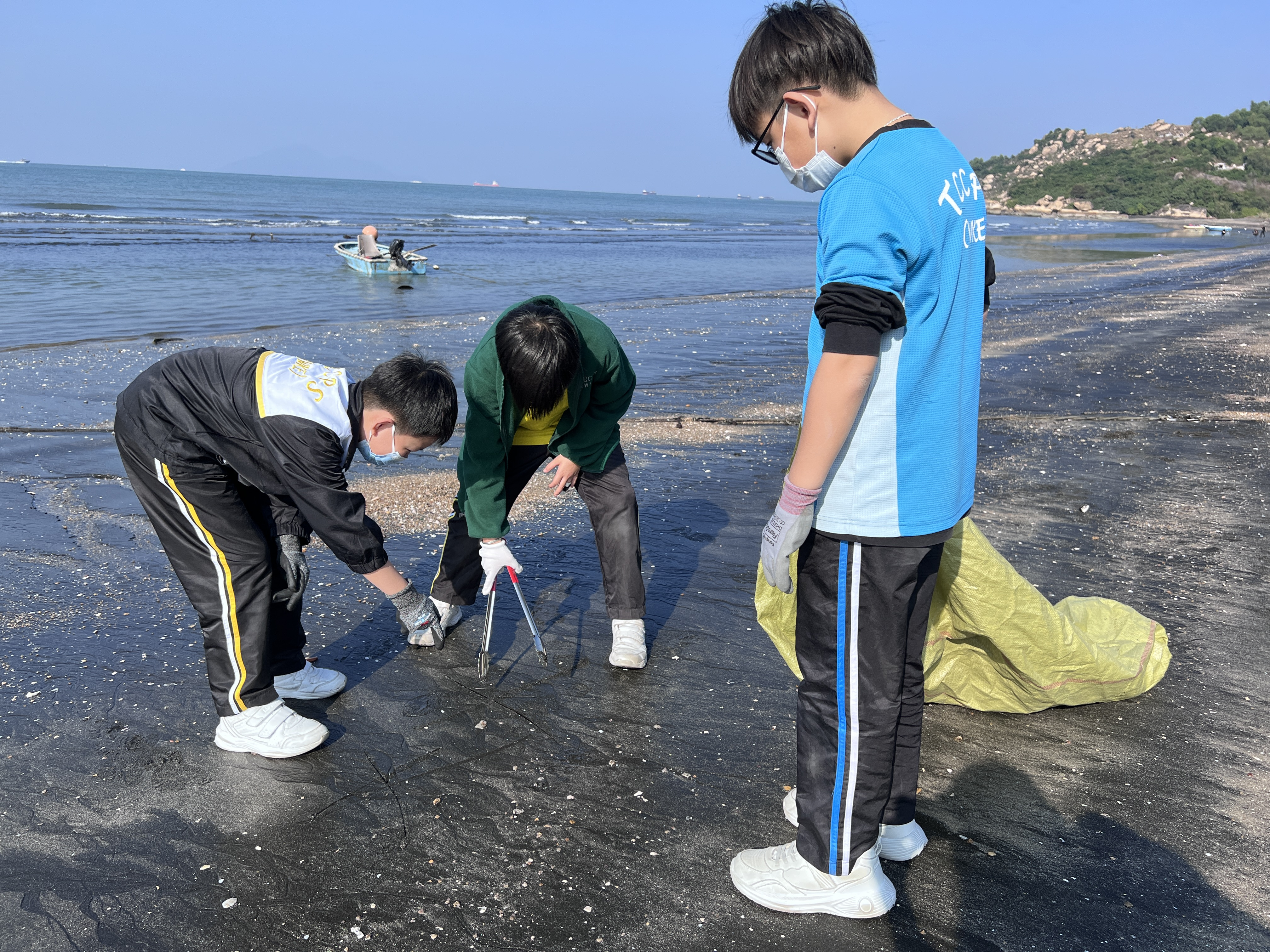 一眾學生身體力行在龍鼓灘參與清潔沙灘活動,為保護環境出一分力。