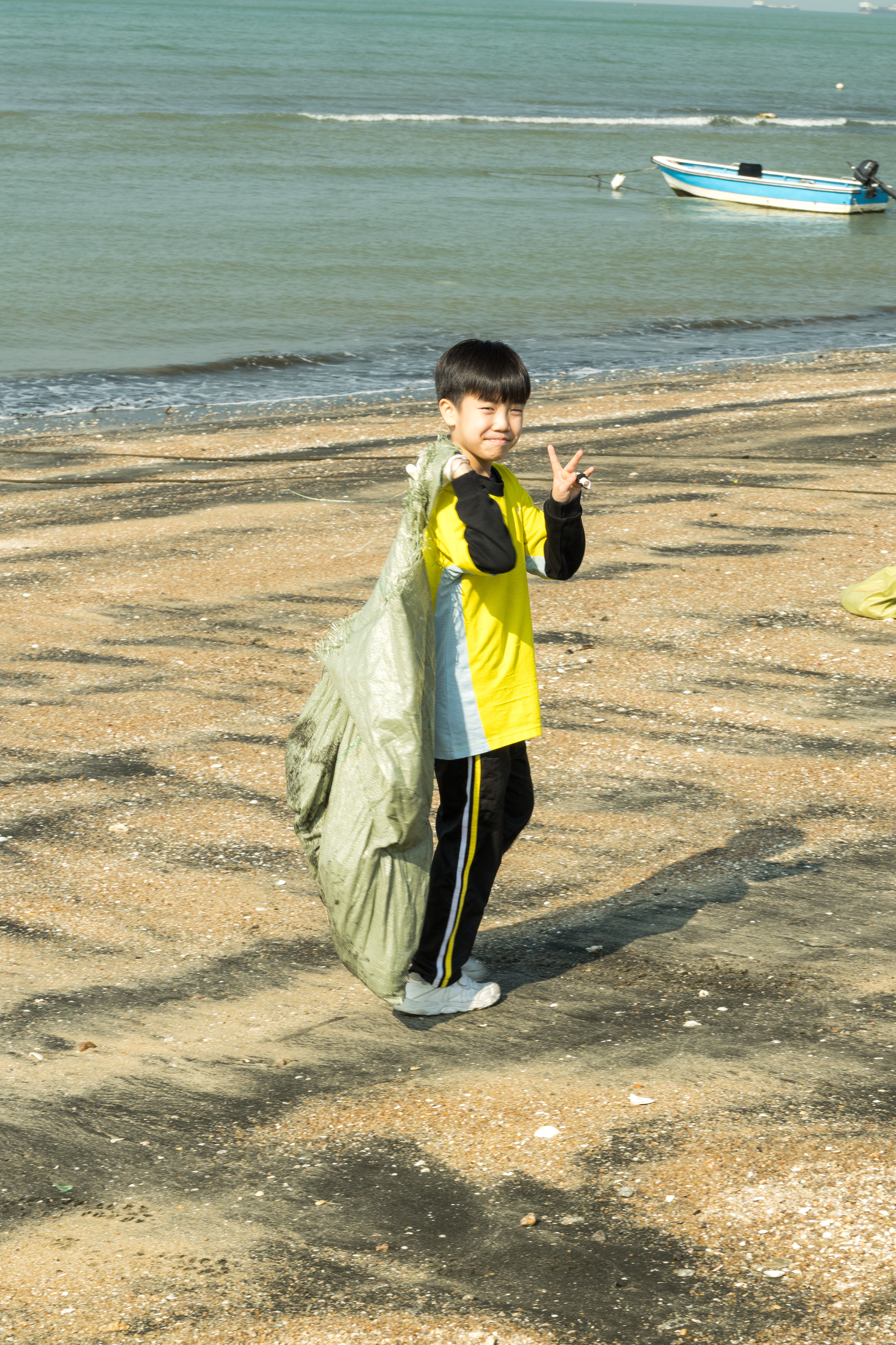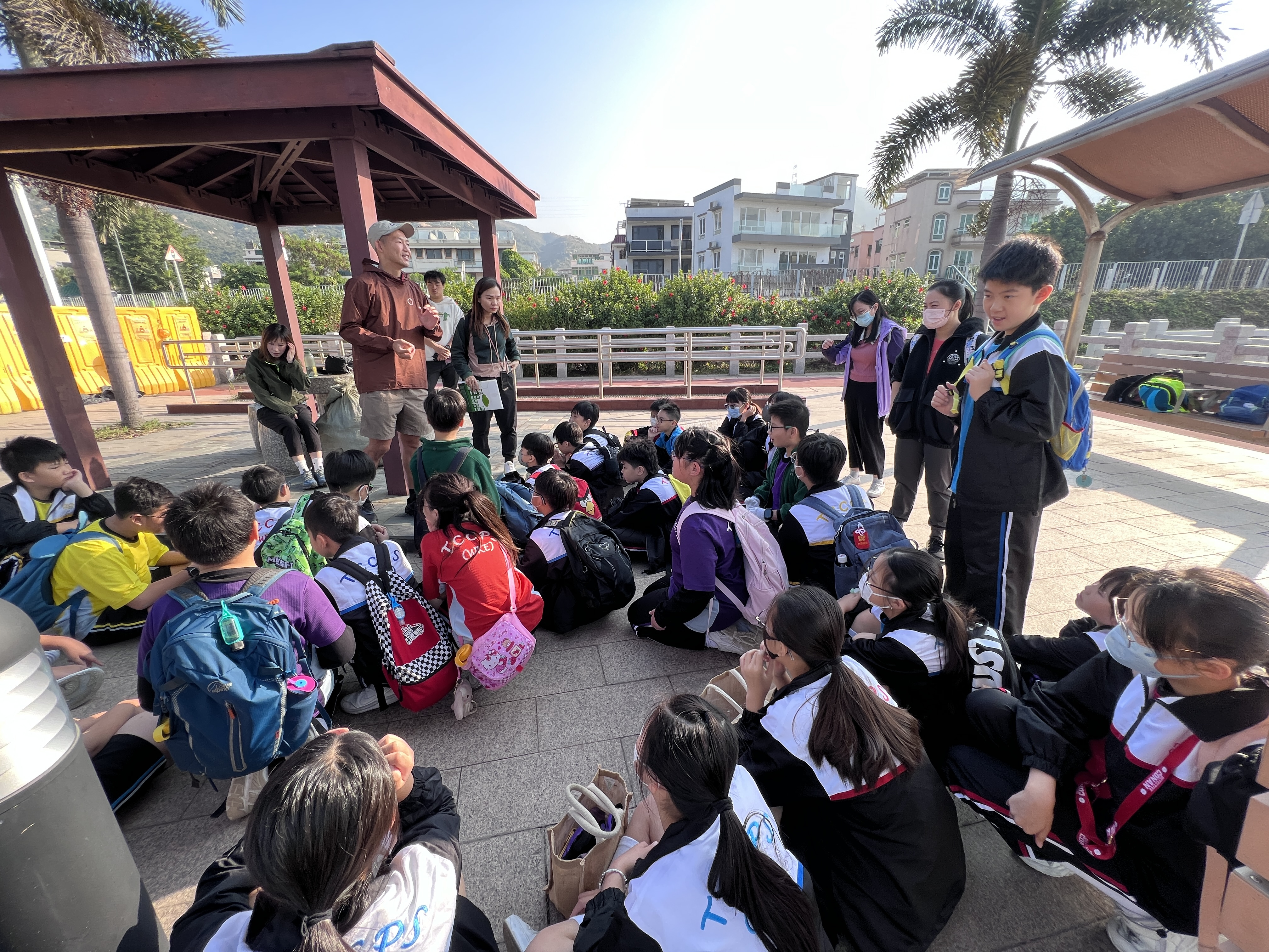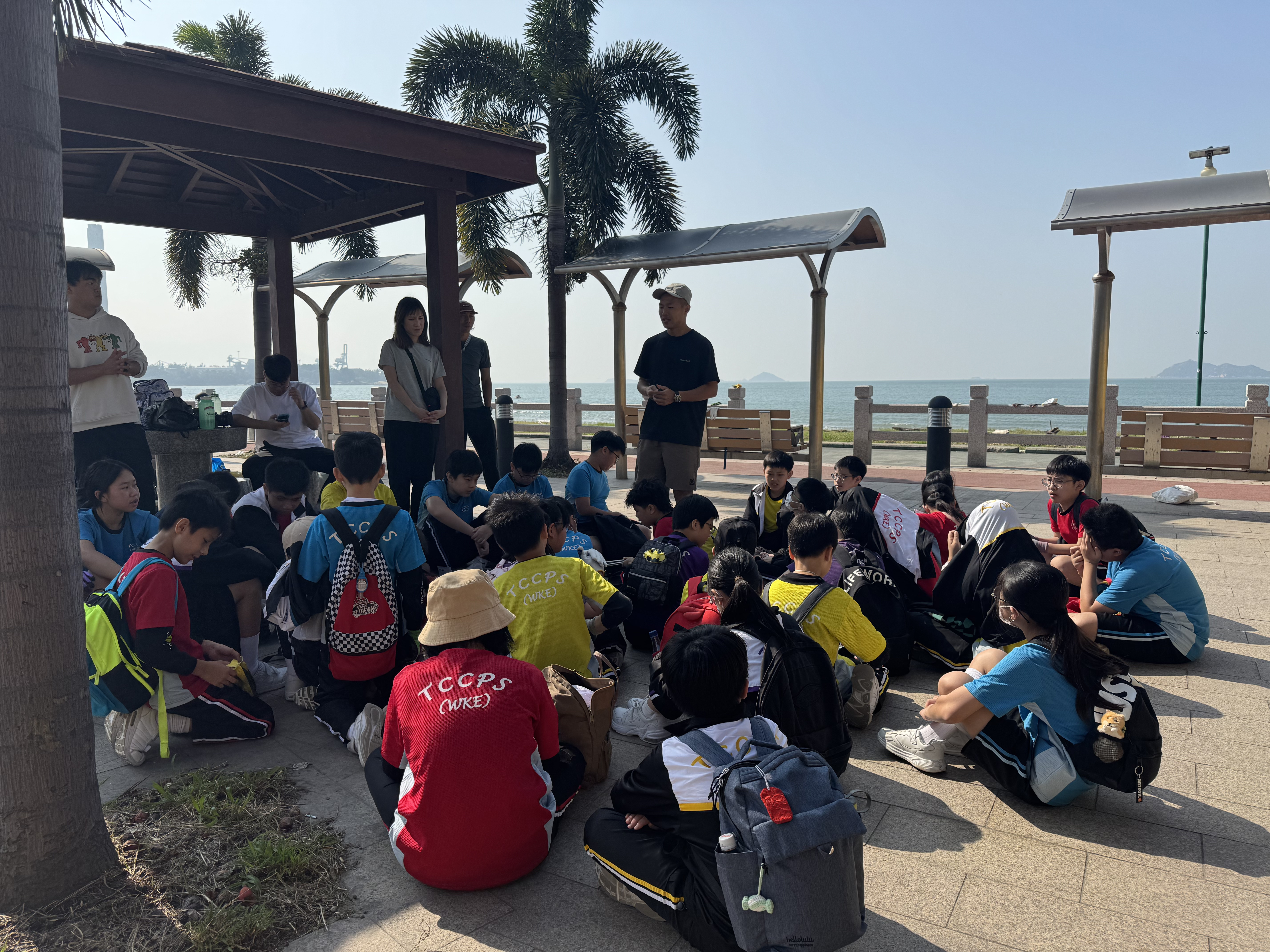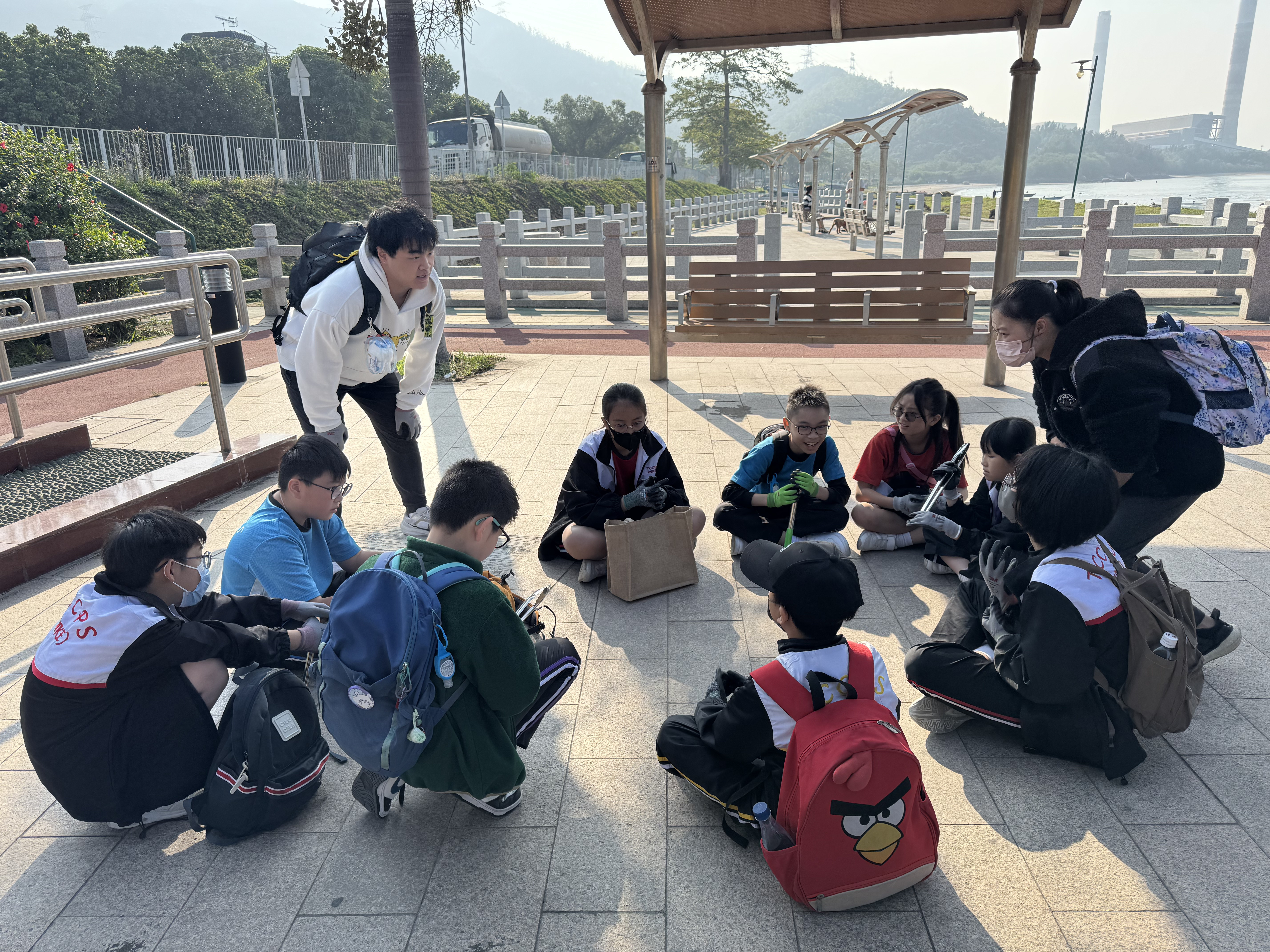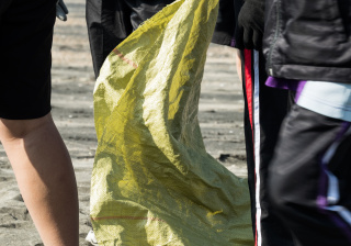 一眾學生身體力行在龍鼓灘參與清潔沙灘活動,為保護環境出一分力。