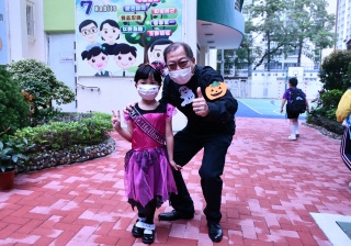 同學們穿著萬聖節服裝回校參與本年度的萬聖節服飾比賽,看看他們扮鬼扮馬的裝扮,十分開心,可説是疫情下的一點歡樂!