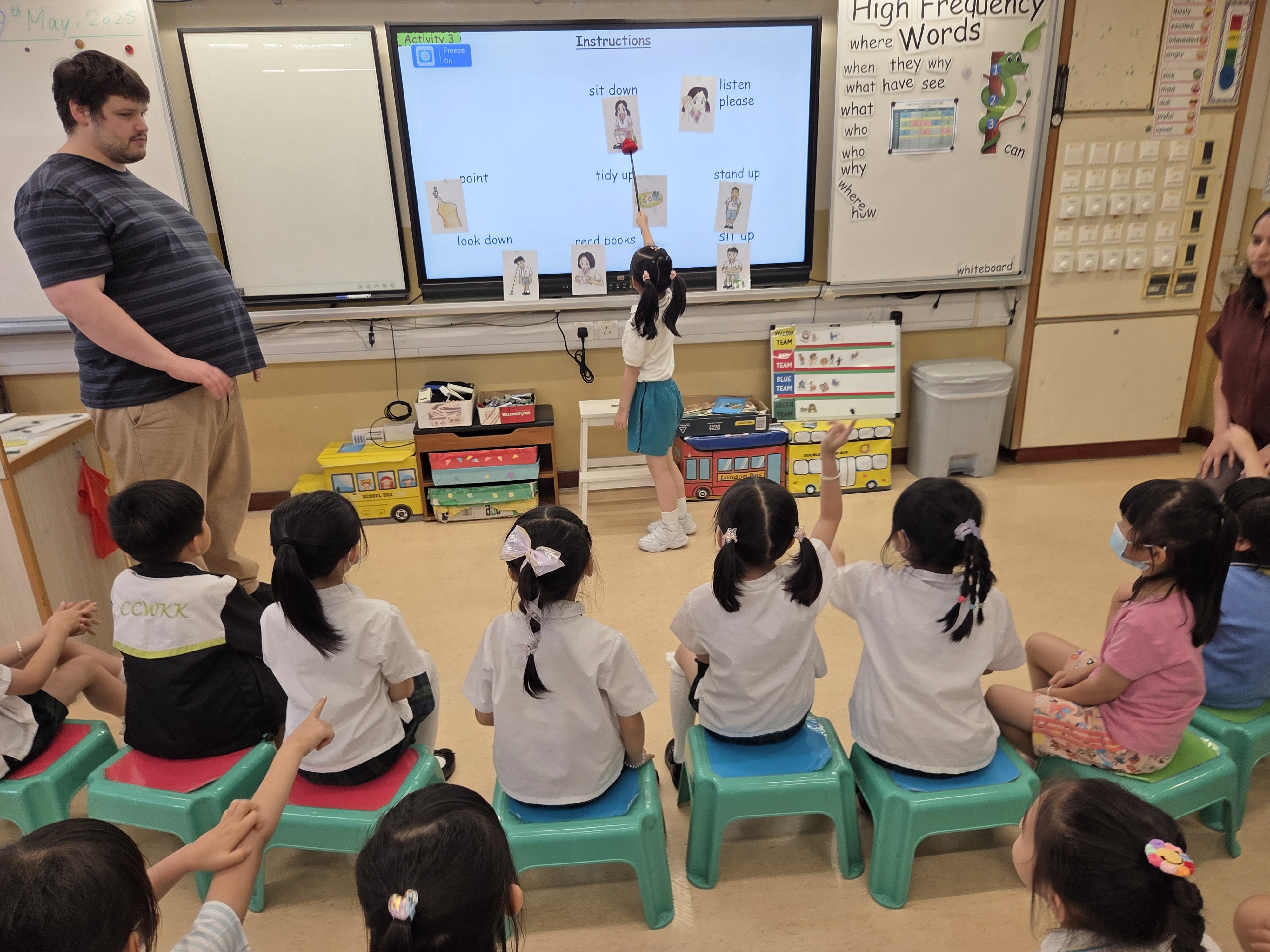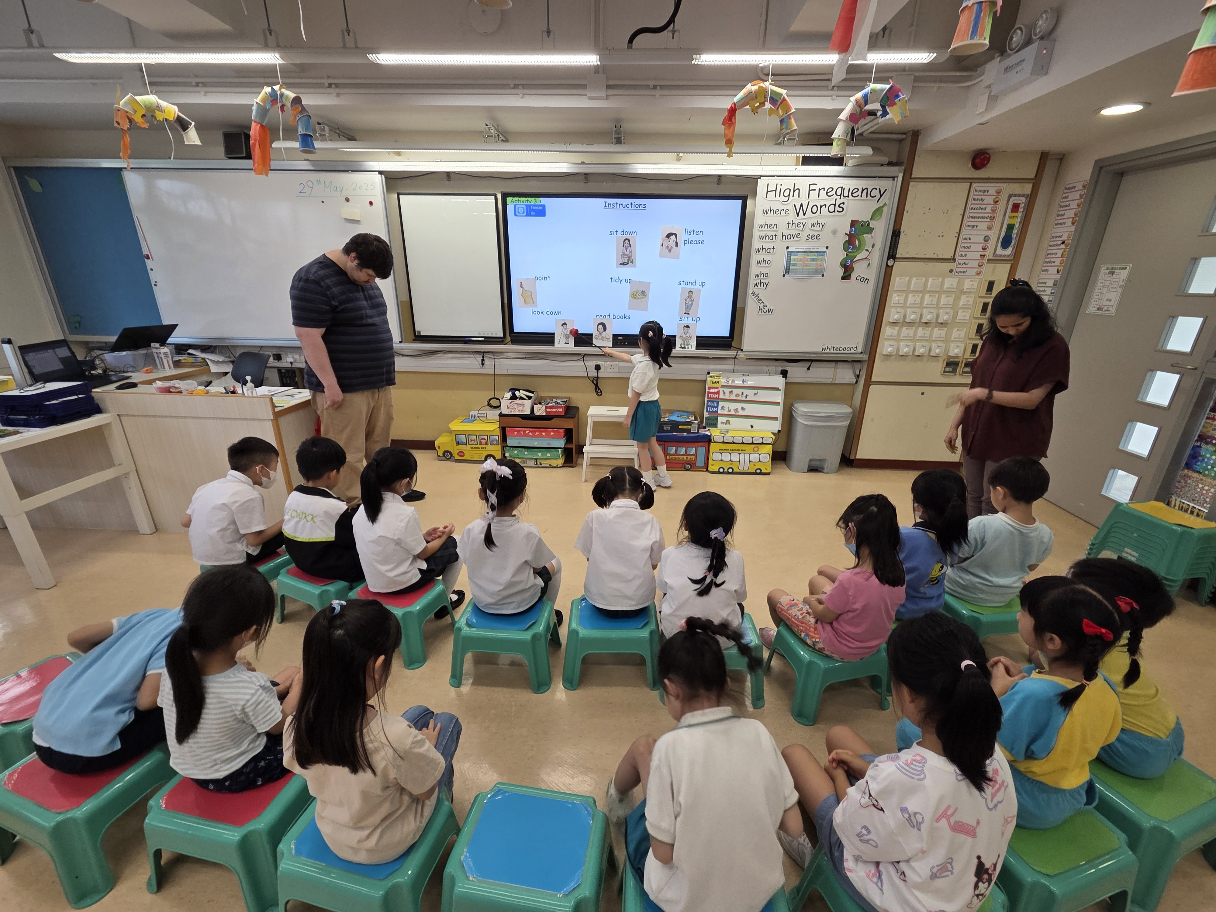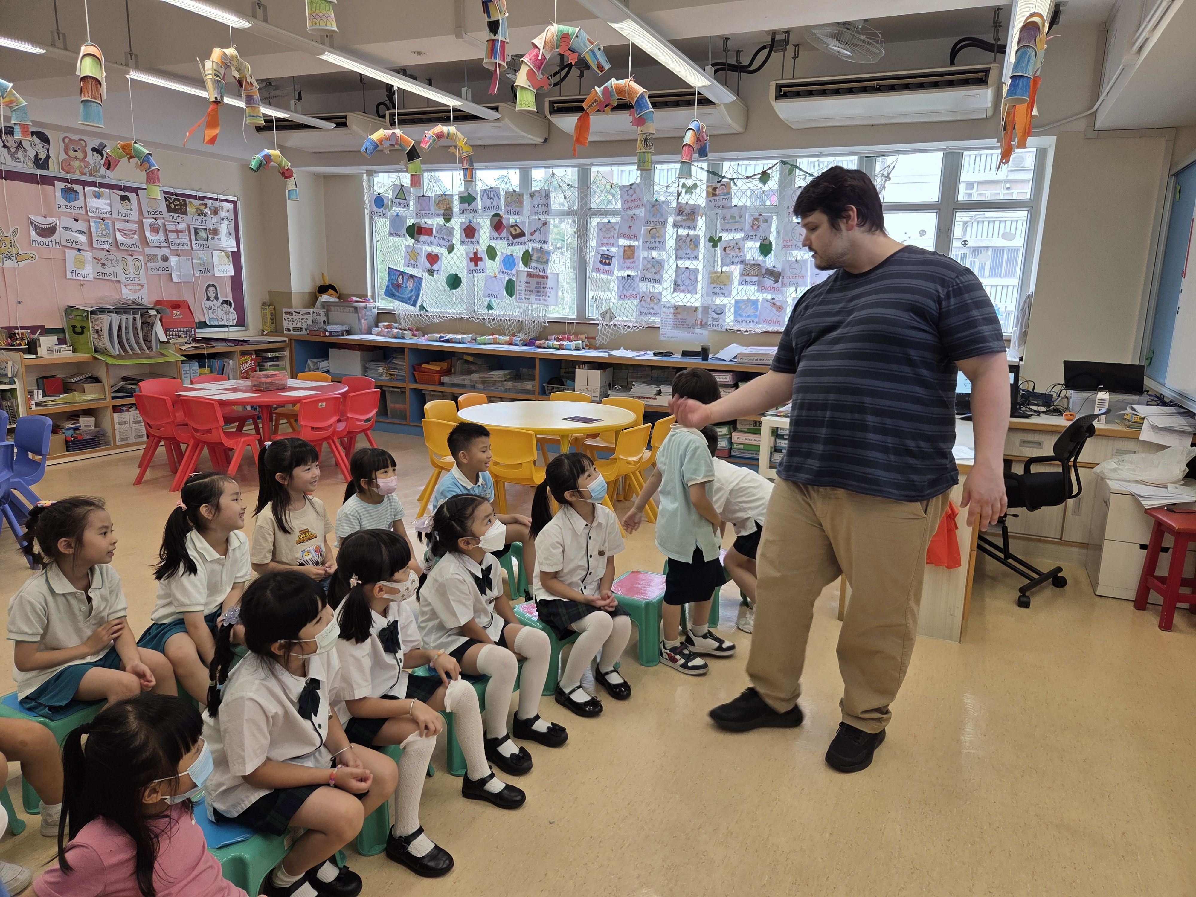 為了讓本校準小一同學及早適應小學校園生活,並有機會認識兩位外籍老師Mr Mark及Miss Arpita,我們邀請了準小一同學們於5月20、22、27及29日分成A1組及B1組回校參與本年度英語FUN FUN營課程。過程中,活潑好動的同學們可以和外籍老師一同閱讀英文圖書、參與富趣味性的英語互動遊戲及動手做手工,他們都表現得十分雀躍,課後更會主動與外籍老師們溝通。完成課程後,同學們可獲頒修業證書,以表揚他們的努力,期望第二期課程會有更多準小一同學參與活動。