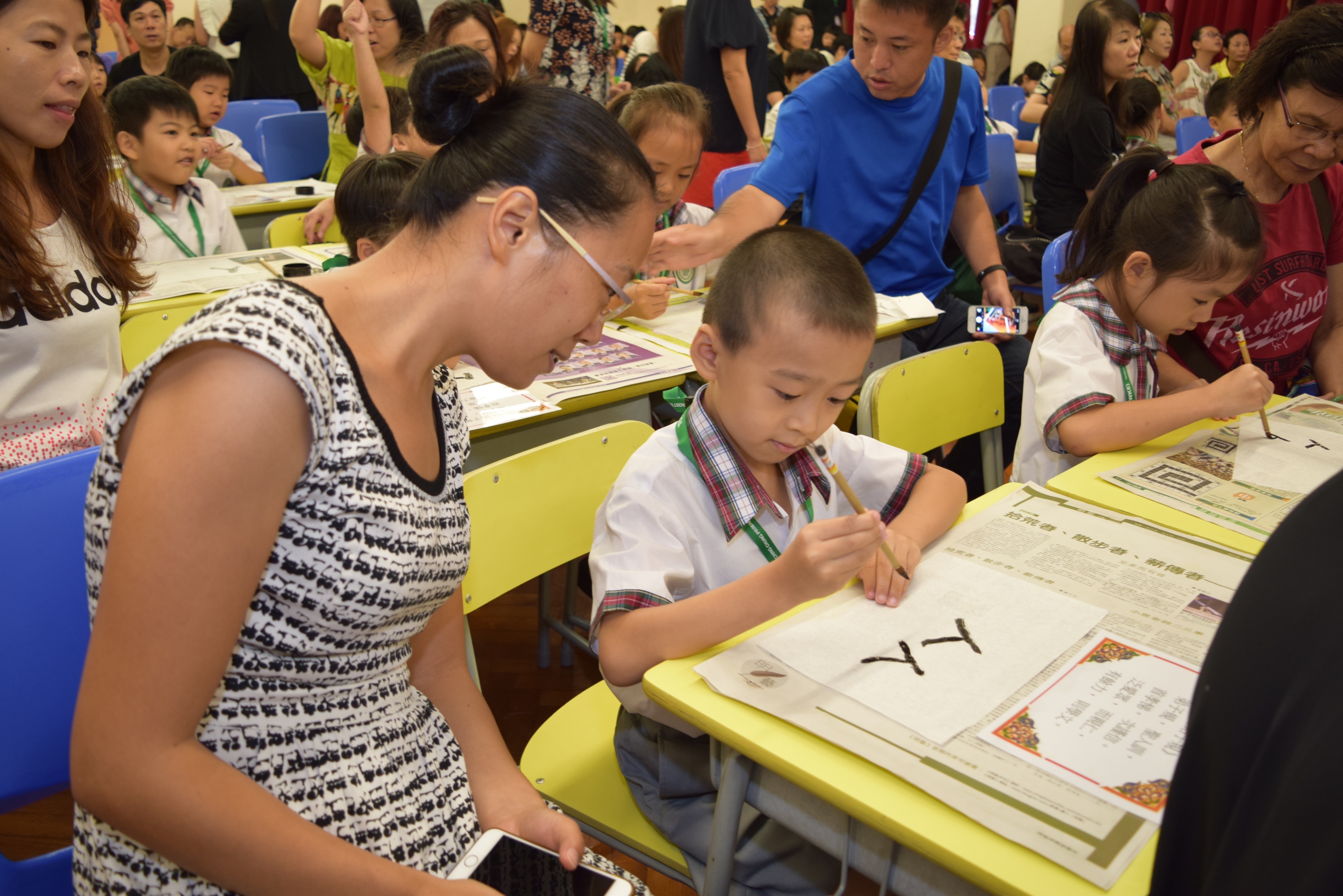 為了讓小一新生能盡早認識本校及適應小學的校園生活,本校分別於8月24日、25日舉行了「小一迎新日」及「小一適應日」。當中,除了安排校園活動給小一新生外,亦舉行了「小一新生開筆禮」,使學生明白到已進入了一個新的學習階段。此外,亦邀請了專家為家長講解如何協助子女適應小學生活,及由各班中、英、數科任指出子女在學習及功課上要注意的事項,好讓家長能為子女提供適切的支援。