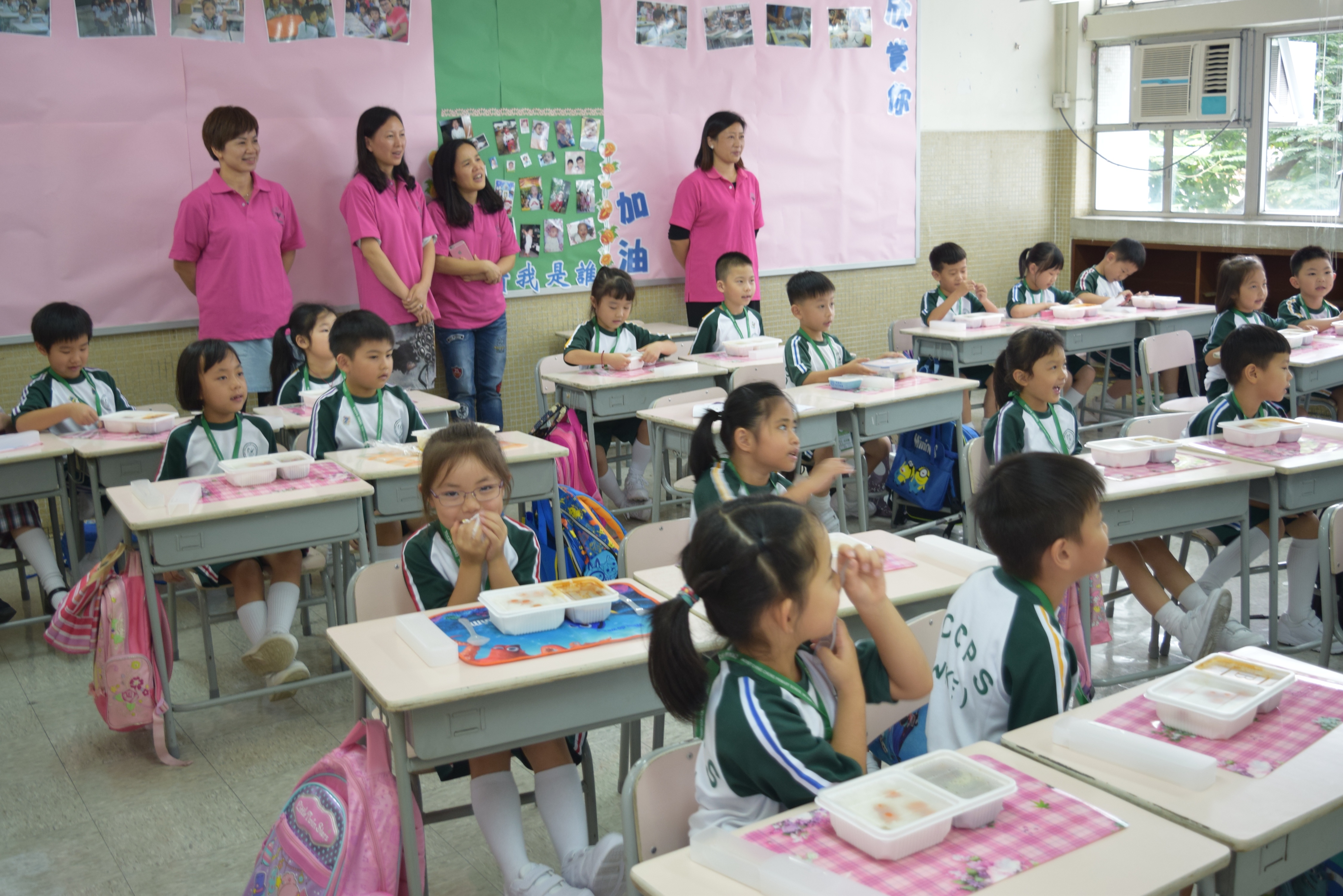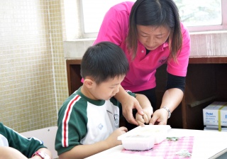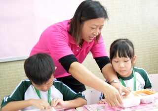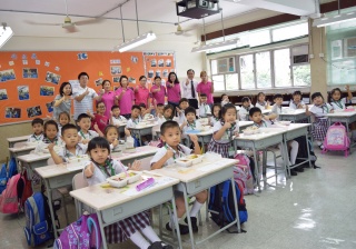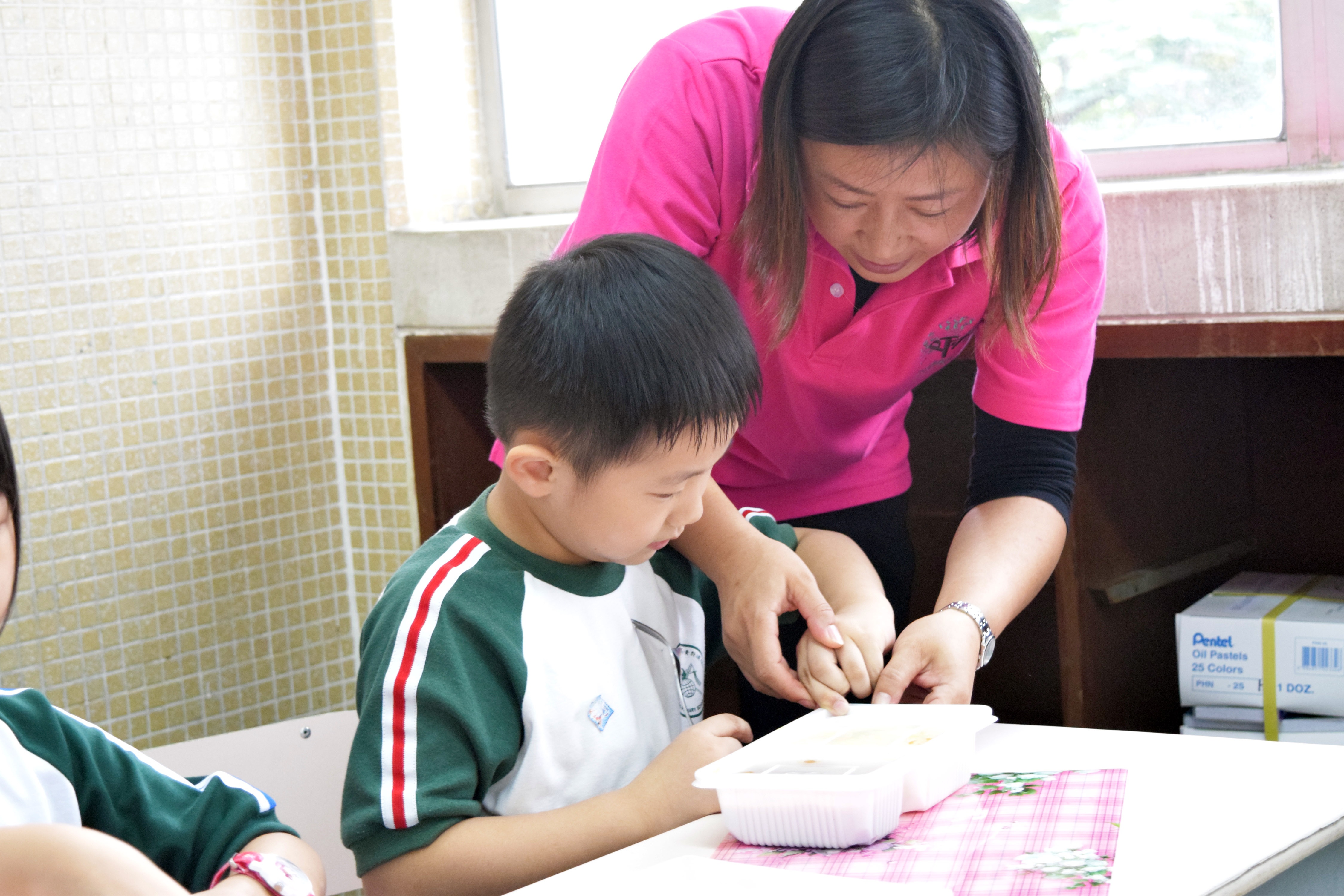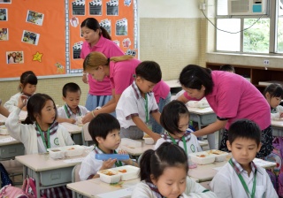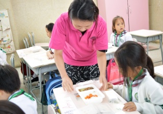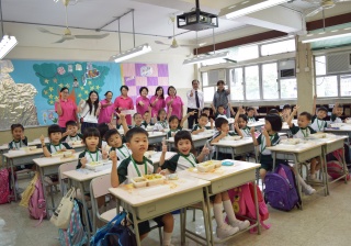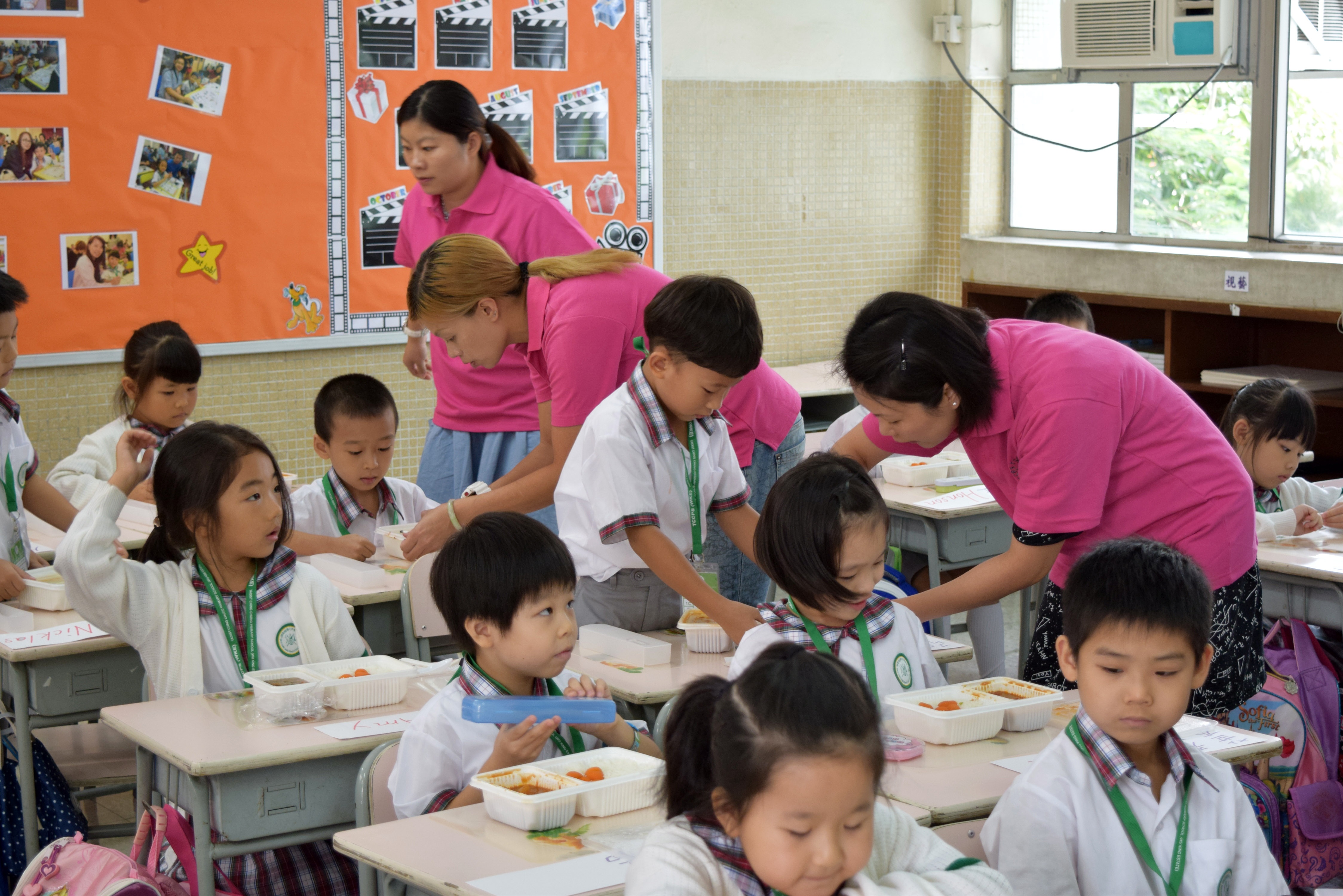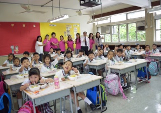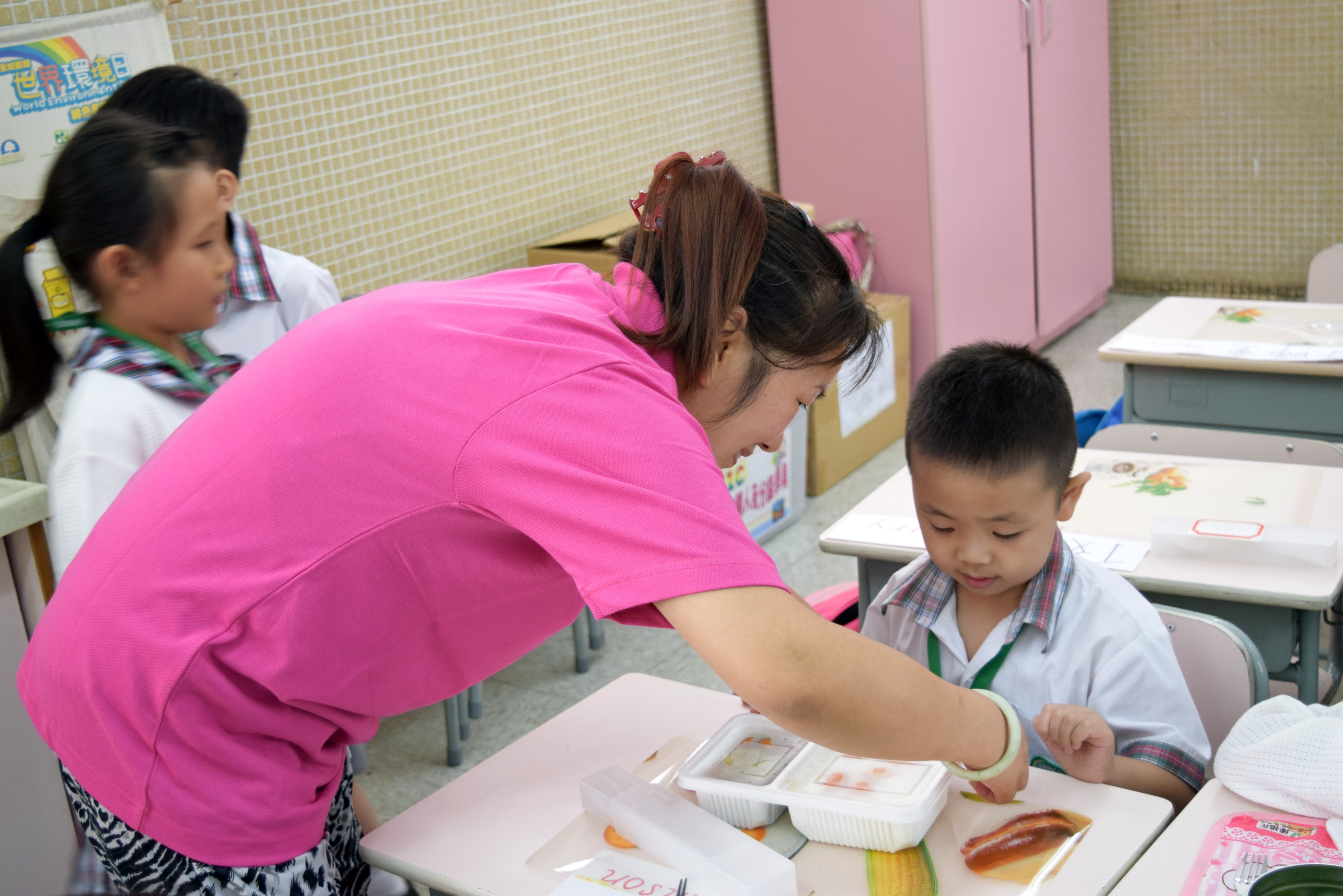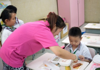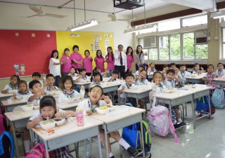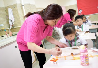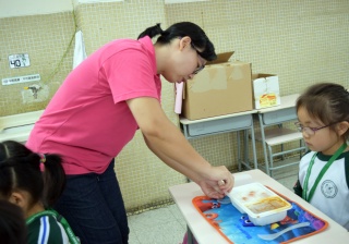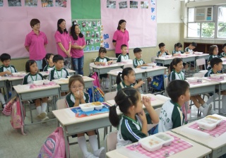 家長義工協助小一同學午膳