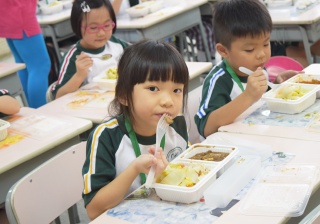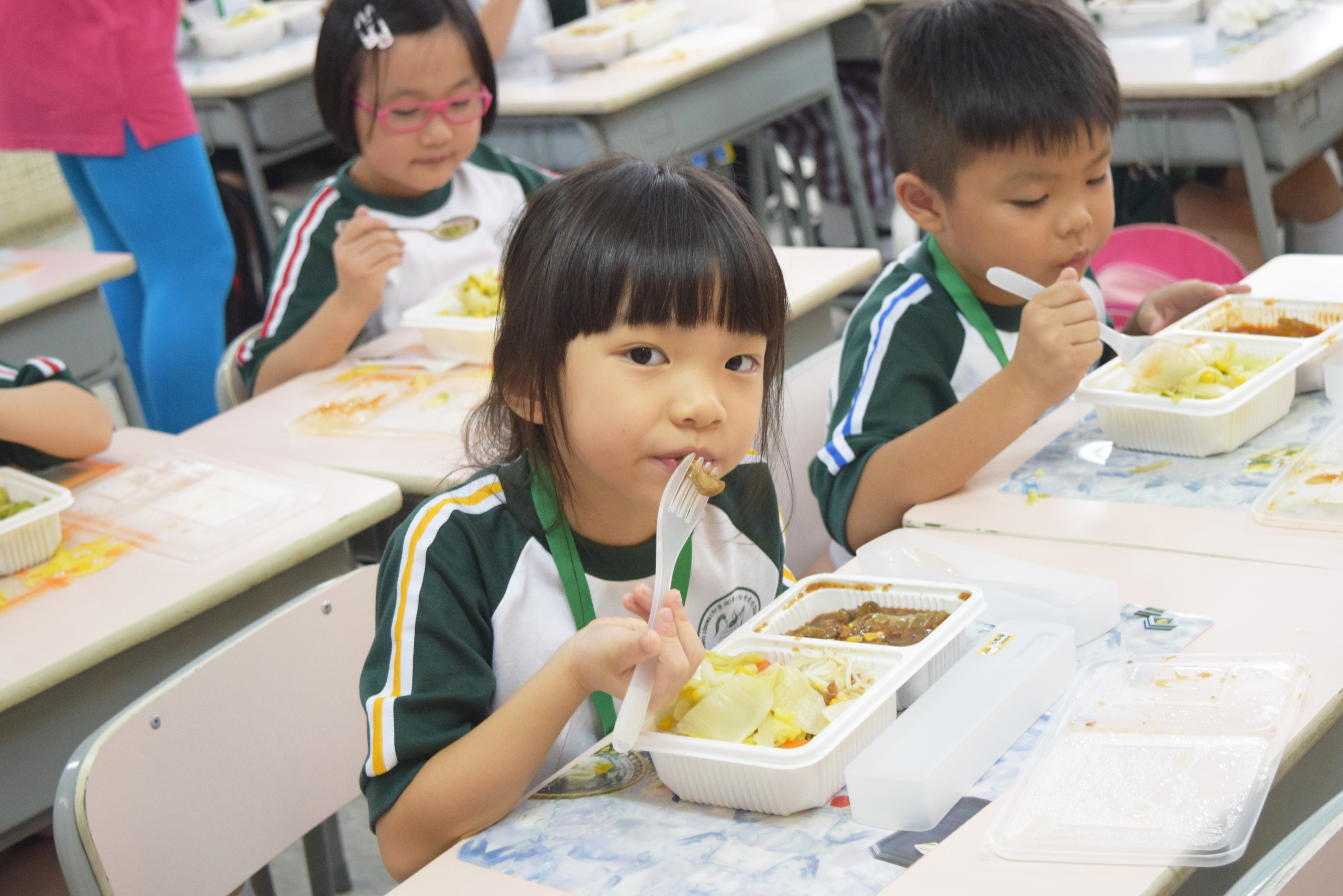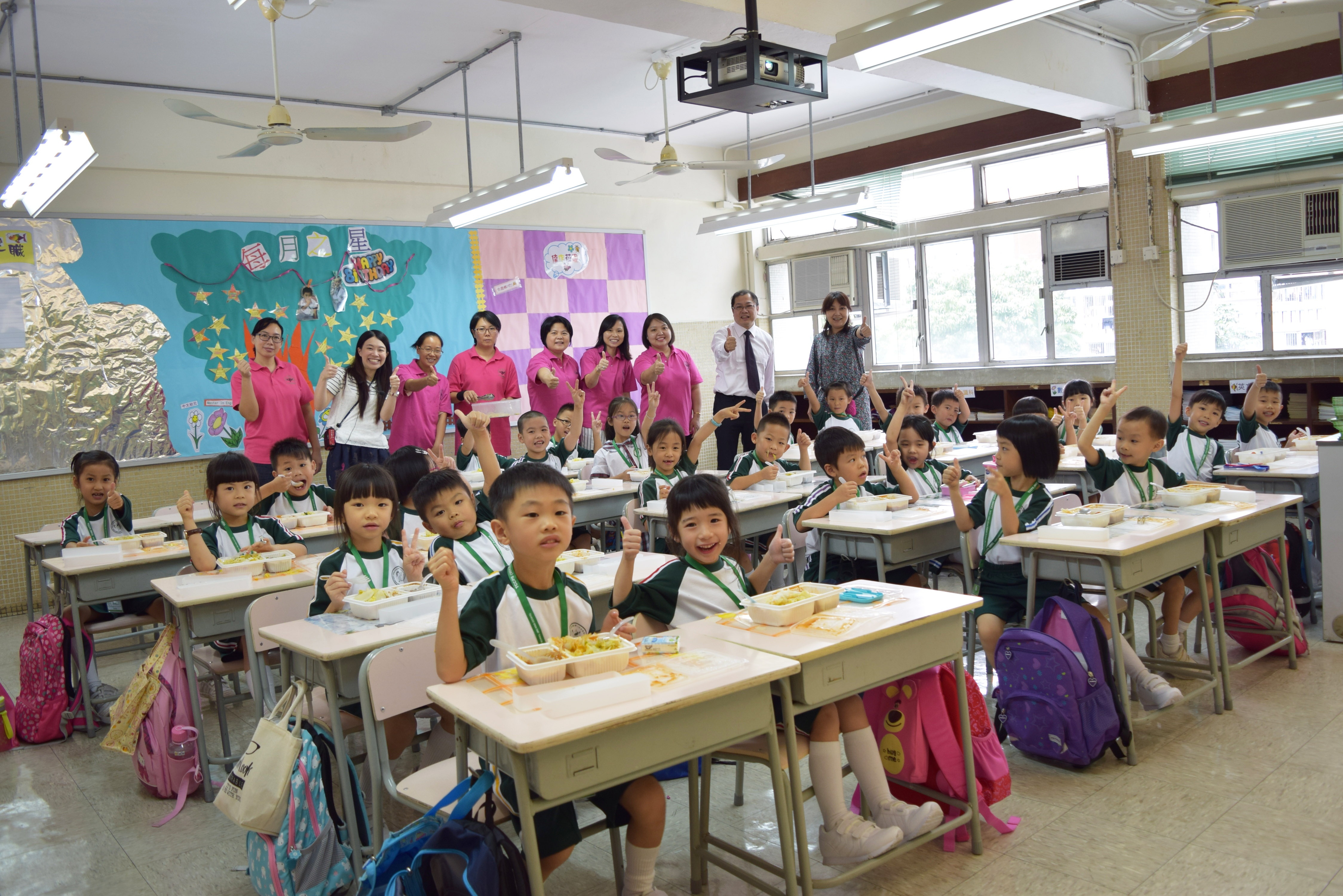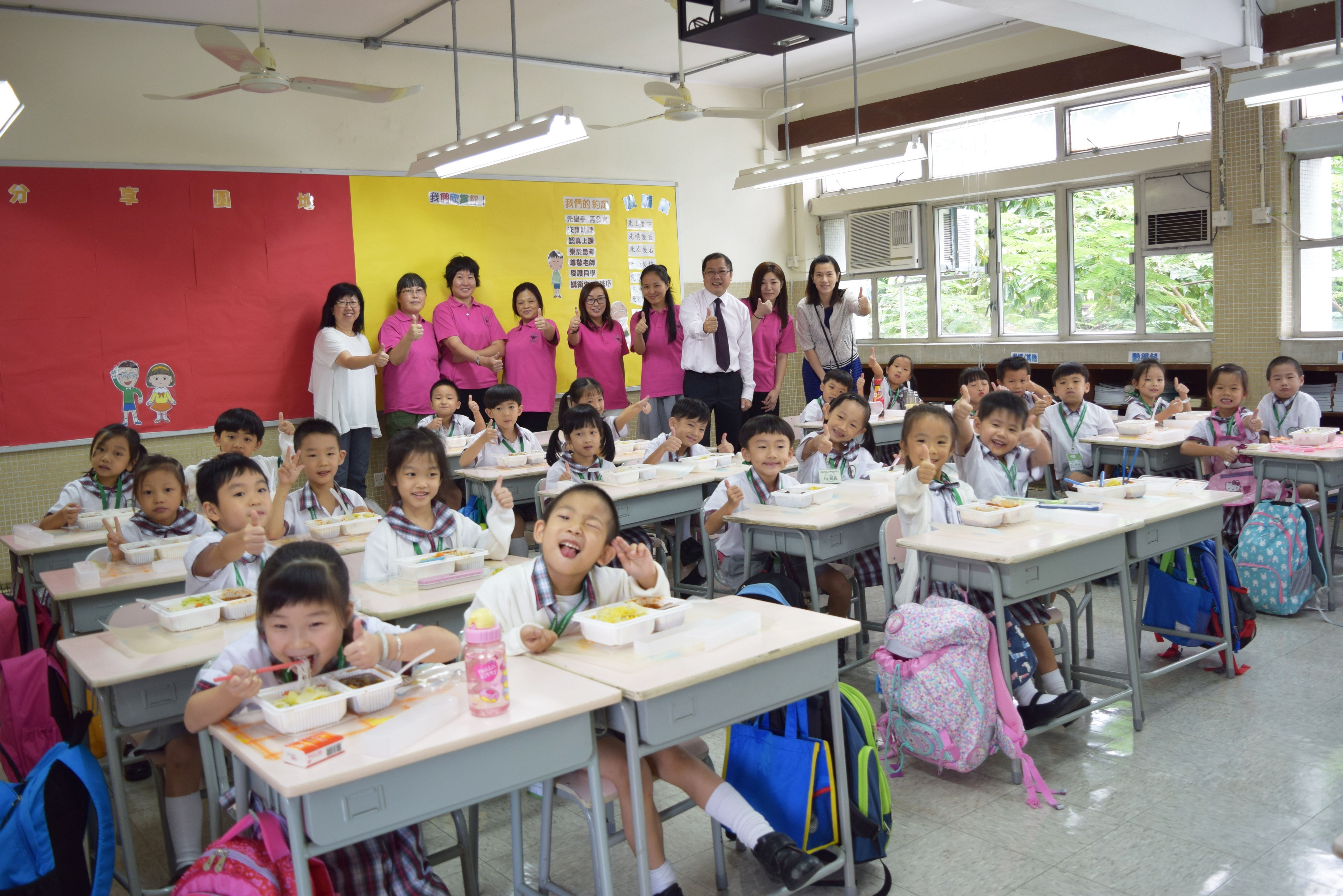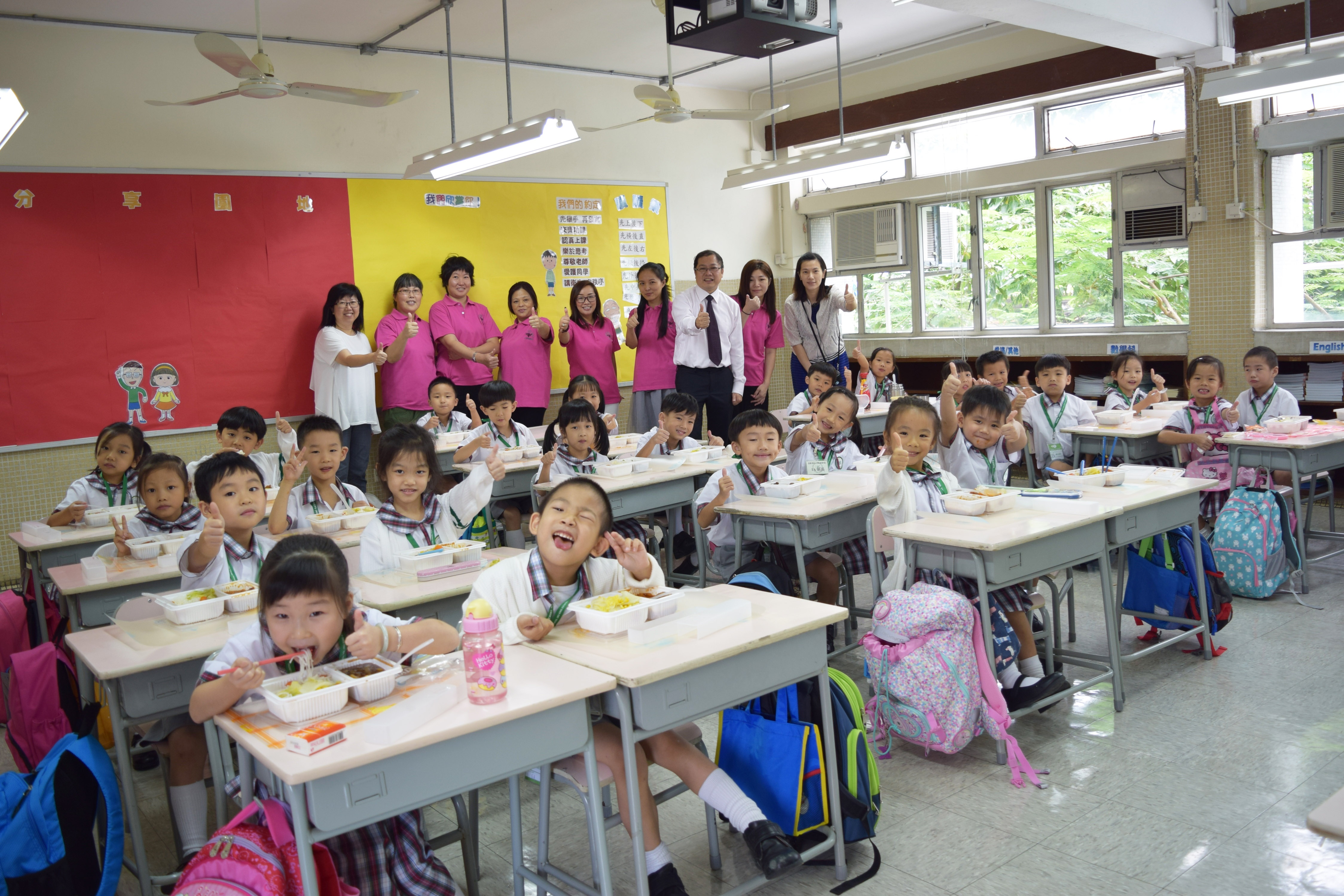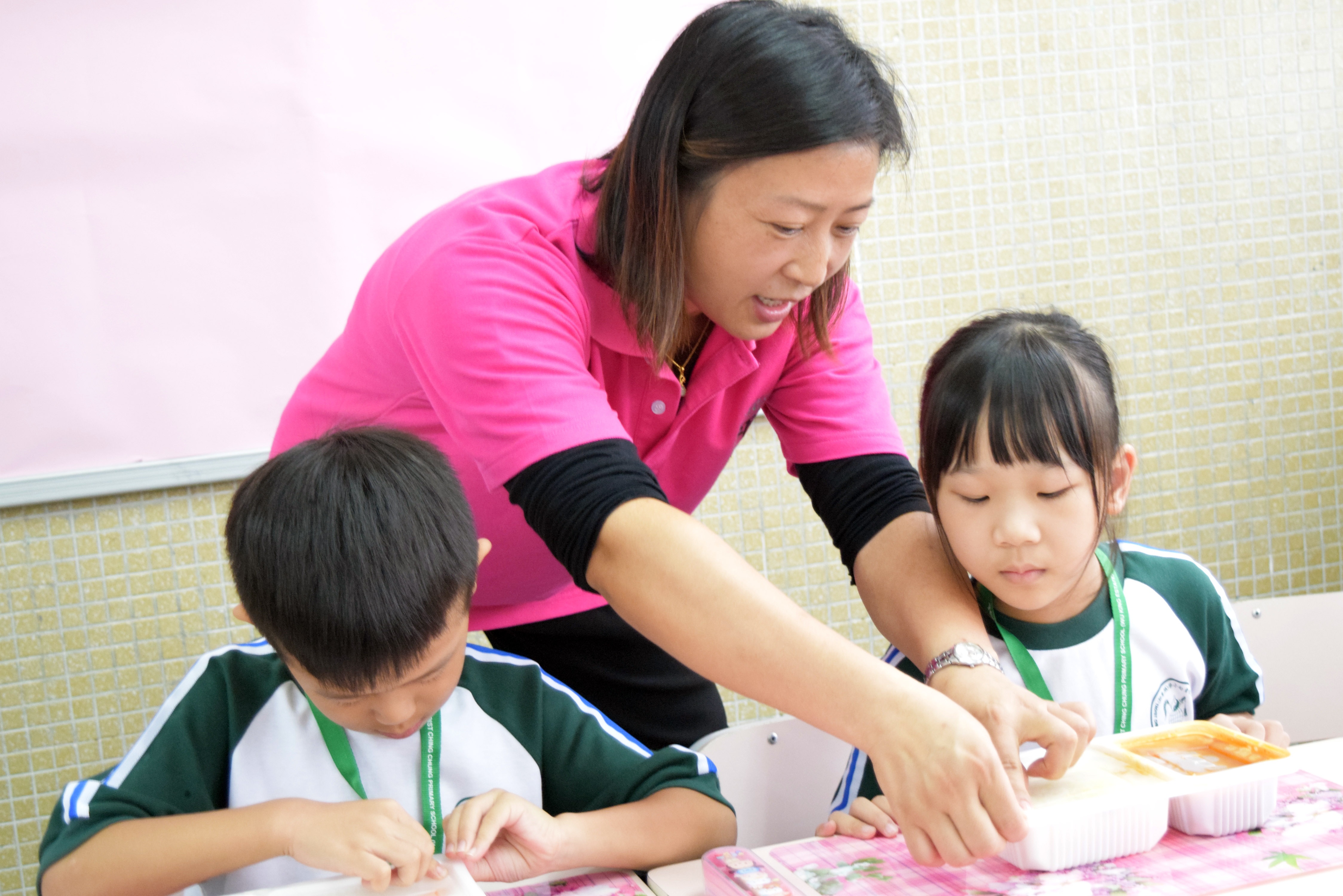 家長義工協助小一同學午膳
