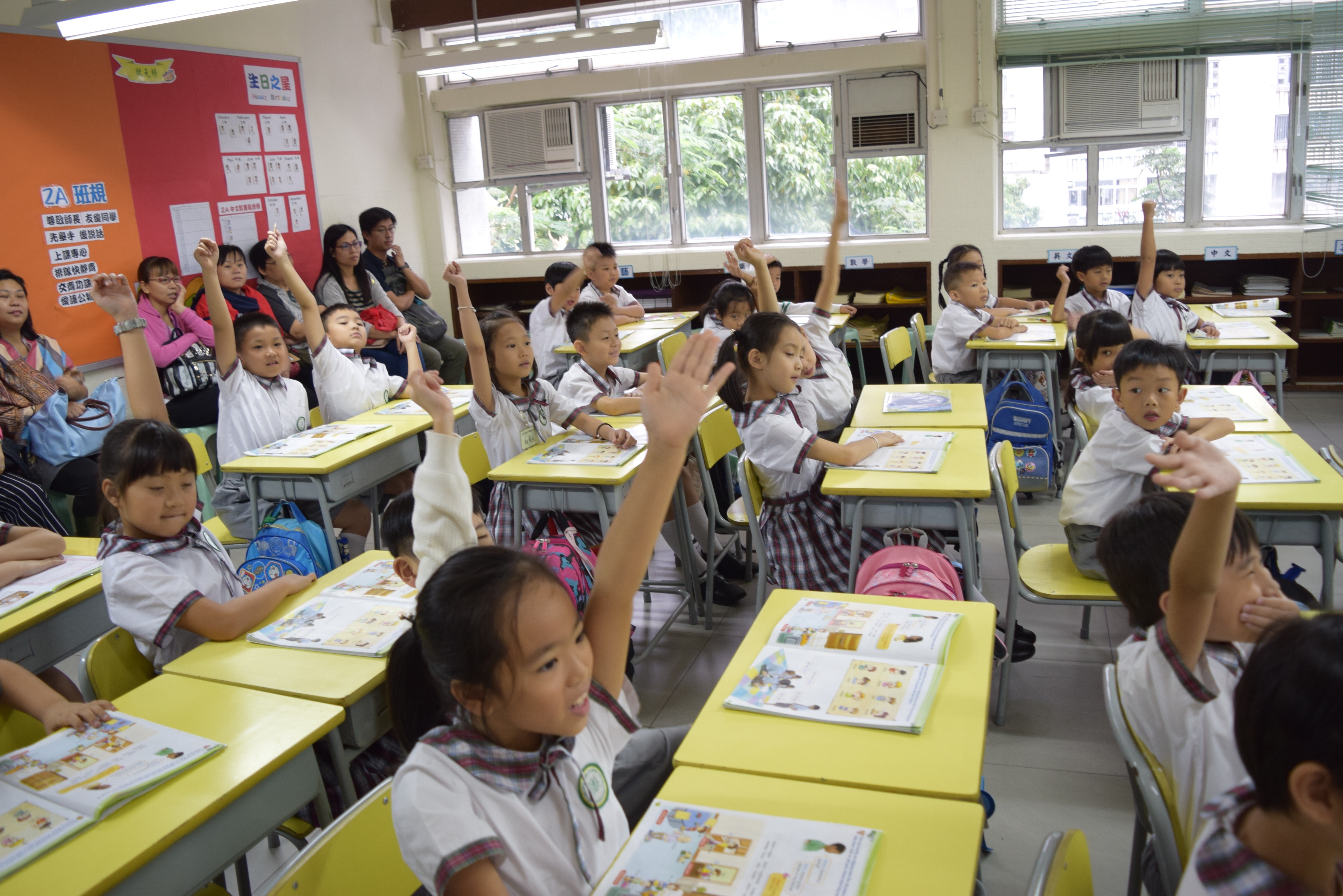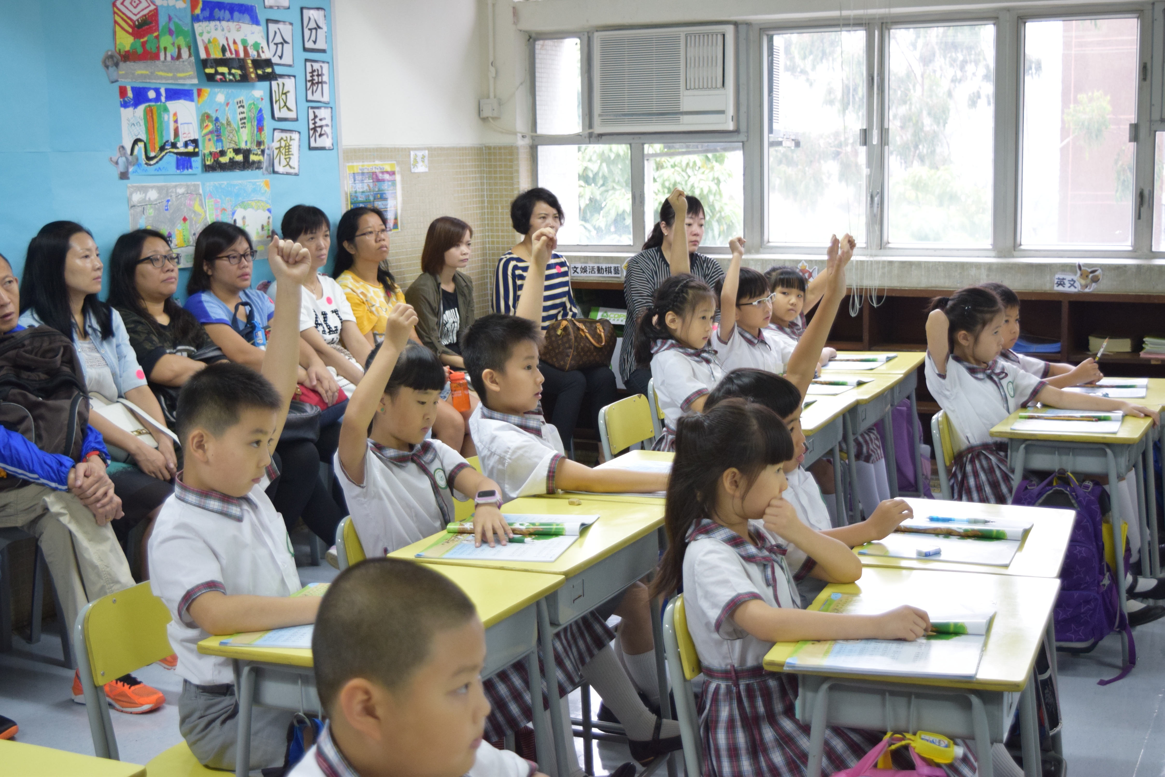 當天本校開放三班二年級的課堂,讓幼稚園家長觀課,以了解本校 老師的教學範式及同學的上課情況。