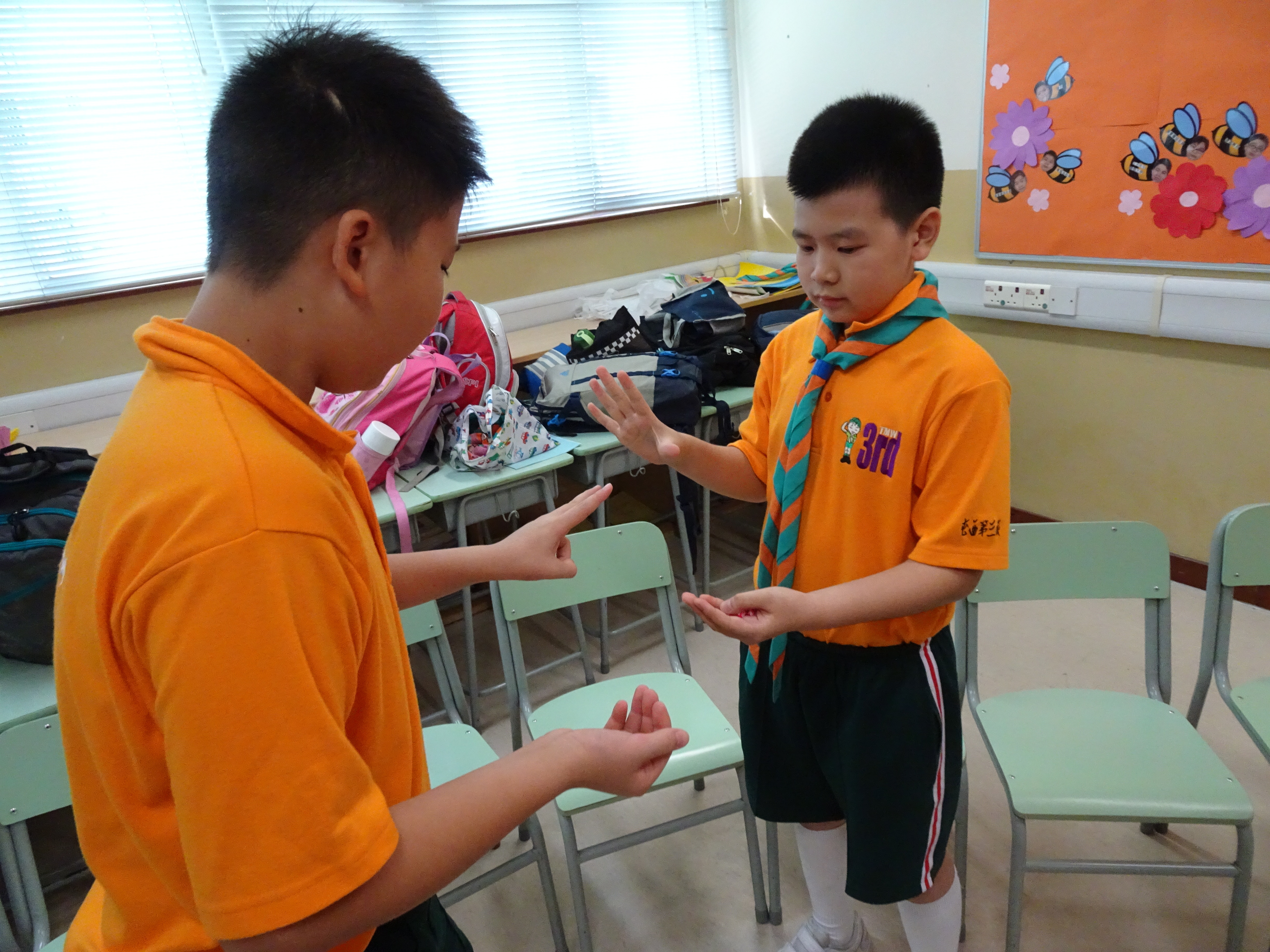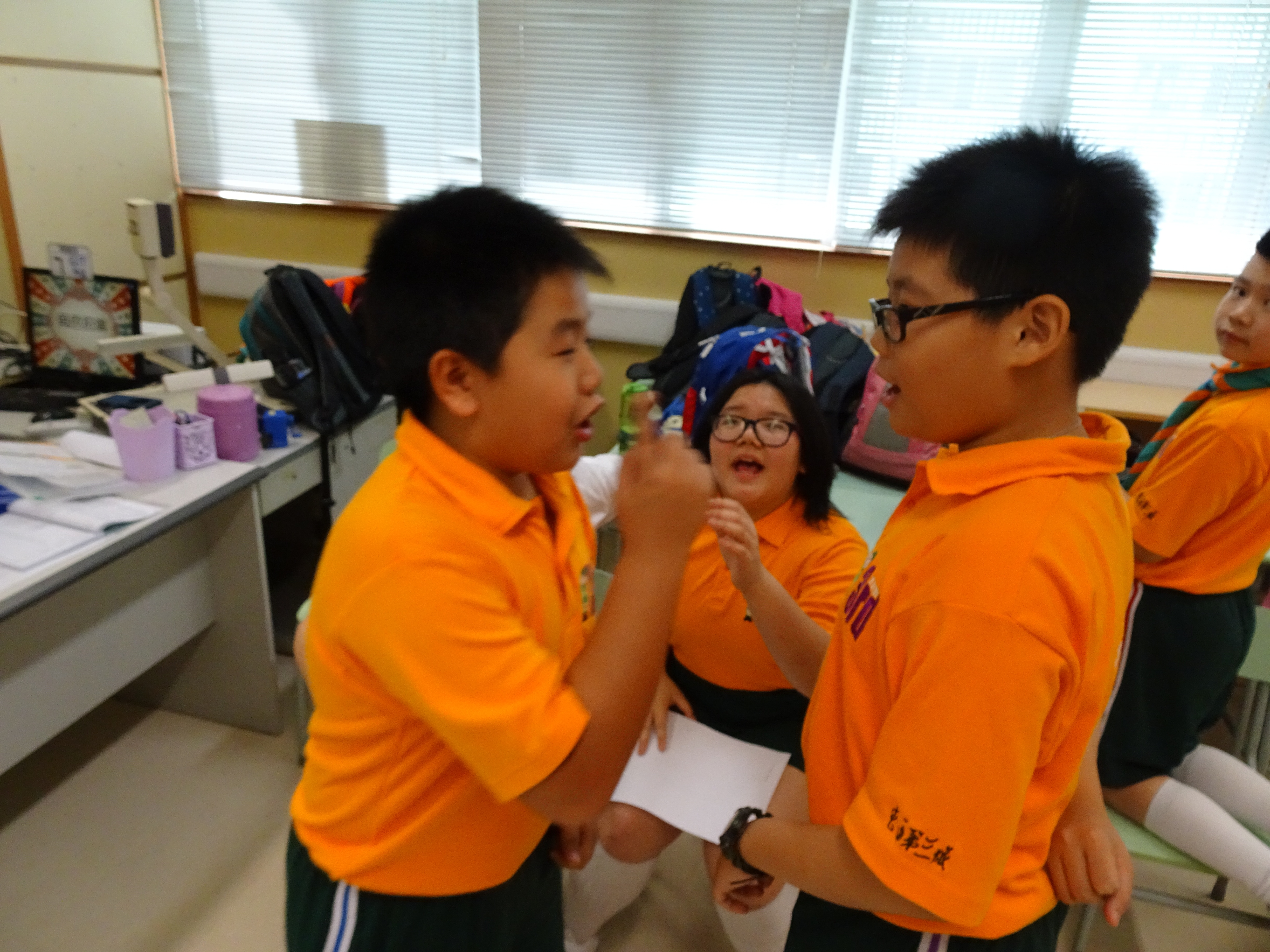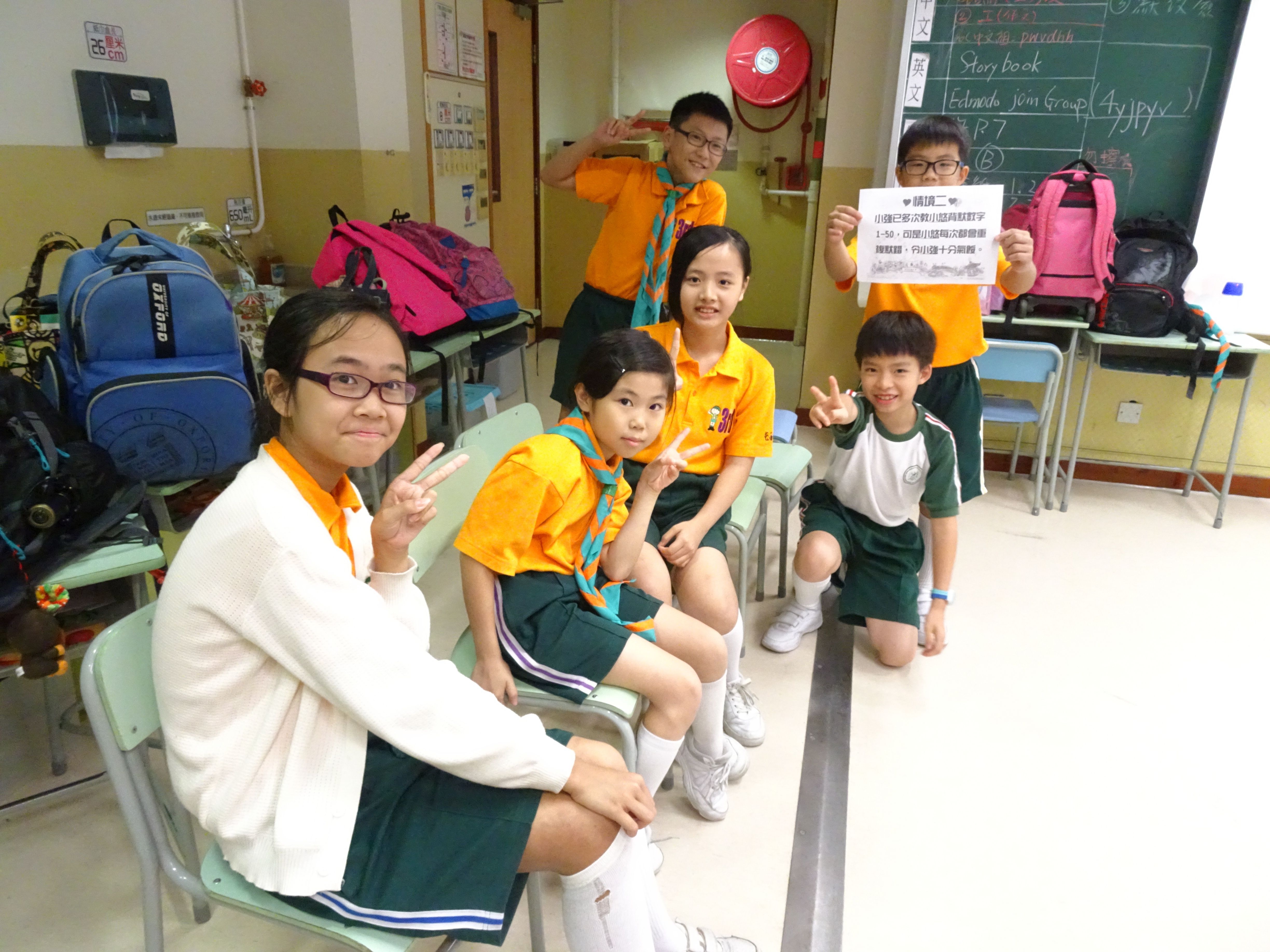 40名高年級的學生接受「大哥哥大姐姐」計劃訓練,計劃旨在幫助較多支援之小一學生盡快適應校園生活, 訓練期間學生表現積極投入,進行角色扮演時更創意滿分。