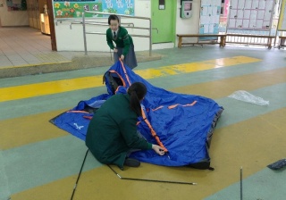 5A班幼童軍紮營訓練,準備出外露營。