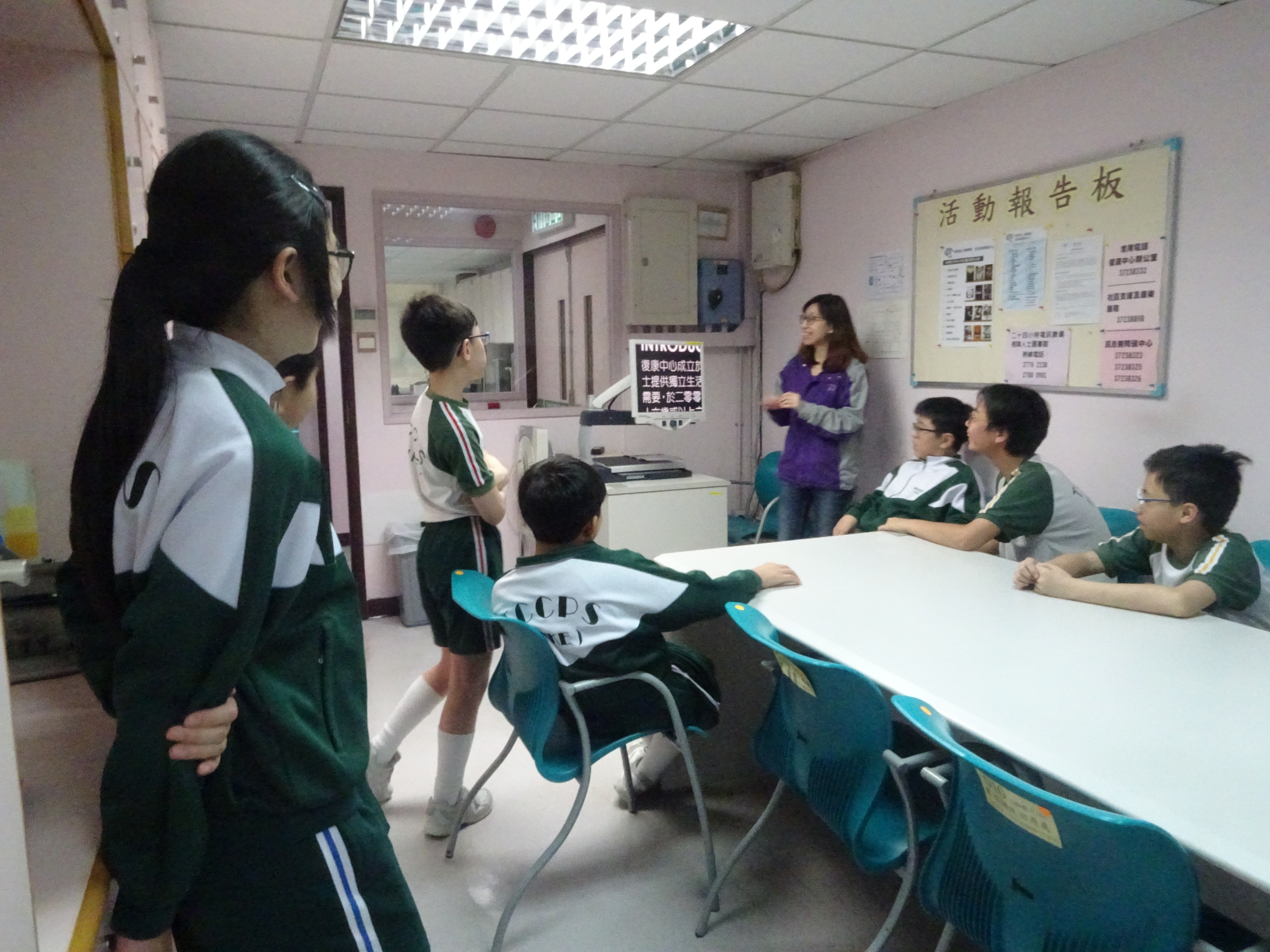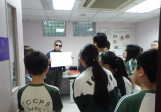 六年級「義想兵團」義工小組成員前往香港盲人輔導會復康中心參觀及與視障人員進行傾談,了解視障人士的
