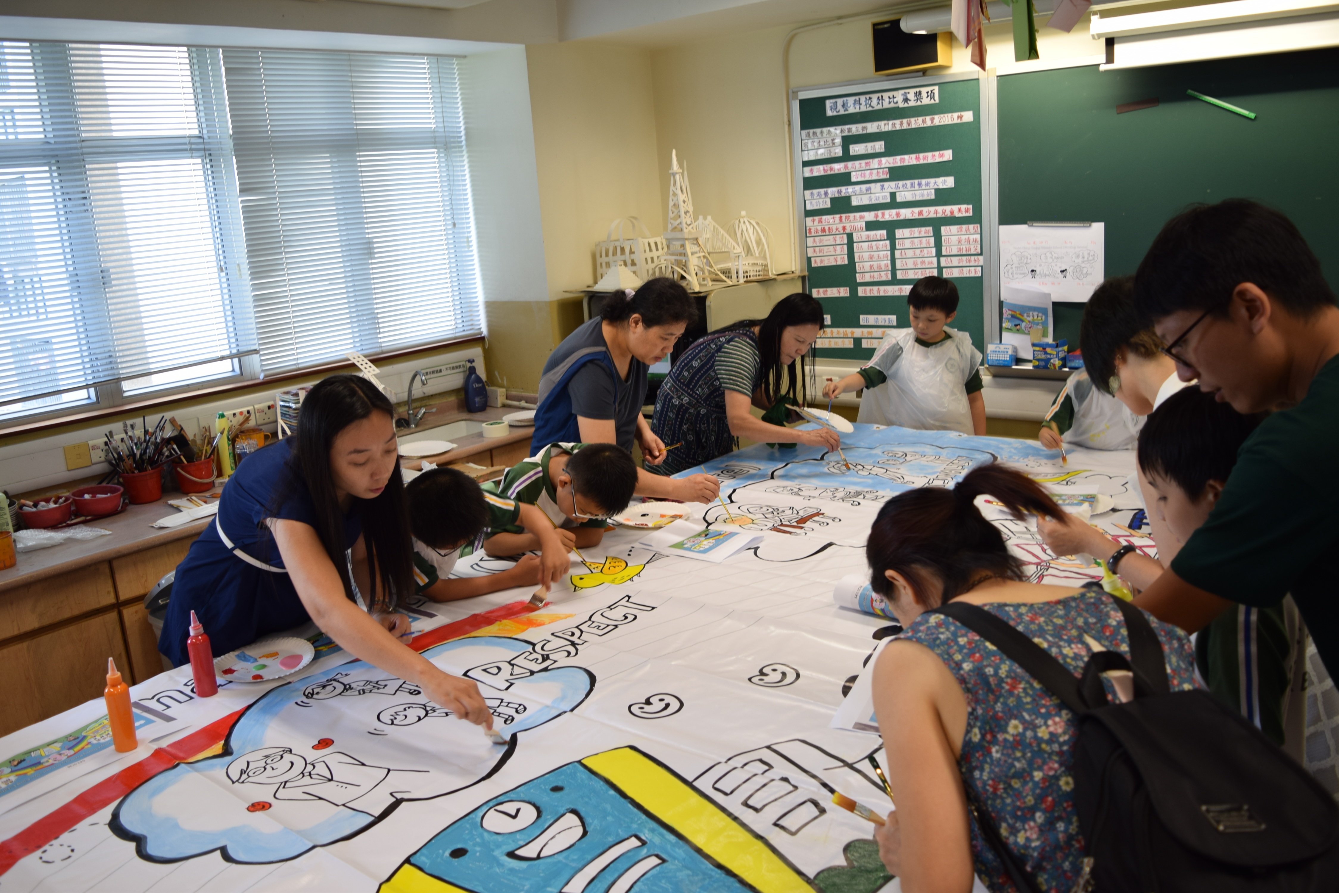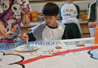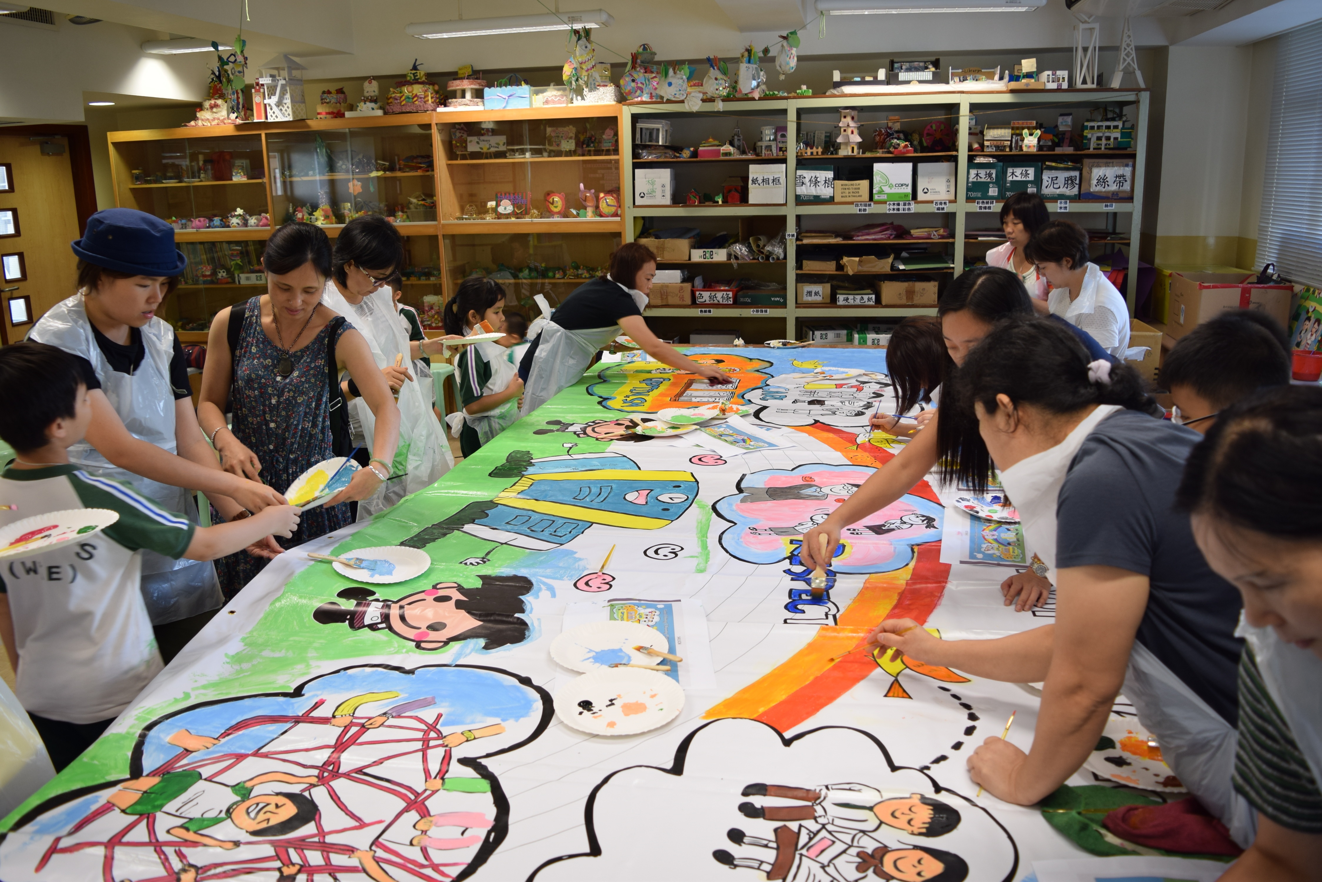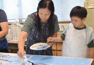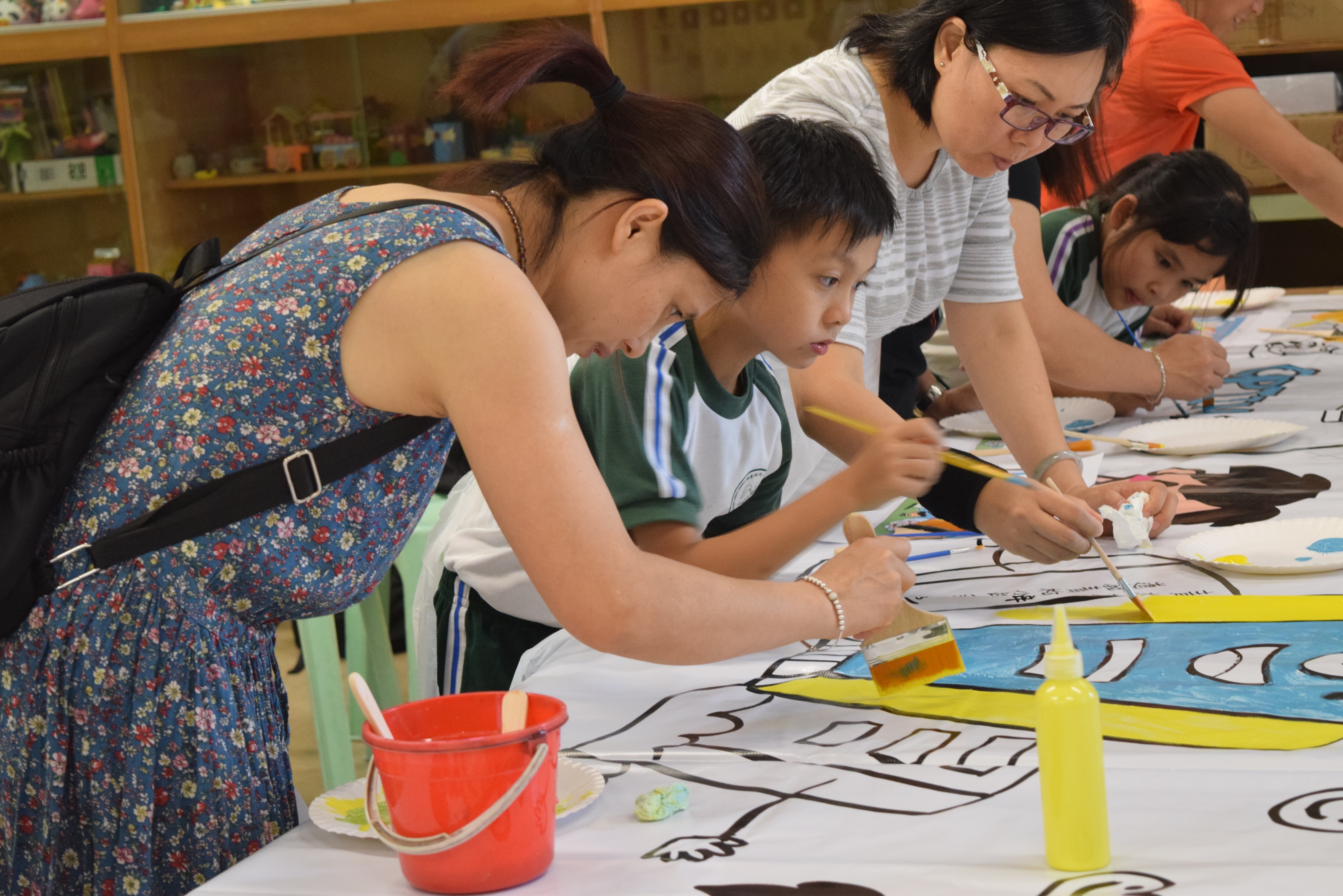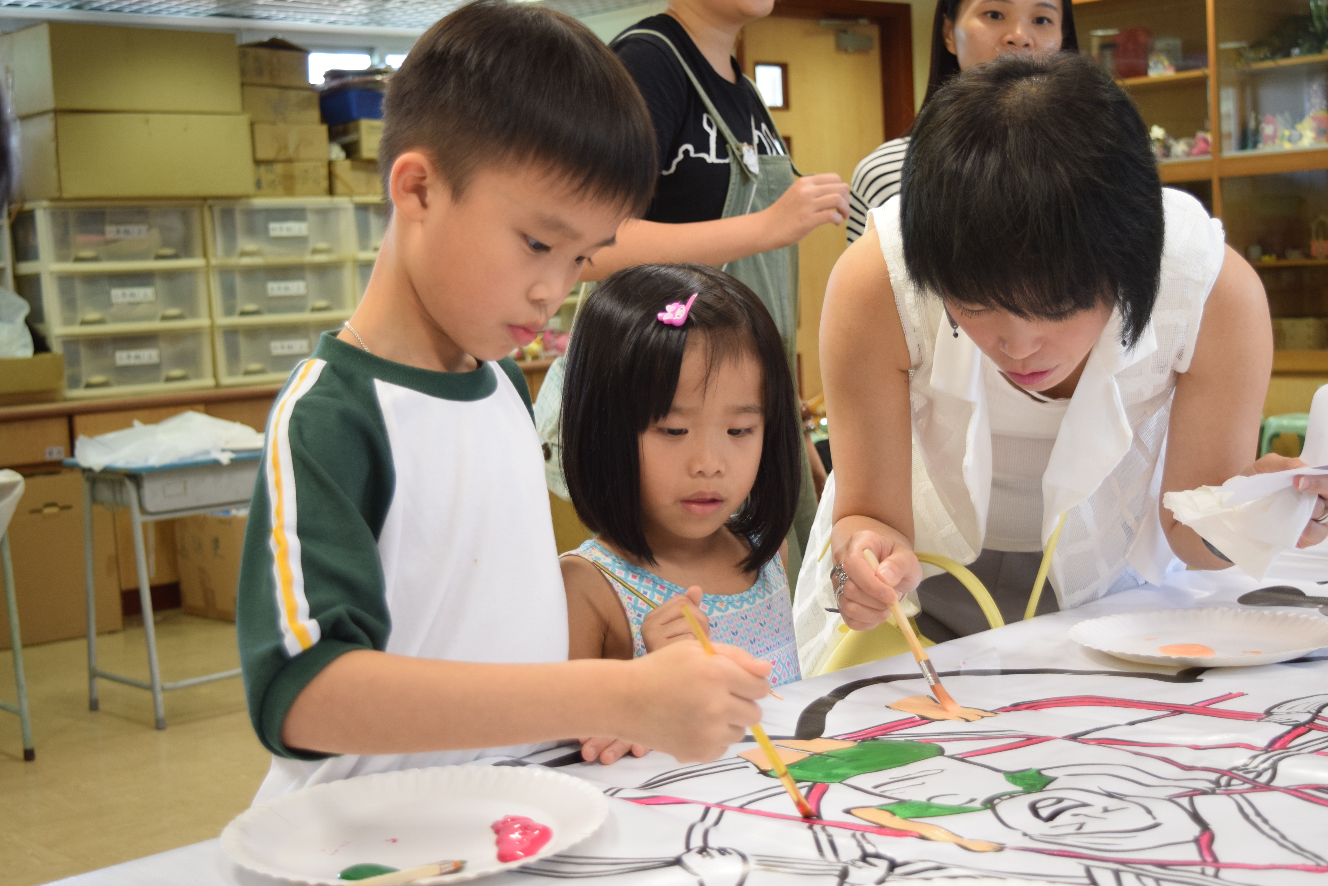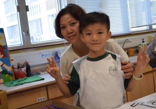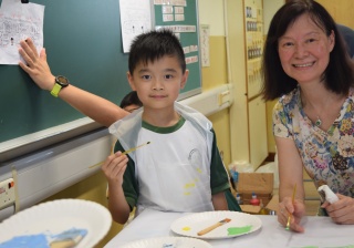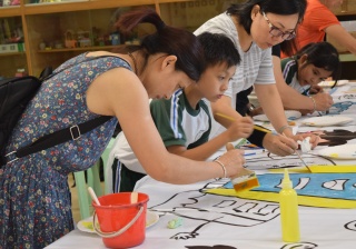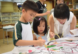 10對親子合力製作油畫,家長及小朋友都認真投入活動,體驗不一樣的親子互動。