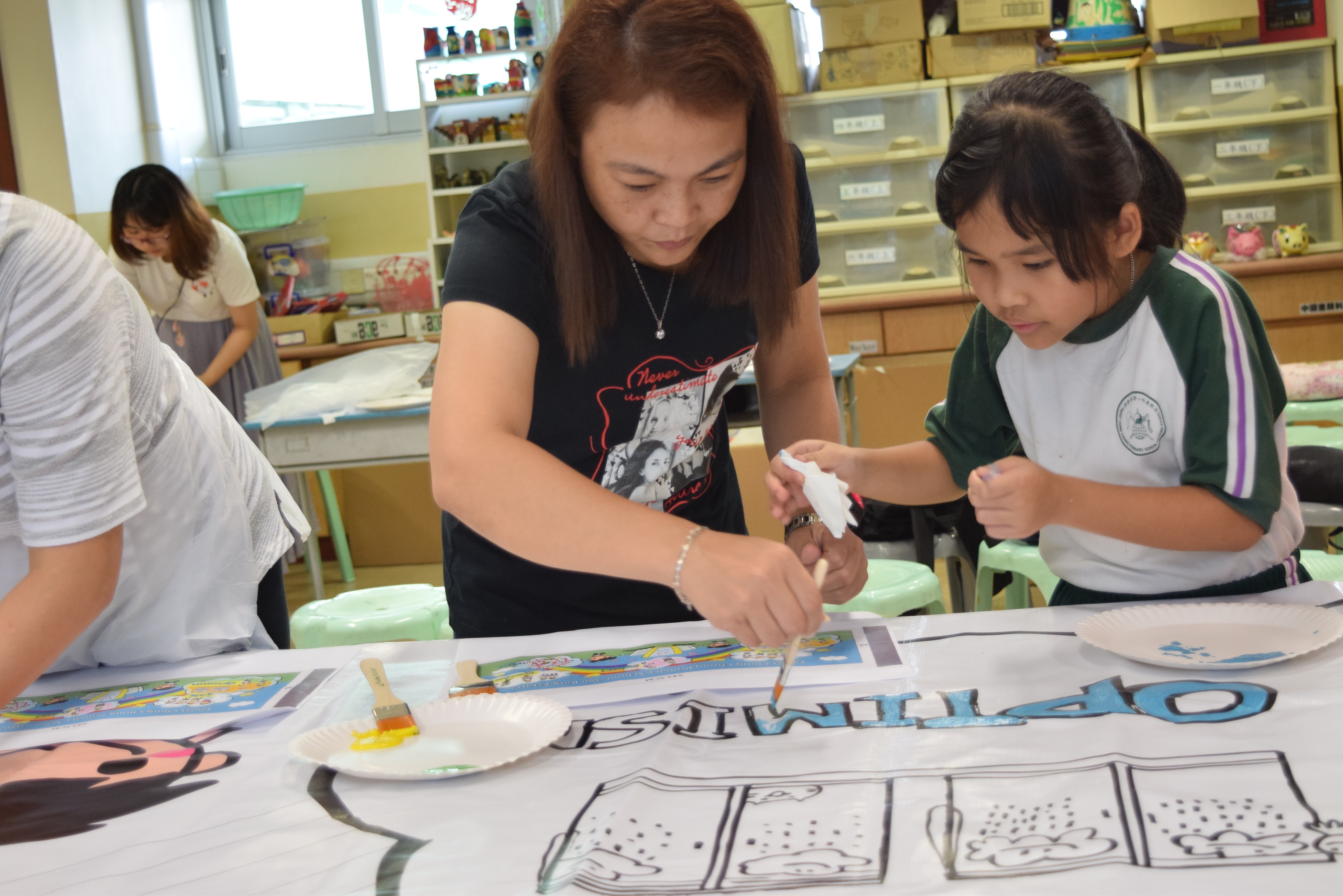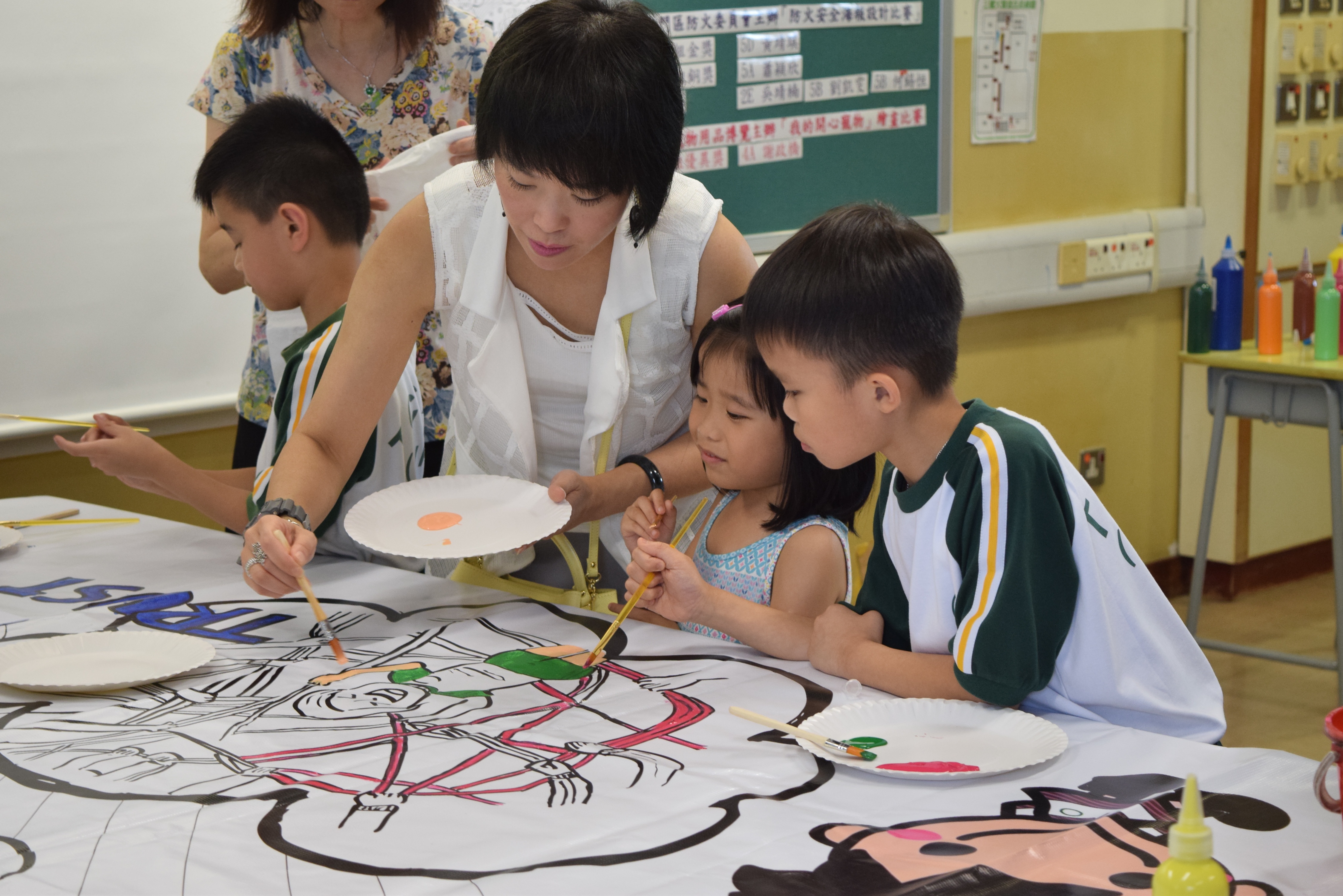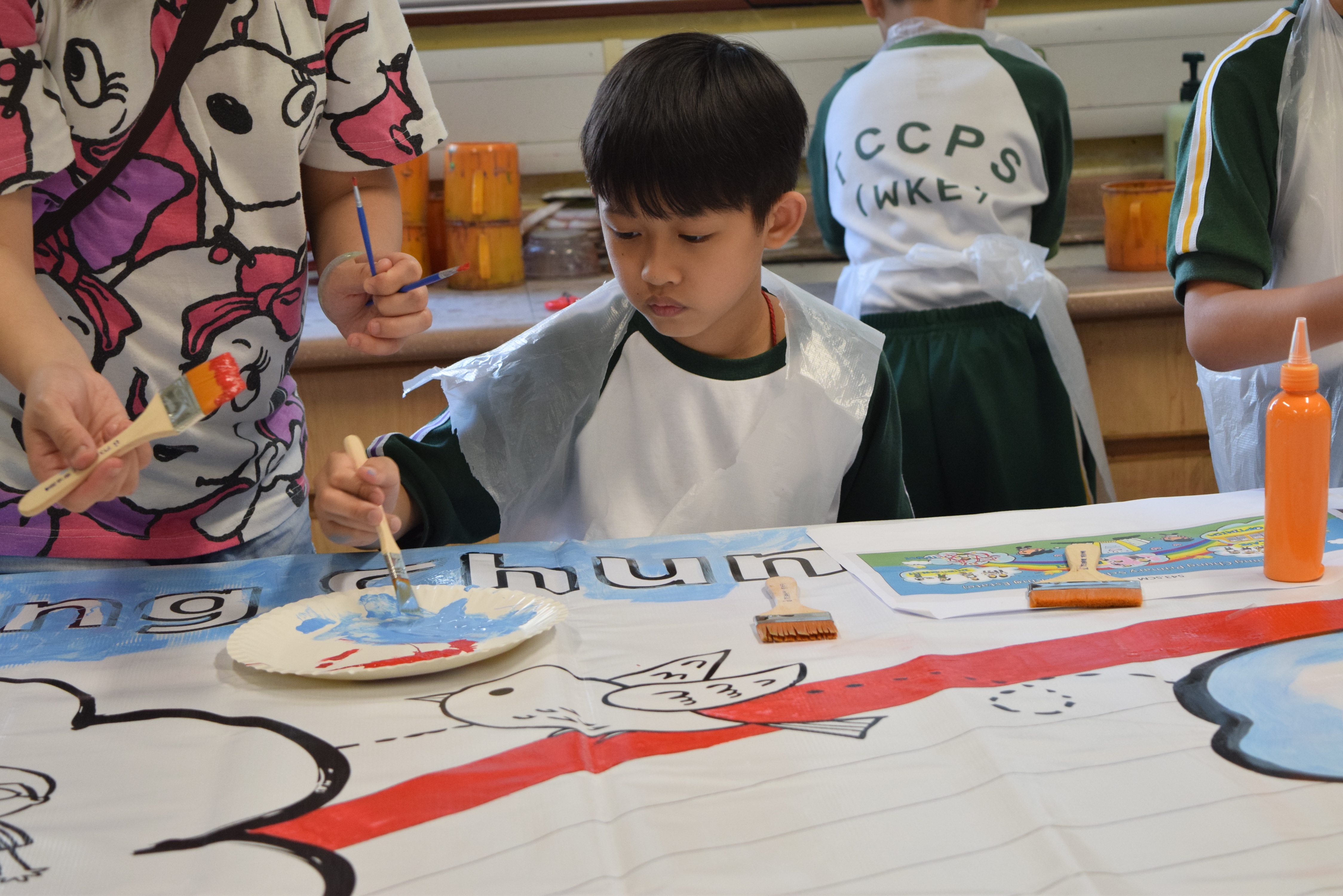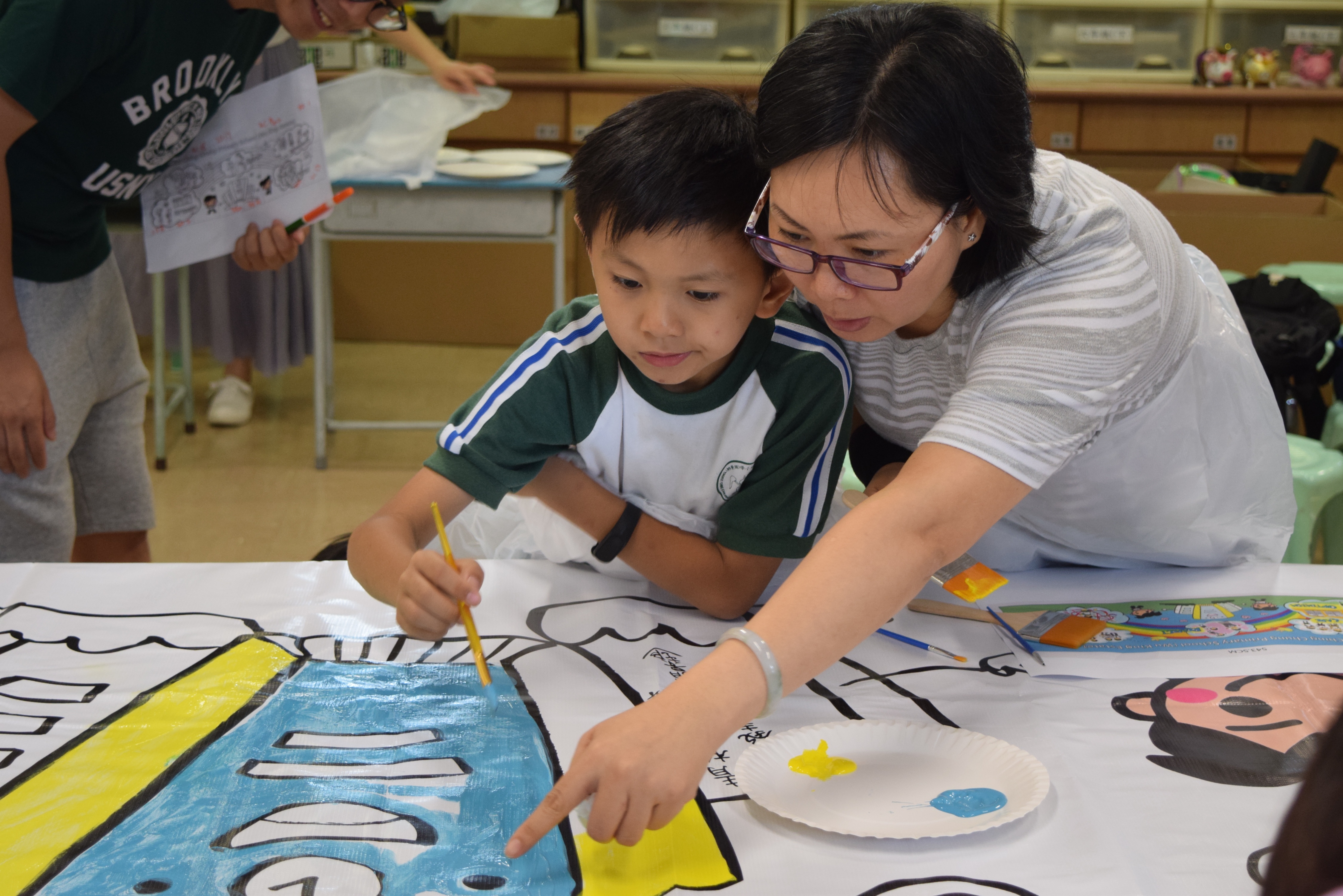 10對親子合力製作油畫,家長及小朋友都認真投入活動,體驗不一樣的親子互動。