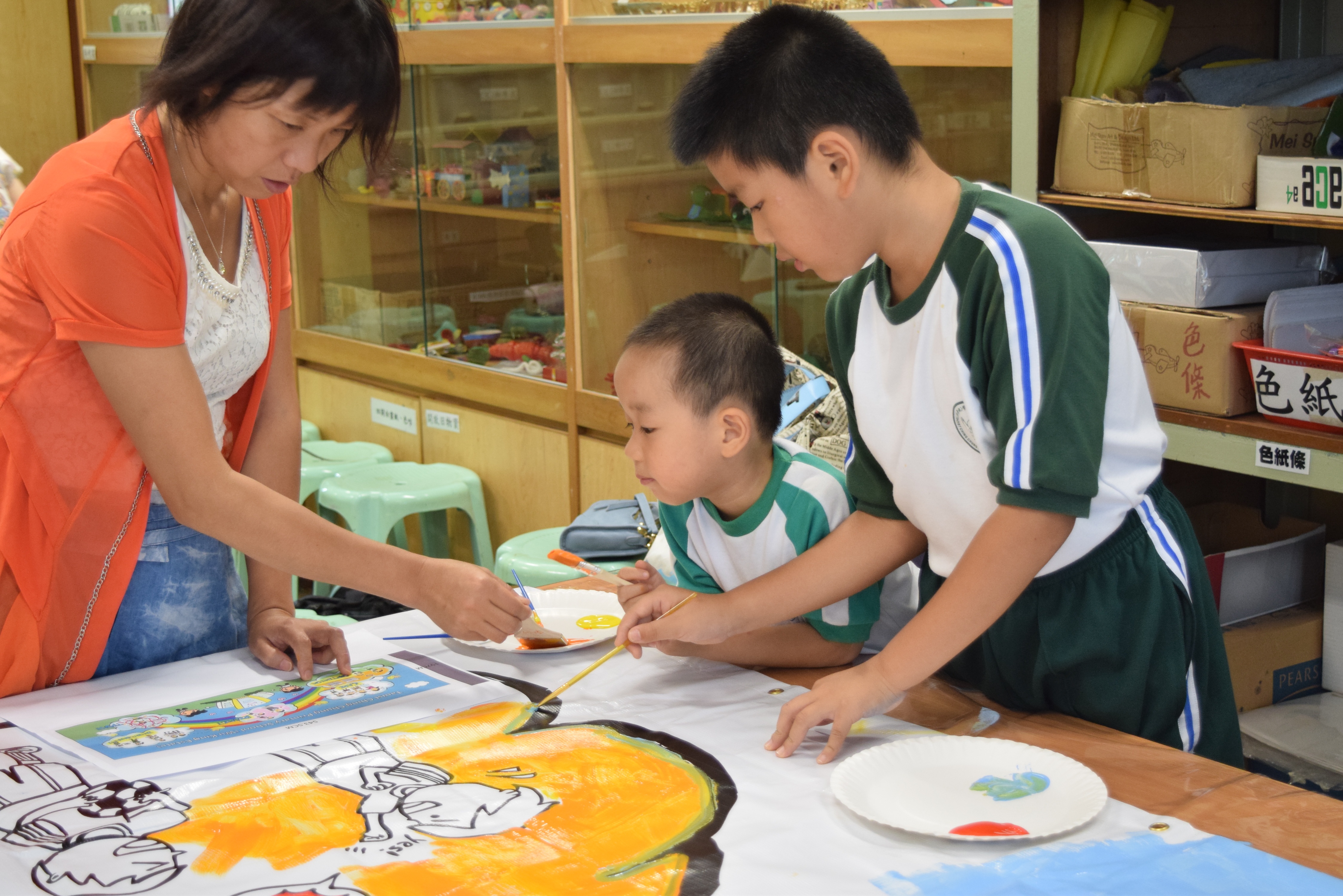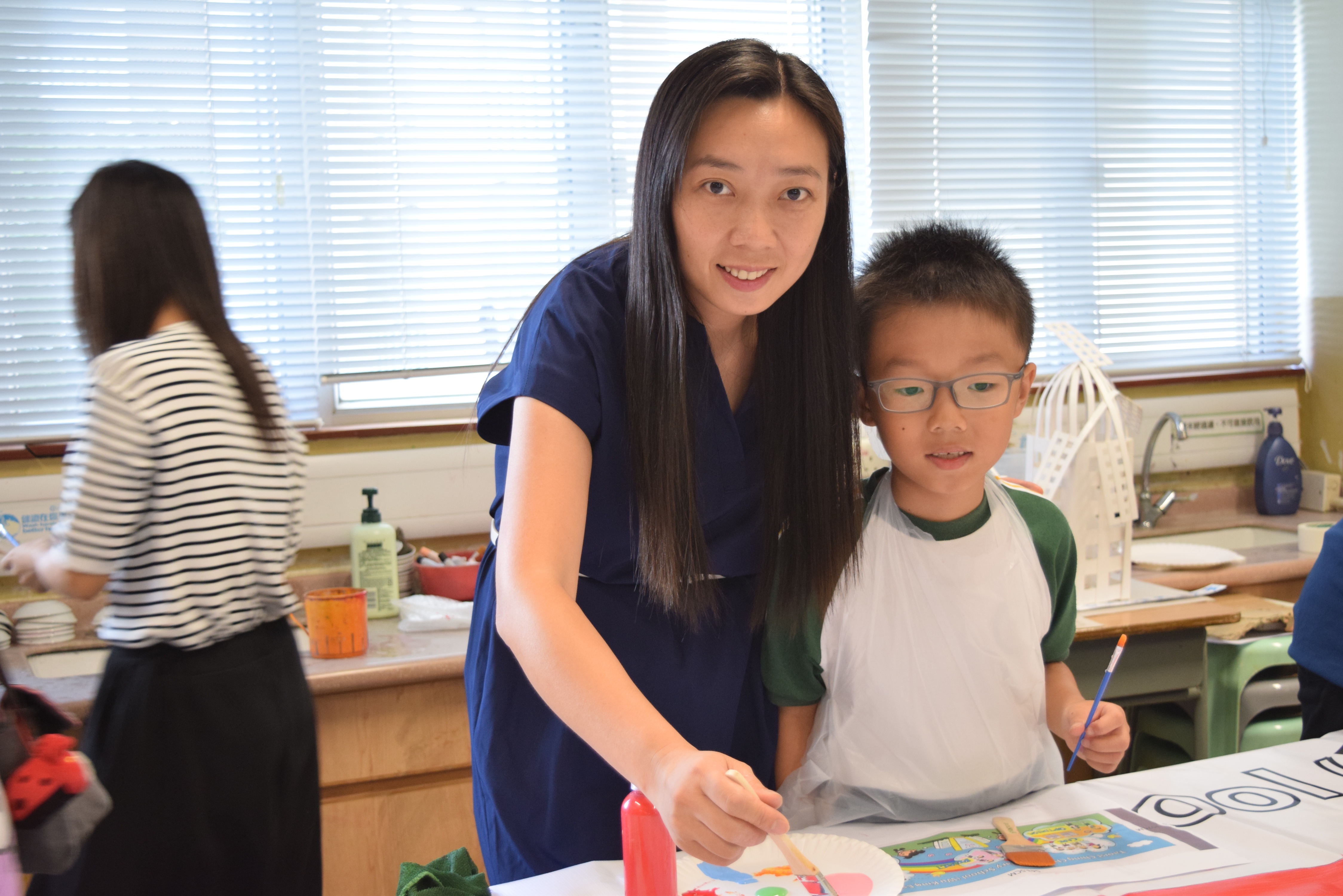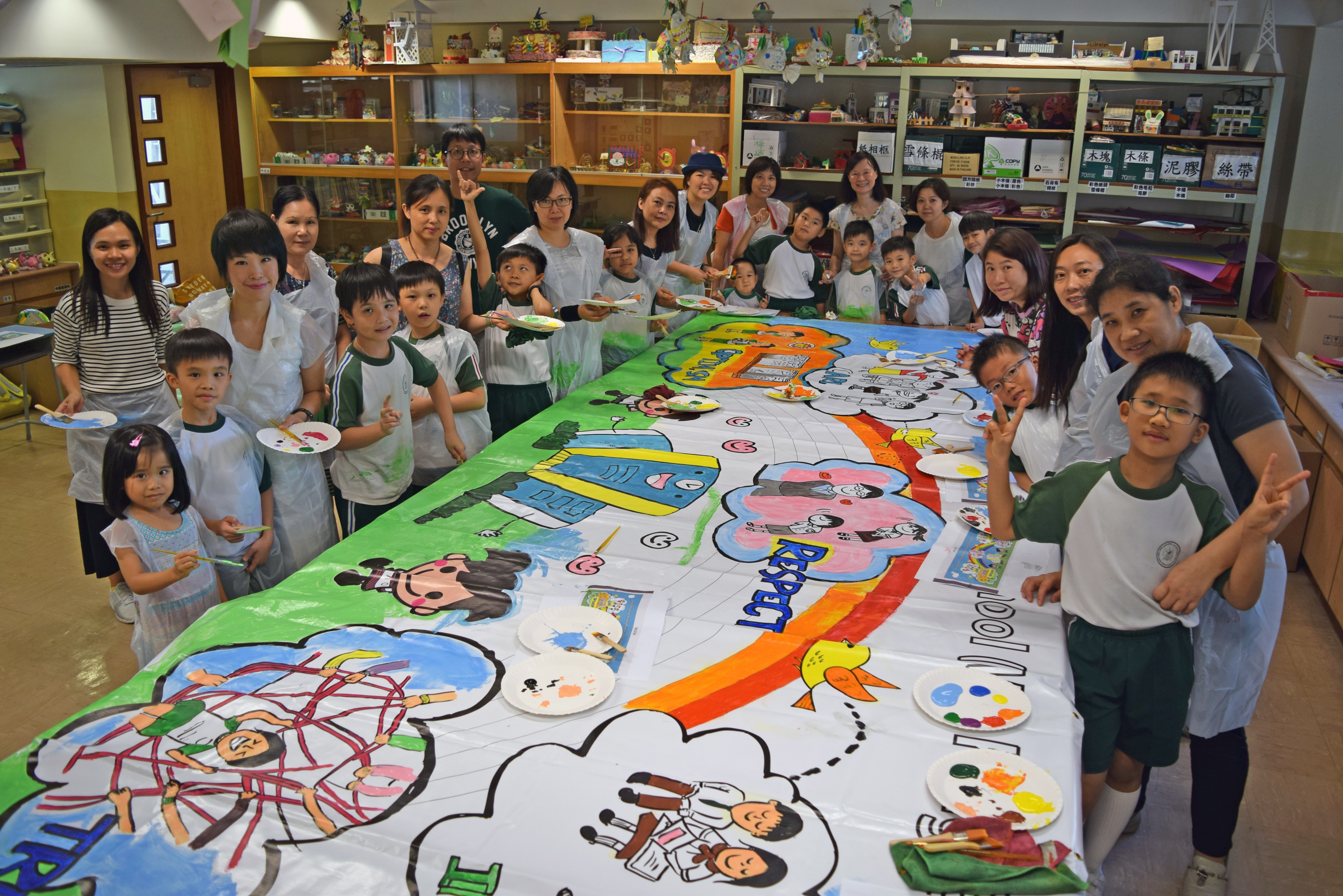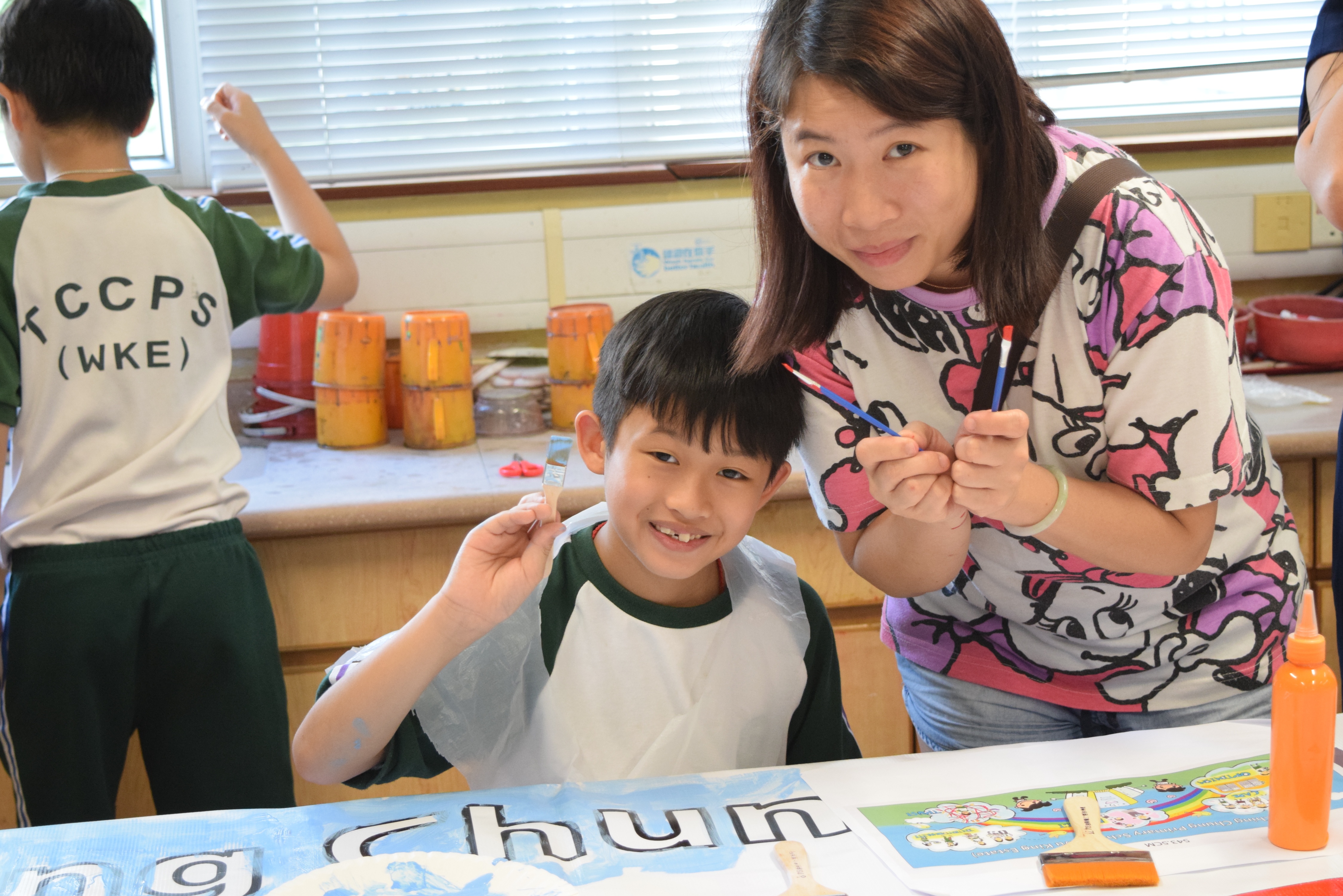 10對親子合力製作油畫,家長及小朋友都認真投入活動,體驗不一樣的親子互動。