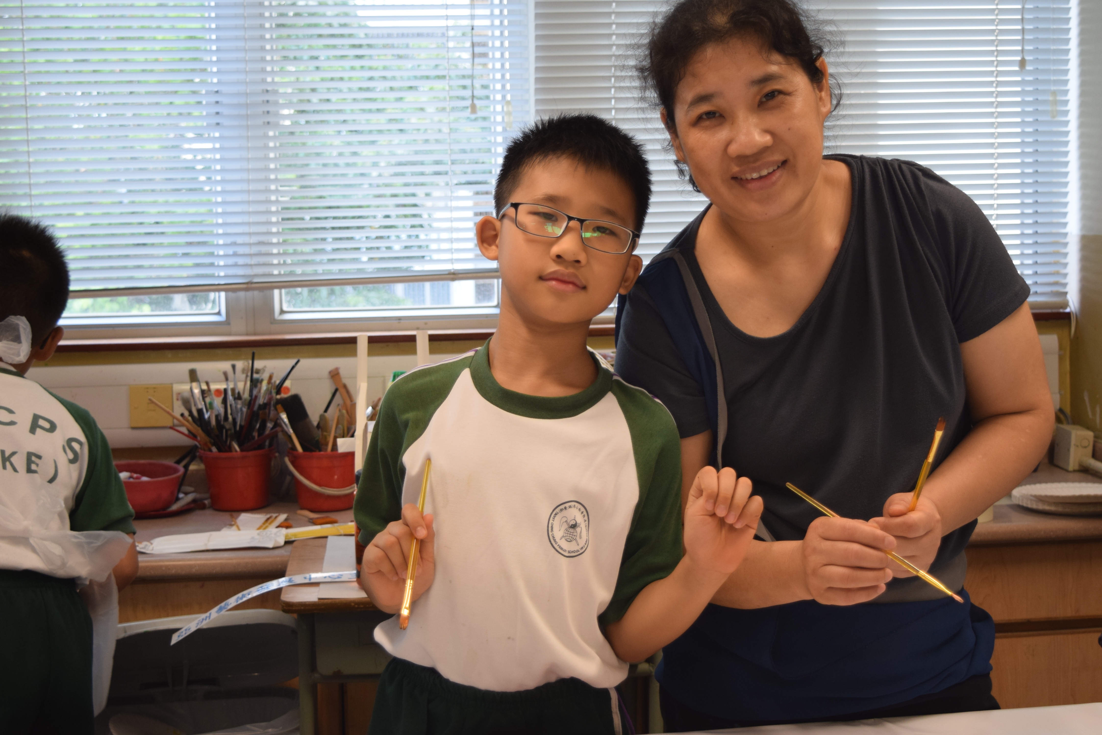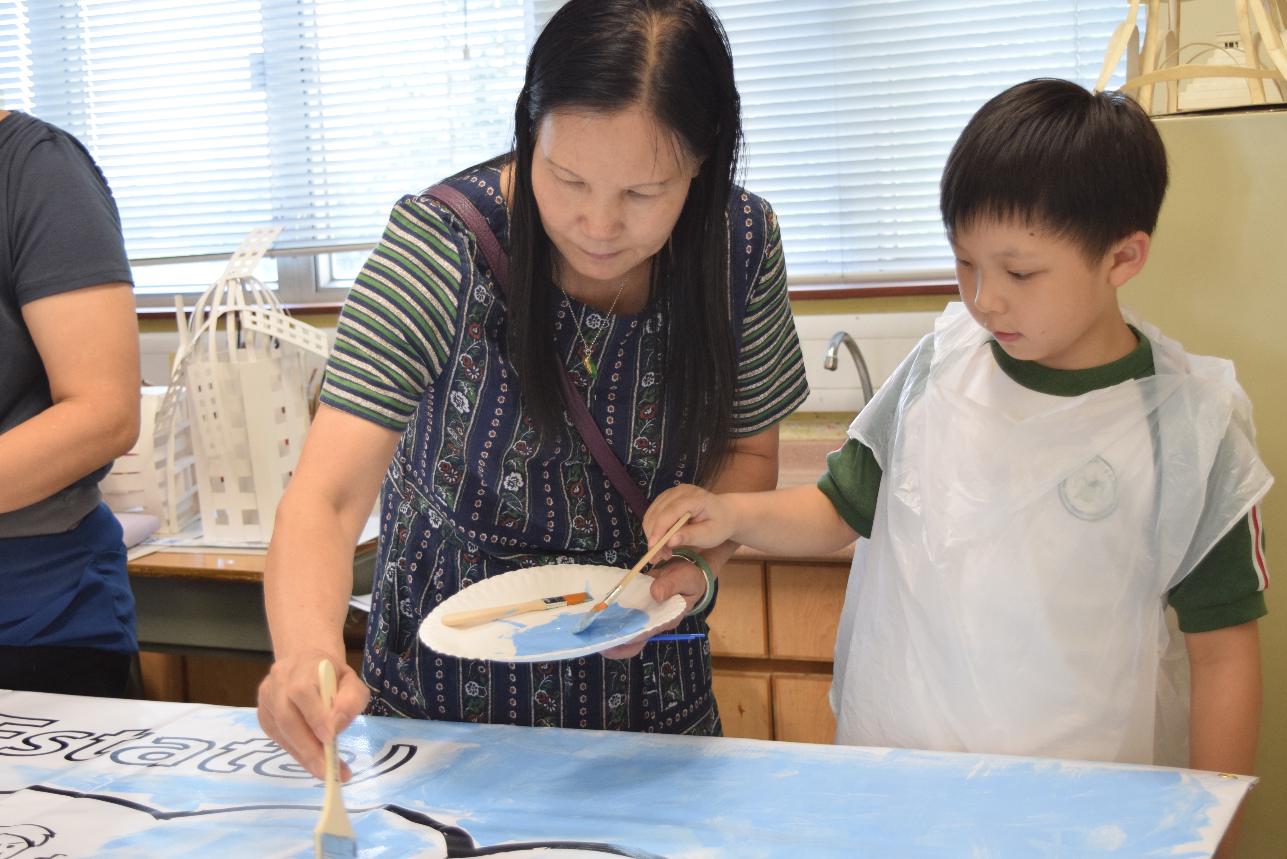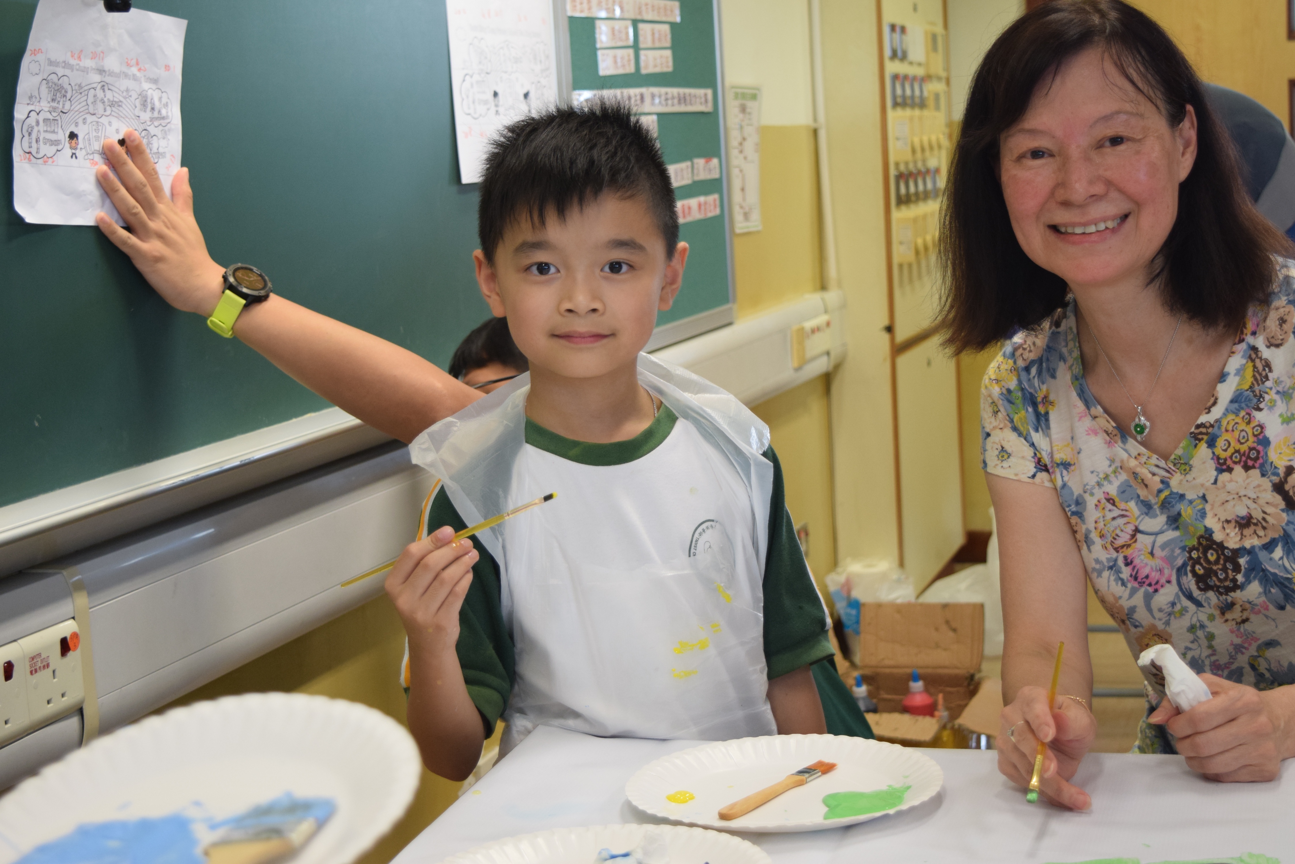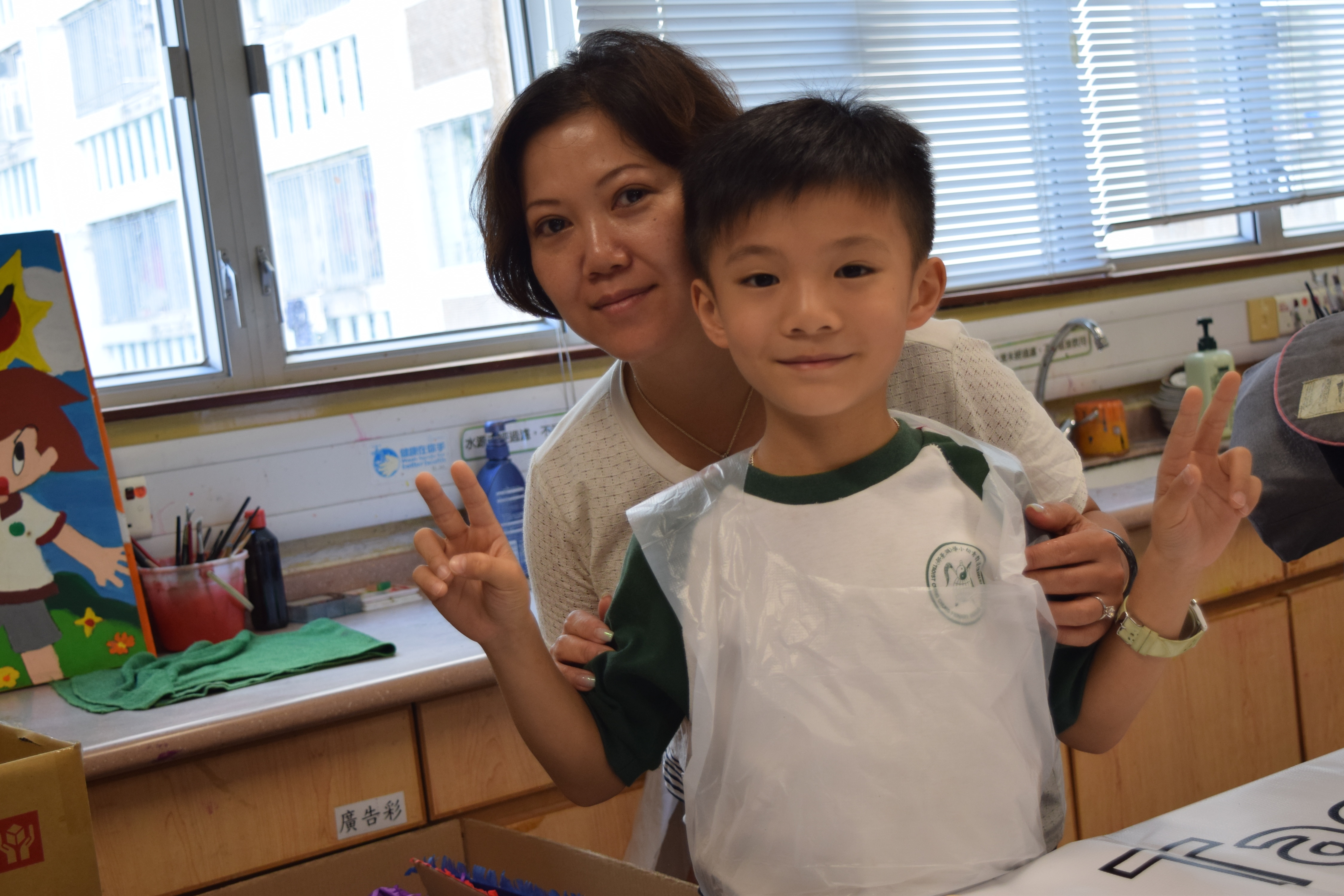 10對親子合力製作油畫,家長及小朋友都認真投入活動,體驗不一樣的親子互動。