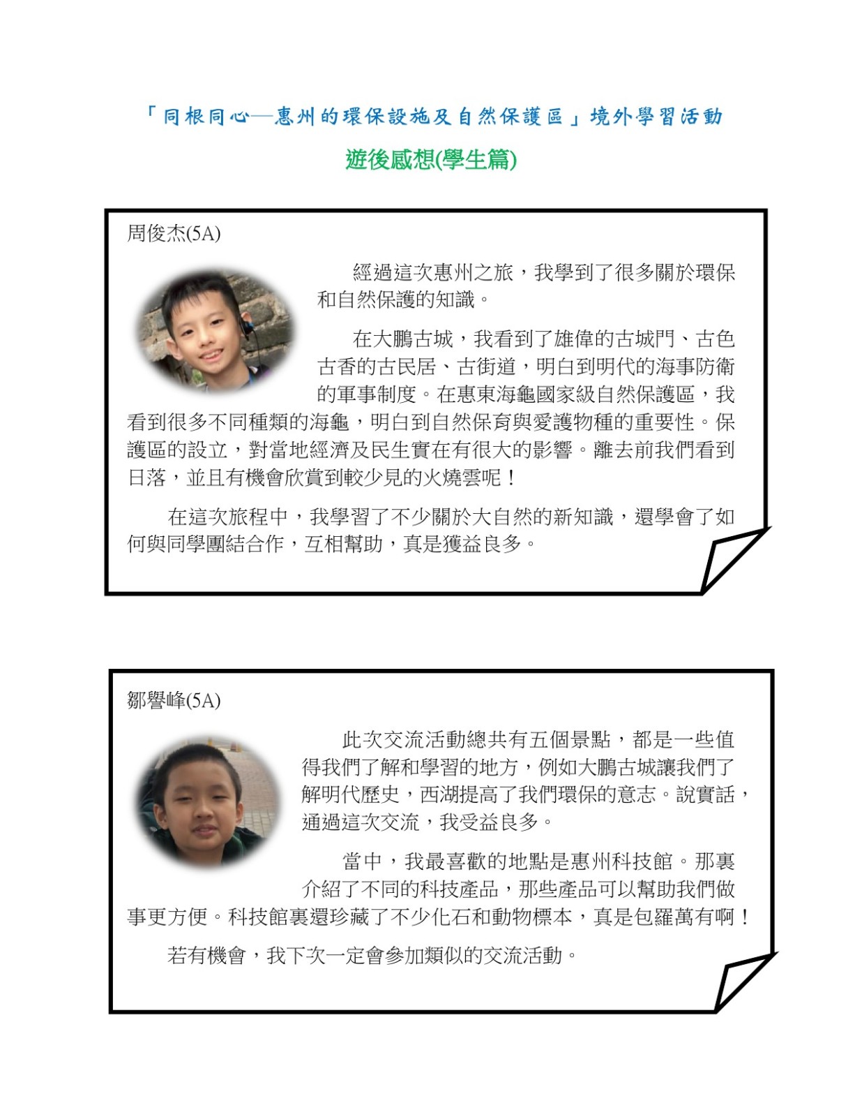 「同根同心--惠州的環保設施及自然保護區」境外學習活動 遊後感想