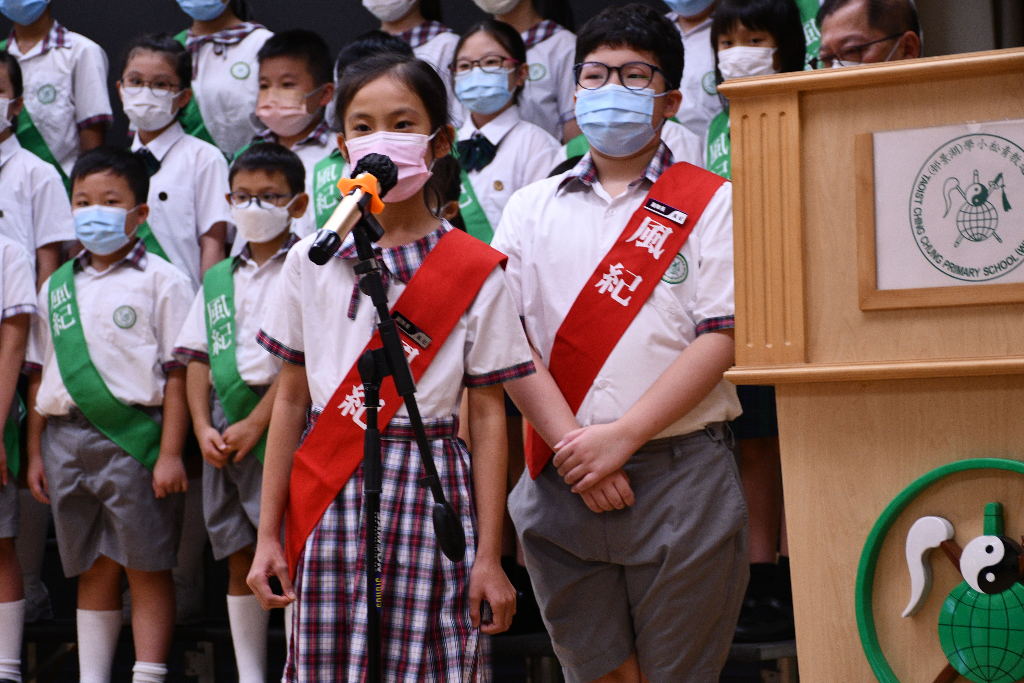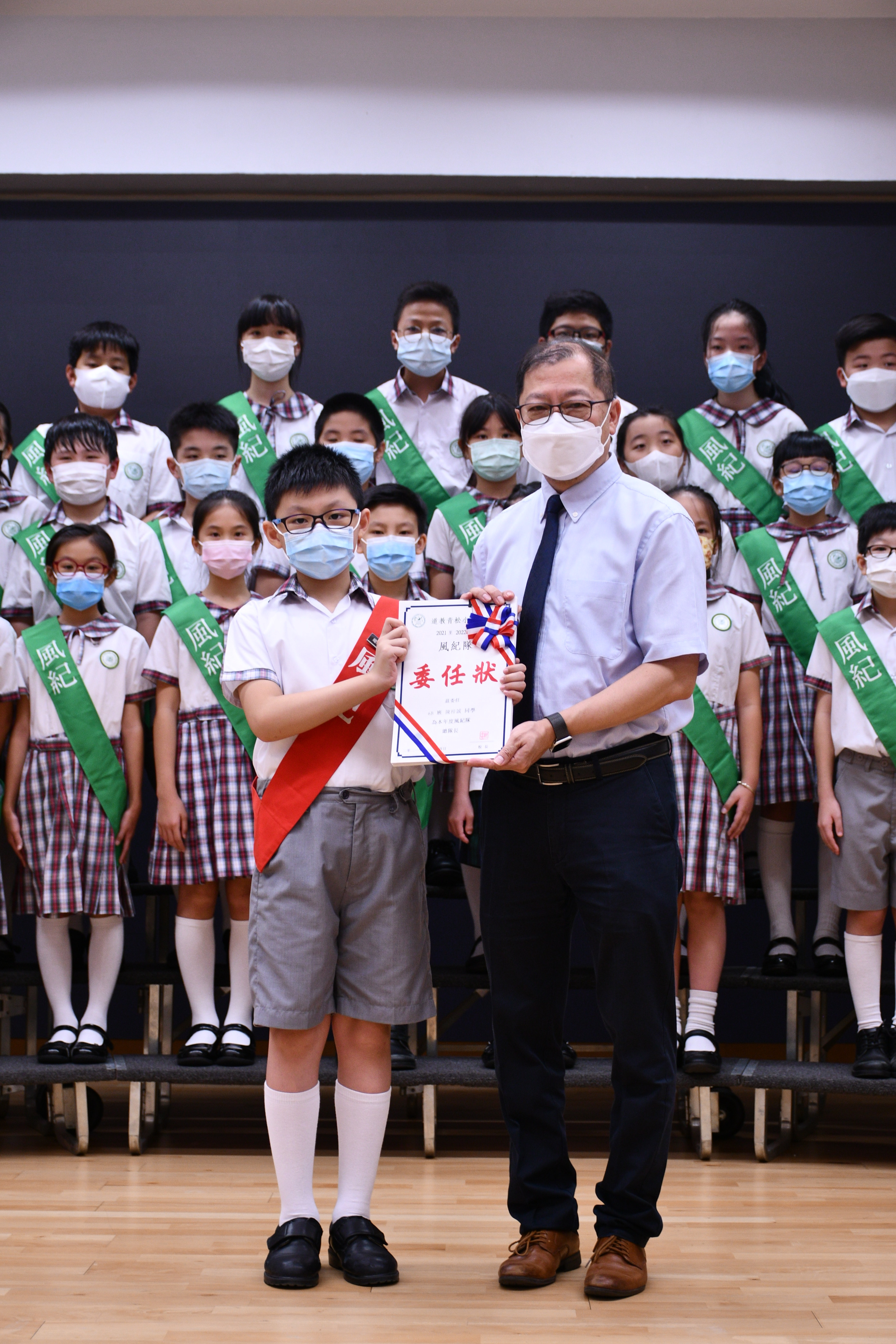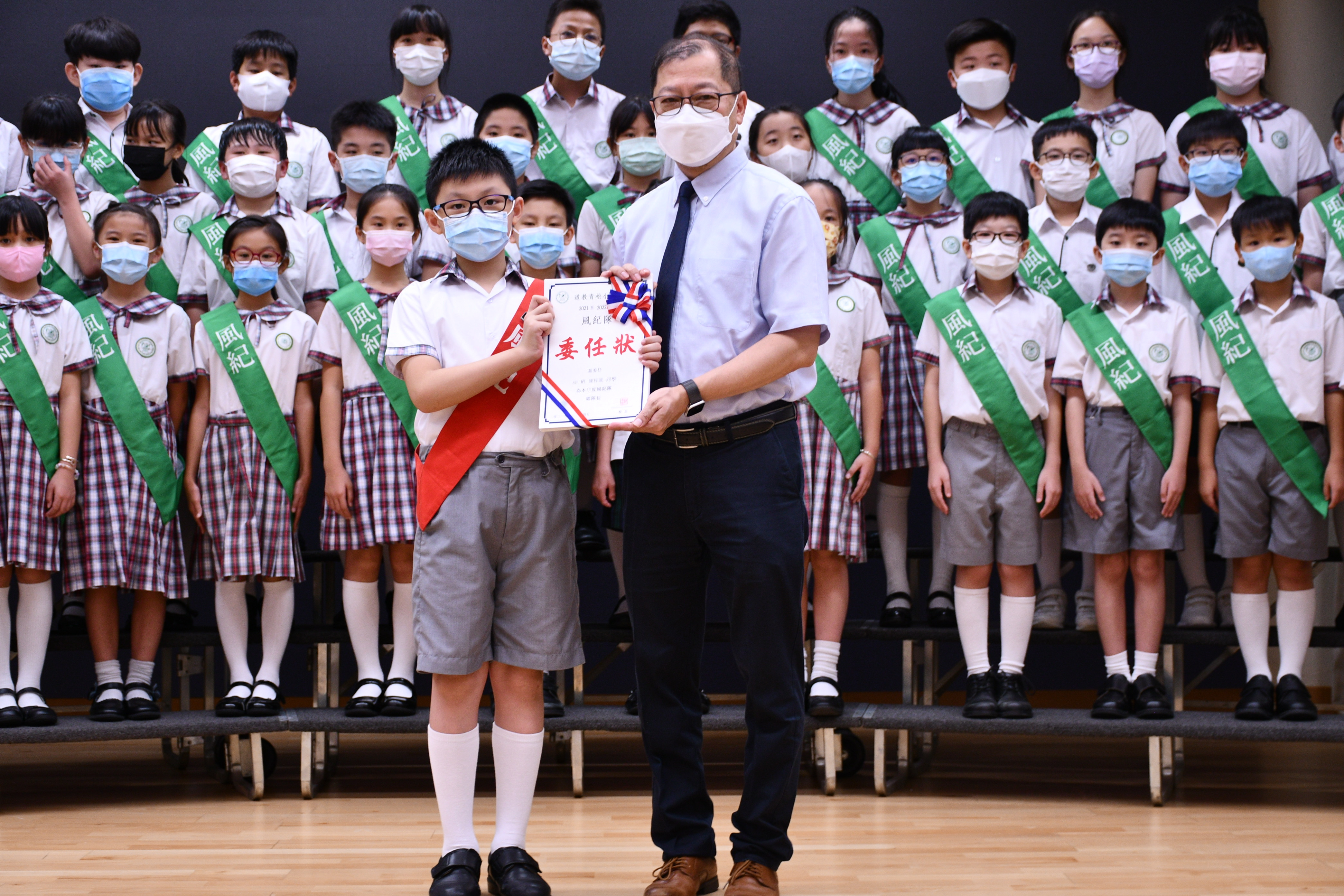 由於疫情關係,風紀隊員未有於全校同學的見證下進行宣誓,現改為錄影形式供全校同學、家長及老師一同見證。