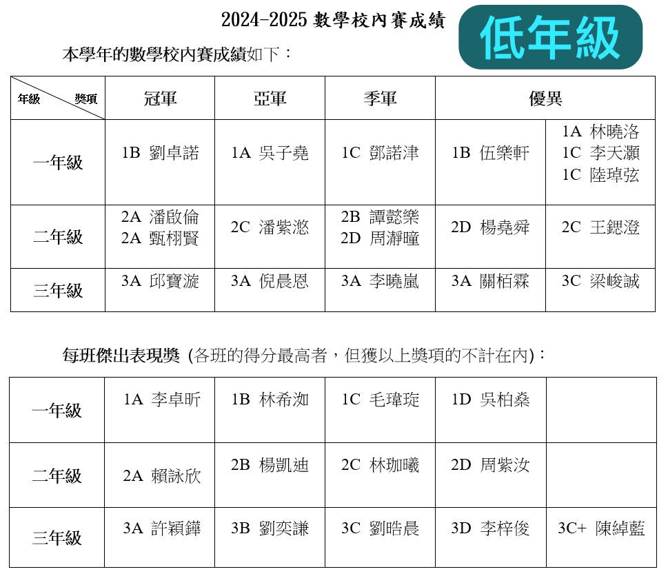 1A劉綽楠 1B蔡懿 1B凌梓萱 1B伍倬藍 1B溫裕竣 1B容梓睿