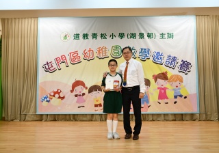 早前同學在暑假期間參加由香港教育城及兒童的科學主辦之暑期數理常識挑戰計劃2018,獲頒積極參與學校奬 - 季軍,當日大會頒發奬盃一隻及書券200元,並由6A 鄒錦盈及鄺玉琦代表領獎。