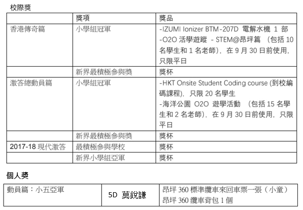 本校同學參加「現代激答2017-18香港傳奇篇及激答總動員篇」網上常識問答比賽表現十分出色,分別獲得大會頒發以下奬項,本校派出一至五年級在該比賽中得分最高之八位同學作為代表出席頒奬典禮,以表揚他們的努力。