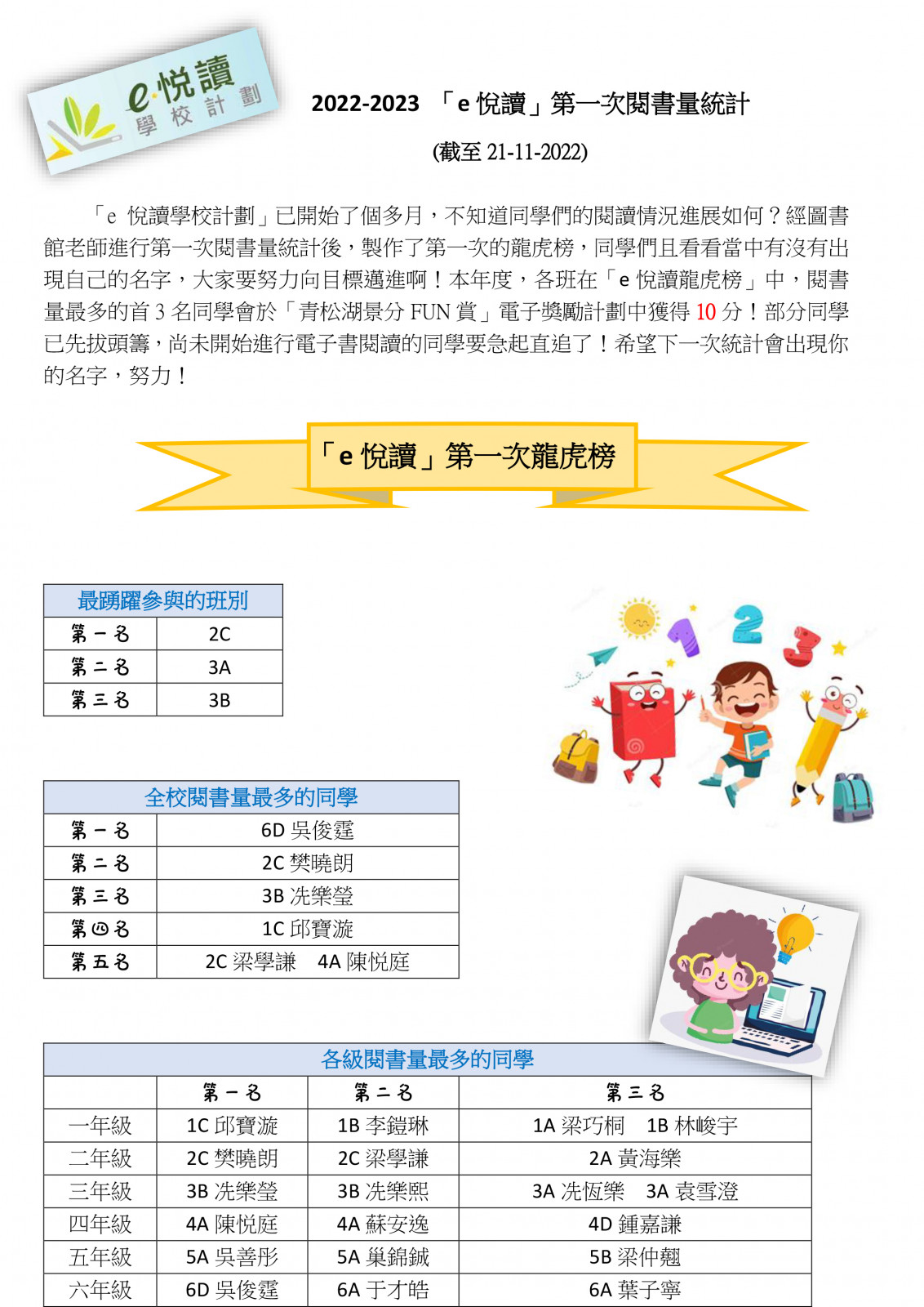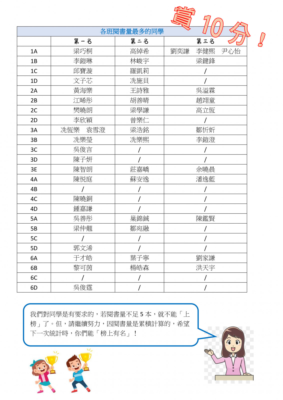 6A 許穎琳 6C 陳凱晴 6B 黃星皓