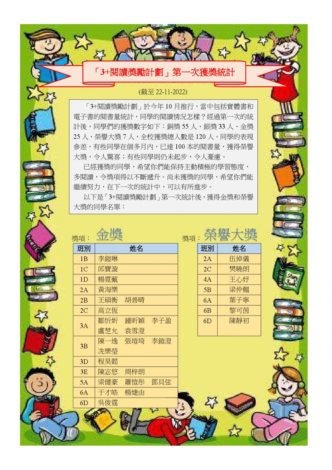 鐘聲慈善社胡陳金枝中學主辦 第一名:5B 陳俊熹 優異獎:6A楊婕由 優異獎:4A黃啟誠 優異獎:4D鍾嘉謙