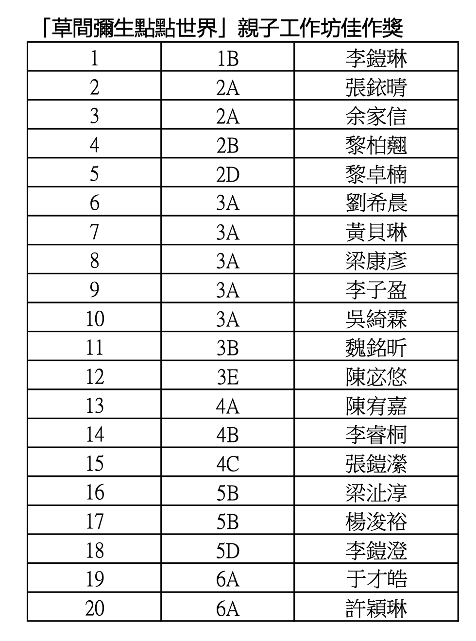 3A 葉嘉恩 3B 施傑瀧 3A 鄒忻妡 3A 李子盈