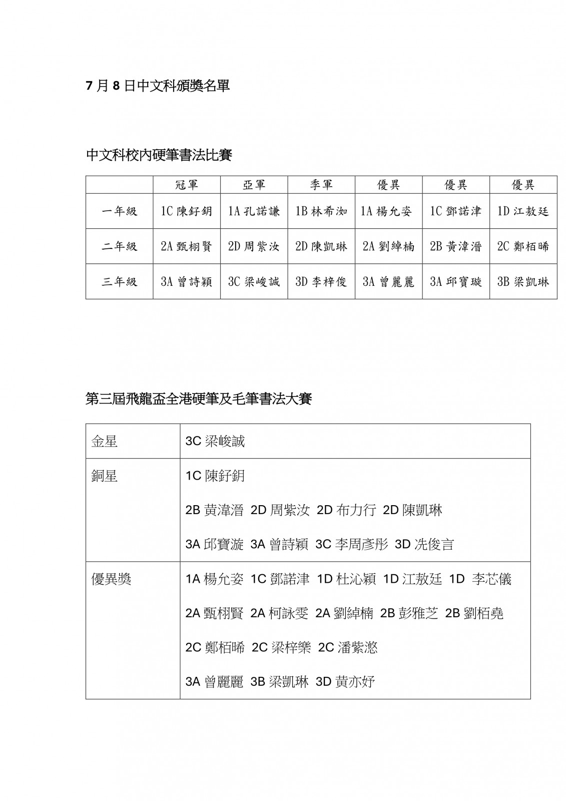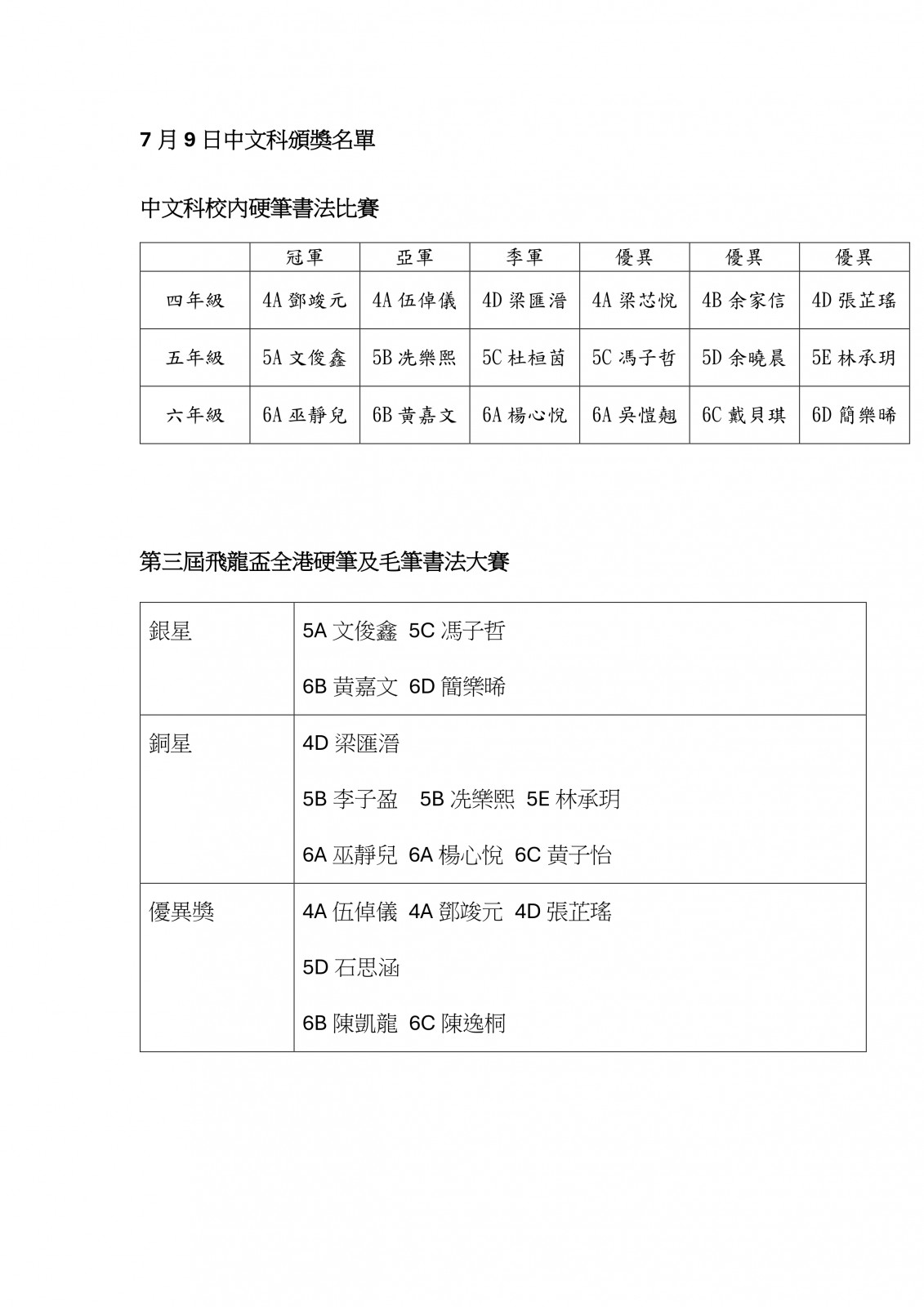 Grade 4 Bronze Medal 4B 莫灼堅
