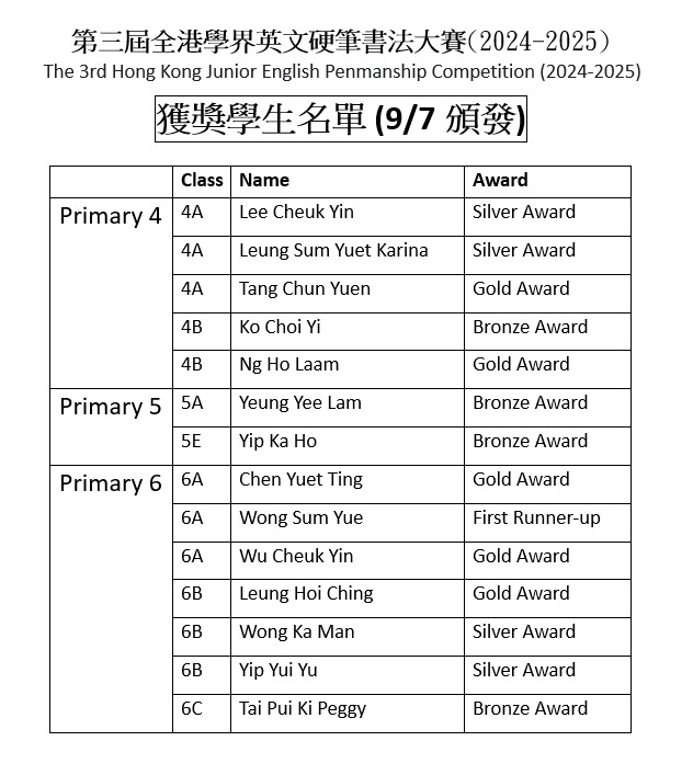 Primary 3 Bronze Award 4B 莫灼堅