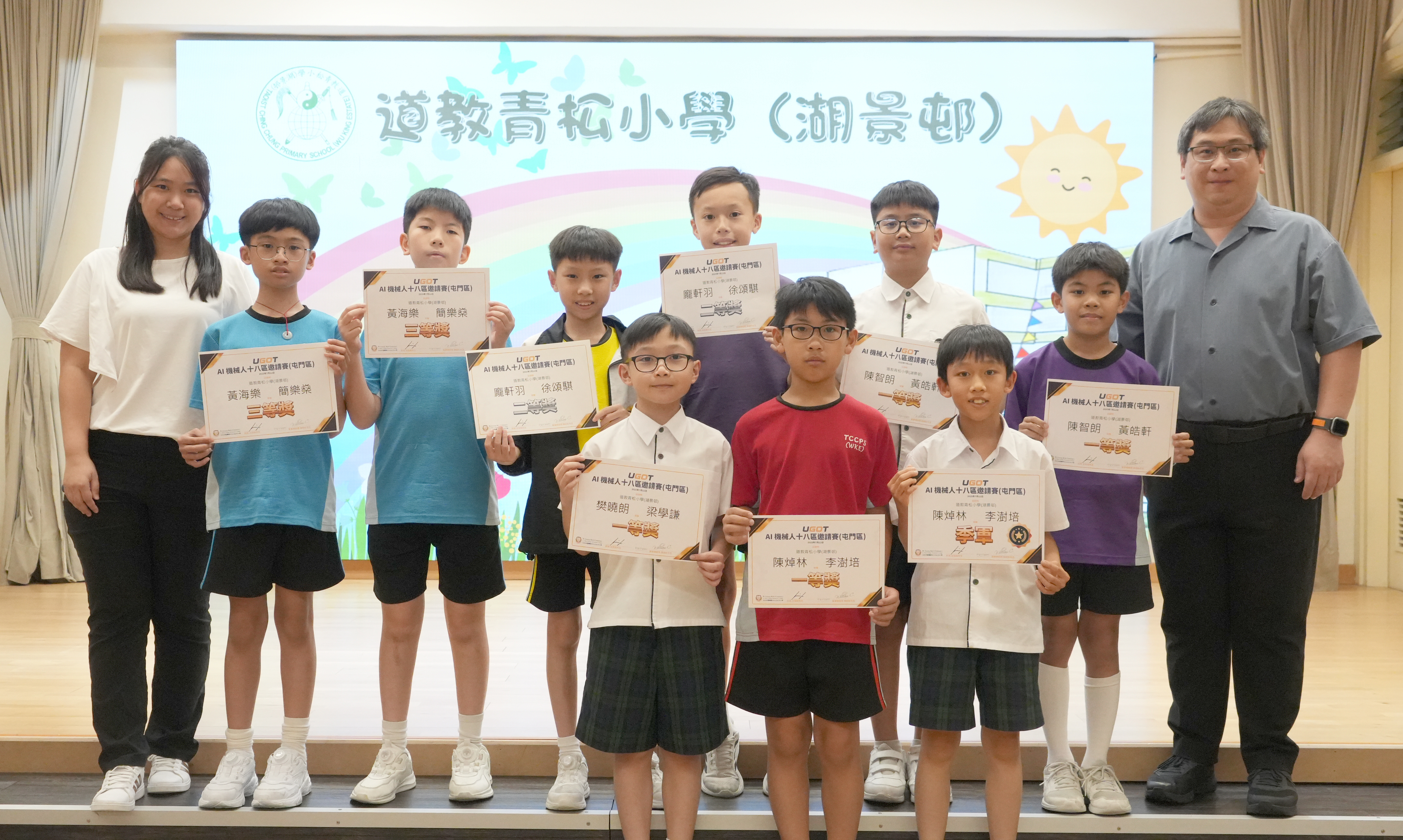 季軍、一等獎 5B陳焯林、5B李澍培 一等獎 4A樊曉朗、4A梁學謙、5D陳智朗、5E黃皓軒 三等獎 4B黃海樂、4B簡樂燊 二等獎 4B龐軒羽、4C徐頌騏