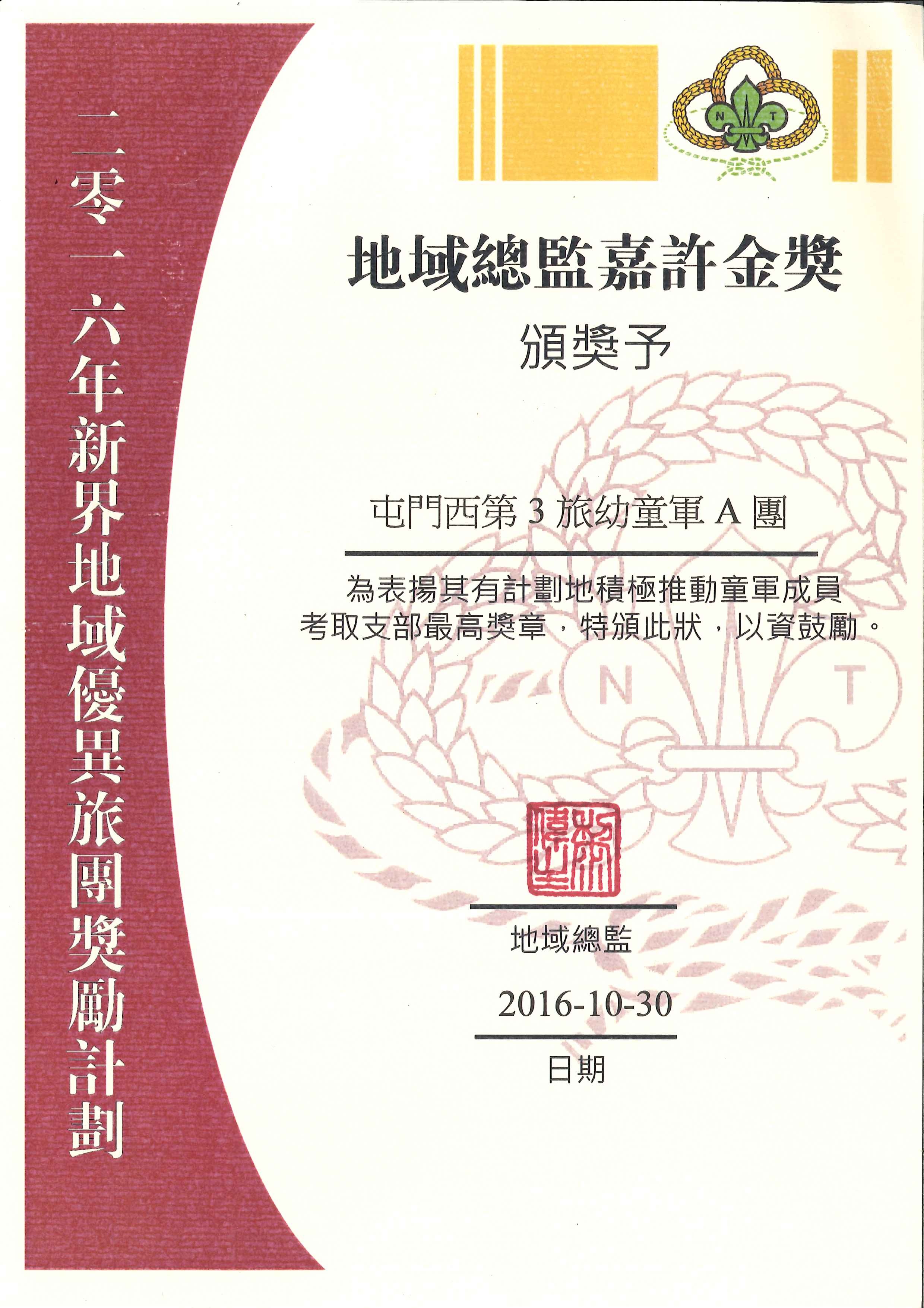 由香港童軍總會頒發