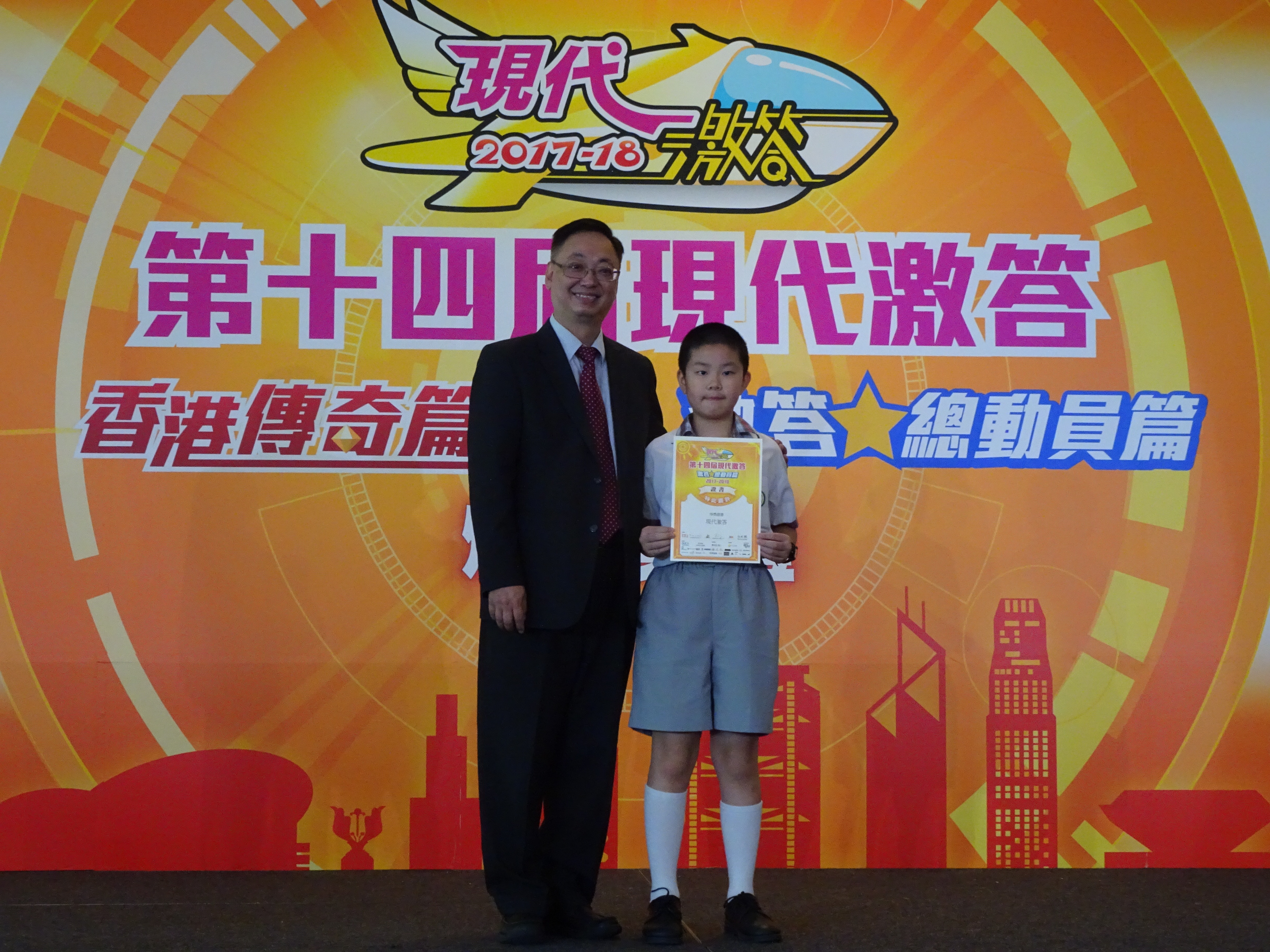 本校同學參加「現代激答2017-18香港傳奇篇及激答總動員篇」網上常識問答比賽表現十分出色,分別獲得大會頒發以下奬項,本校派出一至五年級在該比賽中得分最高之八位同學作為代表出席頒奬典禮,以表揚他們的努力。