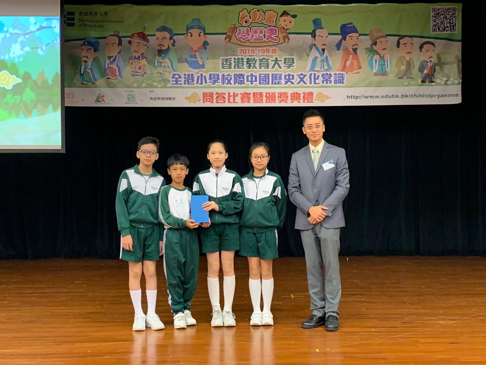 常識問答隊同學於12月1日(星期一)參加由香港教育大學主辦2018-2019年度香港教育大學全港小學校際中國歷史文化常識問答比賽,晉身24強,並獲頒奬座及書券500元,獲奬同學包括: 6A 鄒錦盈 6B 陳星豪 5A 蕭米澤 4A 林穗晞