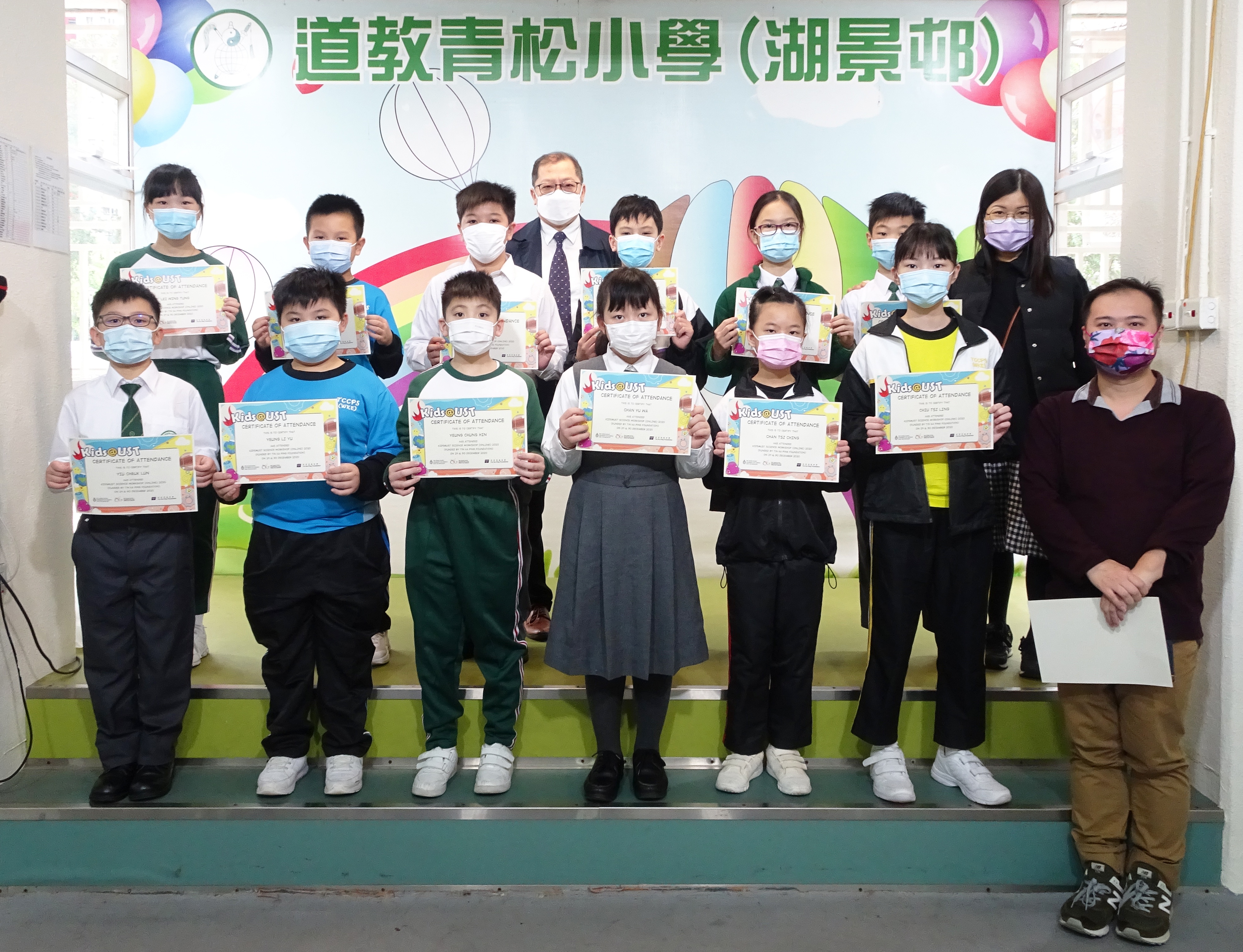 本校十四位五年級同學參加由香港科技大學資優教育發展中心主辦、田家炳基金會贊助的「小朋友@科大」工作坊。完成工作坊的同學們榮獲由香港科技大學及田家炳基金會共同頒發的修業證書。