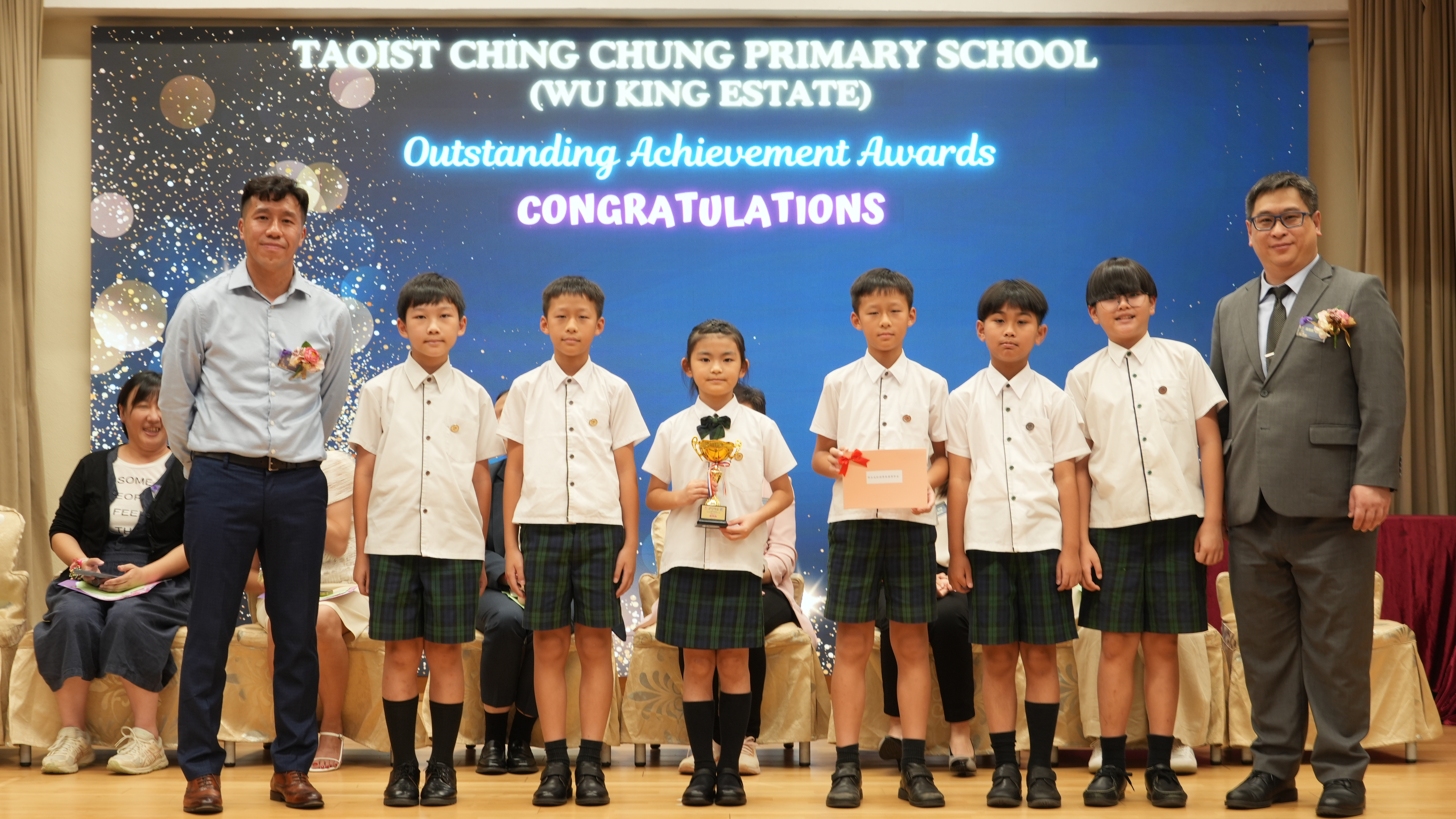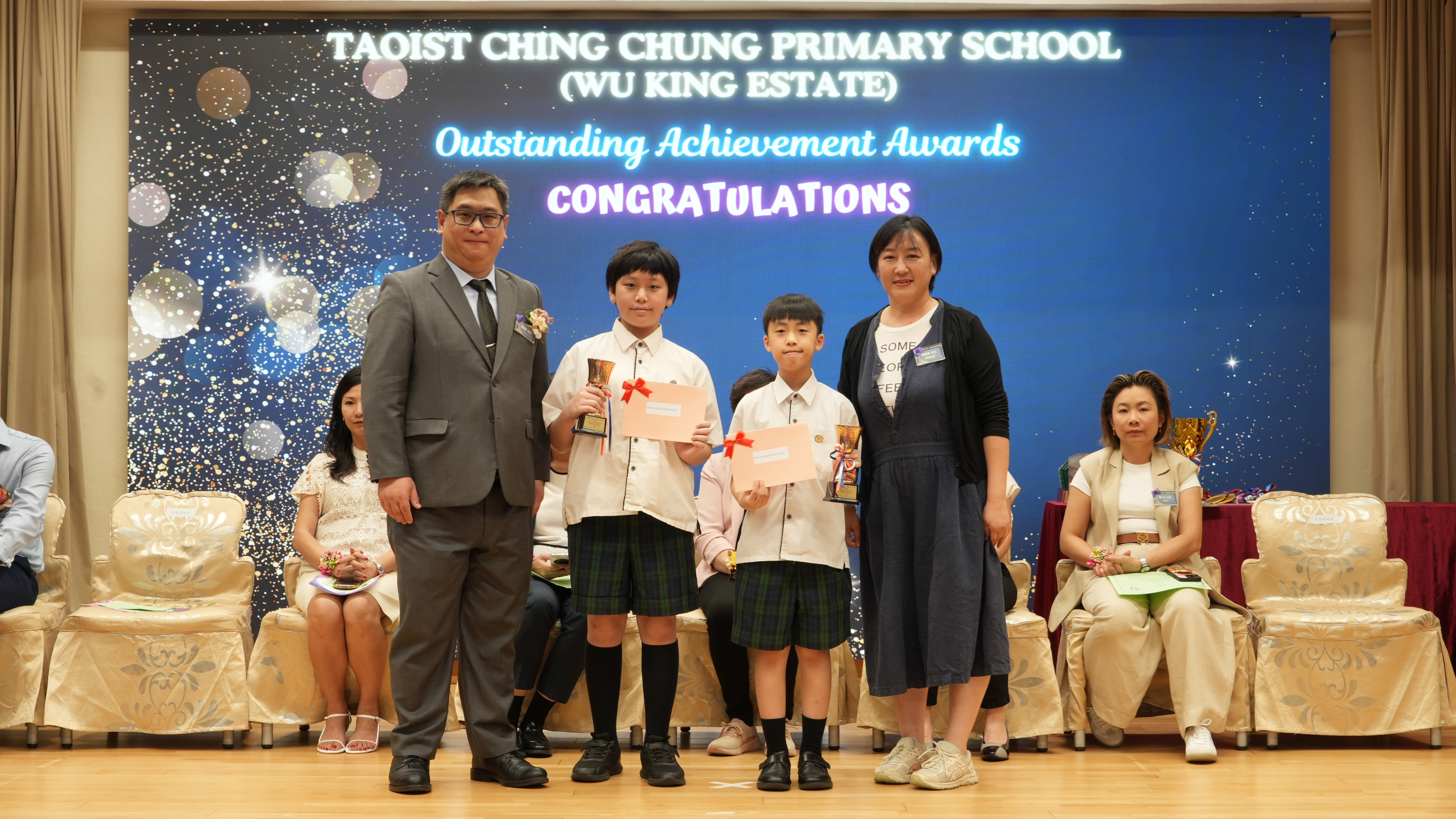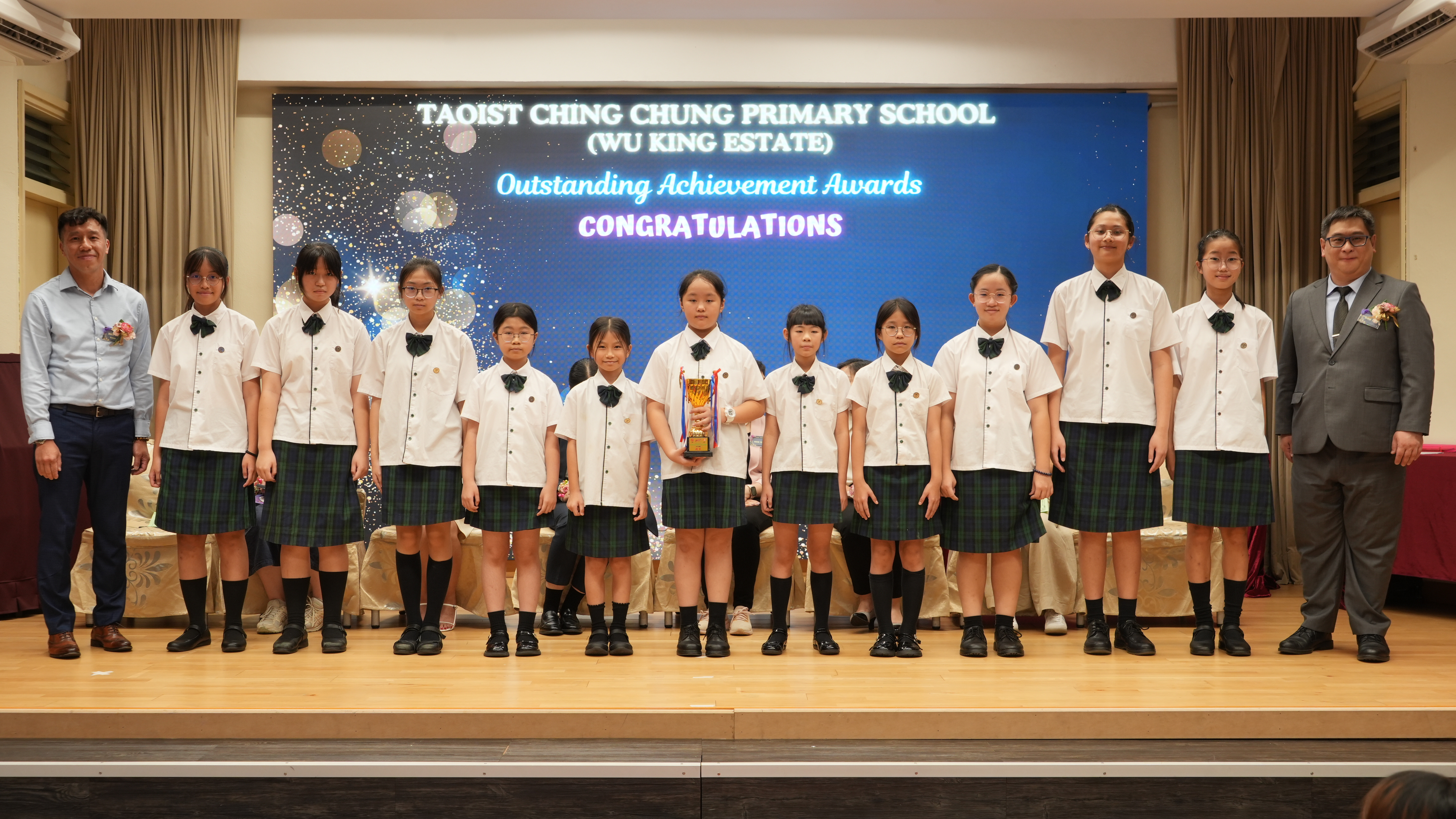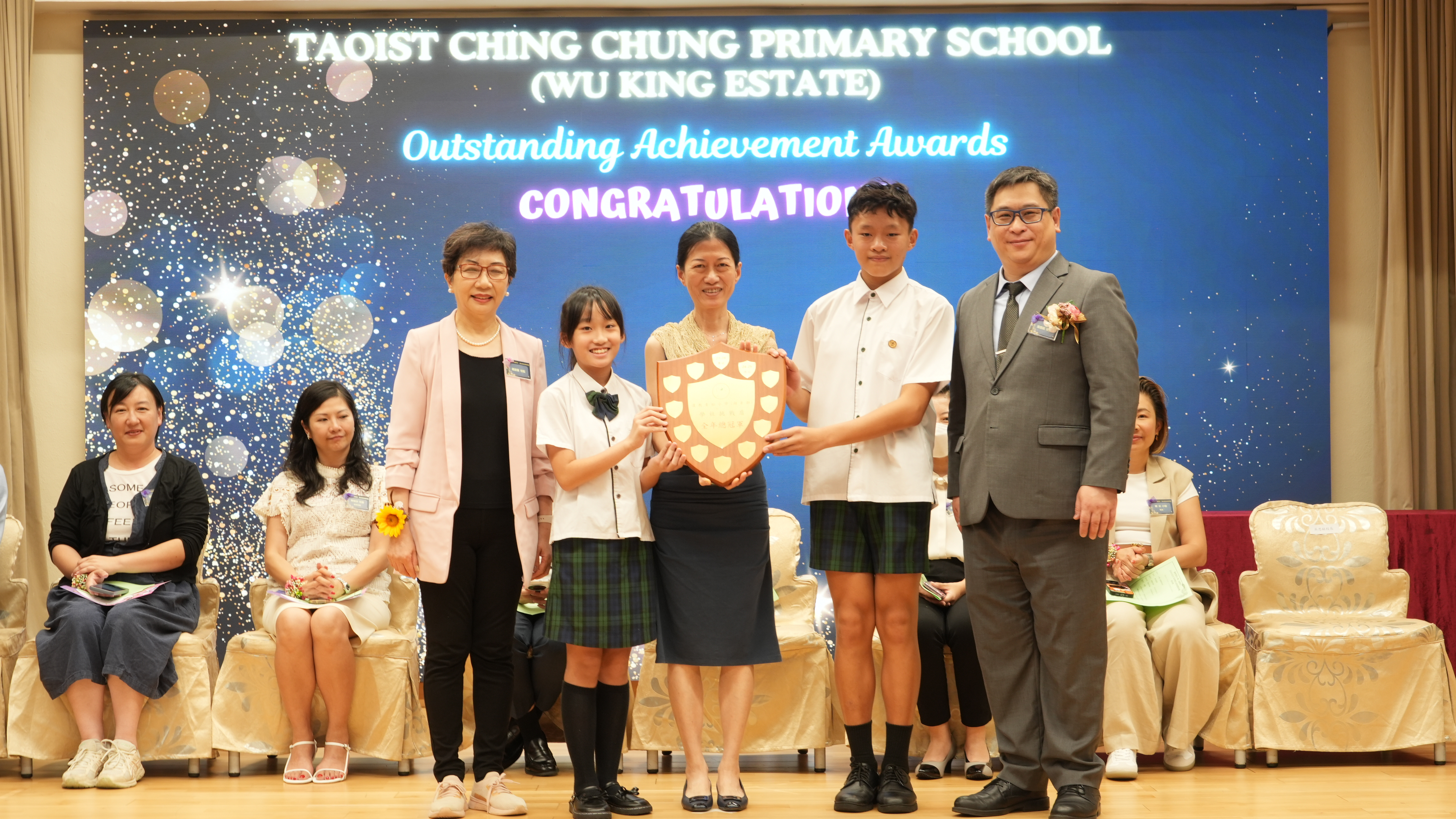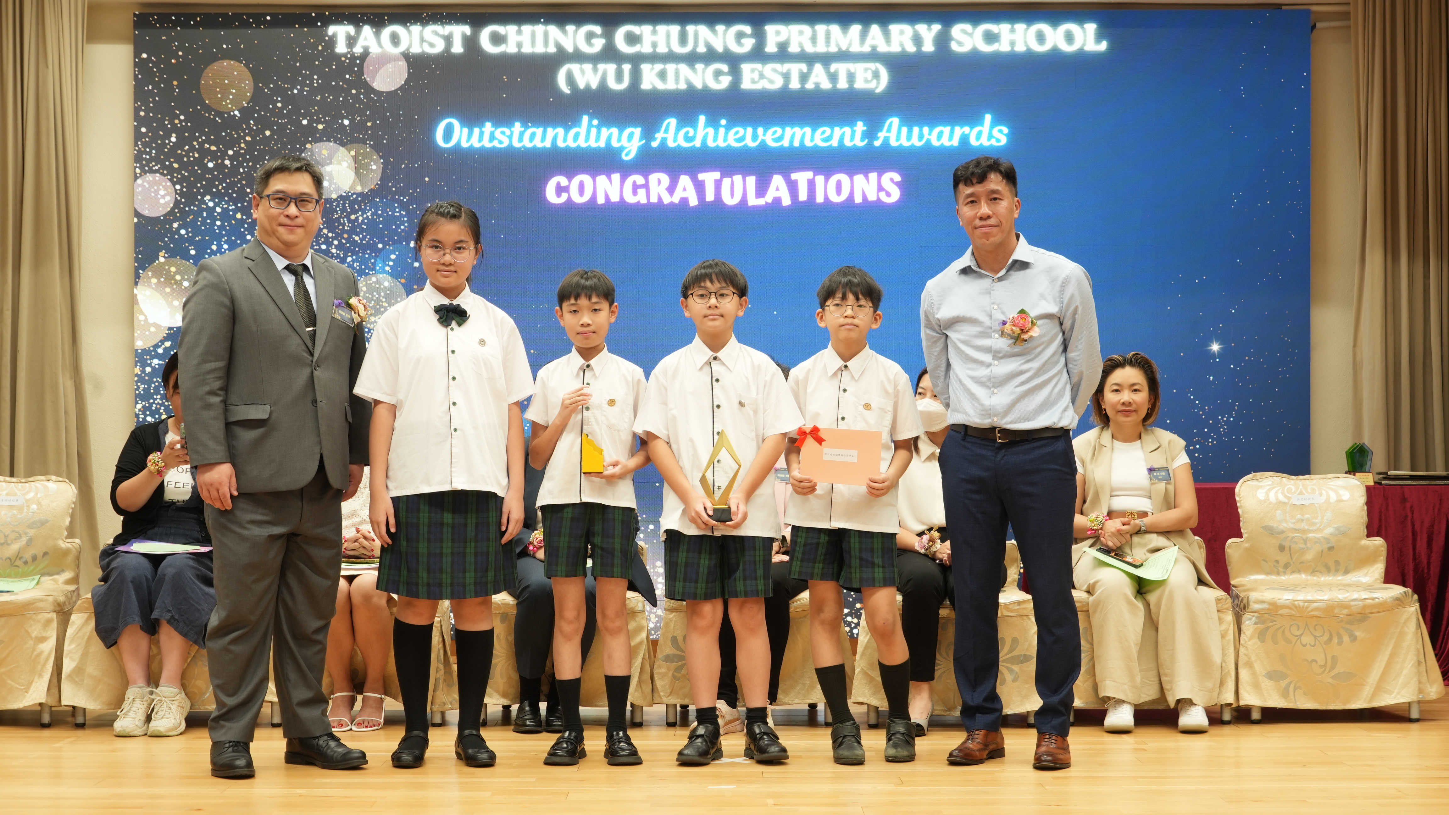 本年度傑出成就頒獎典禮,由校監趙淑儀女士、辦學團體校董趙卓敏女士、辦學團體校董方嘉琪女士、家長校董陳栩淨女士、校友校董凌紹球先生、家教會主席承曉燕女士、校友韓冰女士為頒獎嘉賓。是次典禮頒獎項目高達一百多項,再次祝賀獲獎的同學和家長,期望同學繼續努力,超越自我,再創高峰!