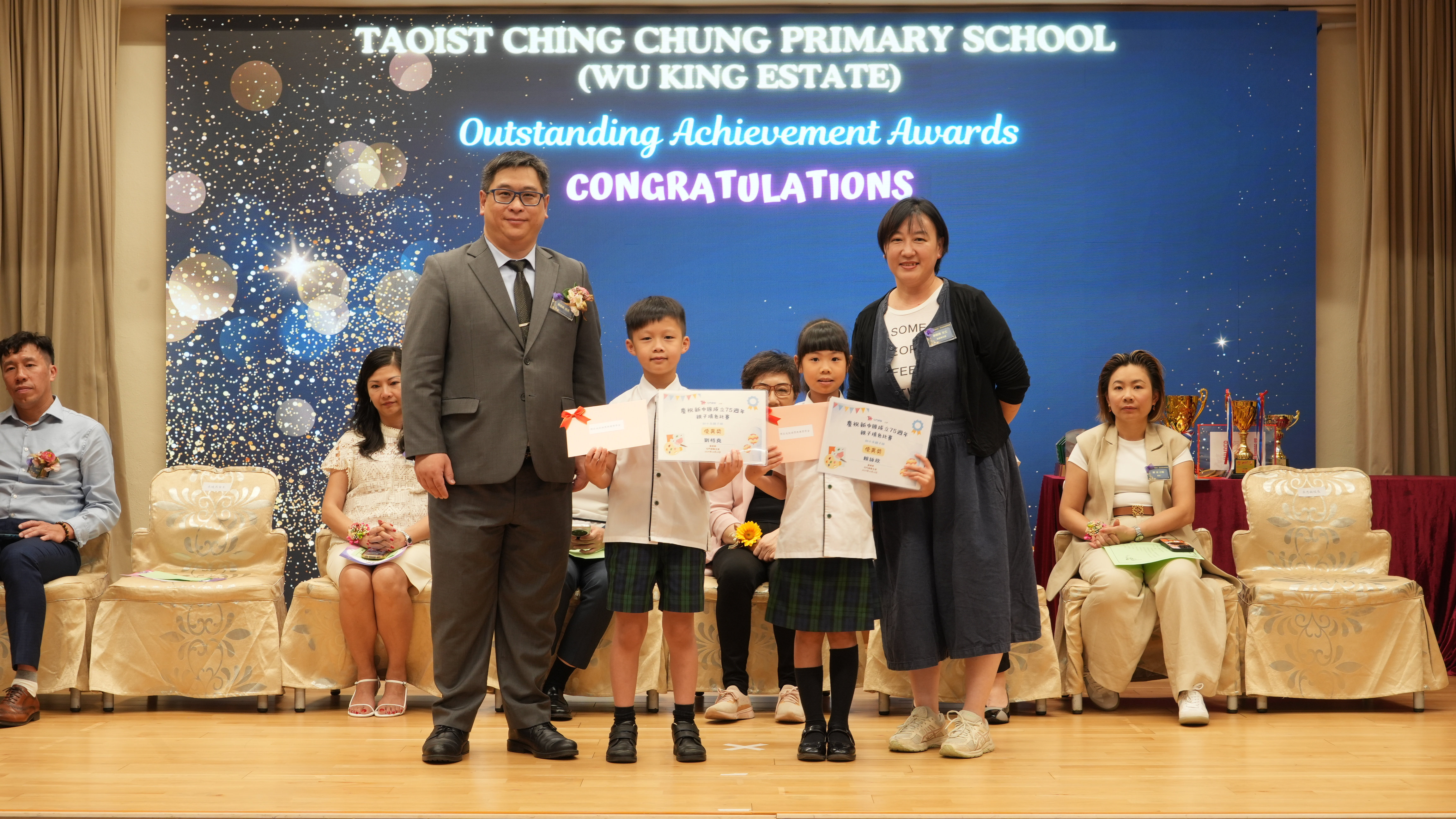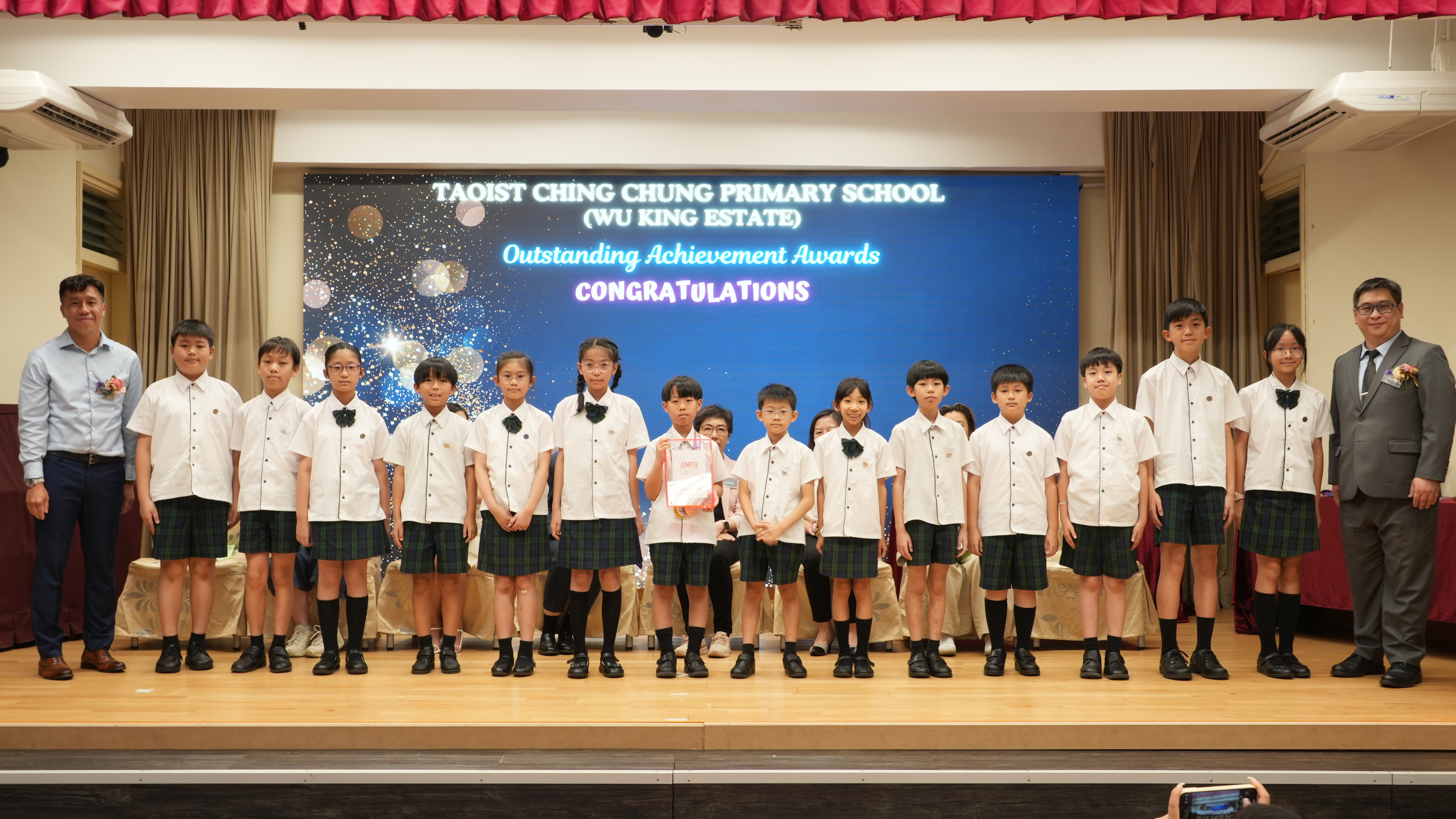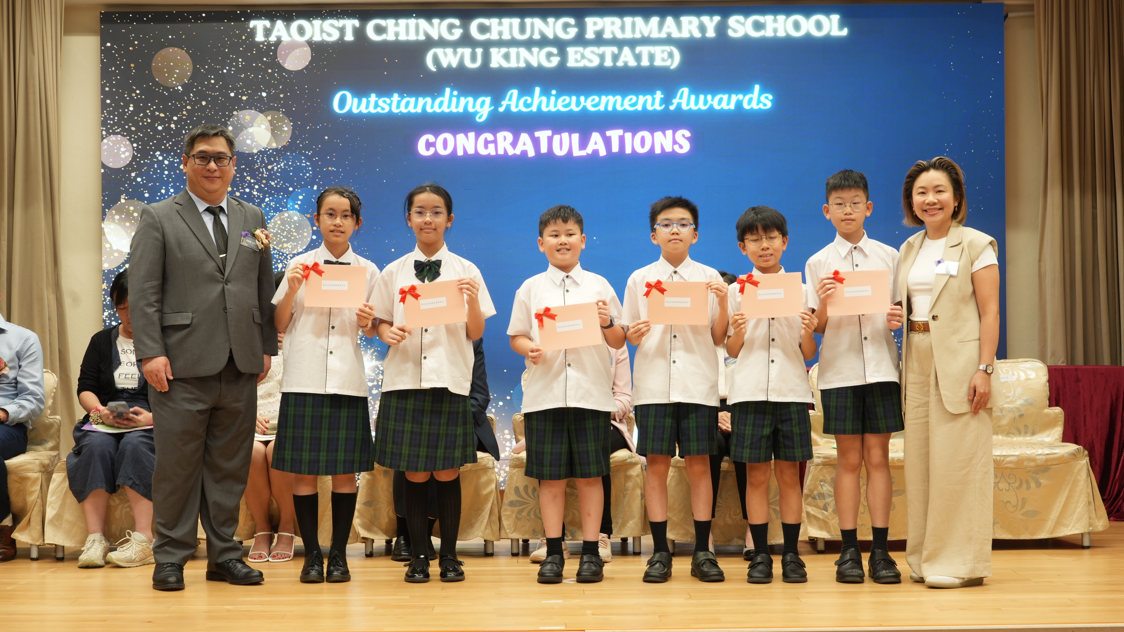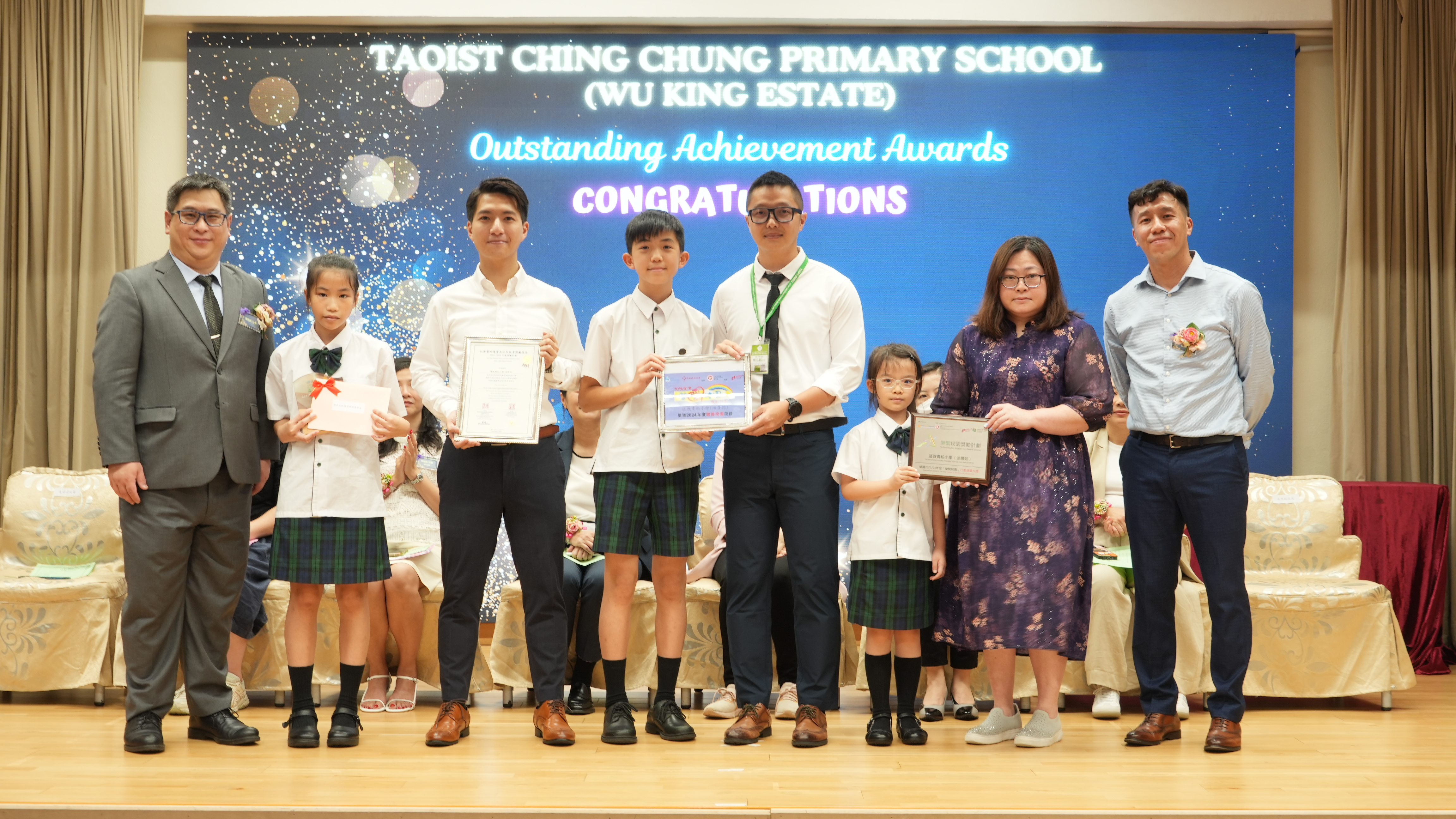 本年度傑出成就頒獎典禮,由校監趙淑儀女士、辦學團體校董趙卓敏女士、辦學團體校董方嘉琪女士、家長校董陳栩淨女士、校友校董凌紹球先生、家教會主席承曉燕女士、校友韓冰女士為頒獎嘉賓。是次典禮頒獎項目高達一百多項,再次祝賀獲獎的同學和家長,期望同學繼續努力,超越自我,再創高峰!