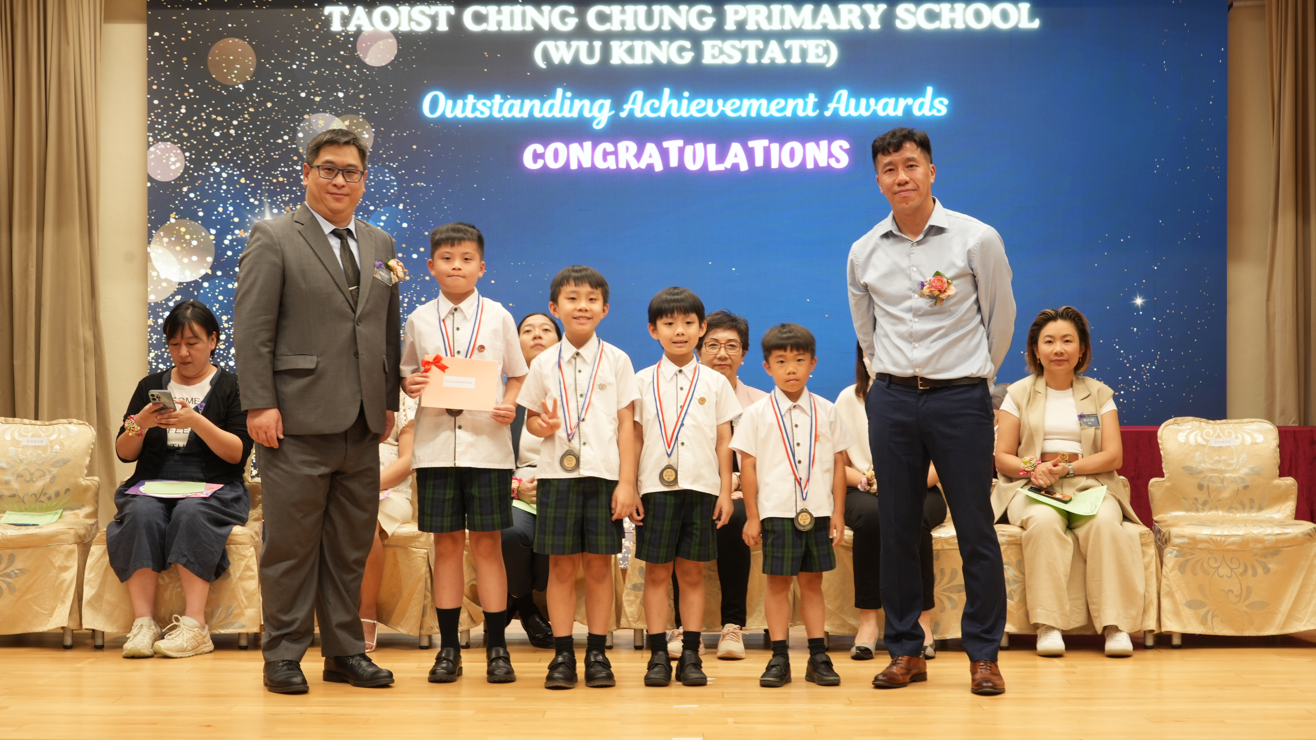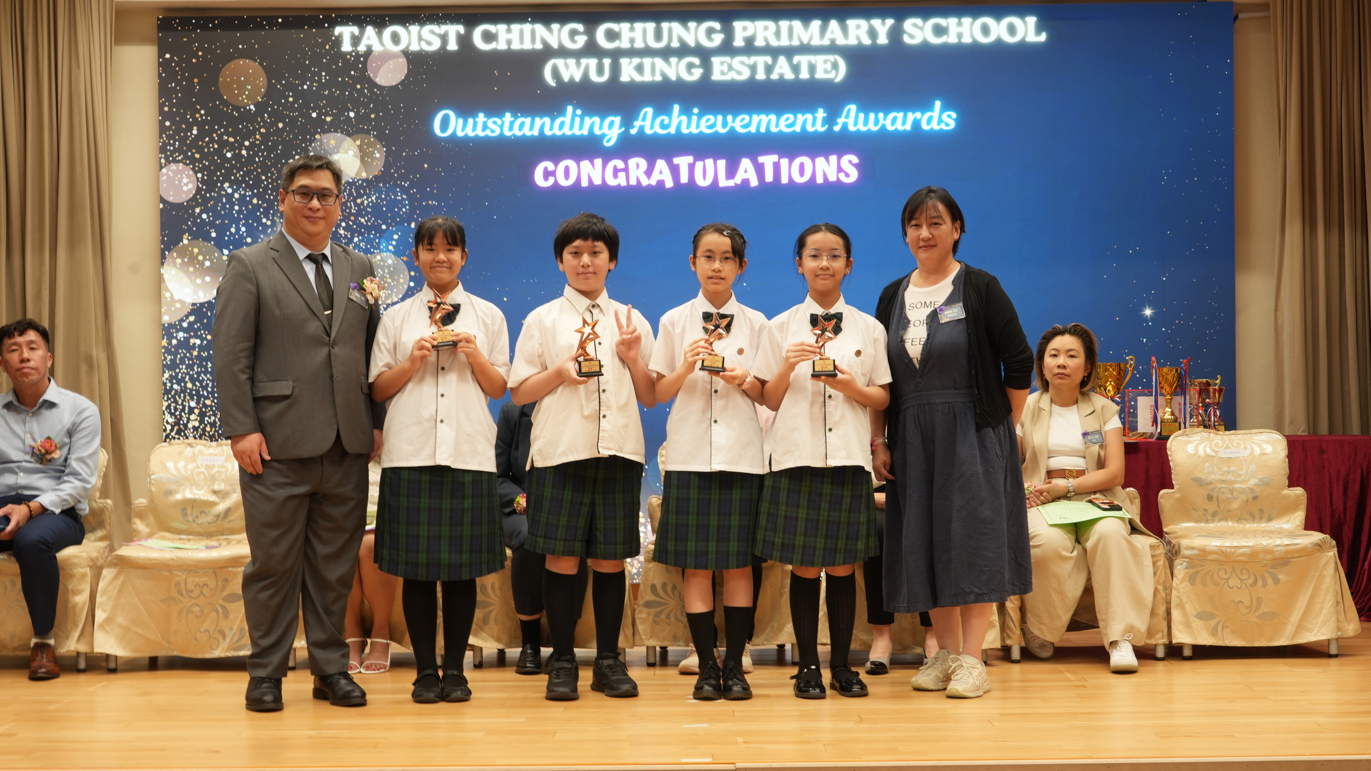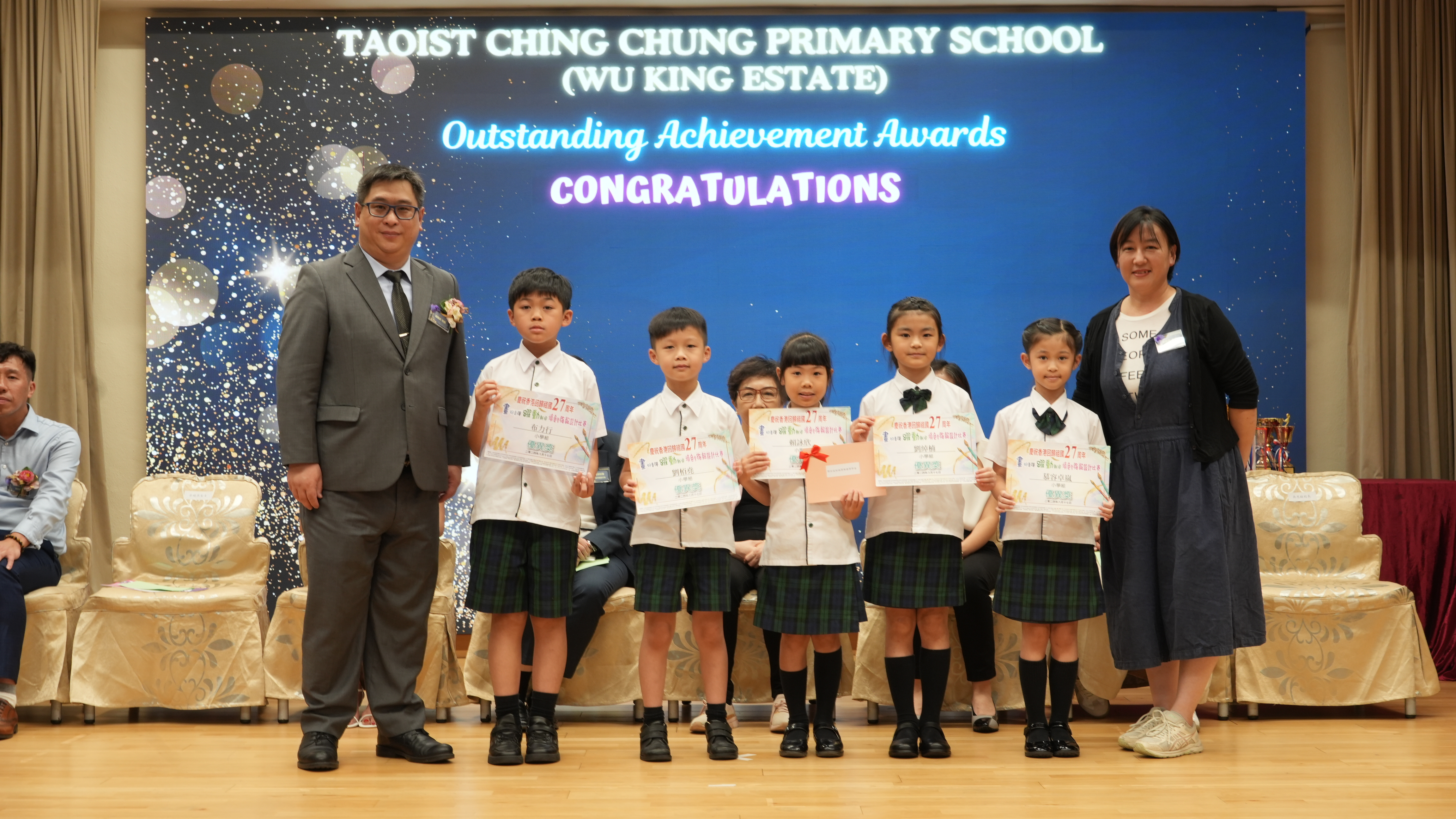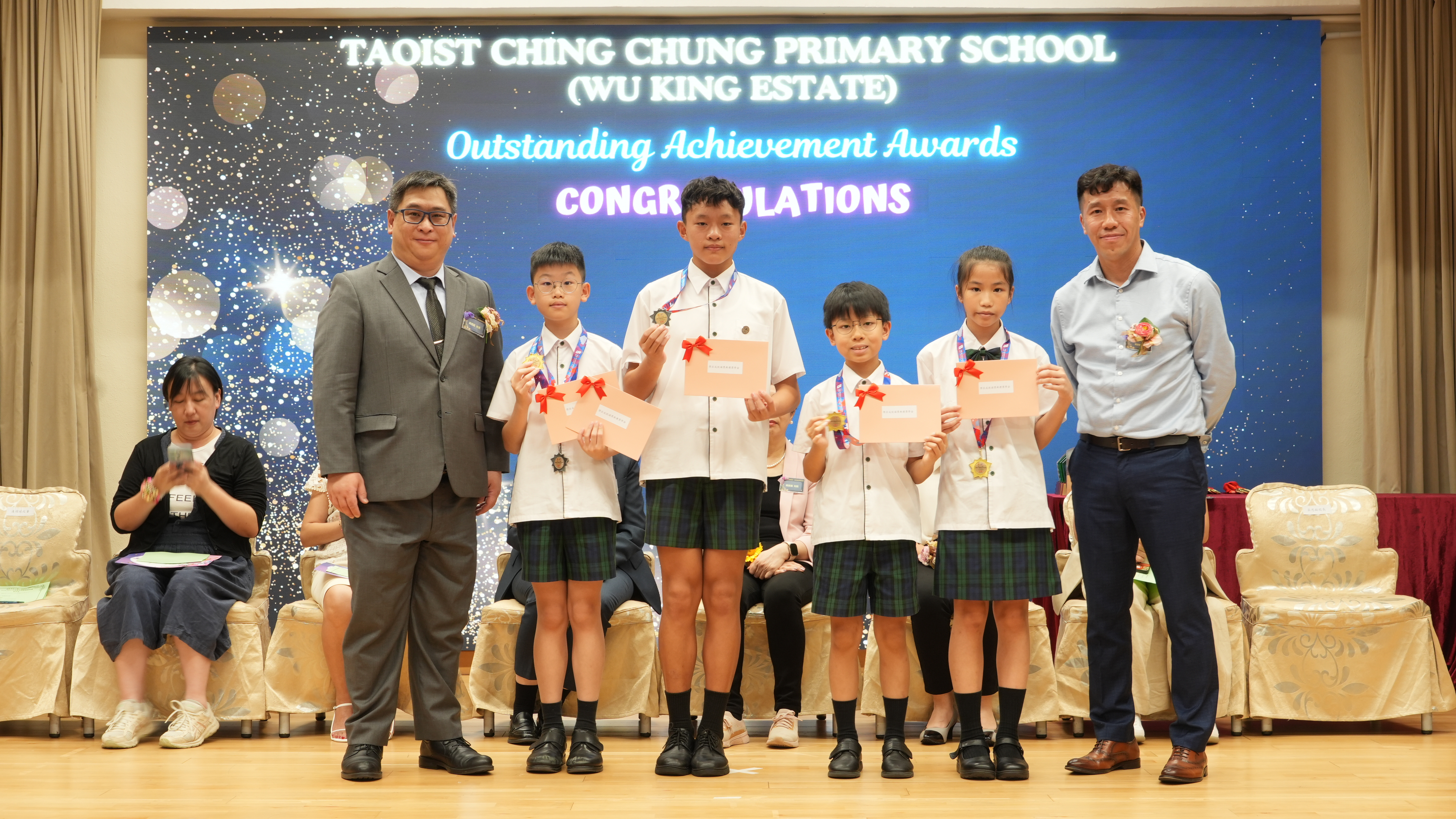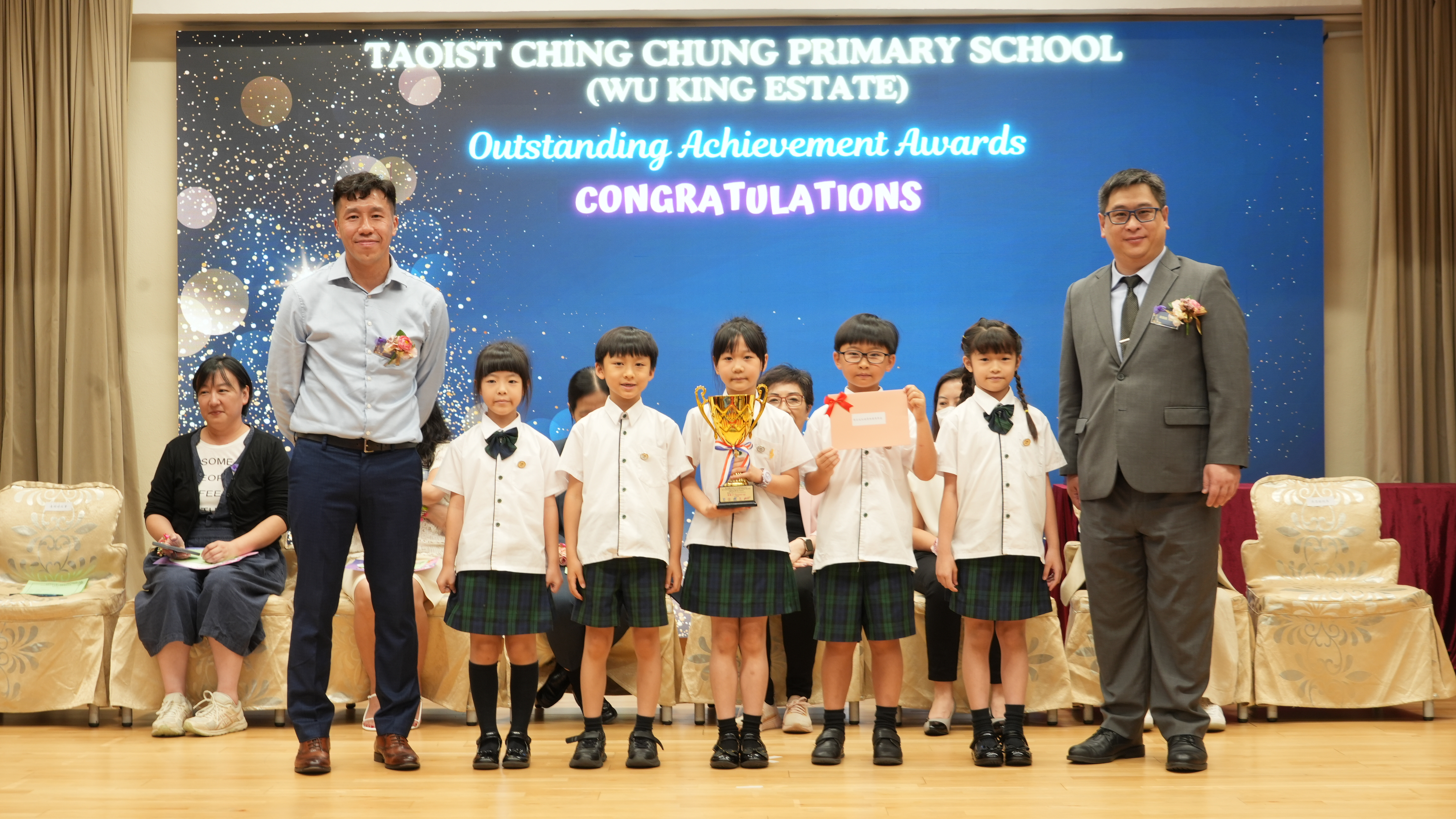本年度傑出成就頒獎典禮,由校監趙淑儀女士、辦學團體校董趙卓敏女士、辦學團體校董方嘉琪女士、家長校董陳栩淨女士、校友校董凌紹球先生、家教會主席承曉燕女士、校友韓冰女士為頒獎嘉賓。是次典禮頒獎項目高達一百多項,再次祝賀獲獎的同學和家長,期望同學繼續努力,超越自我,再創高峰!